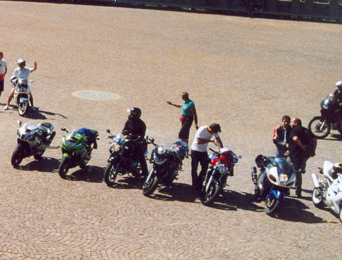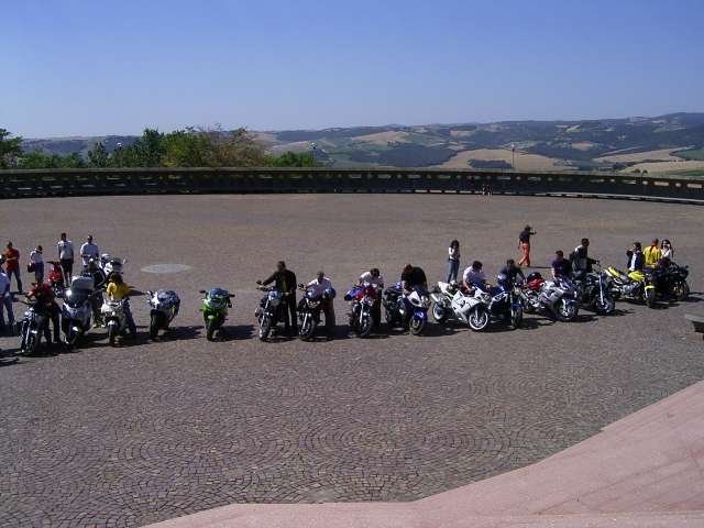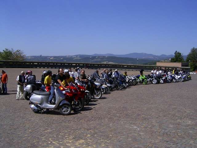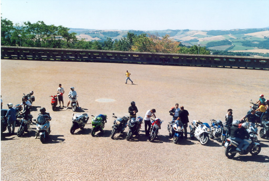 La sensazione che mi è maggiormente rimasta impressa è quella del caldo e delle estenuanti medie bassissime di percorrenza nel gruppone di moto…moto? A dir la verità c’erano anche un paio di scooter ed un Vespone! ;-)