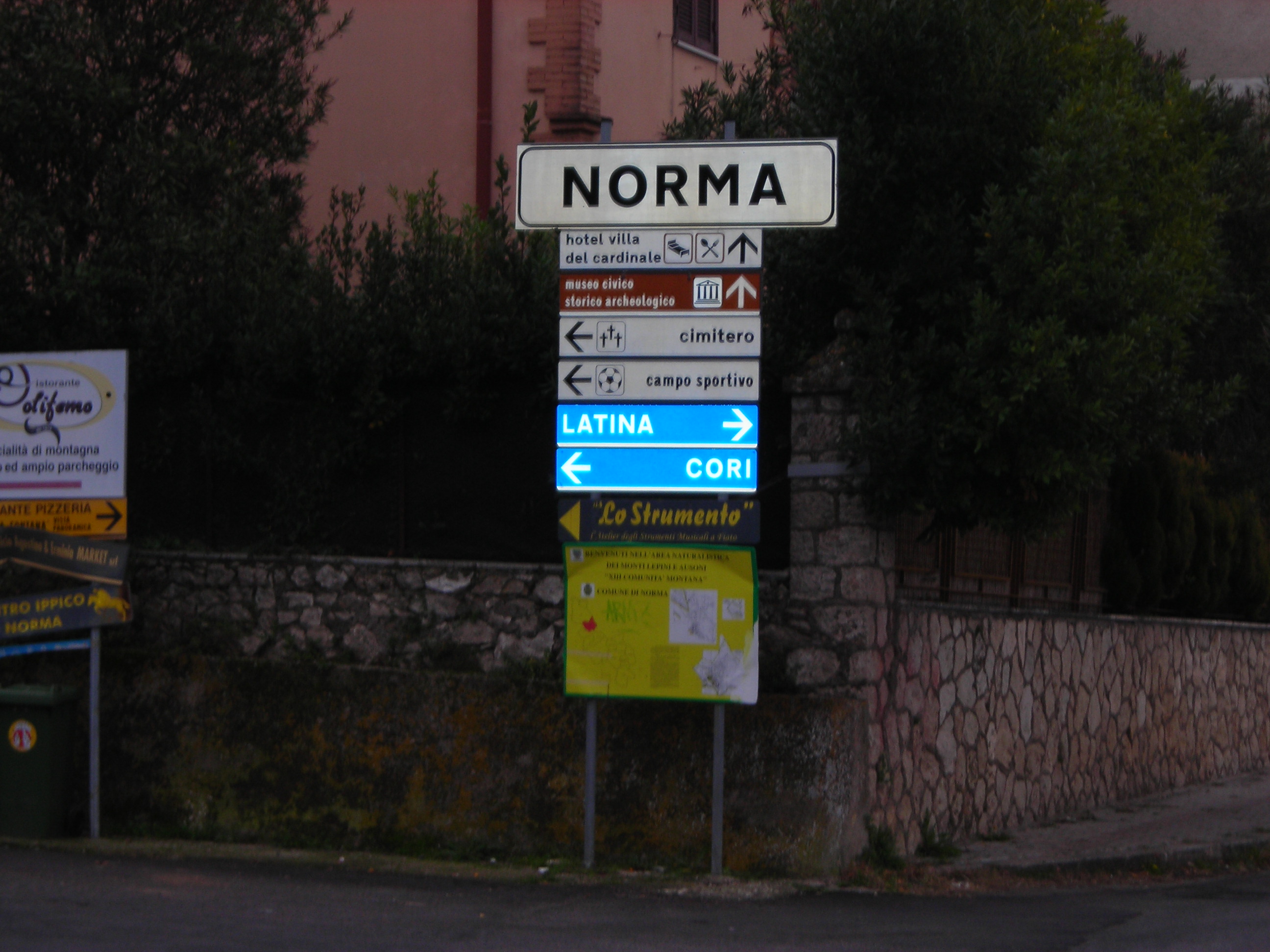Si prosegue fino all’estremo sud dei Lepini, a Maenza, con la pianura Pontina davanti a noi e dopo aver pranzato ci dirigiamo verso Norma e la bella strada che sale rapida dalla piana di Latina. Da Norma a Cori attraverso stradine provinciali piuttosto strette ma di bell’effetto scenografico e ancora Velletri. Il tempo di una cosa calda tutti insieme e sta già facendo buio e cade anche qualche goccia d’acqua.