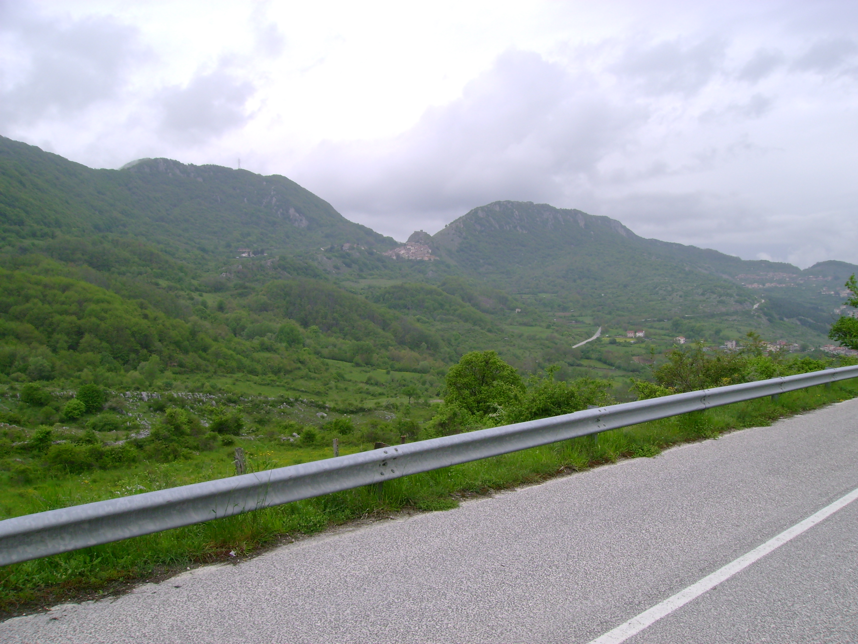 Peccato che la giornata un po’ velata a Roma si è decisamente coperta e già a Magliano piovigginava abbastanza. Ma è a Santa Lucia che ha iniziato a venir giù copiosamente tanto che mi sono fermato ad indossare la tuta antipioggia. Convinto che ormai il più era fatto ho proseguito la salita ma più salivo e più pioveva. Tra l’altro ad un certo punto mi sono anche trovato in mezzo a delle nuvole con un tasso di umidità pari al 100% quasi!