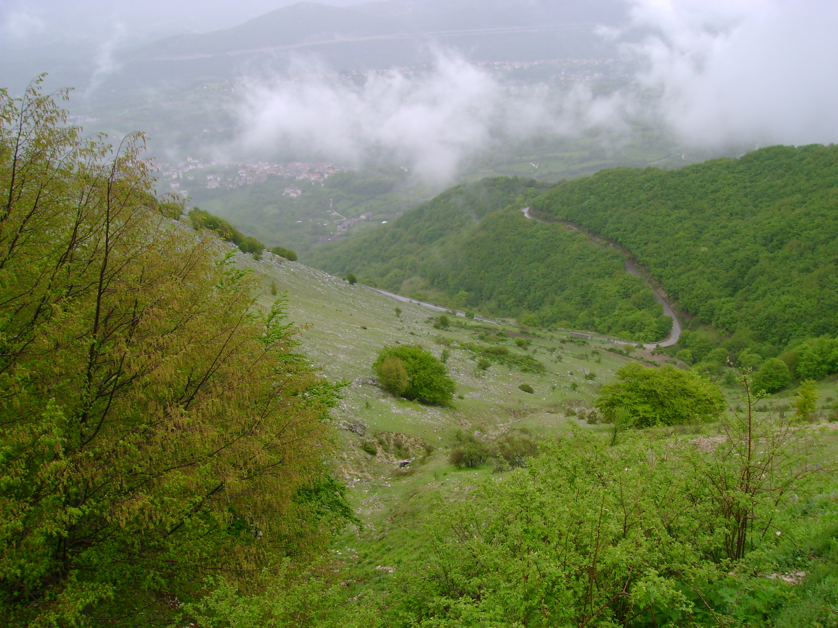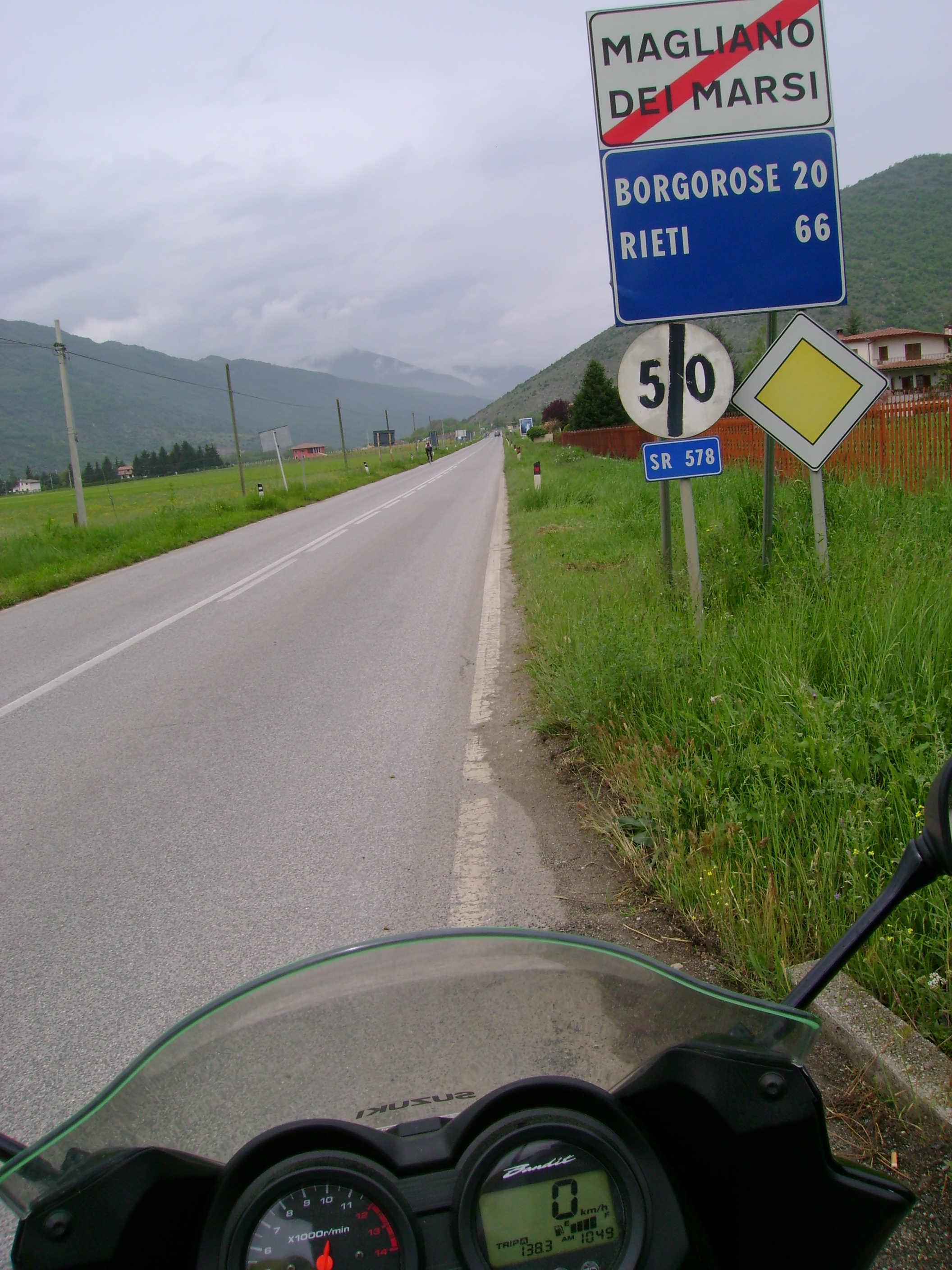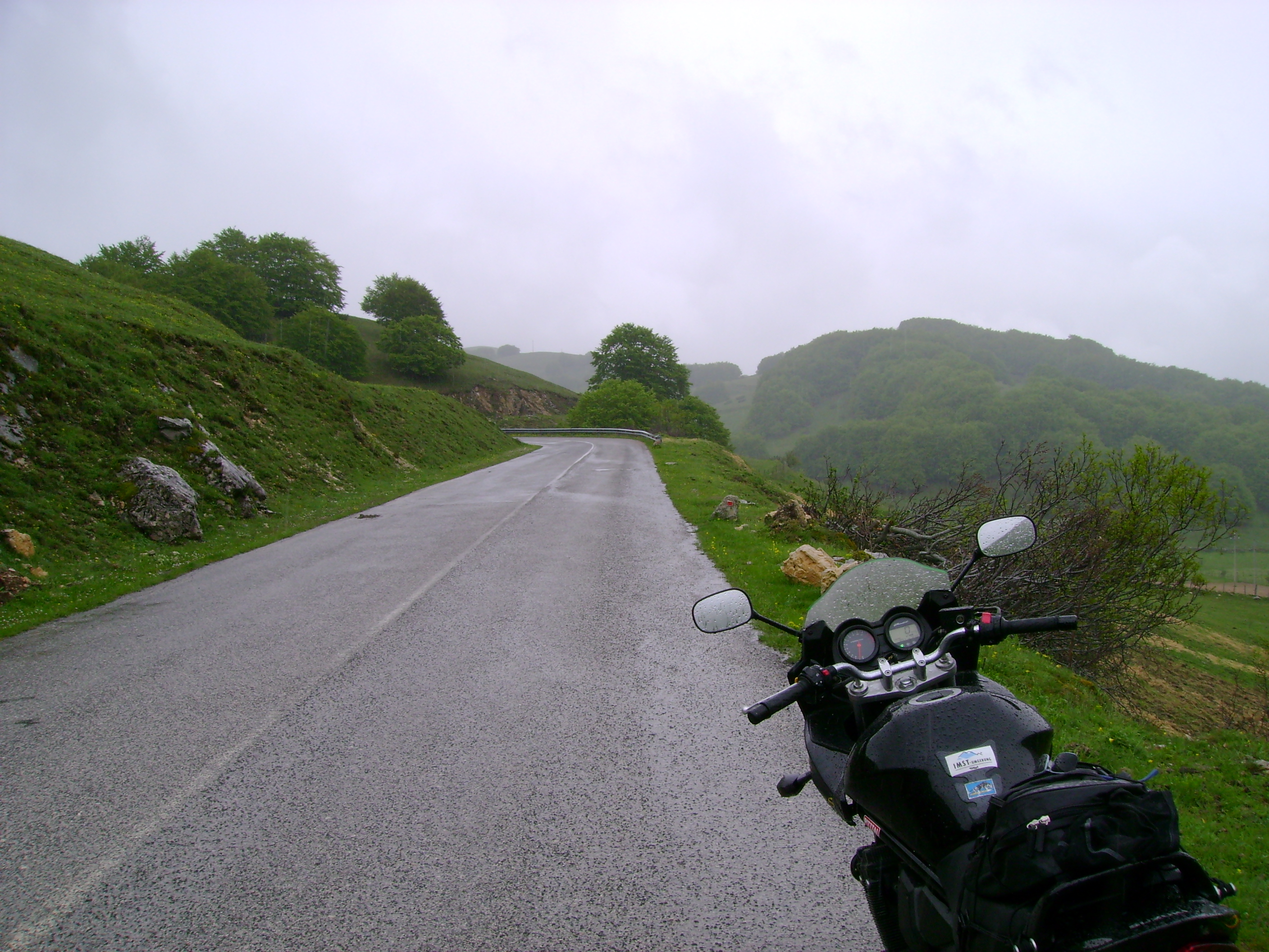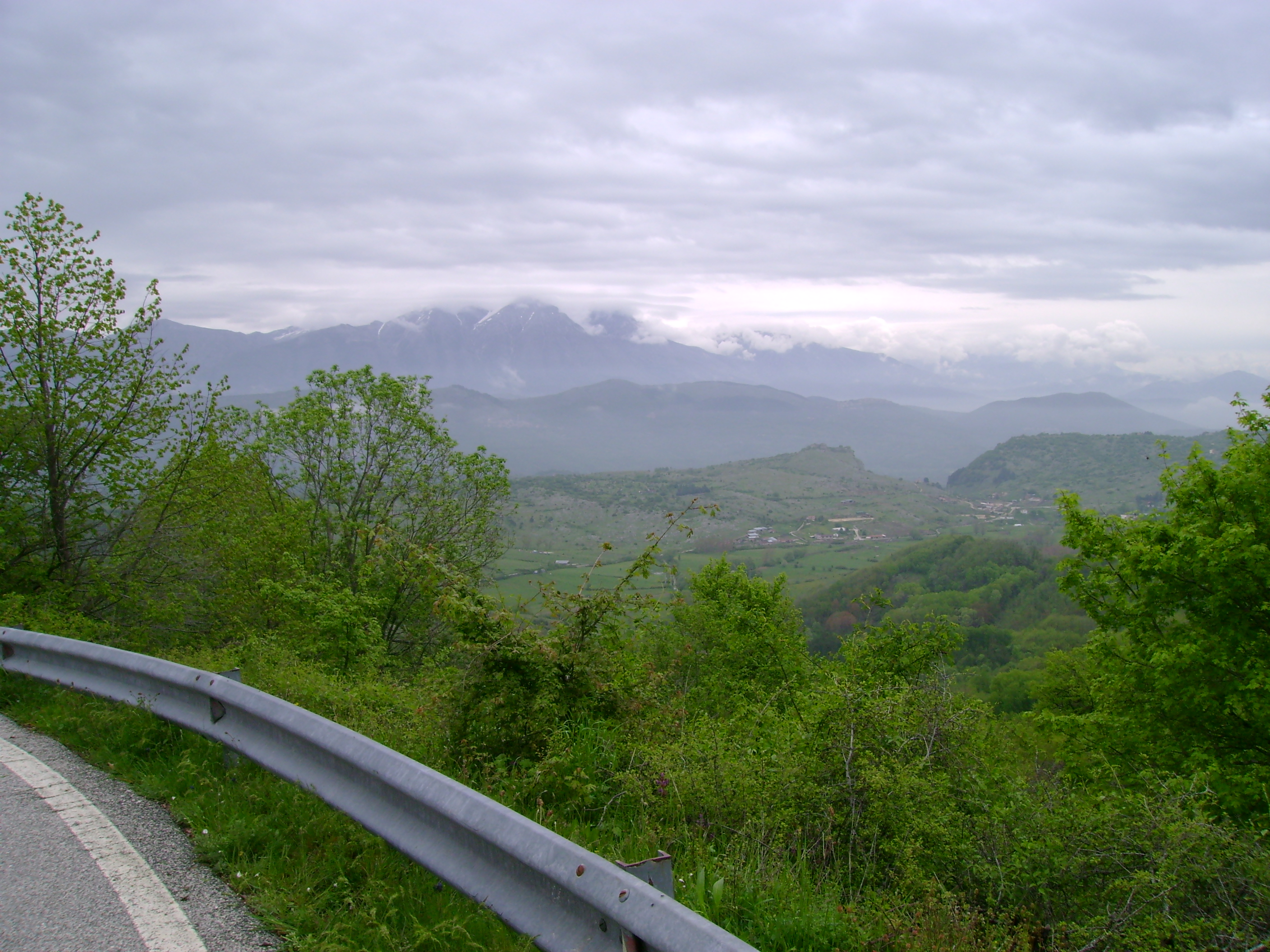 Ho scoperto poi, tanto per gradire, che la mia moto soffre in qualche modo un eccesso d’umidità perché ha preso ad andare a singhiozzi, a tre cilindri o roba simile fino ai 3-4000 giri e poi si riprende. E così a scartamento ridotto impavido ho continuato a salire perché sembrava dovesse smettere. E così lentamente è stato ma non prima d’aver passato il valico ed iniziata la discesa verso Tornimparte.