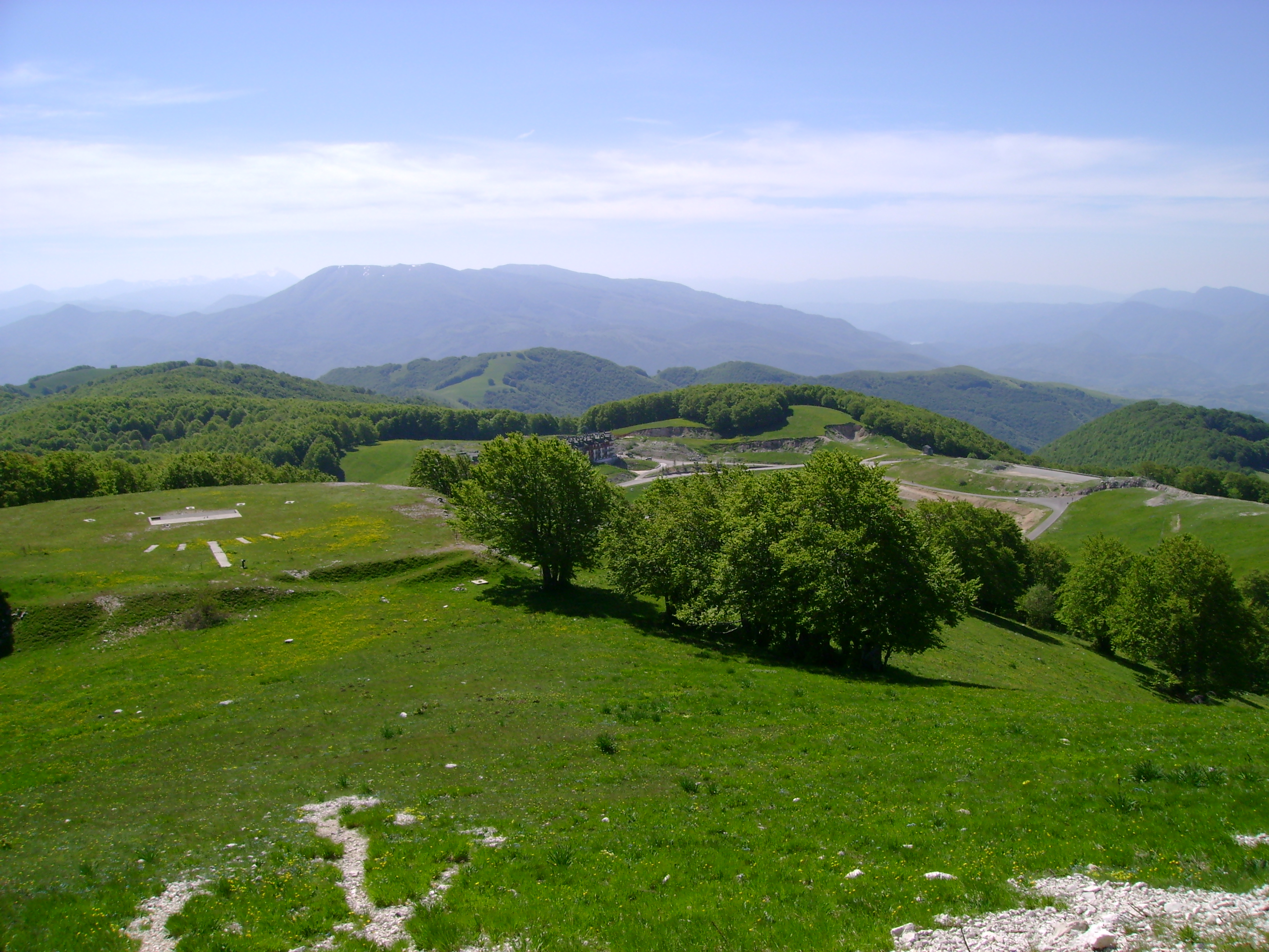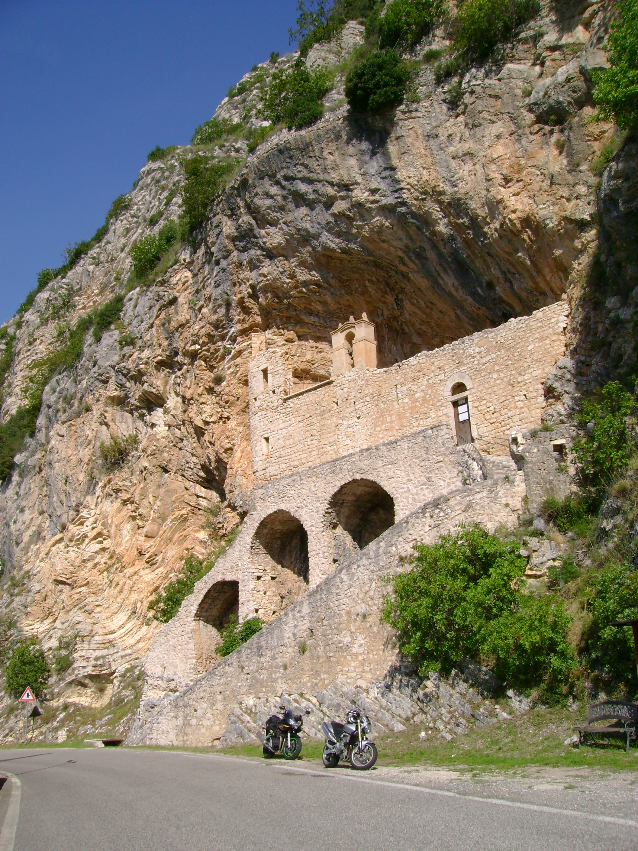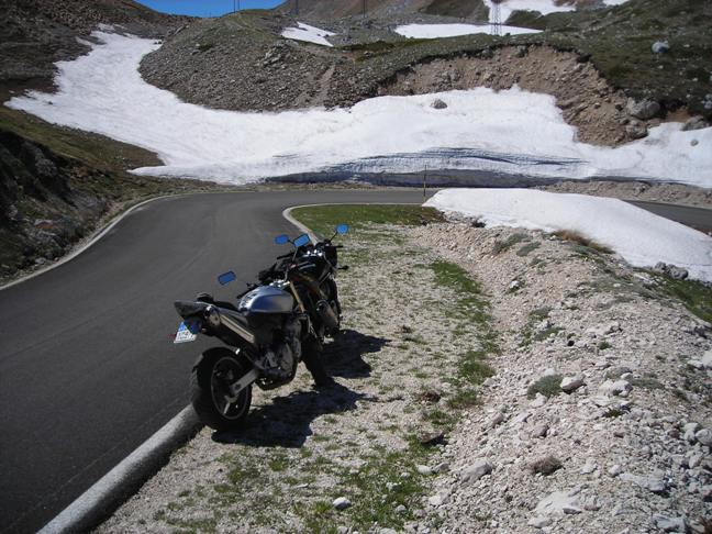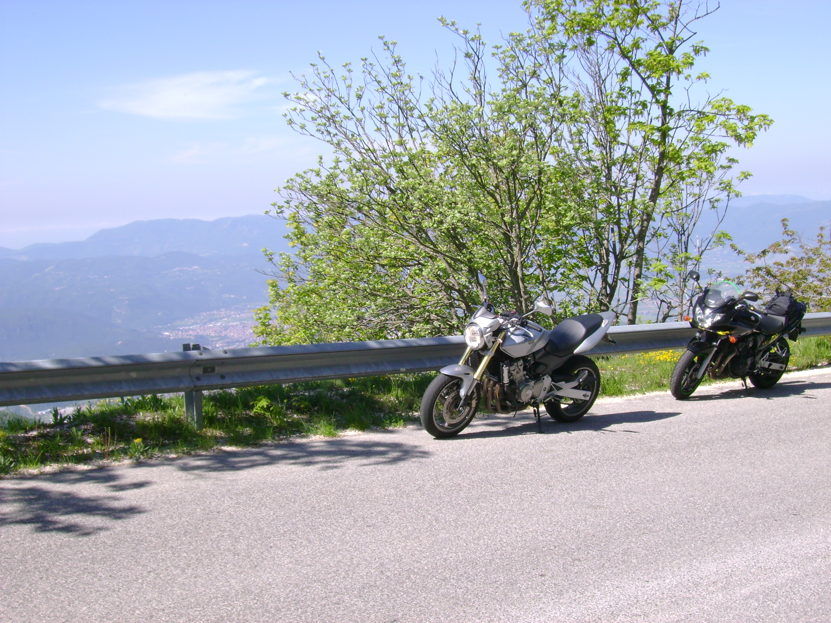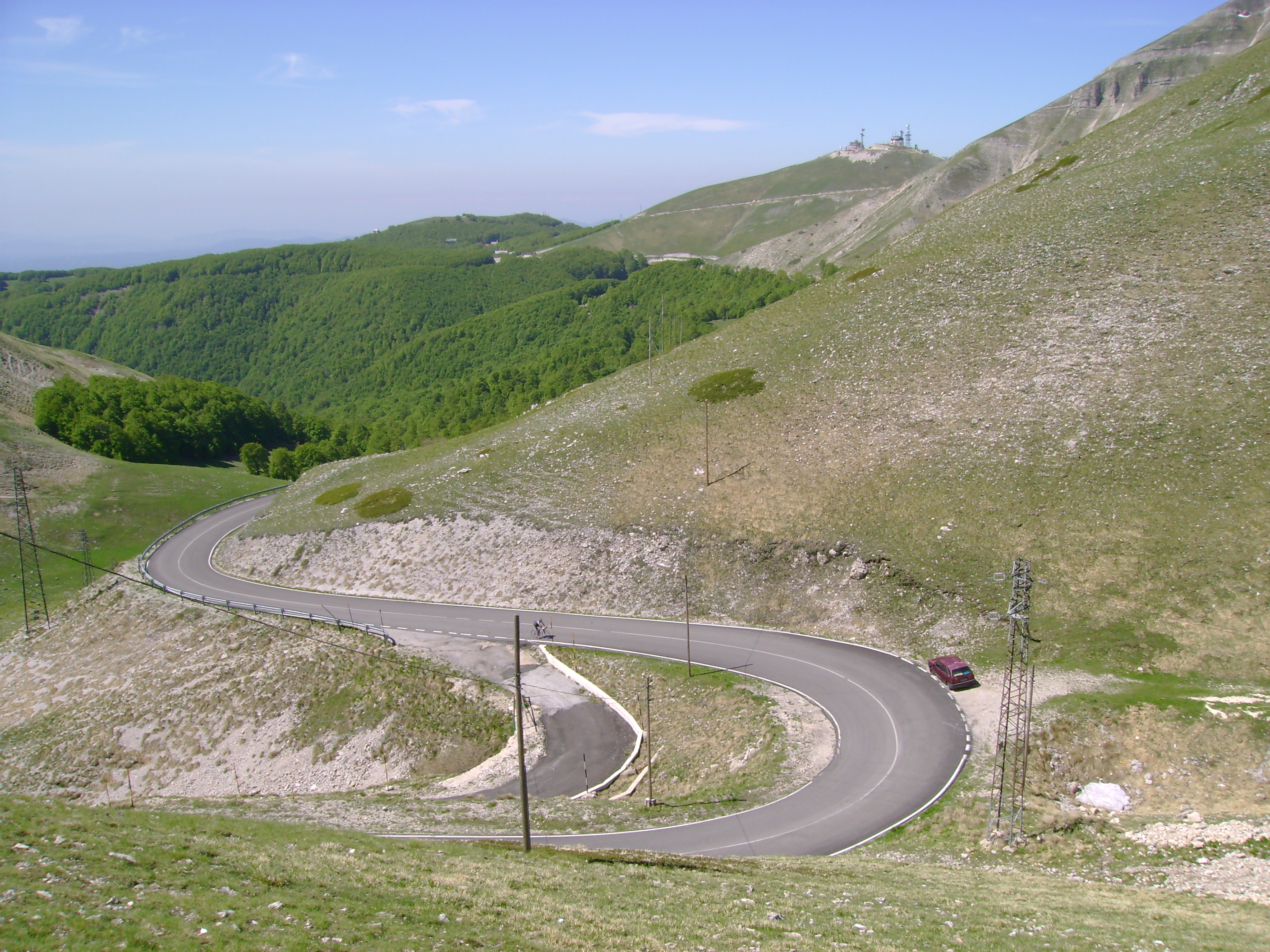 La salita al Terminillo da Rieti è sempre molto bella e devo dire che stavolta me la sto godendo molto meglio dell’ultima volta. Una volta passato il valico di Leonessa ci fermiamo a giocare un po’ con le moto e farci qualche mini ripresa dei nostri passaggi su quei bei tornanti che serpeggiano sotto la vetta rocciosa. Peccato per il pietrisco.