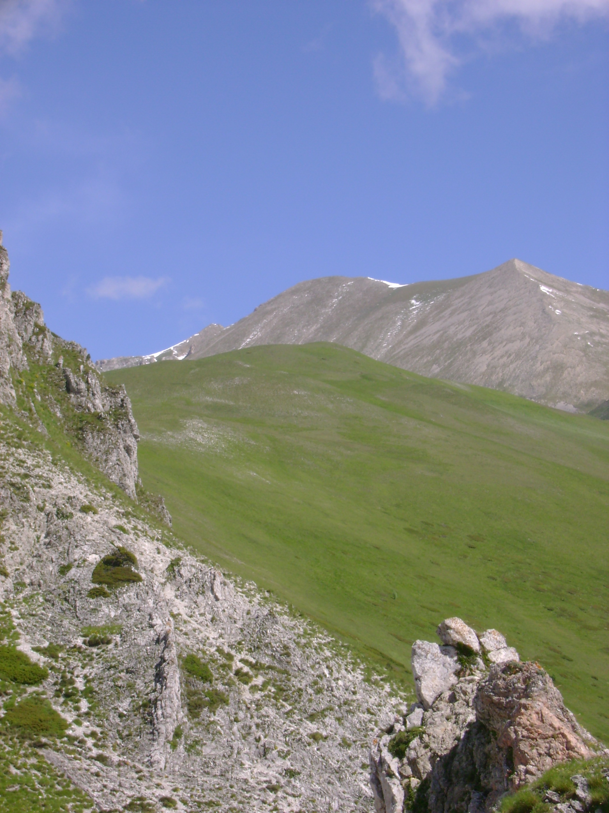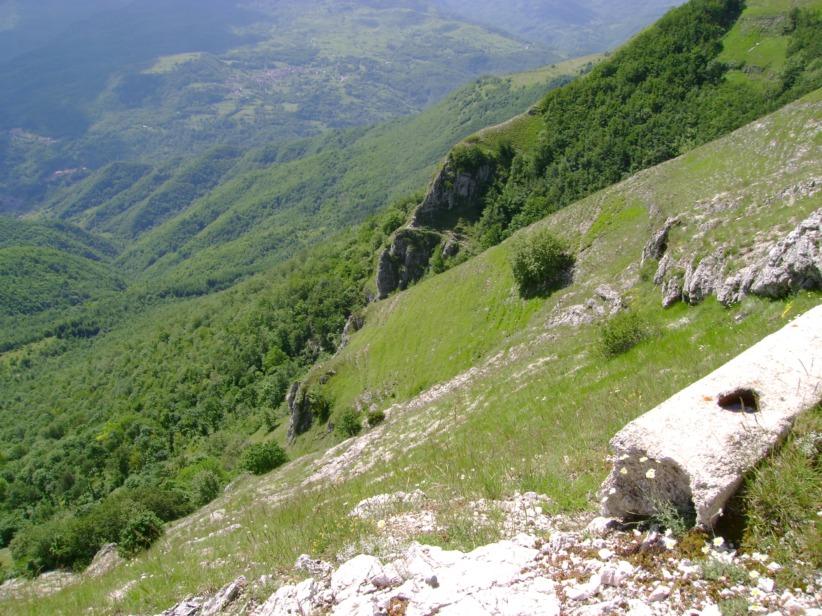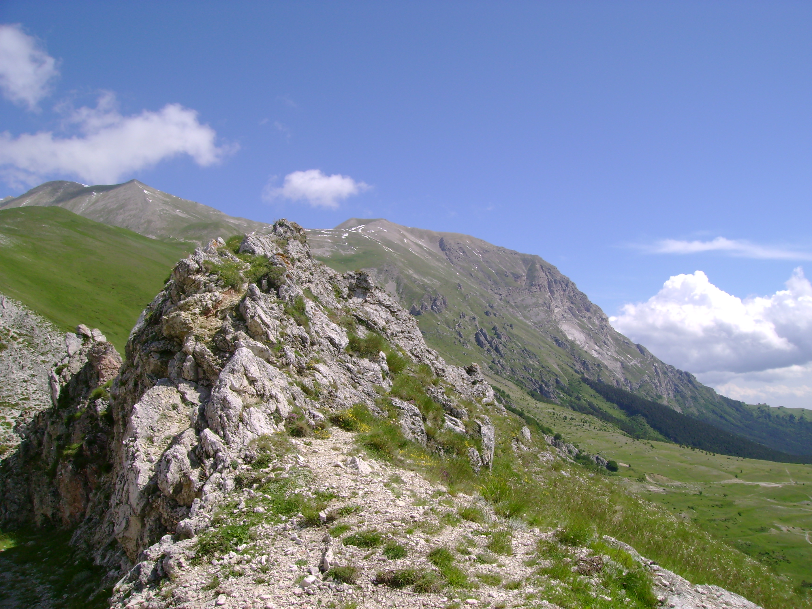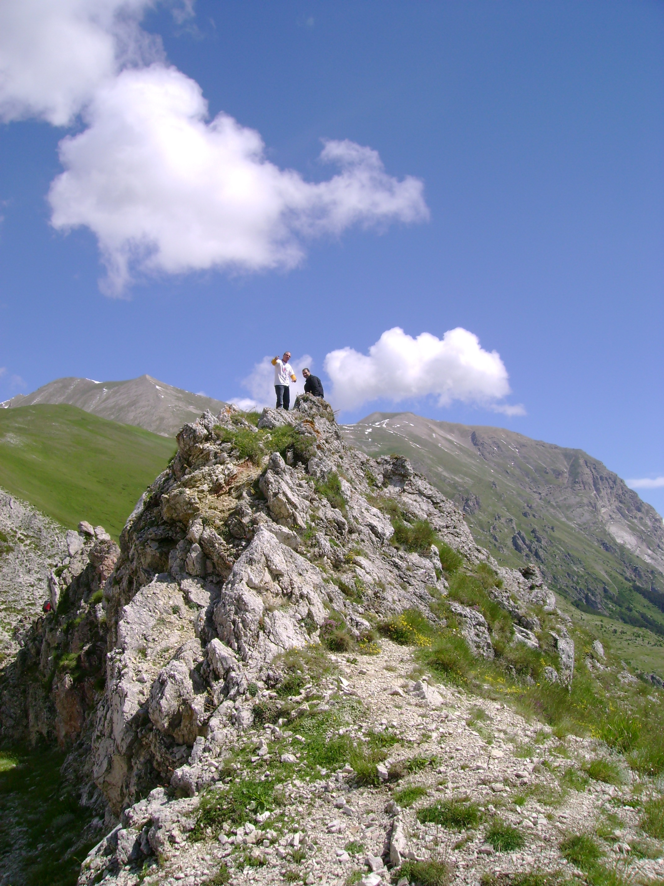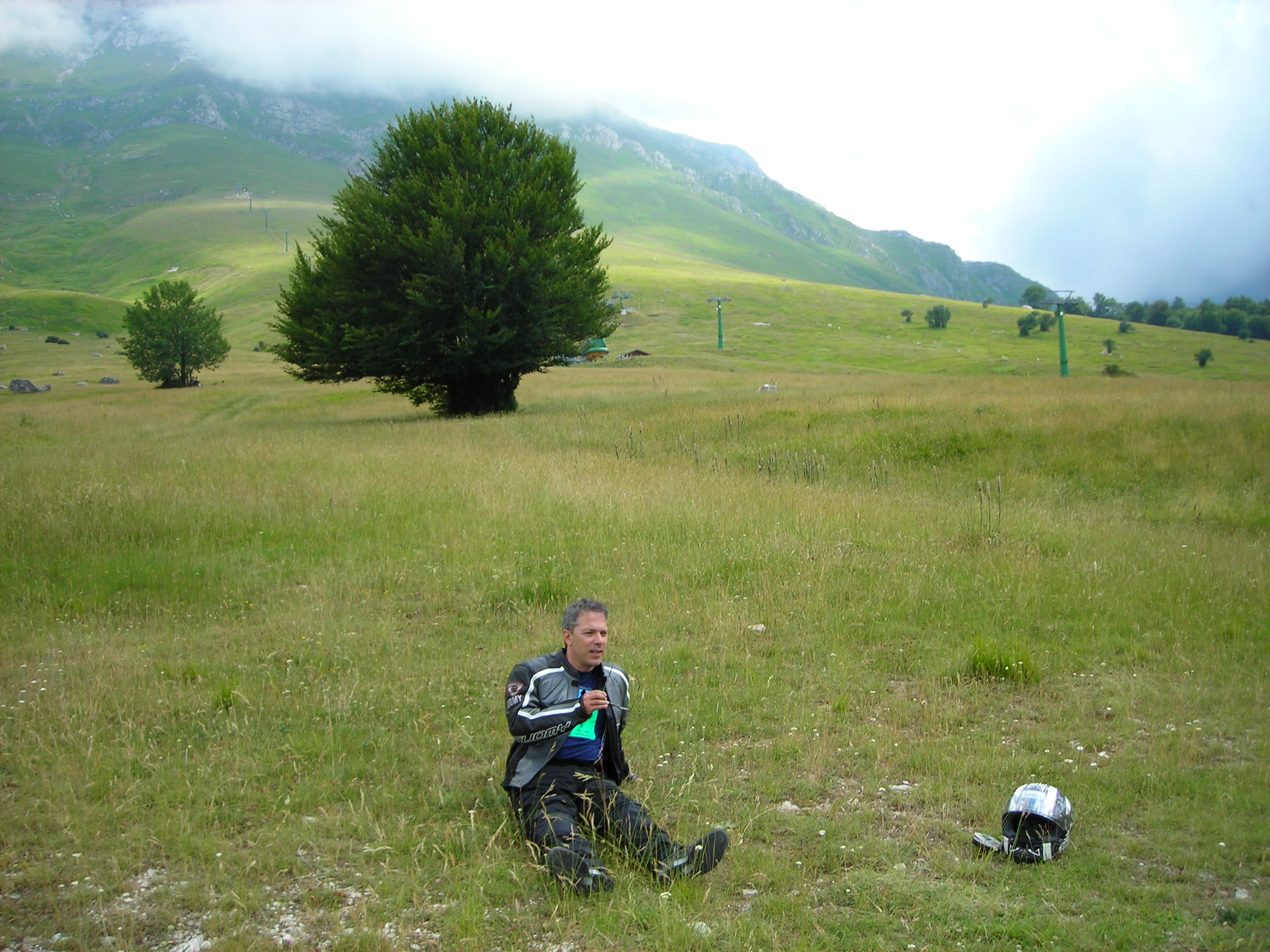 Facciamo una deviazione verso l’altopiano di Pietracamela da dove si gode una vista magnifica su entrambi i corni del Gran Sasso. Starsene sdraiati su quei prati è bellissimo e ne approfittiamo per fare una sosta ristoratrice.