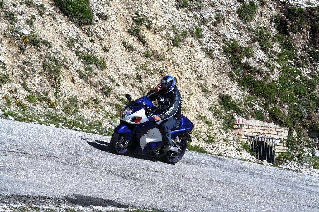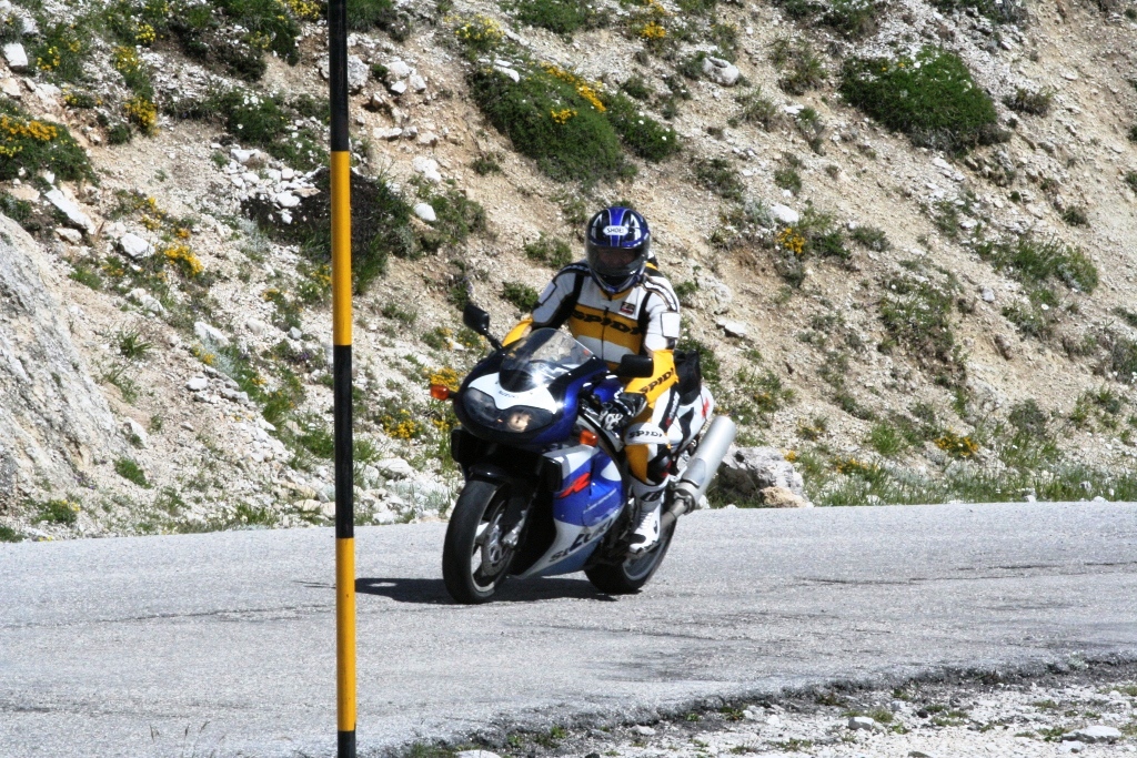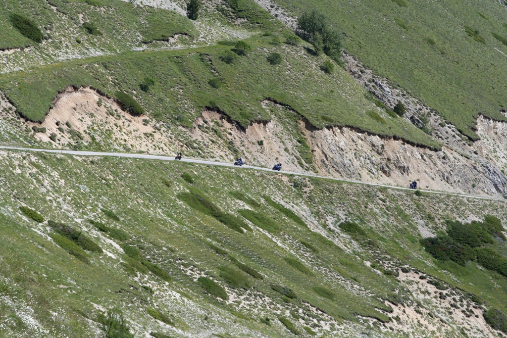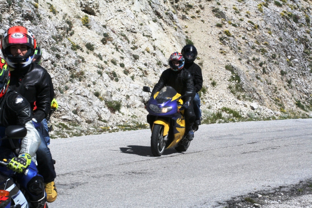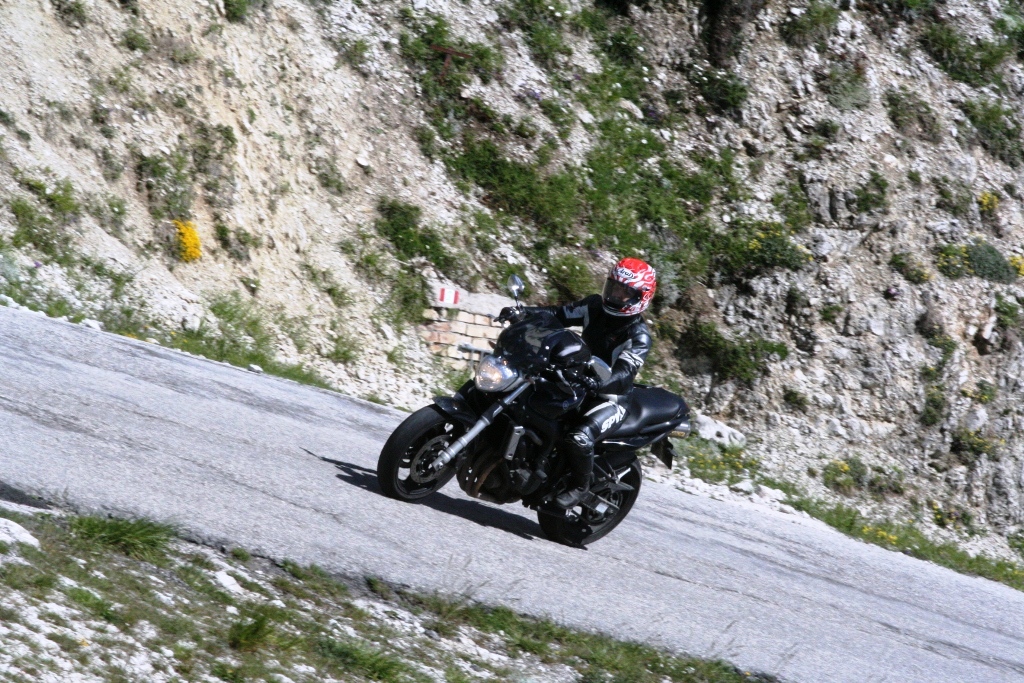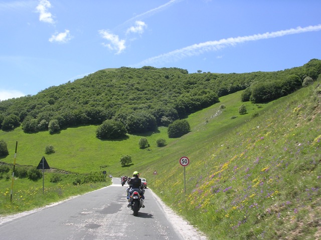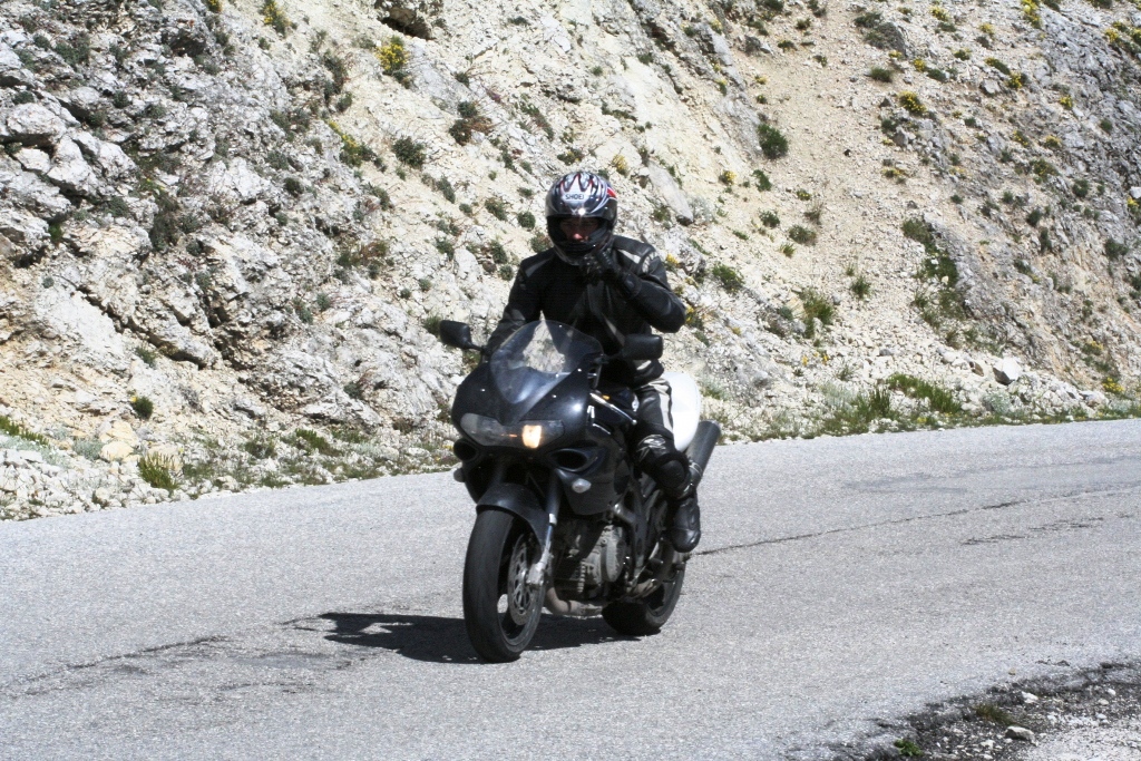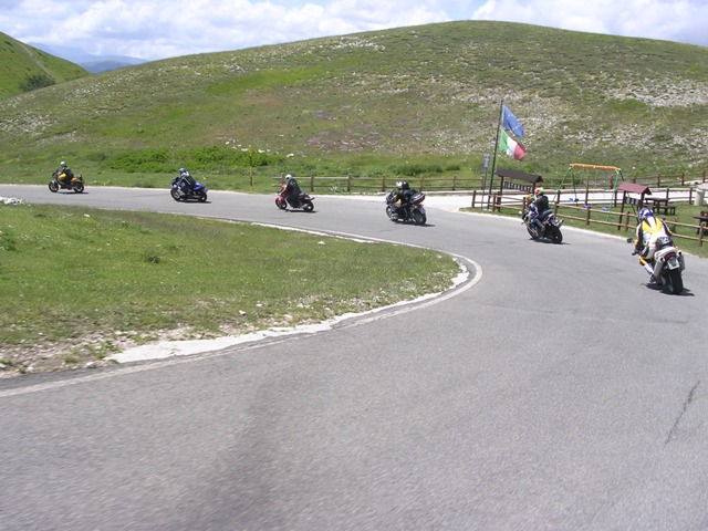 Riscesi sulla SS 80 ci aspettano ancora decine di km di curve e dopo il valico delle Capannelle la discesa verso la piana aquilana è sempre splendida. Conosco bene quella strada ma ogni volta riserva divertimenti inattesi.