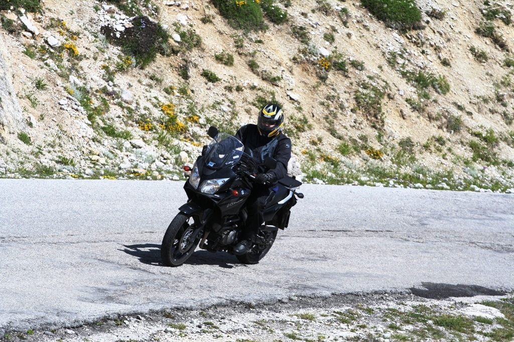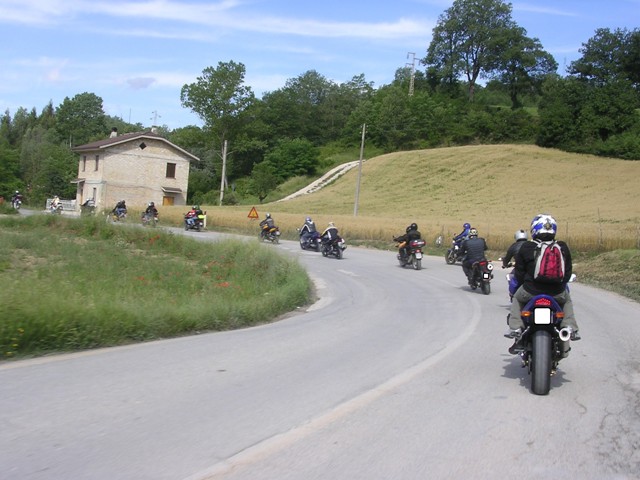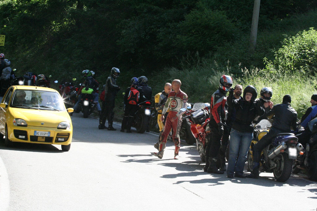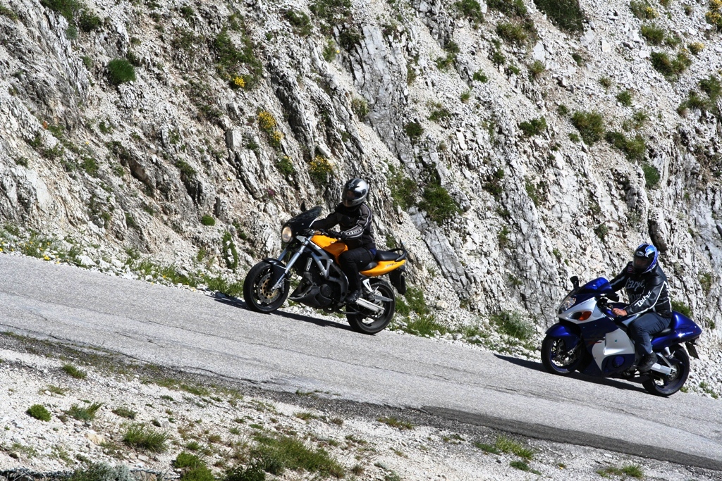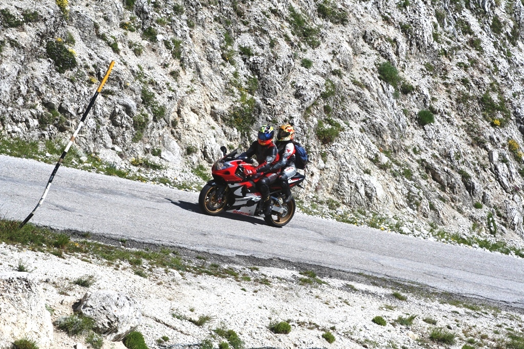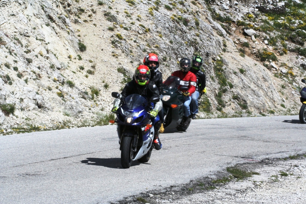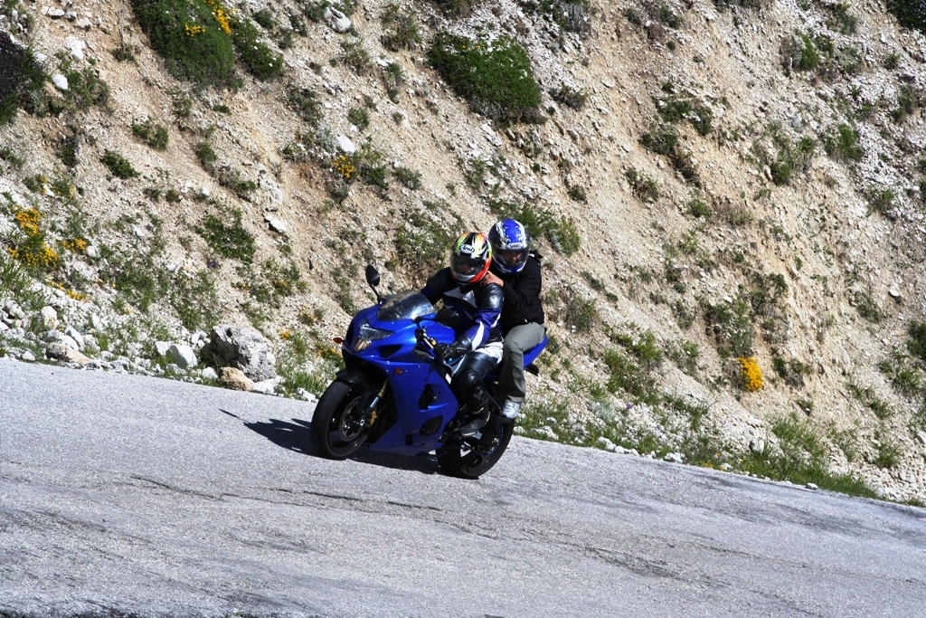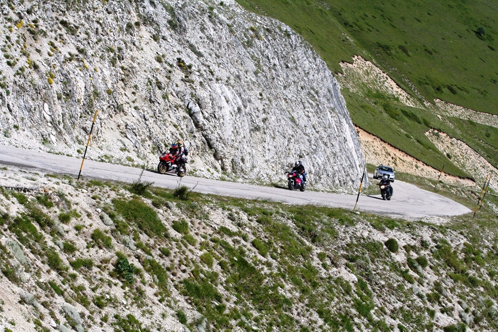 Riscesi sulla SS 80 ci aspettano ancora decine di km di curve e dopo il valico delle Capannelle la discesa verso la piana aquilana è sempre splendida. Conosco bene quella strada ma ogni volta riserva divertimenti inattesi.