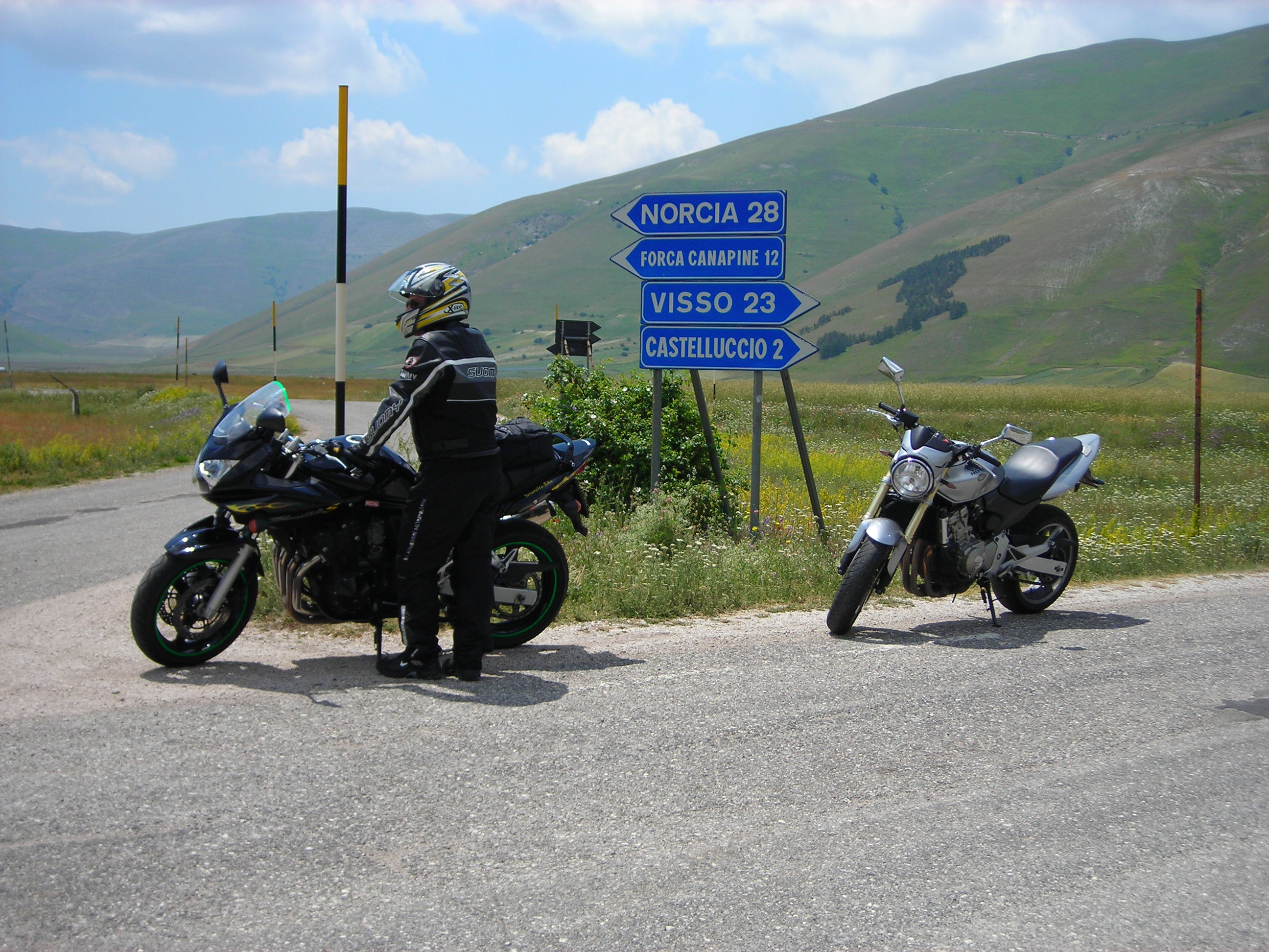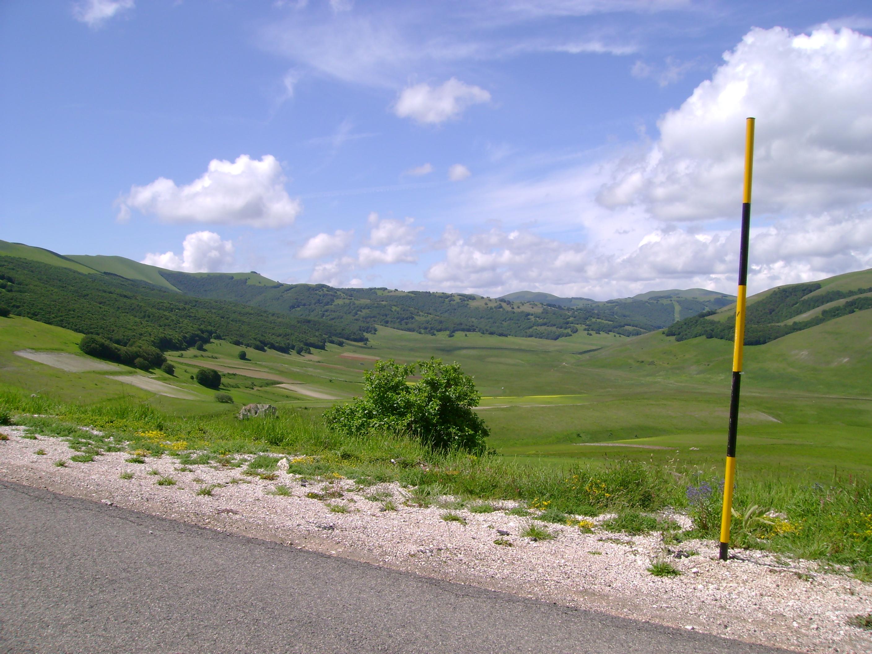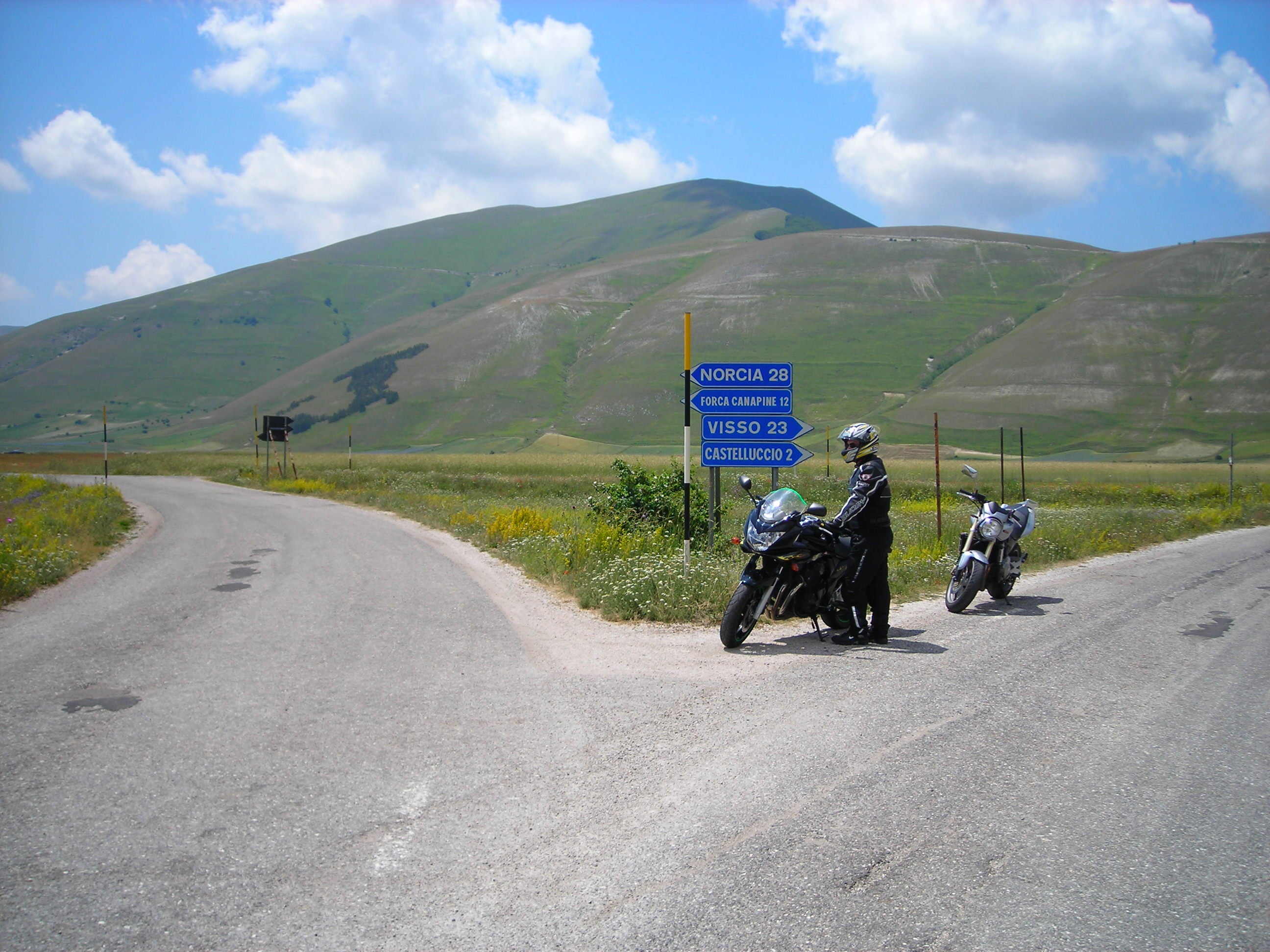 M’è piaciuto talmente tanto tornare a Castelluccio di Norcia in occasione del raduno che decido di ripassarci anche oggi. Con me si associa Andrea che avrebbe dovuto partecipare al raduno; stavolta però vorrei arrivarci da nord visto che venendo su da Visso si apre dapprima una seconda piana che pur essendo molto più piccola e non coltivata a lenticchie non ha nulla da invidiare a quella più grande e famosa a sud del paese.