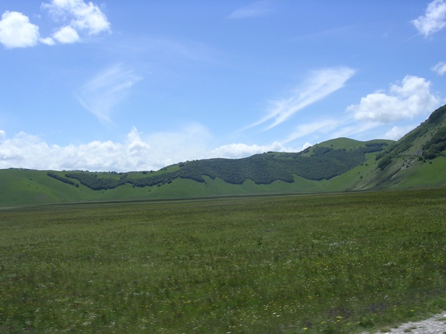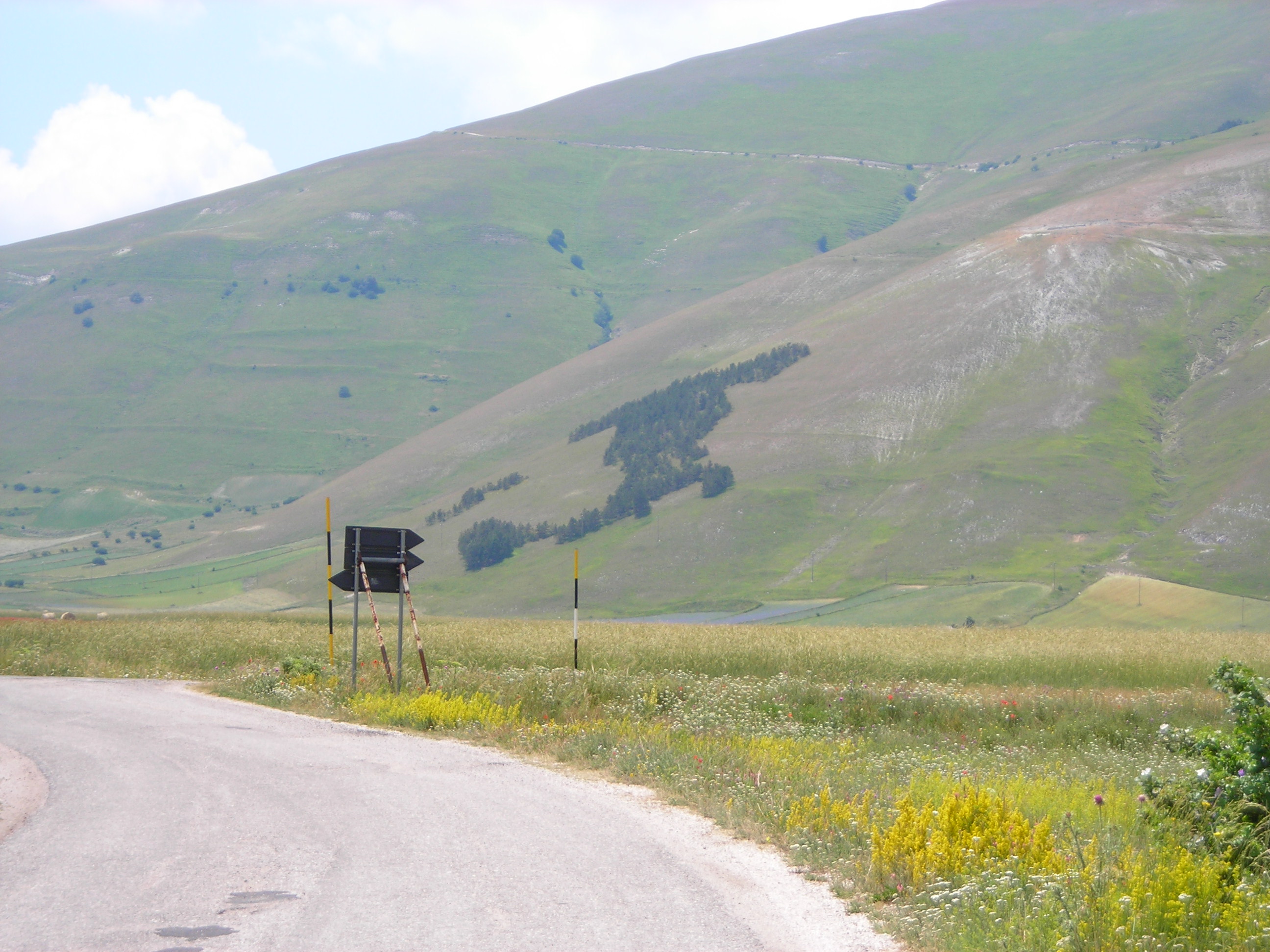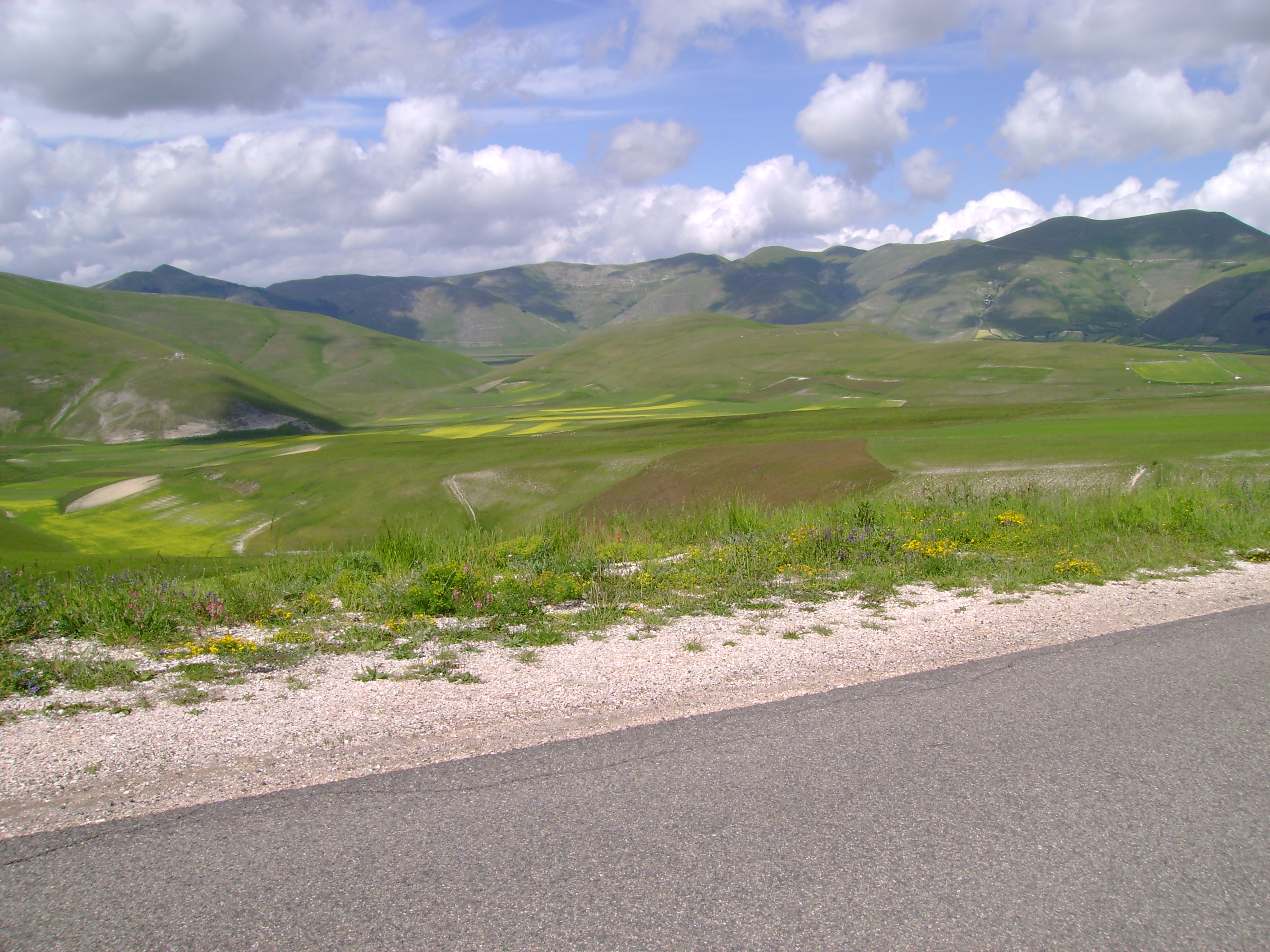 M’è piaciuto talmente tanto tornare a Castelluccio di Norcia in occasione del raduno che decido di ripassarci anche oggi. Con me si associa Andrea che avrebbe dovuto partecipare al raduno; stavolta però vorrei arrivarci da nord visto che venendo su da Visso si apre dapprima una seconda piana che pur essendo molto più piccola e non coltivata a lenticchie non ha nulla da invidiare a quella più grande e famosa a sud del paese.
