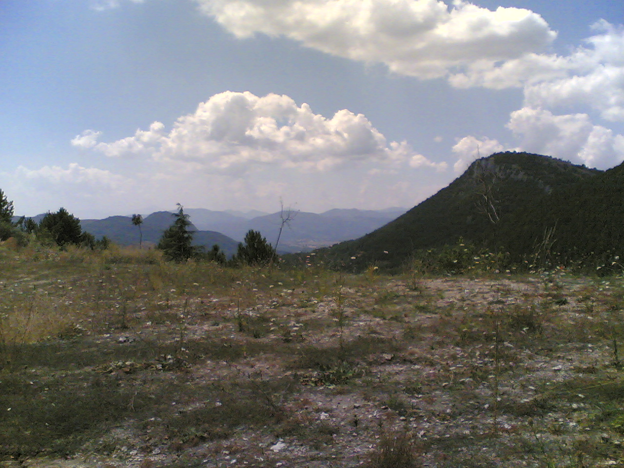 Continuando a salire raggiungo la piana di Campitello Matese. Sono solo. Un vento fresco rende l’aria ancora più limpida e questi paesaggi appenninici arsi e brulli hanno un loro fascino. Resto incantato per un quarto d’ora buono a guardare il volo di un falco che in cerchi concentrici sempre più stretti ma con una traiettoria spiraleggiante si sposta in quota in cerca di prede.
