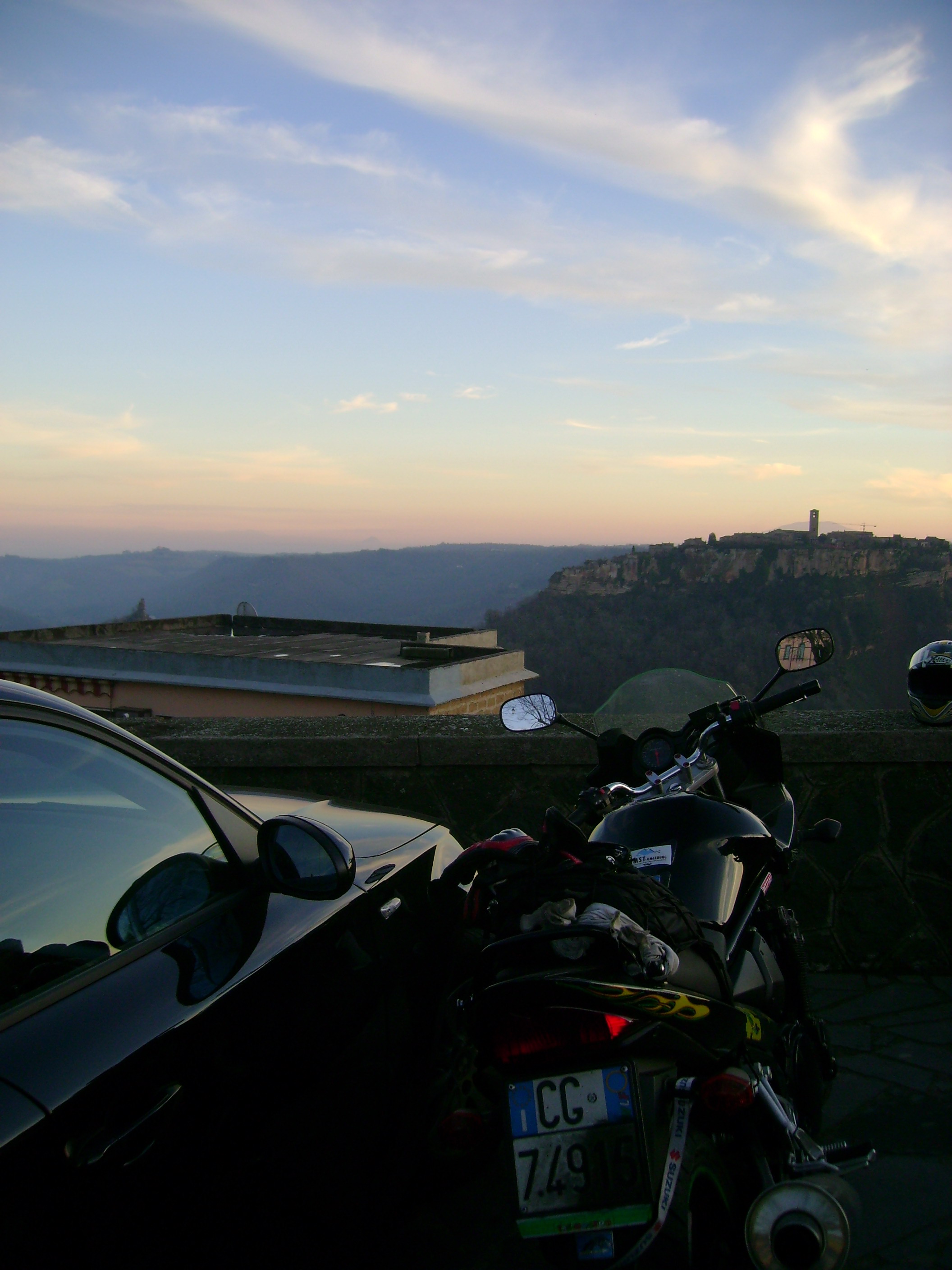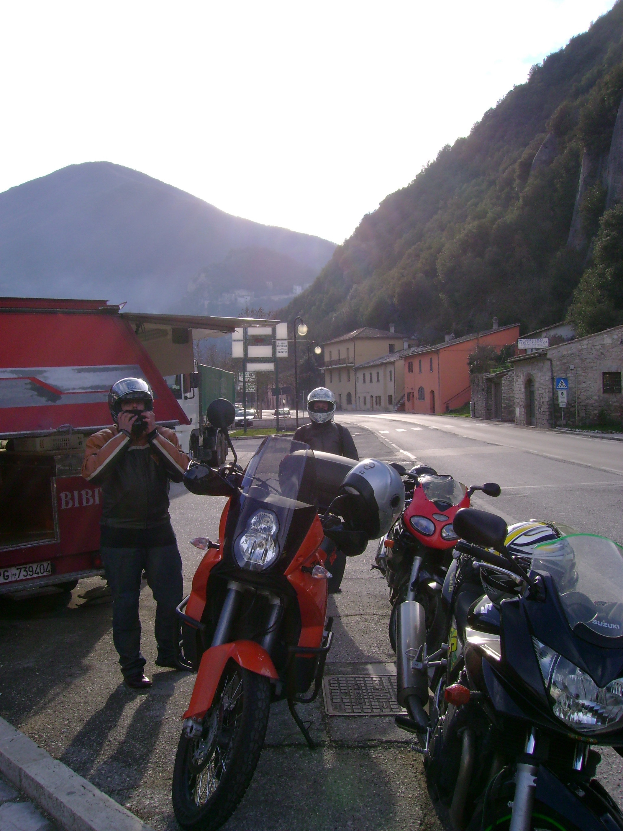 Inconveniente tecnico ad uno del gruppo a cui si rompe la batteria del Ducati 900 preceduta da una gran puzza di uova marce per l’acido che stava perdendo. Per sua fortuna un ricambista di Vetralla è aperto nonostante sia sabato pomeriggio e così acquistata la nuova batteria e montata si riparte.