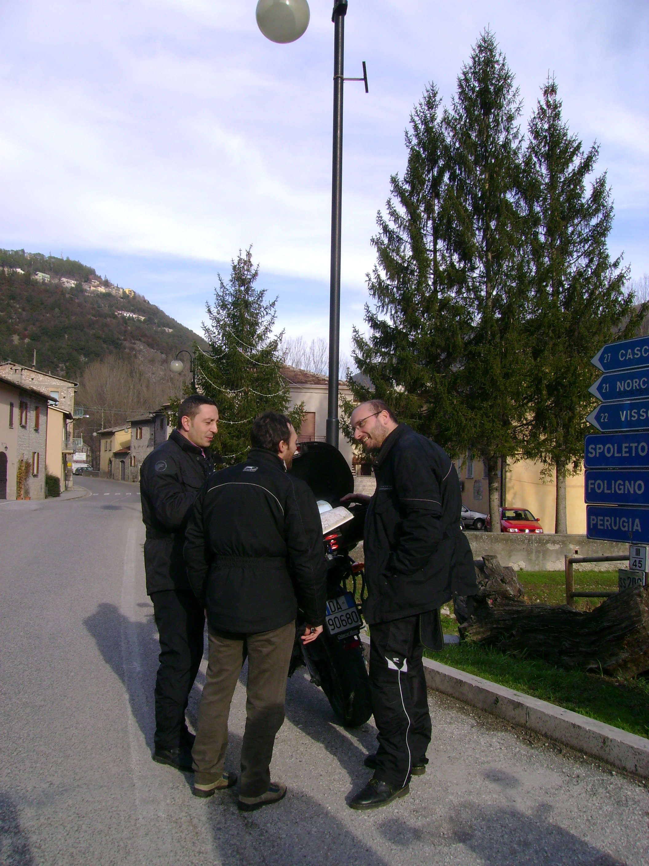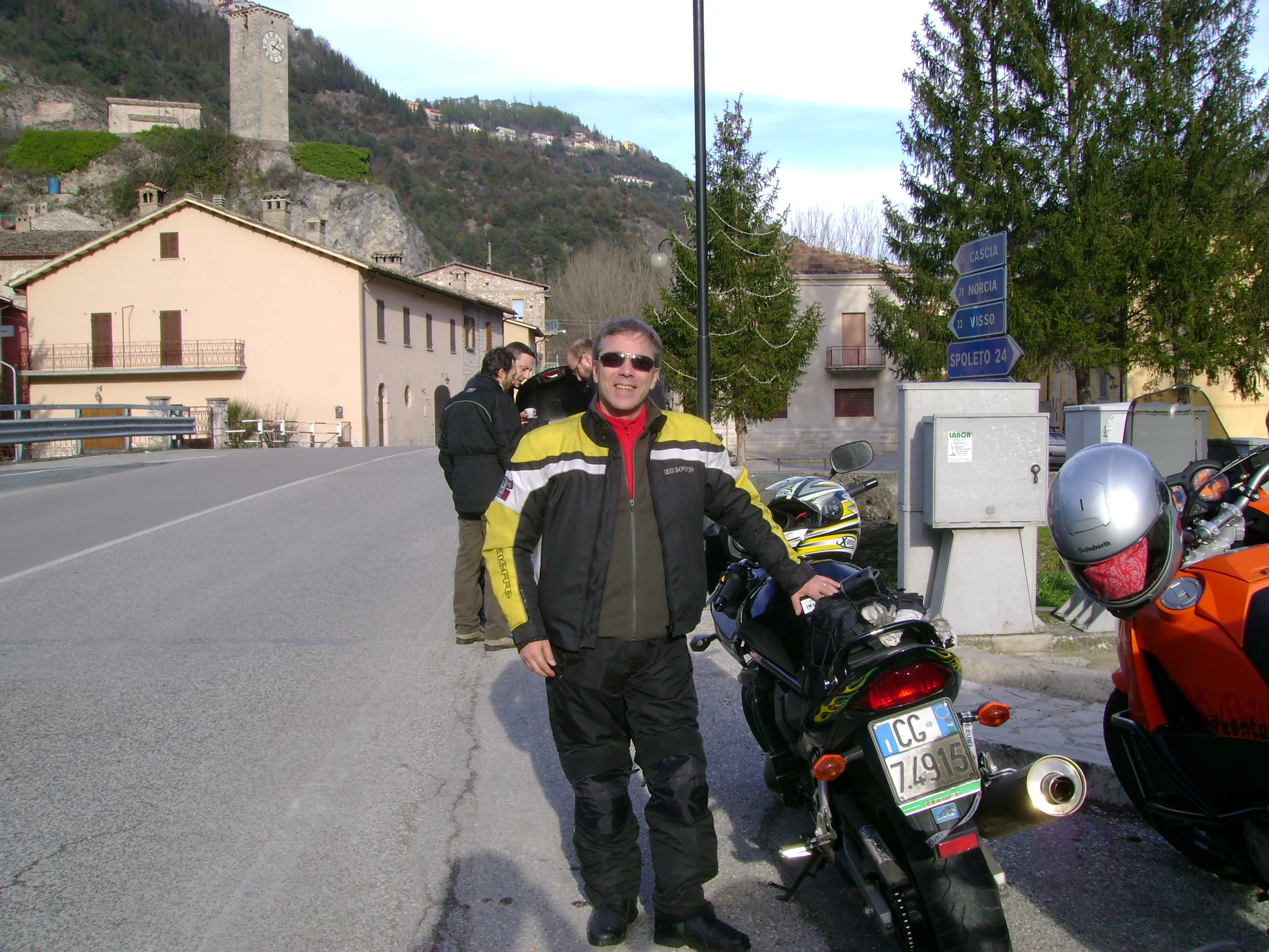 Con la SS 313 Tiberina raggiungiamo l’alta Sabina e svalichiamo verso Rieti passando da Contigliano: peccato non aver avuto modo di fermarsi per una foto perché la piana di Rieti è completamente immersa nella nebbia. Da lì muoviamo verso nord sulla SS 79 verso Terni. Il nostro primo obiettivo è la bella SS 209 della Valnerina. Arrivati all’altezza di Cerreto di Spoleto è già ora di rifocillarci e decidiamo per una sosta a base di porchetta locale riscaldati da un pallido sole. L’aria è comunque gradevole.