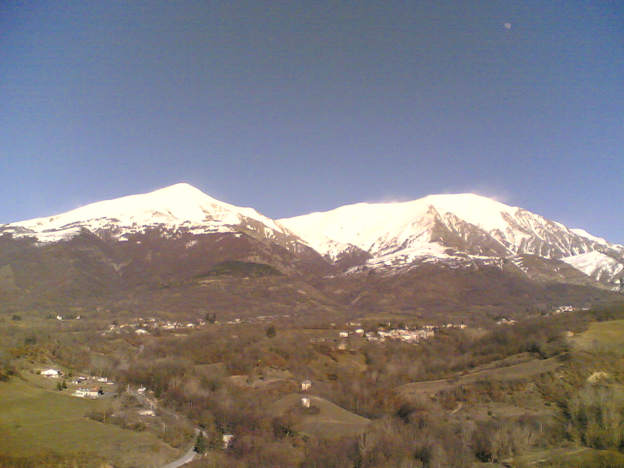 Da Antrodoco attraverso la SS 17 ed il valico del Corno abbiamo raggiunto la periferia est de L’Aquila e da lì la decisione di salire sulla SS 80 verso il valico delle Capannelle è stata facile: questa strada è sempre davvero molto bella da percorrere in tutte le stagioni purché ovviamente l’asfalto sia asciutto ed oggi l’aria 'è davvero estremamente secca. Nonostante la stagione avanzata non sembra esserci molta neve a bassa quota e la mia recente uscita a Campo Imperatore infatti lo ha parzialmente dimostrato.