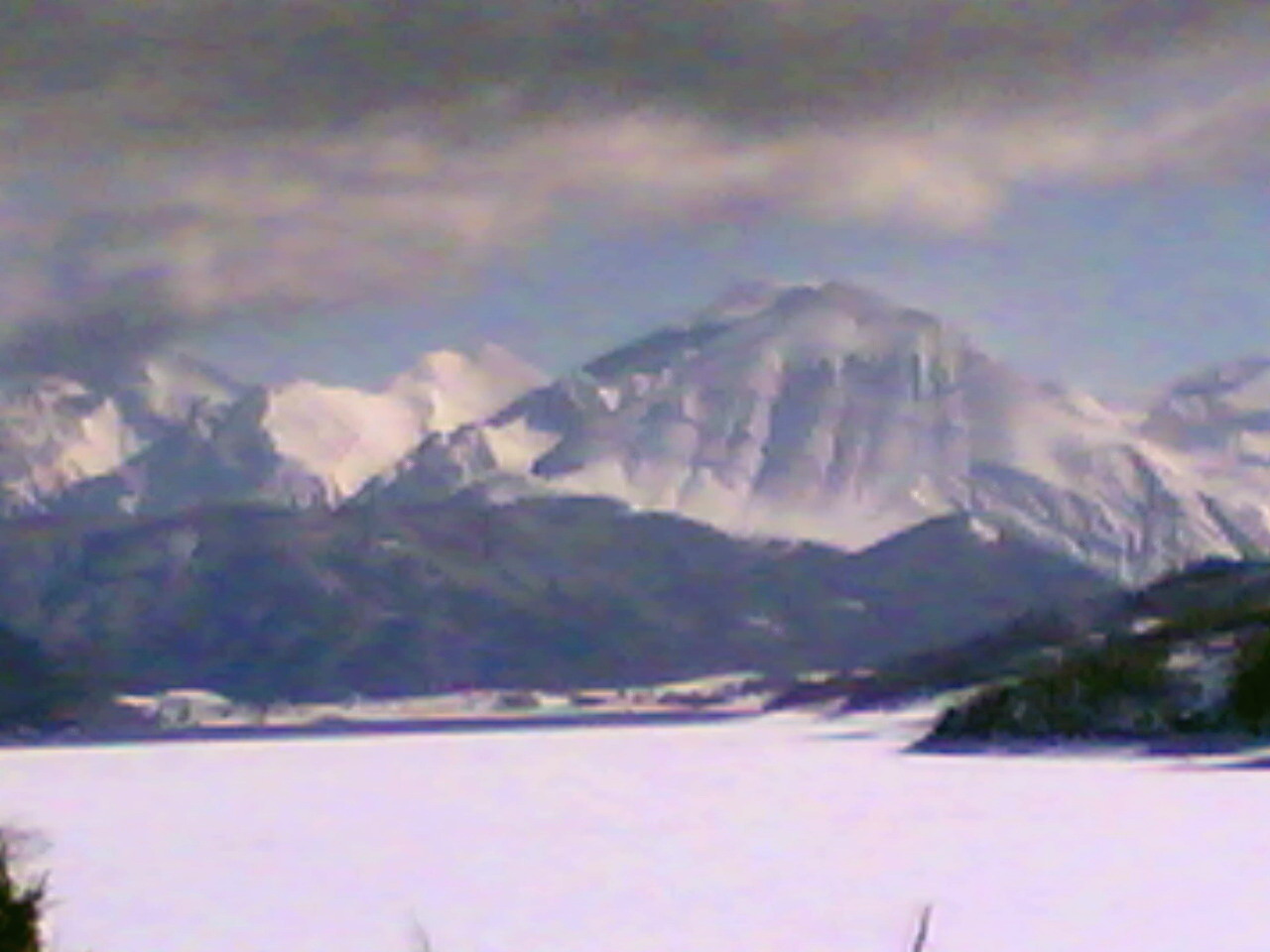 Lo spettacolo intorno era eccezionale col lago parzialmente gelato, cosa che accade qui quasi ogni anno e ad un certo punto abbiamo assistito ad un fenomeno meteo bellissimo. Una nuvola bassa carica di umidità passava spinta dal forte vento sugli alberi secchi del bosco scaricando l’umidita che gelava quasi all’istante: era come se qualcuno con una gigantesca bomboletta spray stesse imbiancando gli alberi!