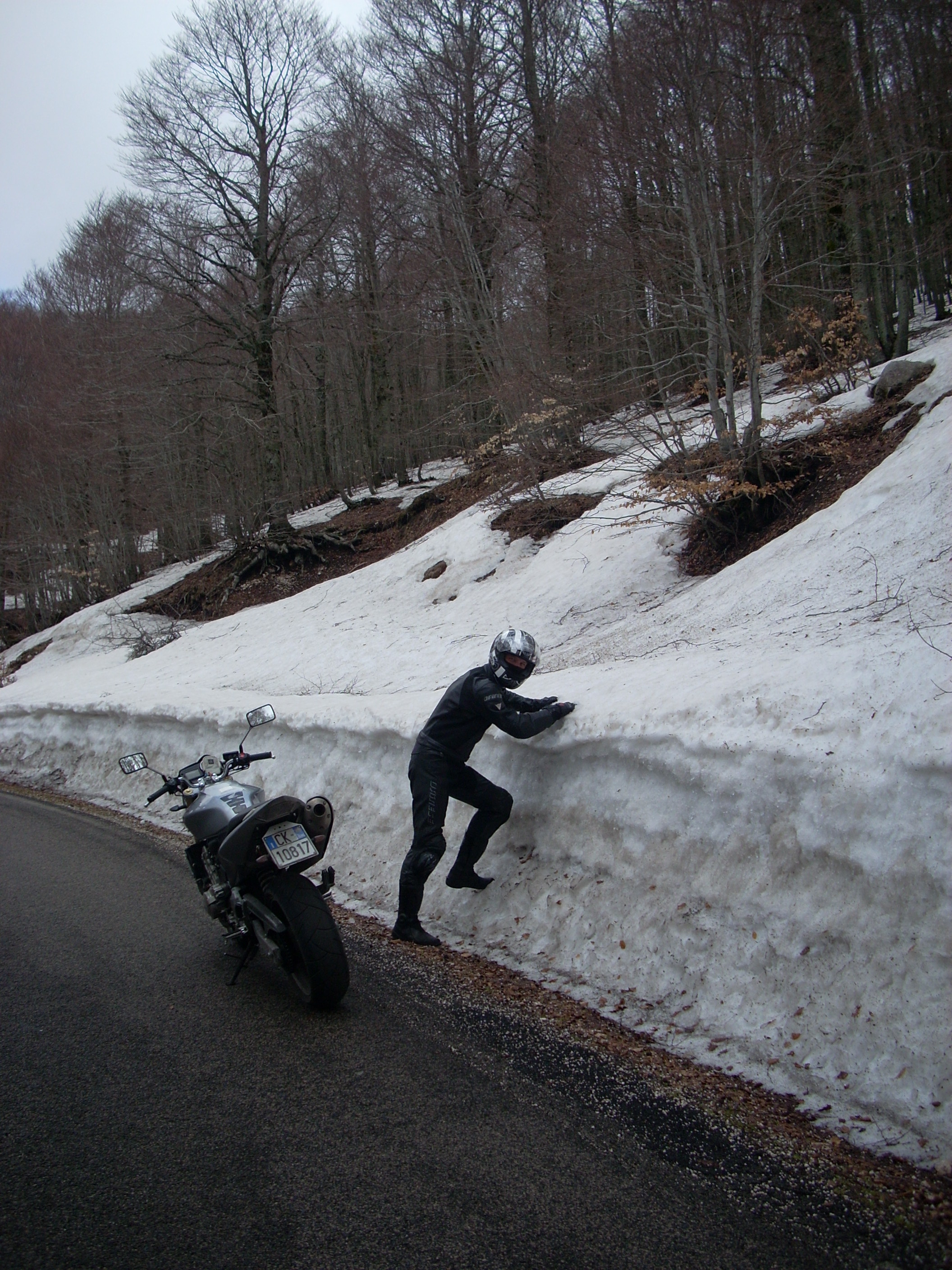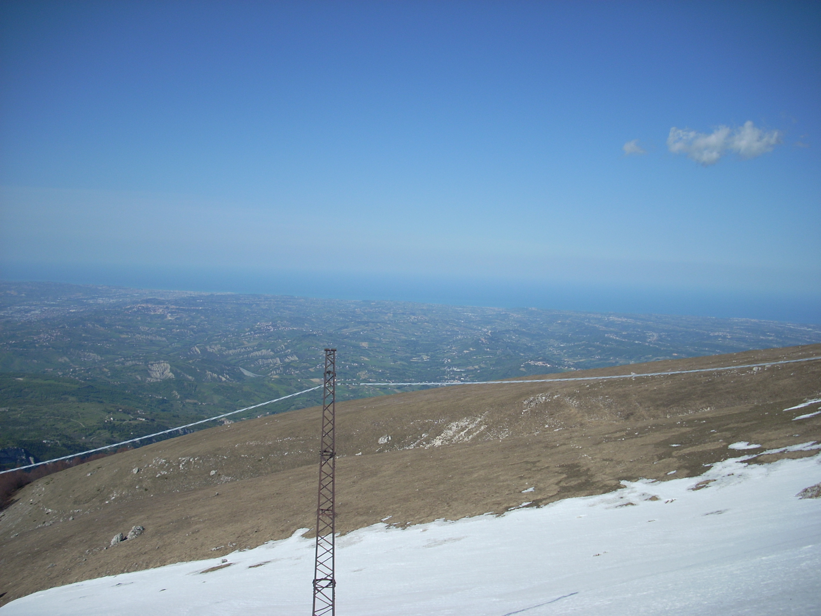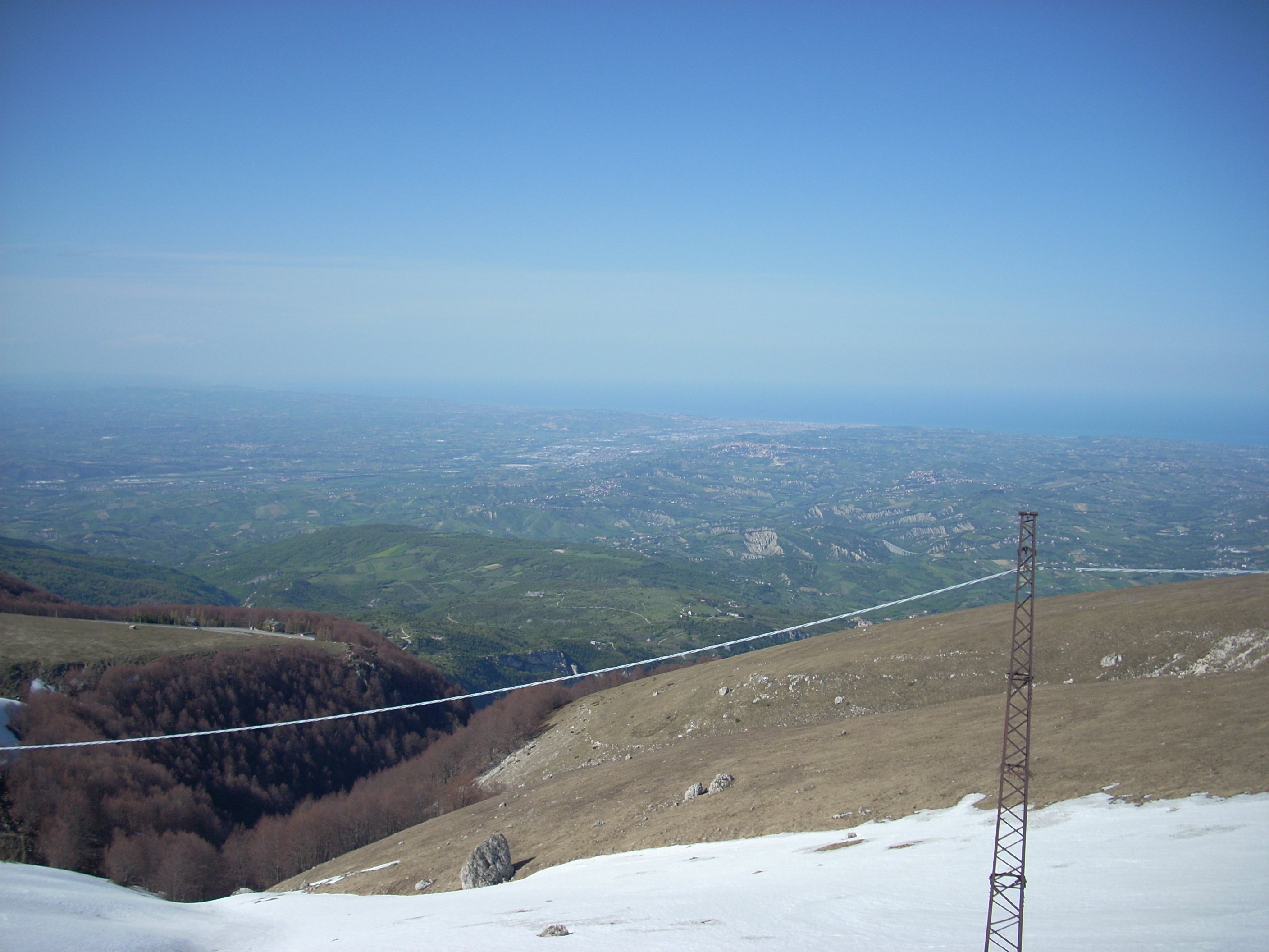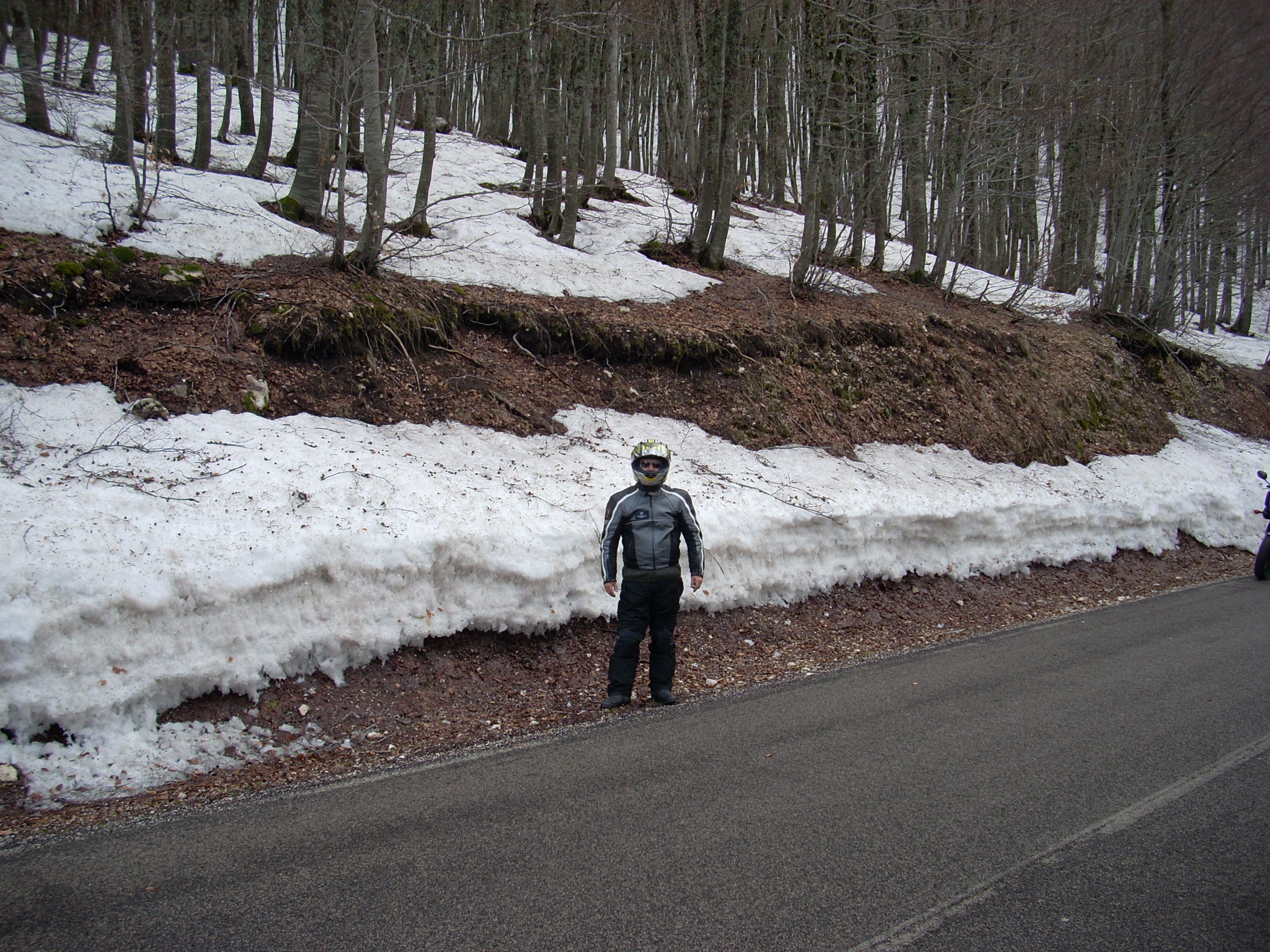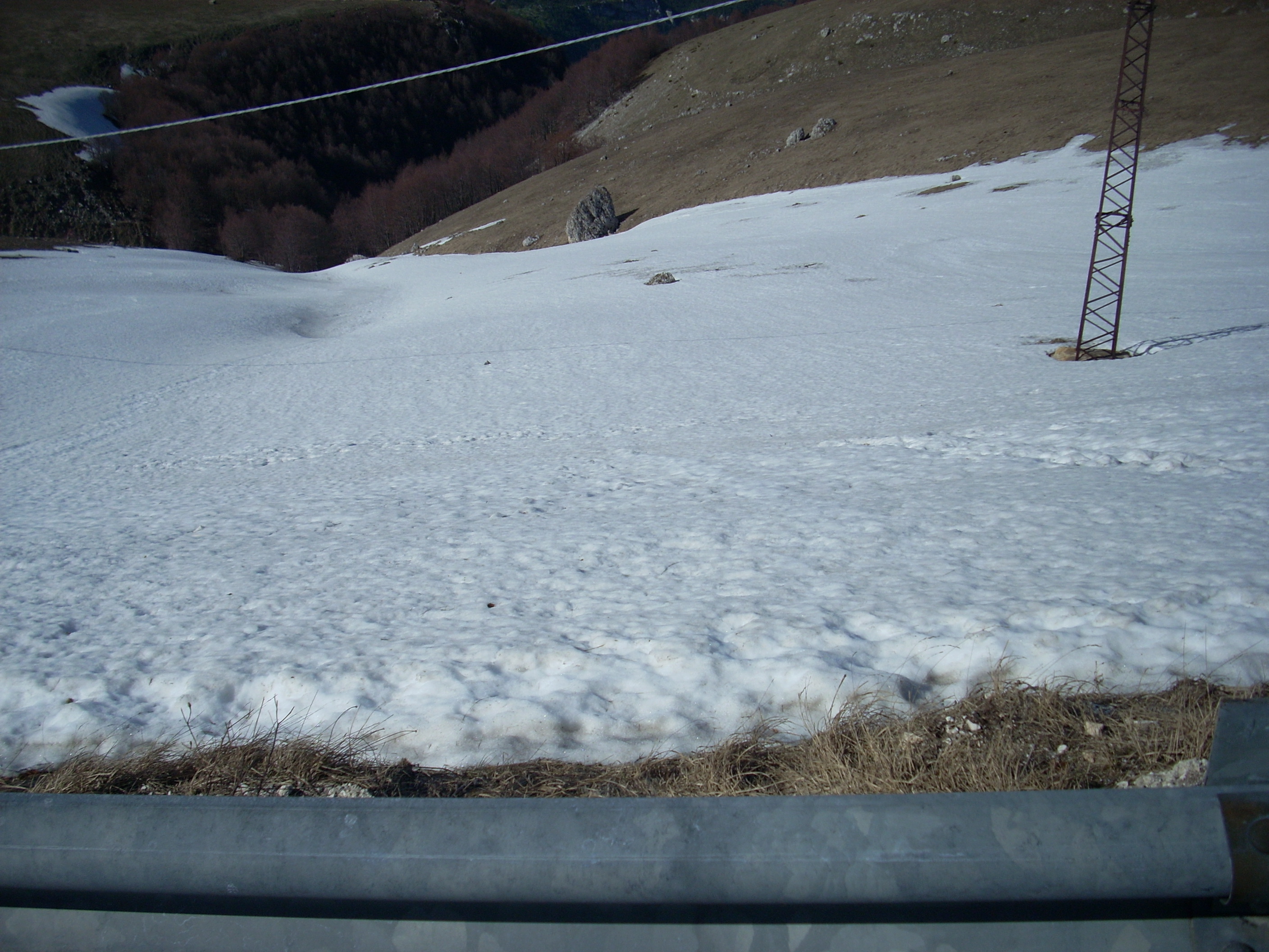 Da Guardiagrele saliamo decisi verso Passolanciano e da lì al Blockhaus, sotto la Maielletta dove la strada termina. L’aria è limpida e c’è ancora tanta neve intorno. Il panorama verso la costa Adriatica è bellissimo.