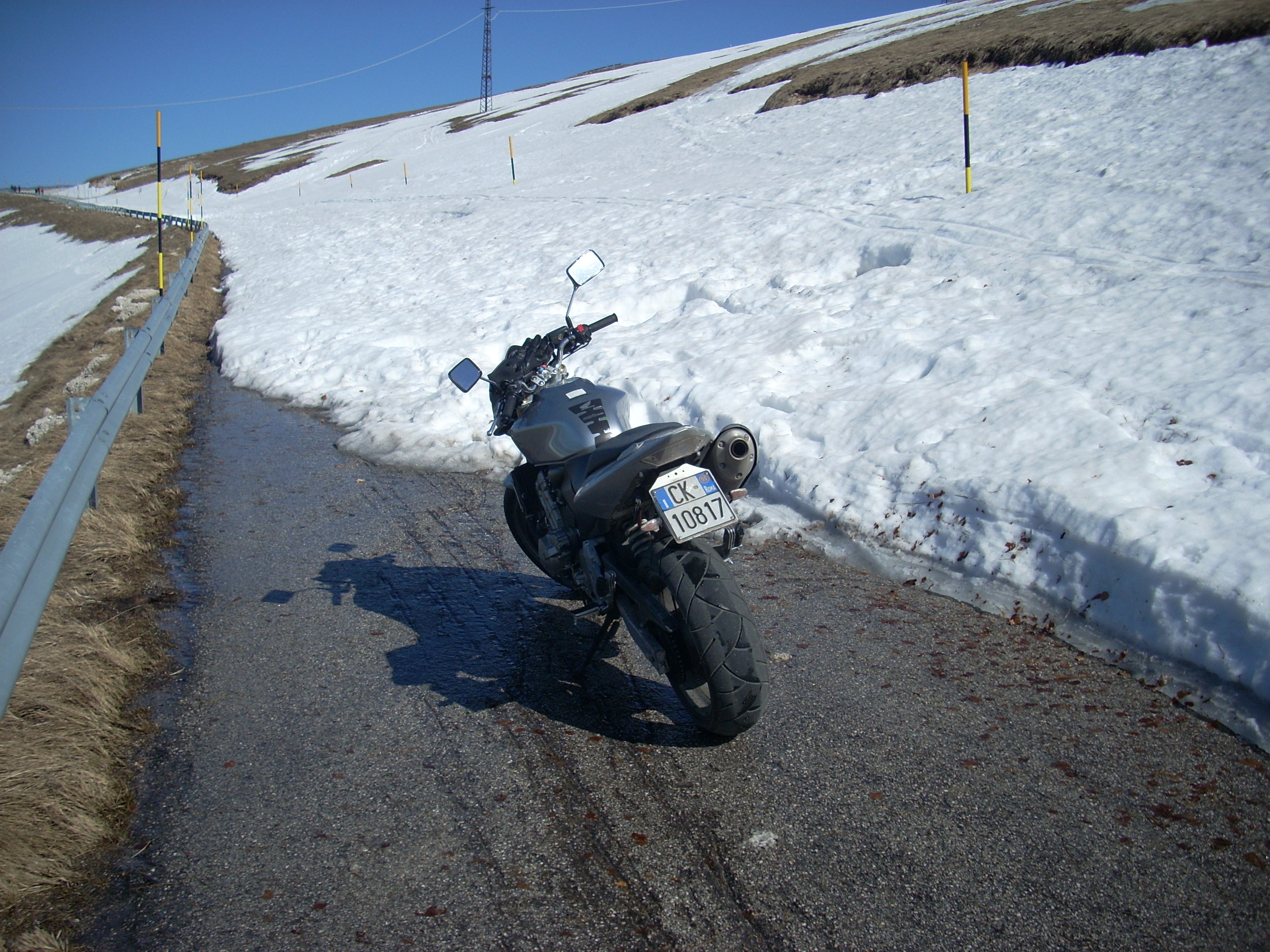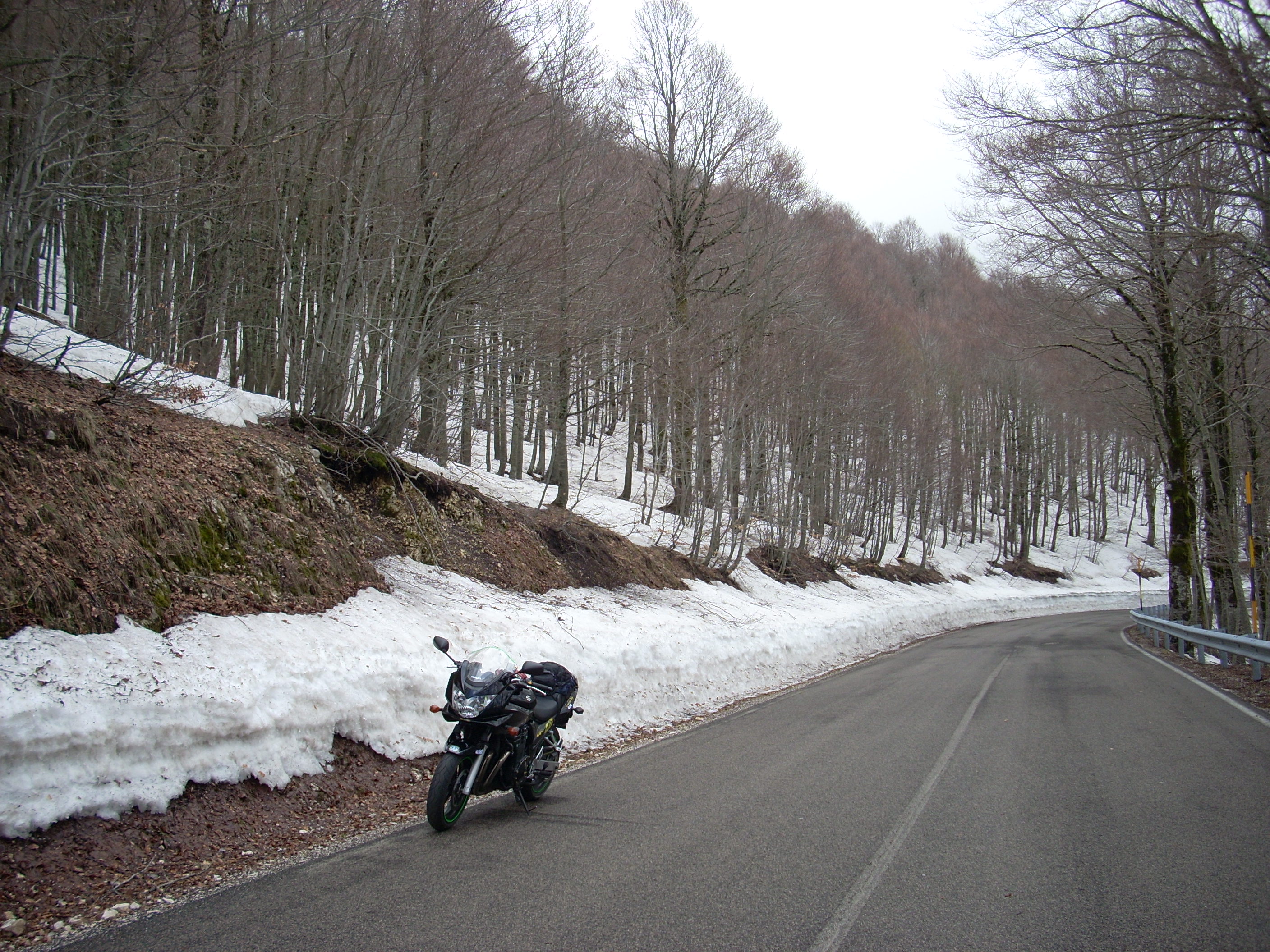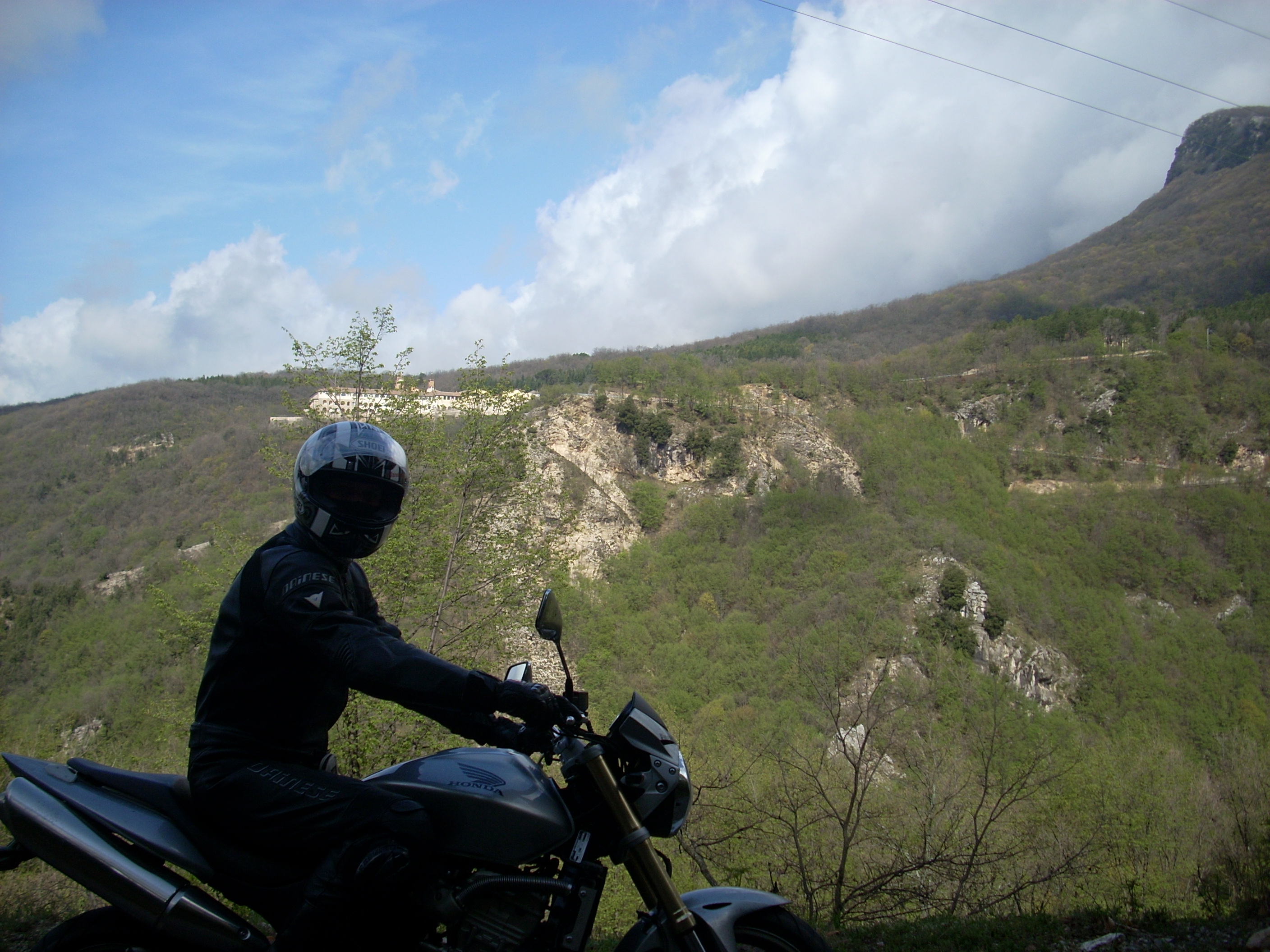 Con me oggi compagno di girata c’è l’ottimo Andrea e la sua Hornet che tante altre volte ha condiviso con me le emozioni dell’andare in moto. Ecco se c’è un aspetto delle solitarie che spesso faccio è proprio questo: la mancanza di qualcuno con cui condividere certi passaggi, certe emozioni che danno il percorrere le strade in motocicletta con ai lati o di fronte paesaggi montani bellissimi.
