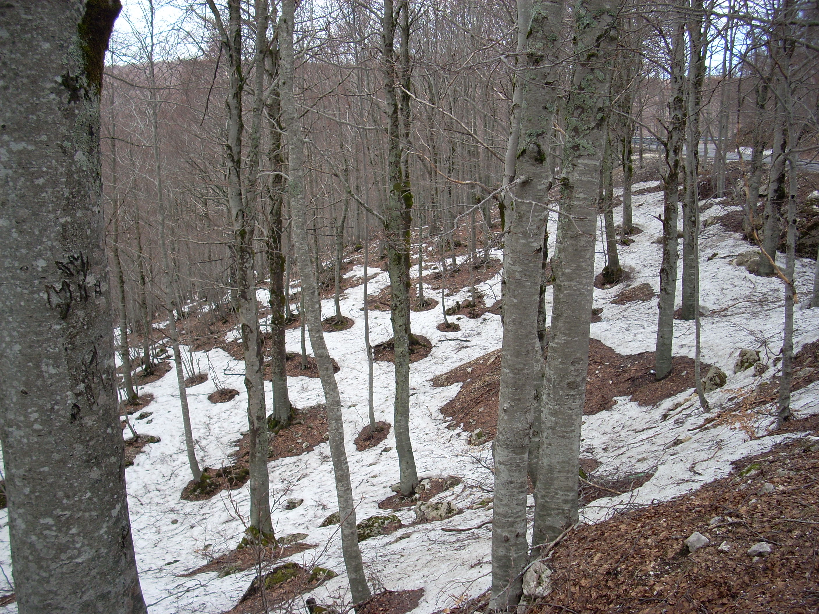 Appena entriamo nel bosco e soprattutto dopo il valico scendendo verso Opi la neve intorno è ancora alta ed abbondante e come sempre accade viaggiare in queste condizioni è un piacere per gli occhi.