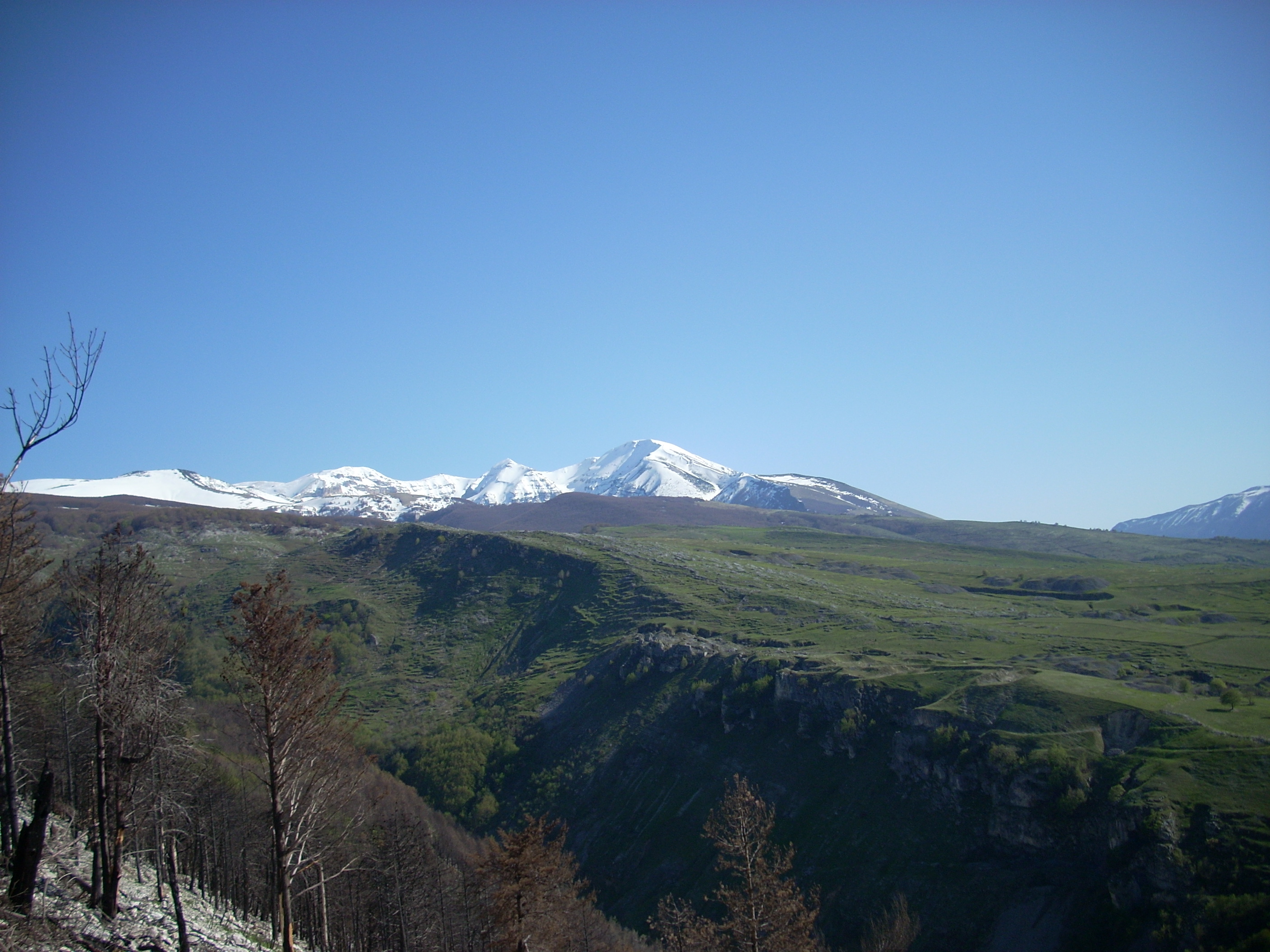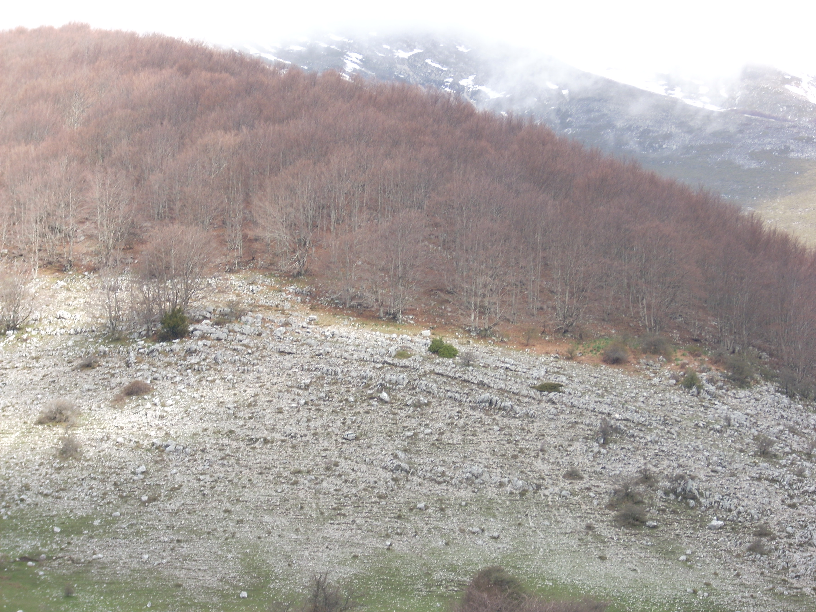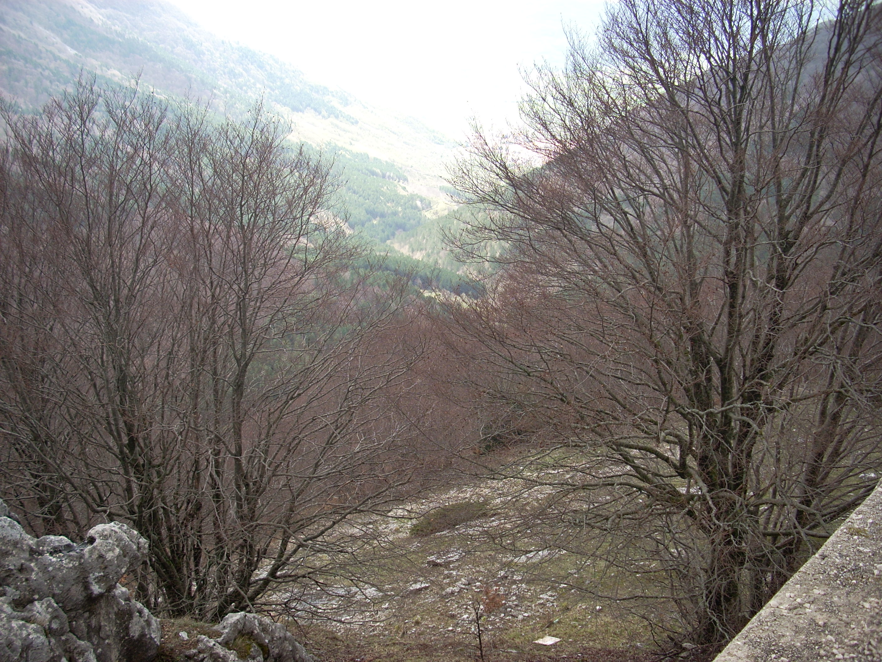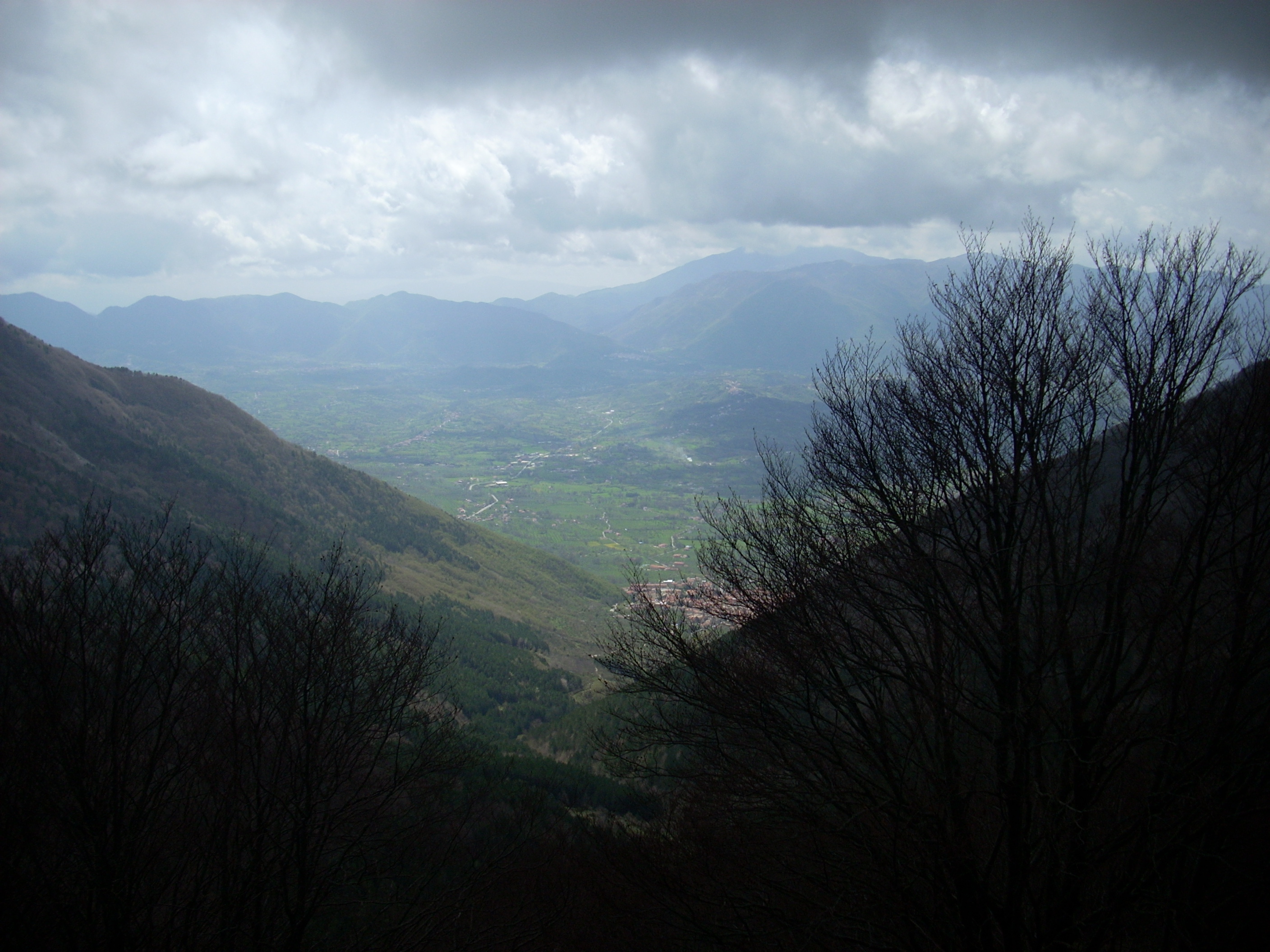 Da lì, dopo una breve sosta nell’abbazia silenziosa, riprendiamo per Sora passando per la provinciale ma non prima di aver fatto una deviazione per Prato di Campoli. La strada va e torna da questo posto senza altri sbocchi ma è un posto splendido, un altopiano a 1200 metri orlato a nord-est dalle cime che separano la valle di Veroli dalla Val Roveto in Abruzzo. Ci sono ancora macchie di neve ed i bucaneve hanno iniziato a spuntare lasciando le tipiche buchette prive di neve intorno al gambo. Anche se ancora non è uscito fuori il sole il posto è davvero bello e ci vengo sempre volentieri.
