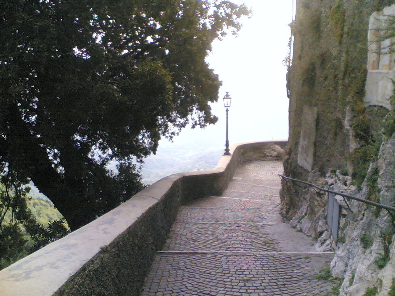 La troviamo parzialmente chiusa da un new jersey aggirabile e non ne capiamo i motivi ma un automobilista che sale in senso contrario ci dice che è perfettamente percorribile, salvo fare attenzione alle foglie bagnate.