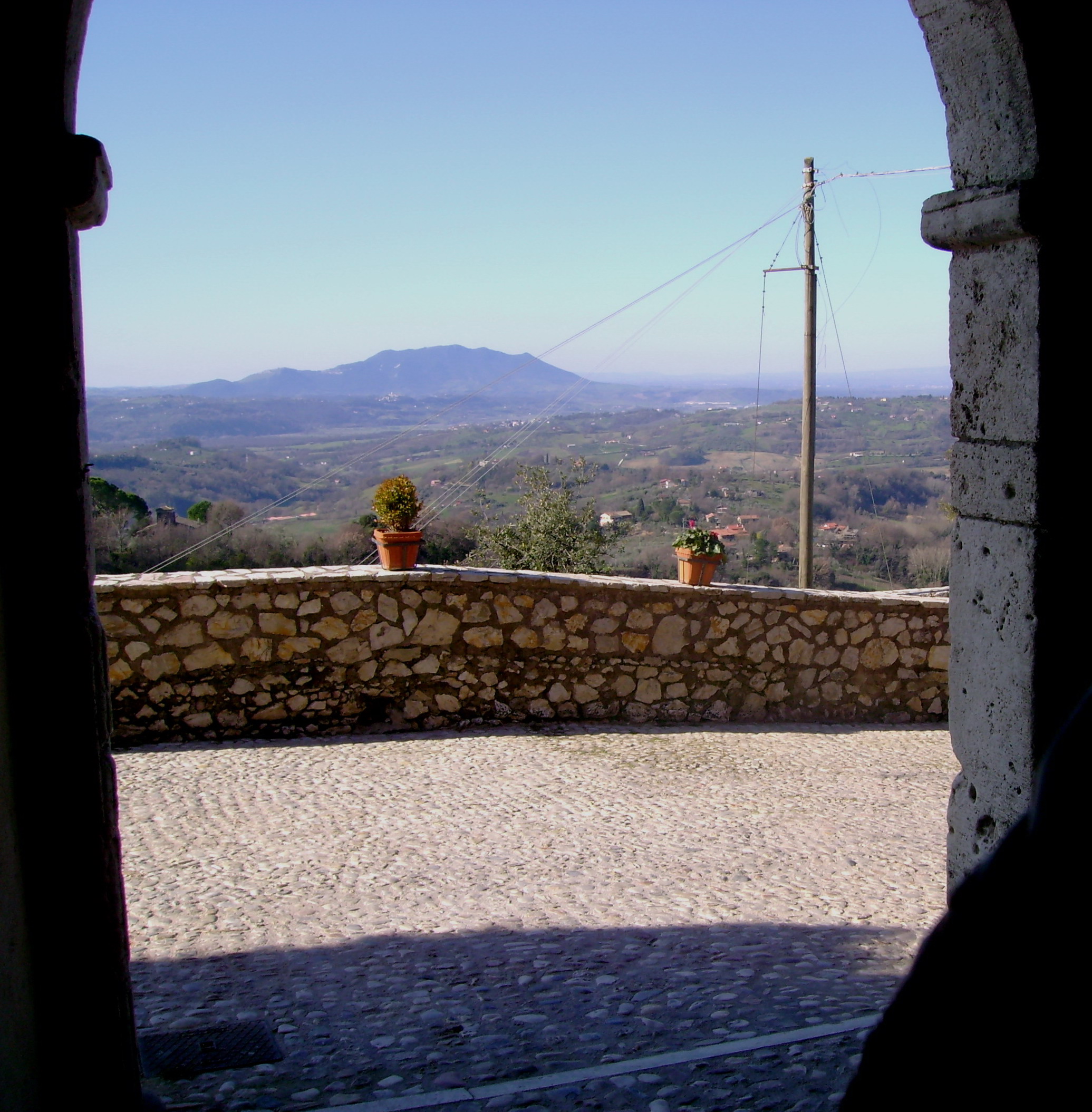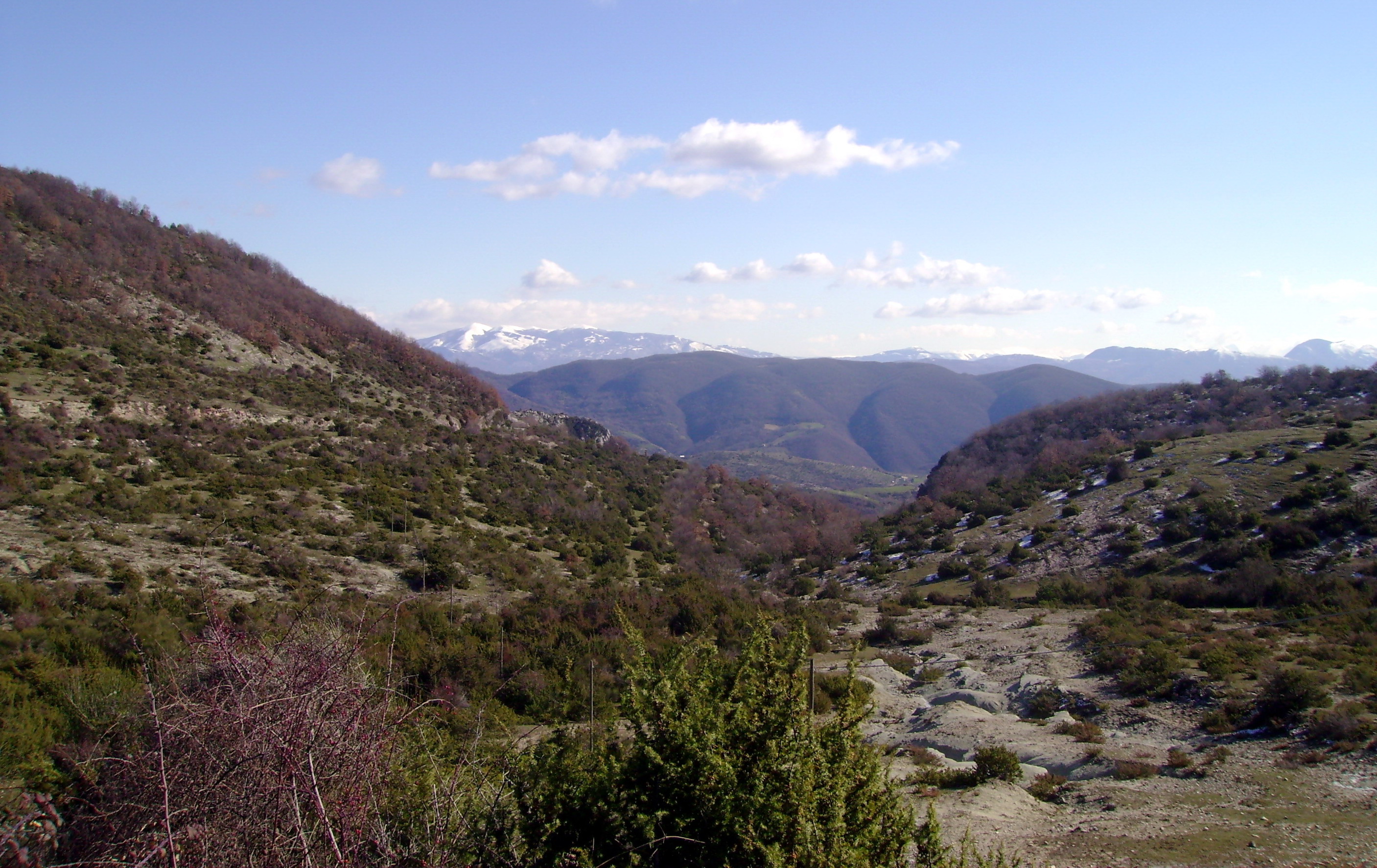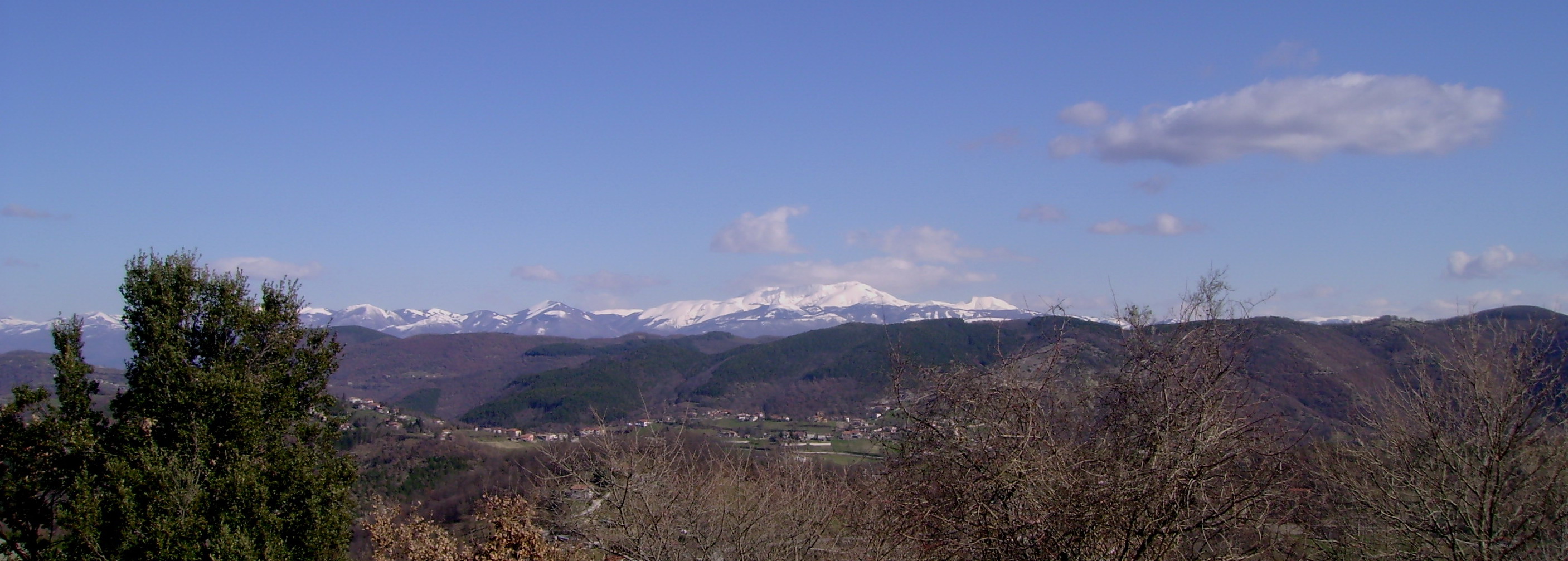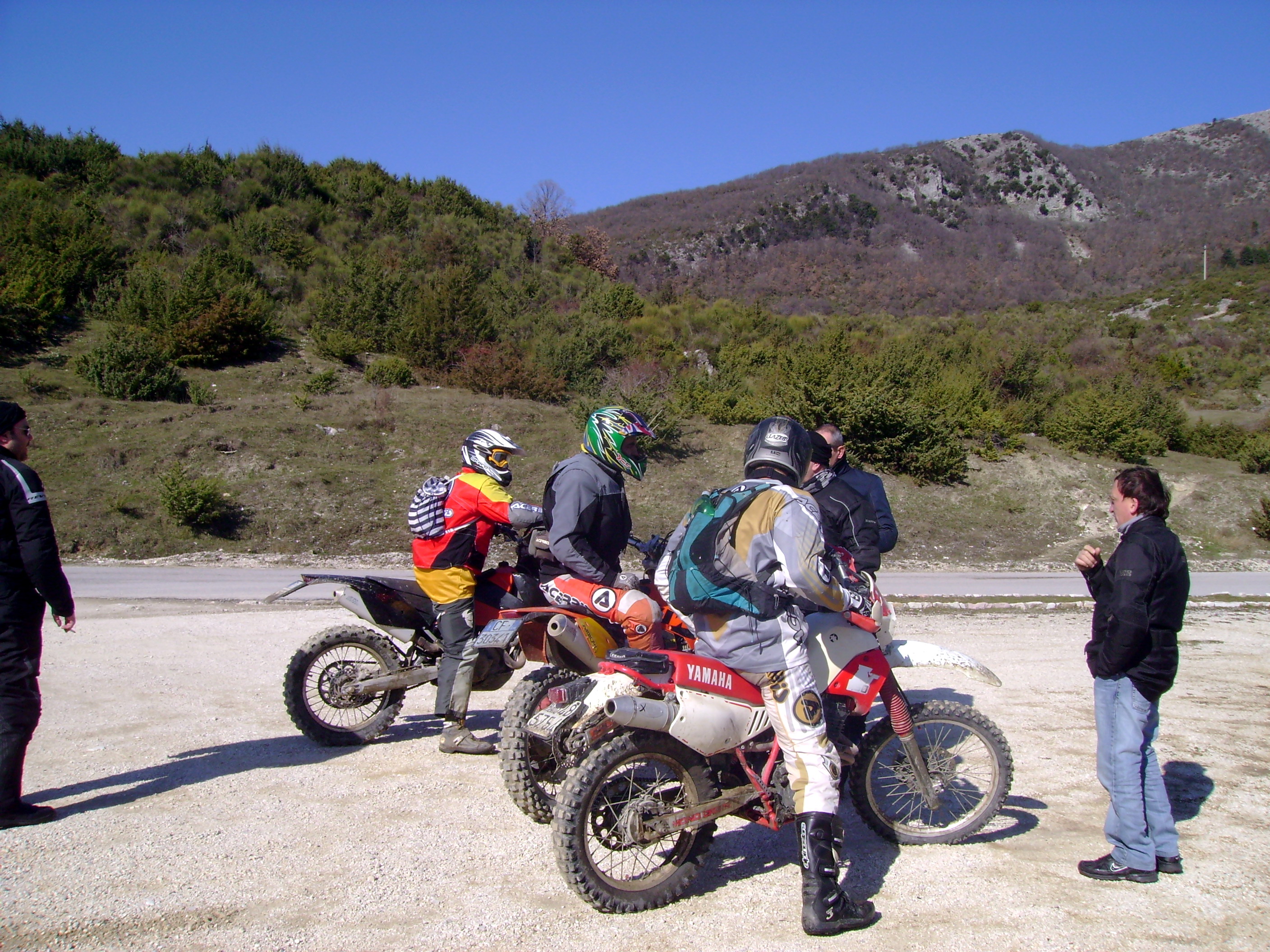 Raggiungiamo Rieti da Poggio Mirteto e Poggio Catino e dalle piccole e pochissimo battute provinciali che tagliano la Sabina, giusto in tempo per una vista insolita del Monte Soratte in questo giorno di cielo terso. Su uno di questi passaggi incrociamo anche dei motociclisti con moto da enduro e cross che sbucano dal bosco!