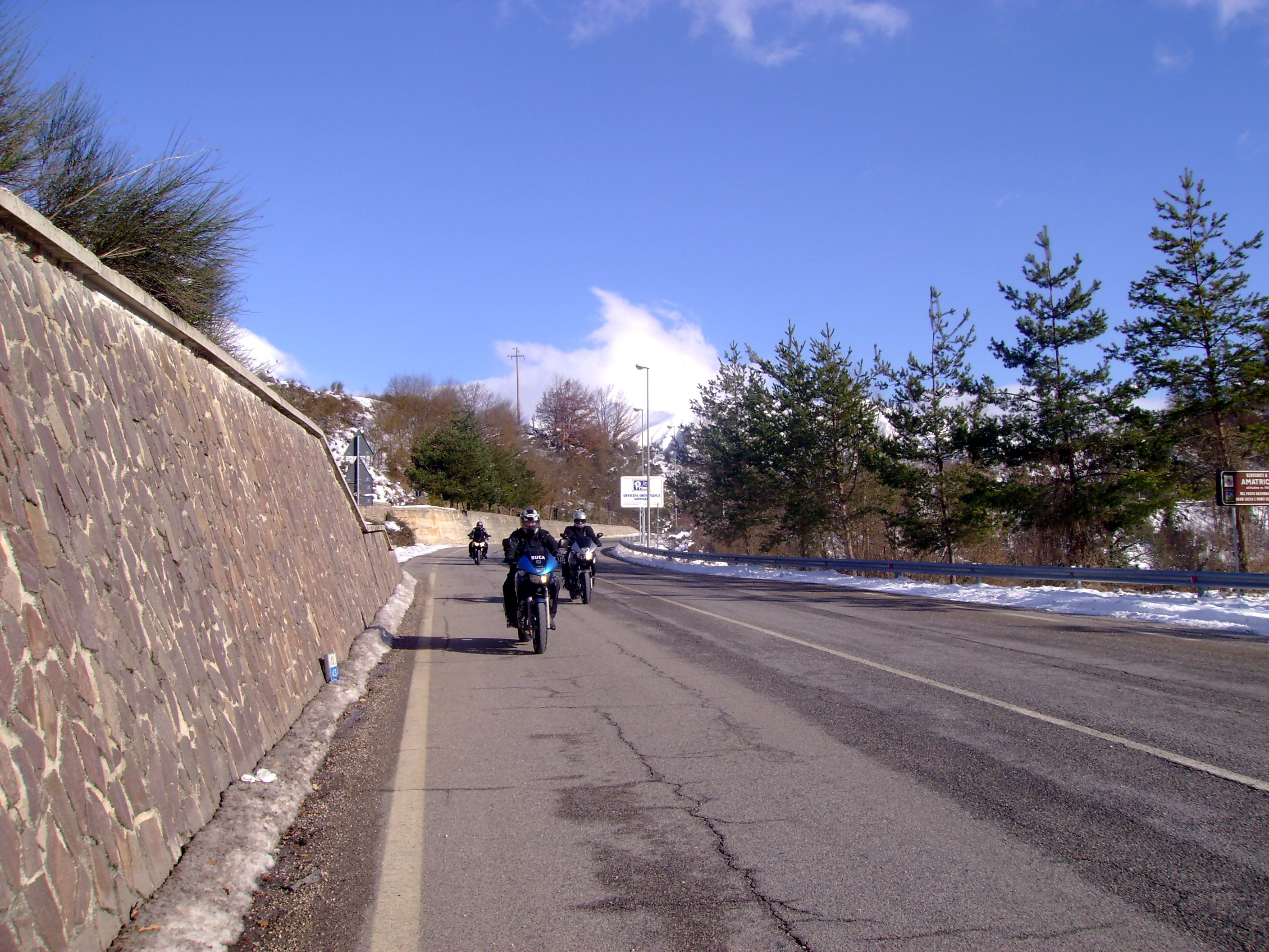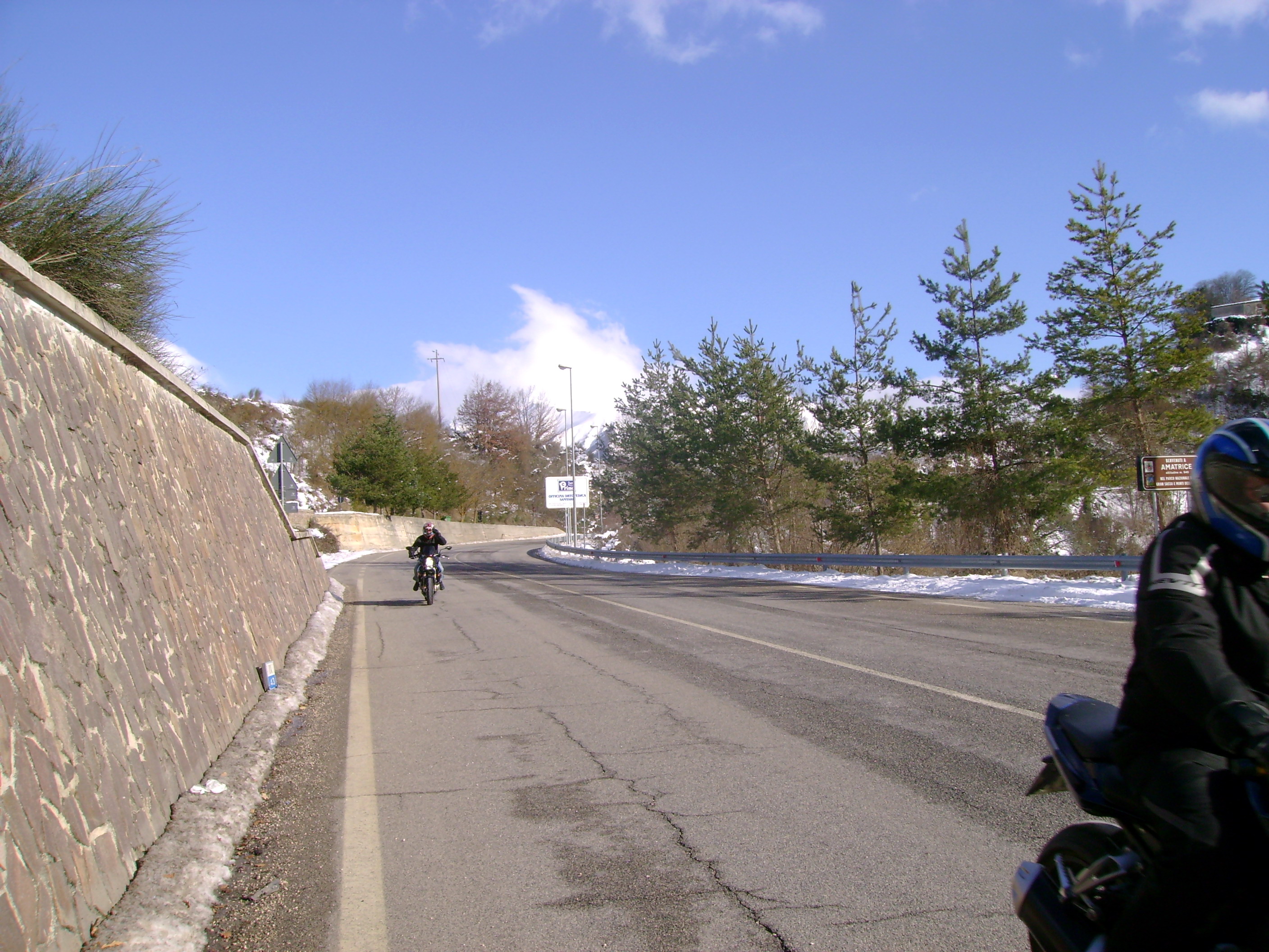 Non fa freddo o per lo meno non lo sento: mi sono ben coperto, con tanto di sottogola che non fa passare neanche uno spiffero! L’idea è quella di raggiungere Amatrice per una spaghettata…ovviamente amatriciana al ristorante “Roma” autodefinitosi il re del condimento in oggetto…sarà ma ne ho mangiate di migliori!