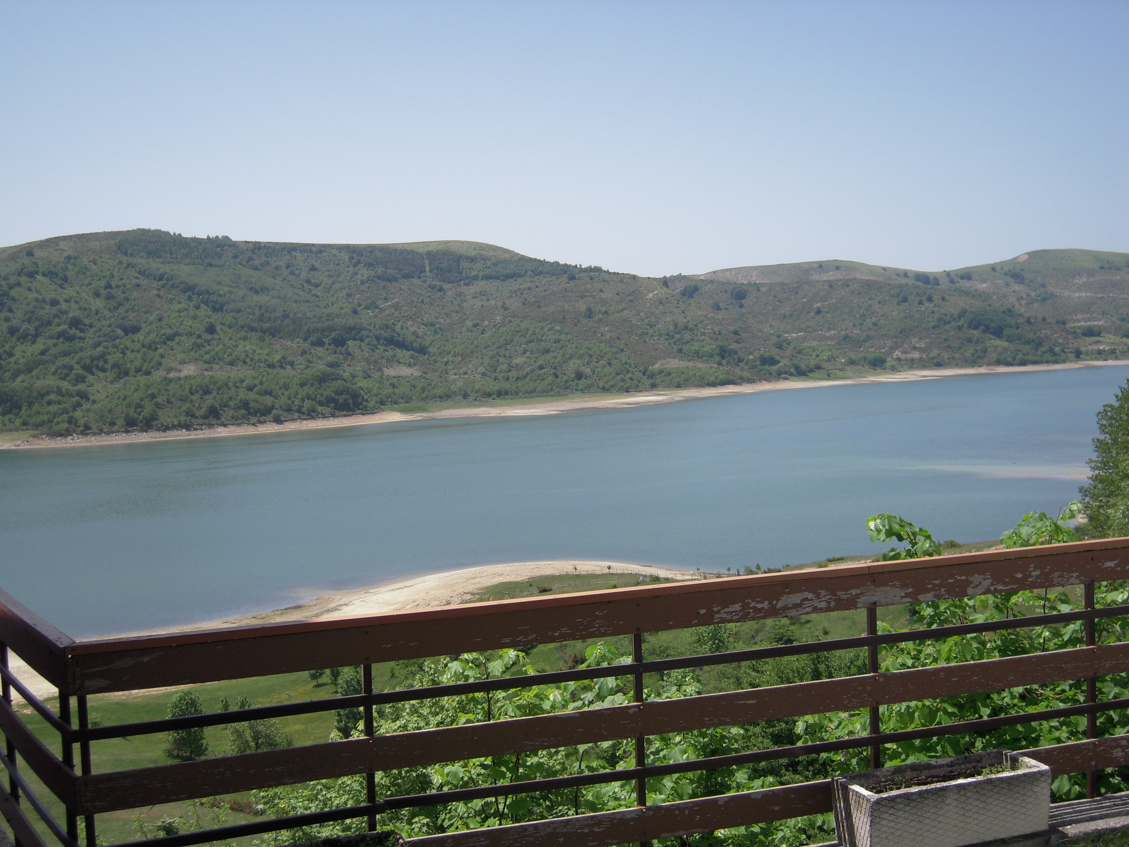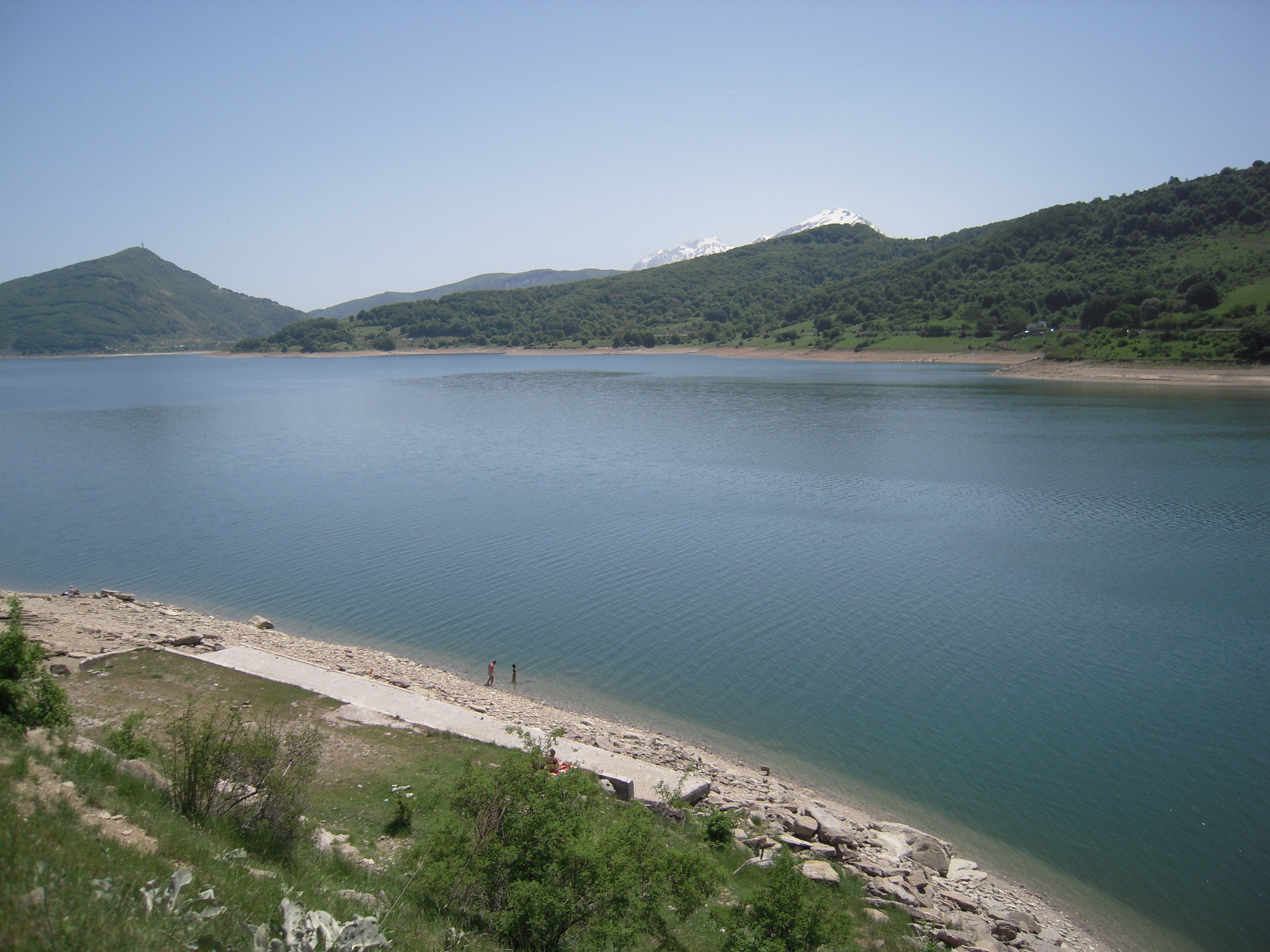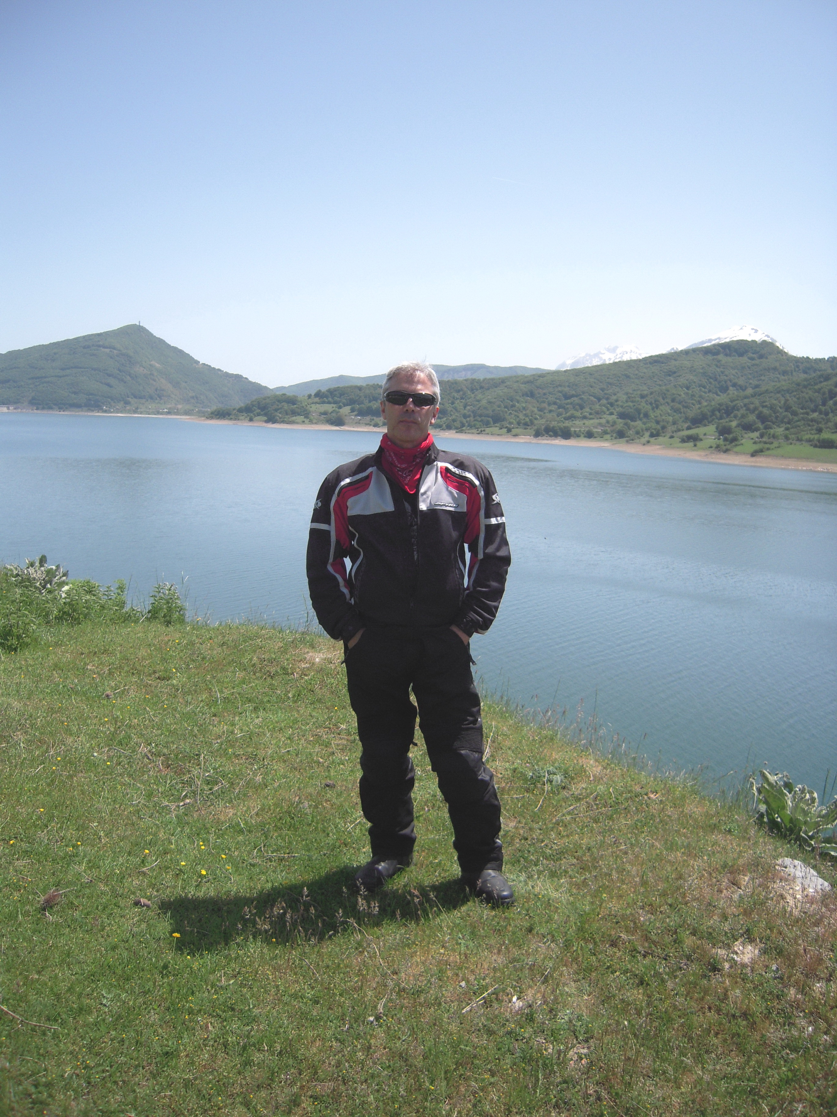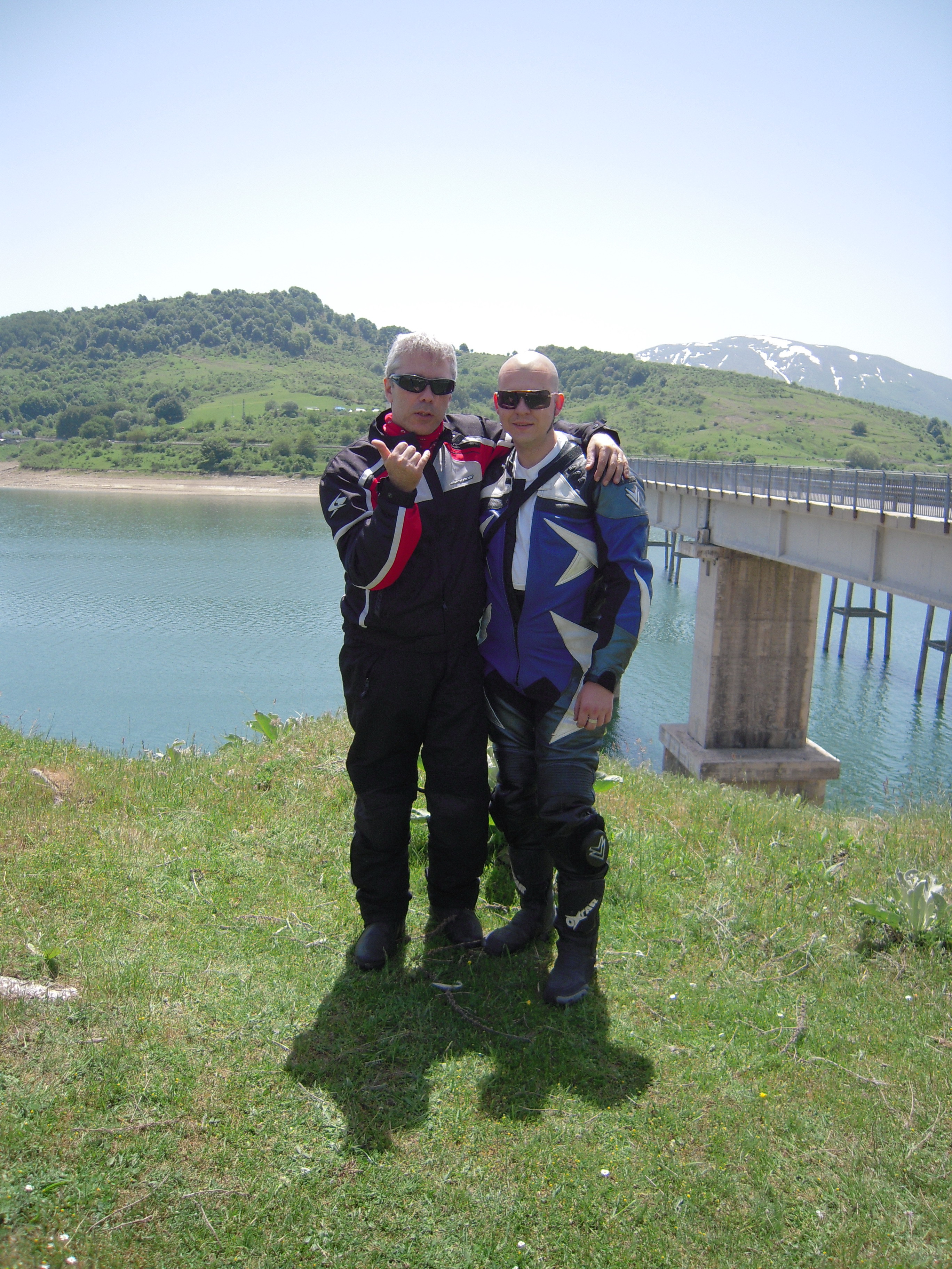 Da Scoppito saliamo sulla SS 80 verso il Valico delle Capannelle. Che fantastico tratto di strada è questo: asfalto sempre ottimamente tenuto, passaggi entusiasmanti, variazioni di traiettoria continue, bosco ombroso e paesaggi eccezionali. Subito dopo il valico la bella salita al lago di Campotosto dove con lo stesso ragazzo ero stato forse un paio d’anni fa.