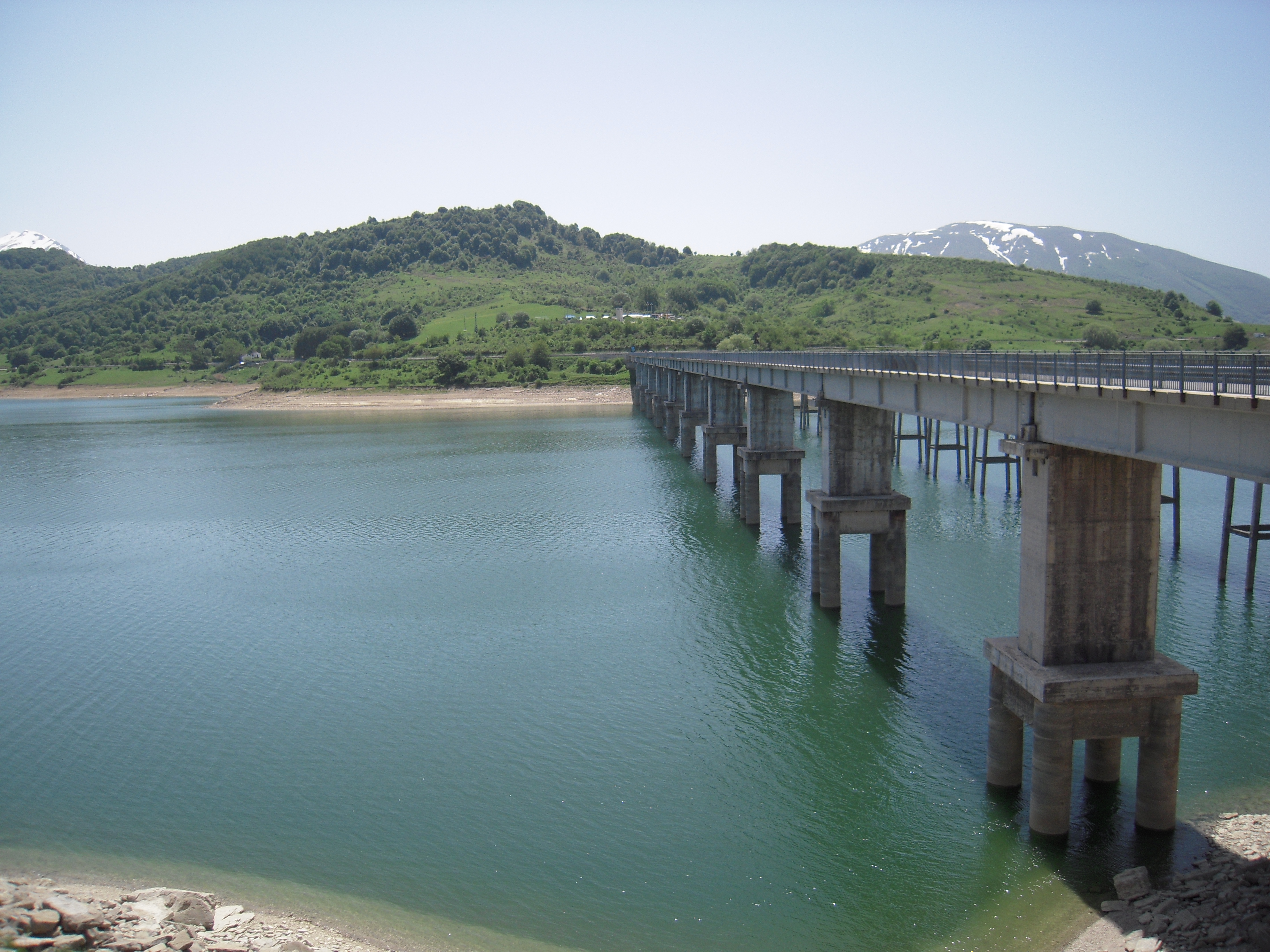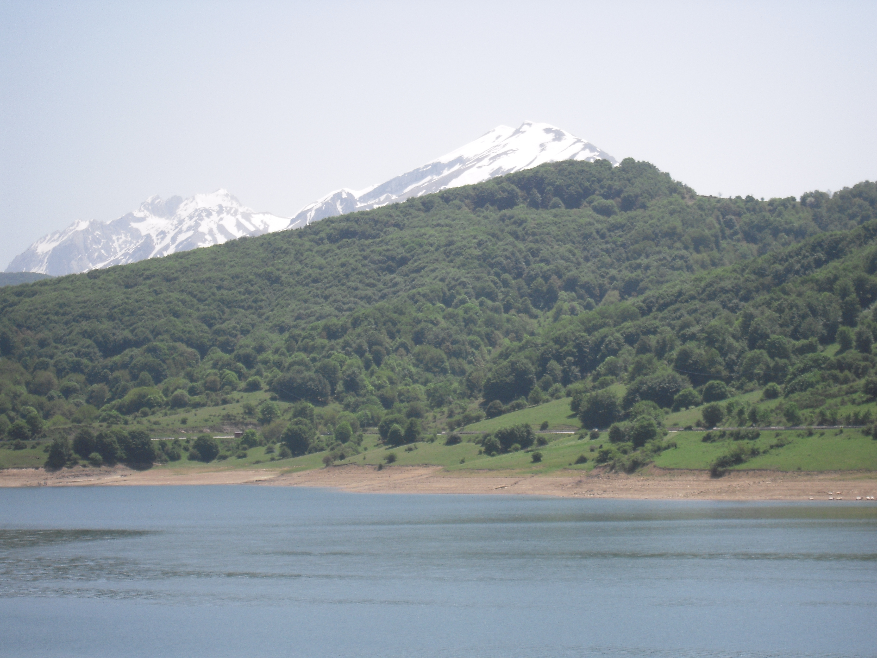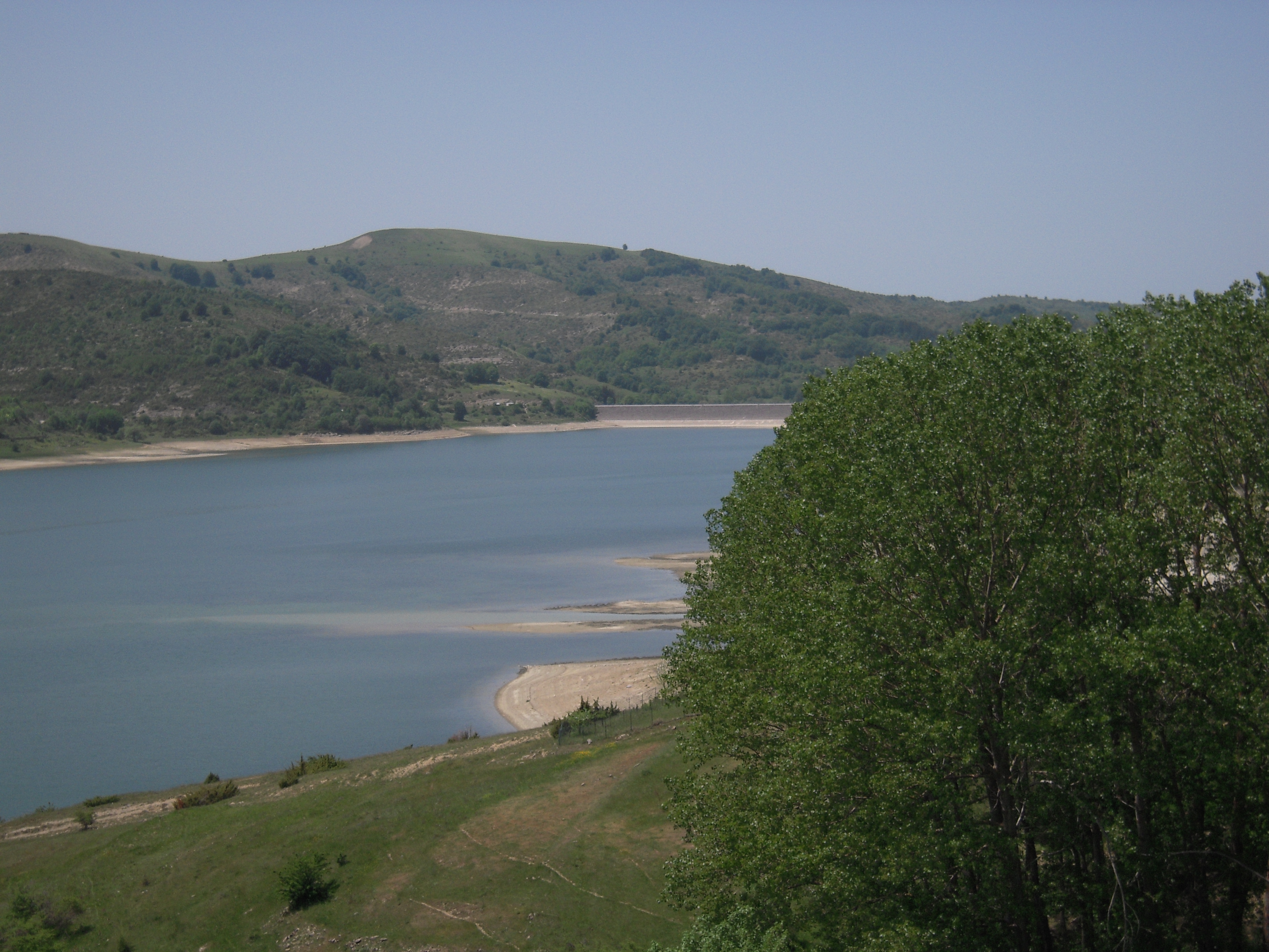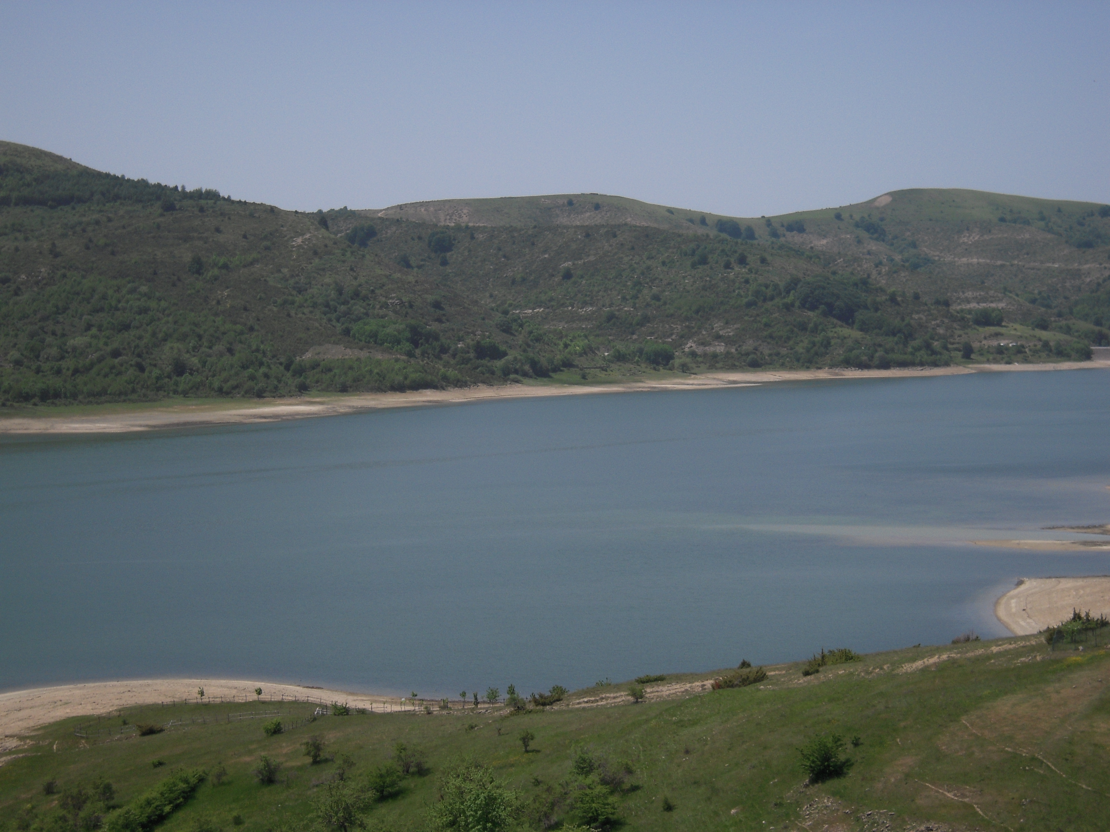 Da Scoppito saliamo sulla SS 80 verso il Valico delle Capannelle. Che fantastico tratto di strada è questo: asfalto sempre ottimamente tenuto, passaggi entusiasmanti, variazioni di traiettoria continue, bosco ombroso e paesaggi eccezionali. Subito dopo il valico la bella salita al lago di Campotosto dove con lo stesso ragazzo ero stato forse un paio d’anni fa.