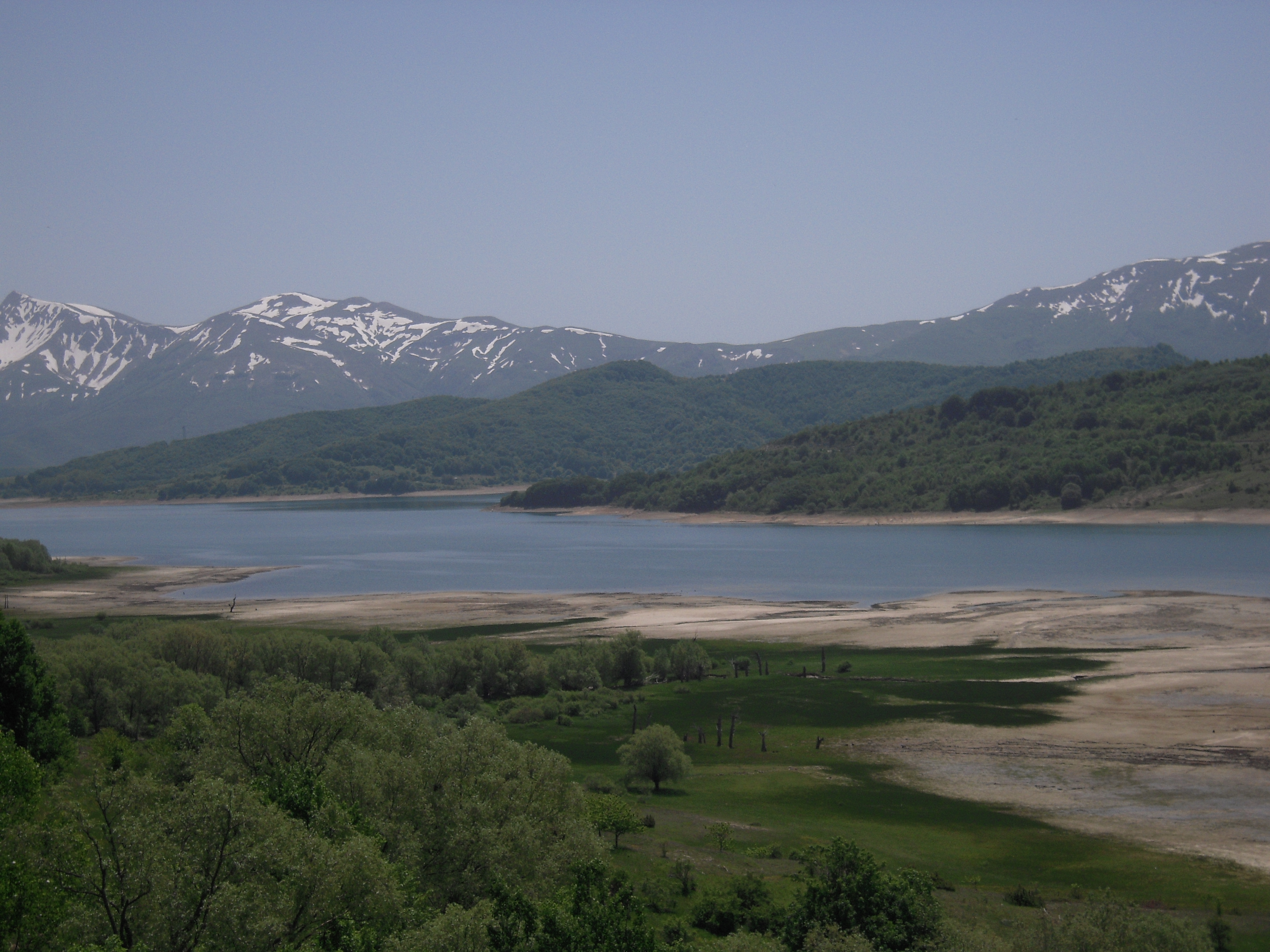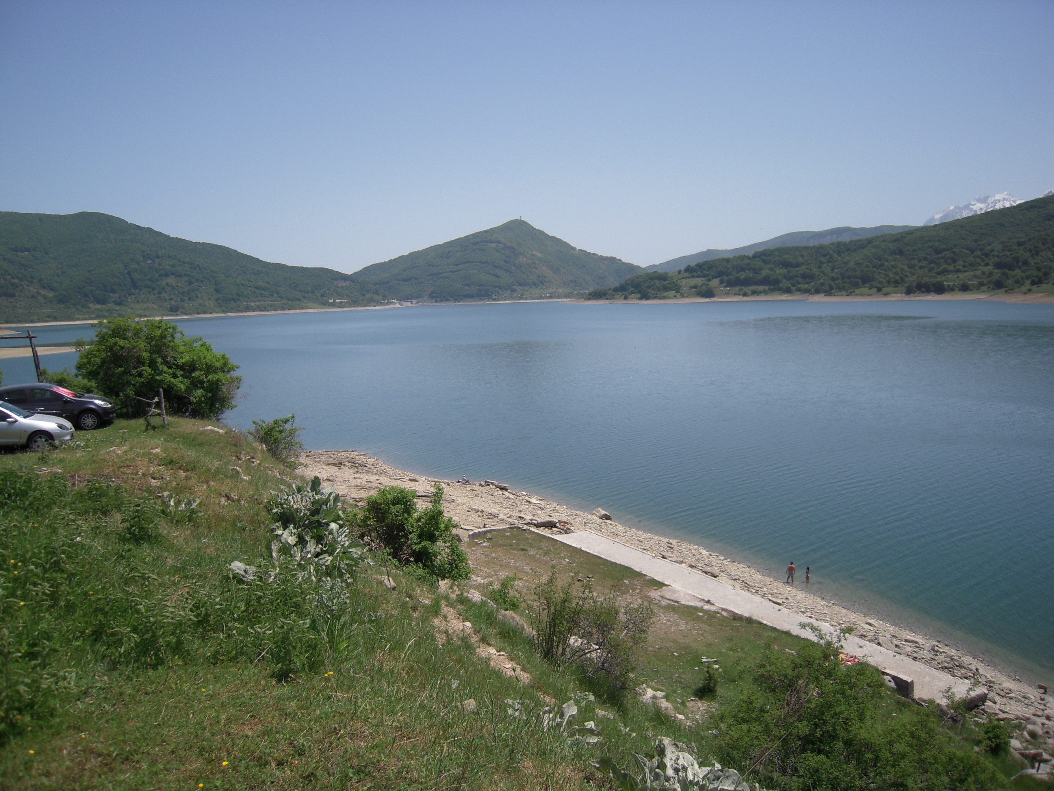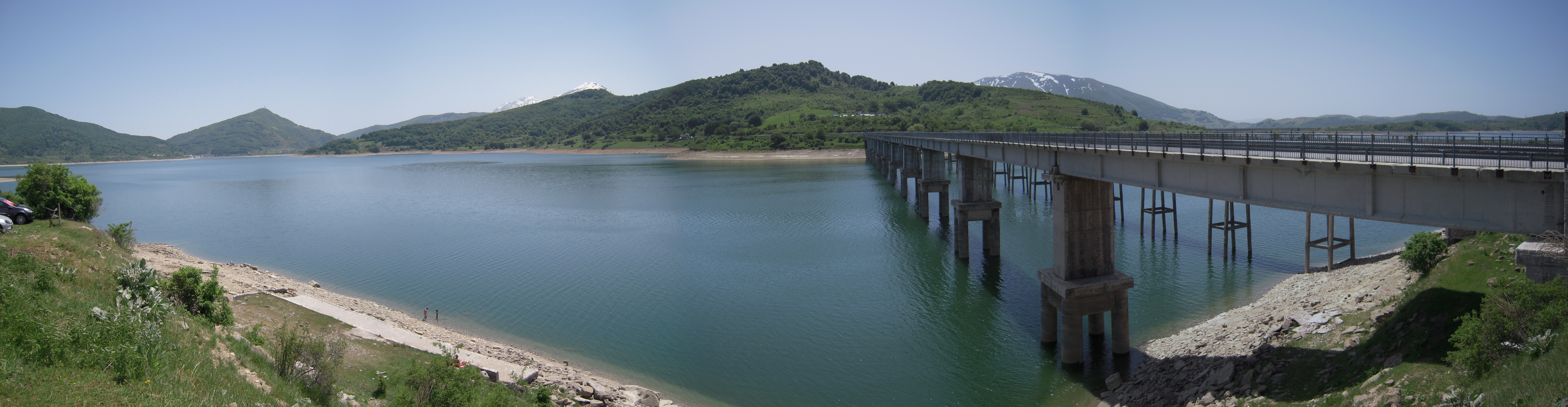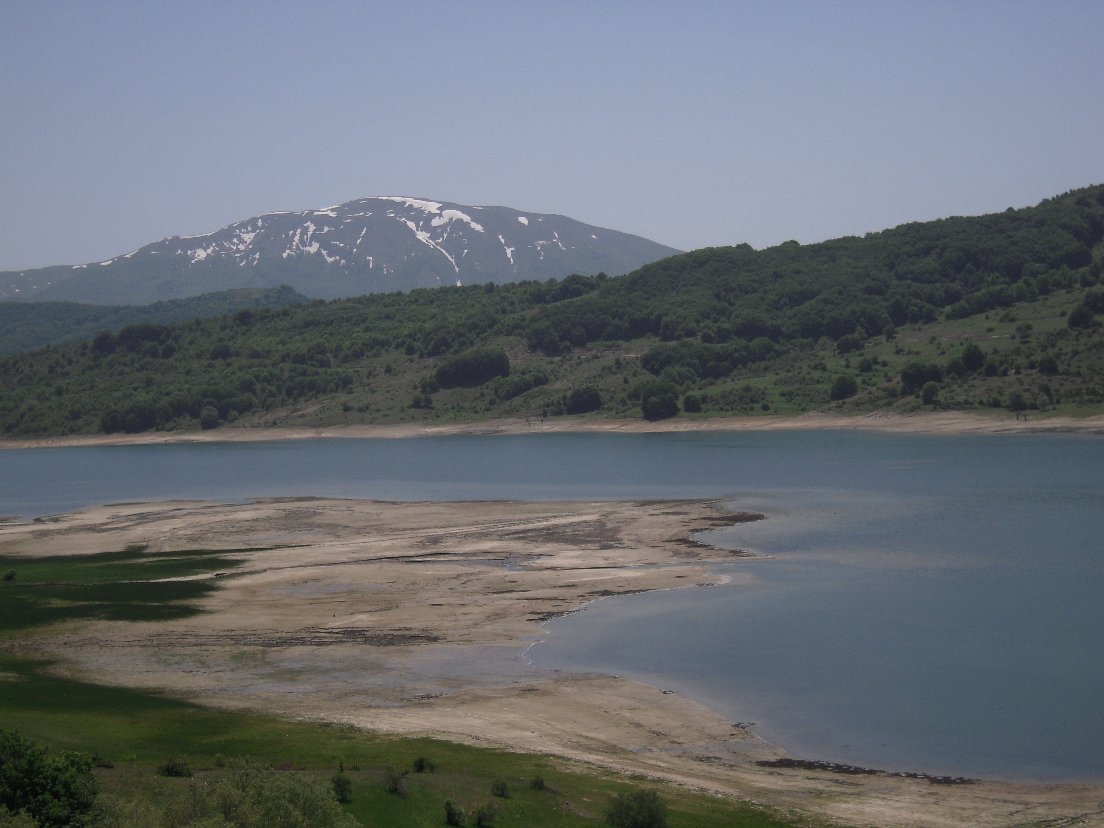 Da Scoppito saliamo sulla SS 80 verso il Valico delle Capannelle. Che fantastico tratto di strada è questo: asfalto sempre ottimamente tenuto, passaggi entusiasmanti, variazioni di traiettoria continue, bosco ombroso e paesaggi eccezionali. Subito dopo il valico la bella salita al lago di Campotosto dove con lo stesso ragazzo ero stato forse un paio d’anni fa.