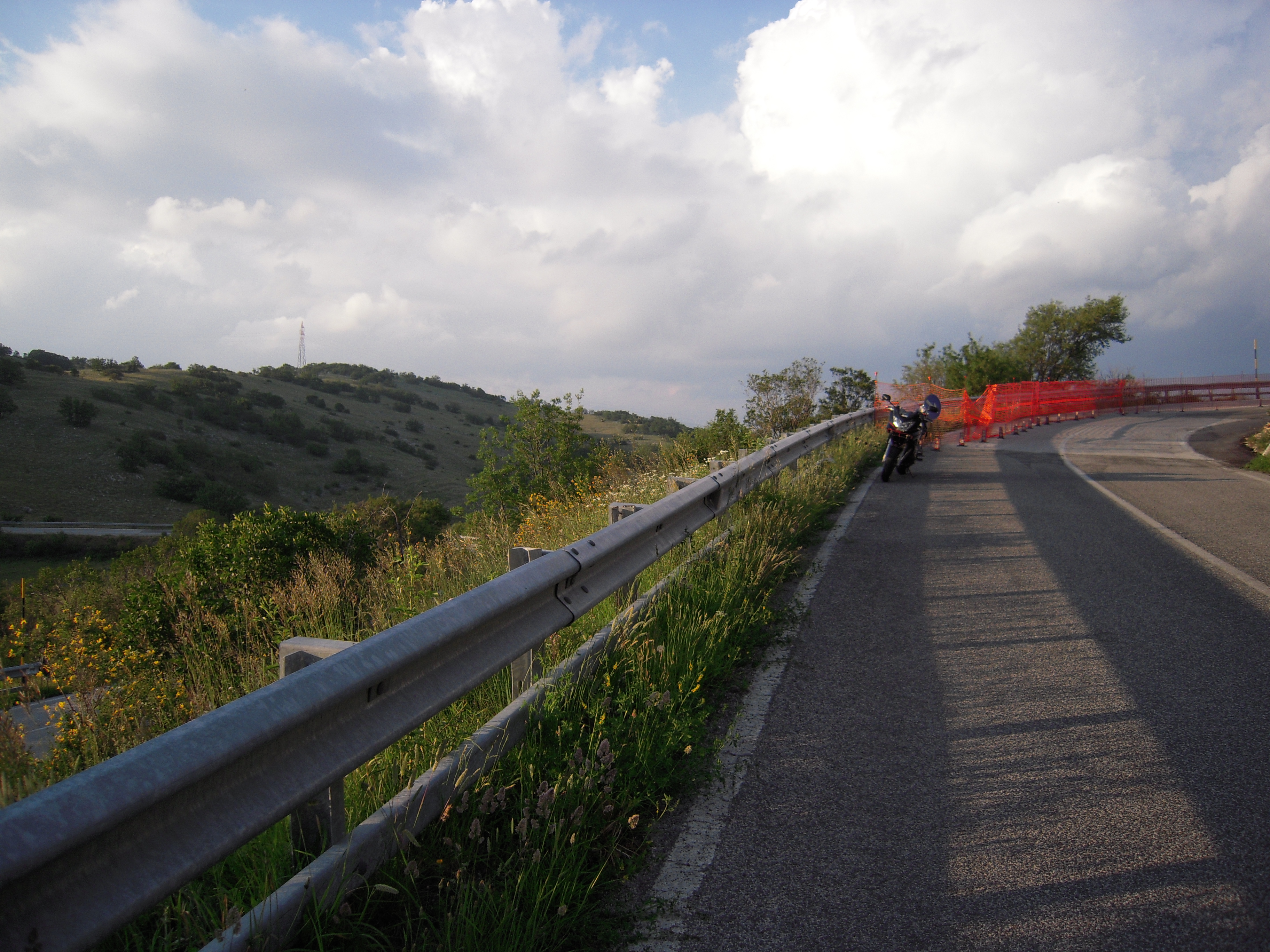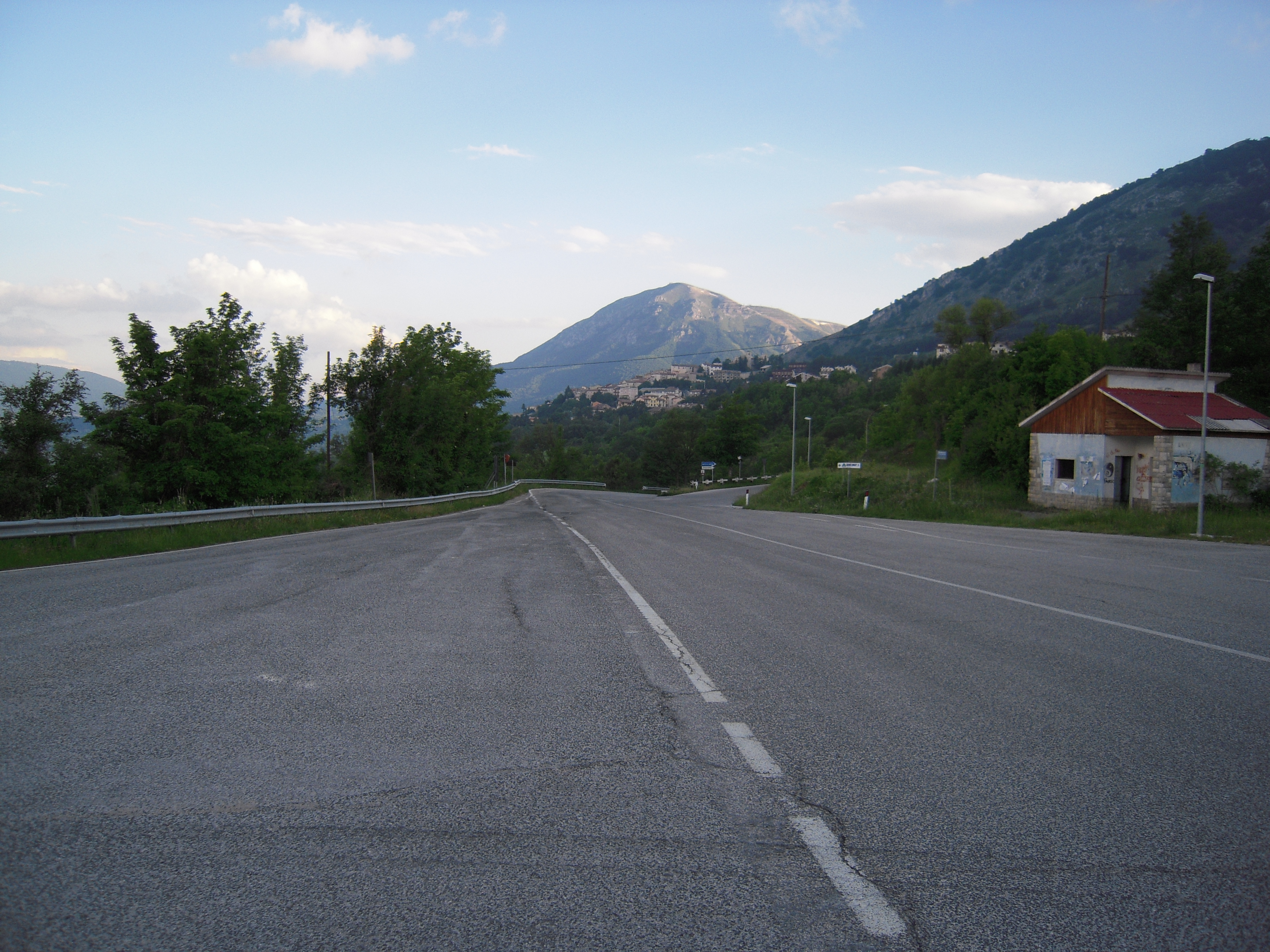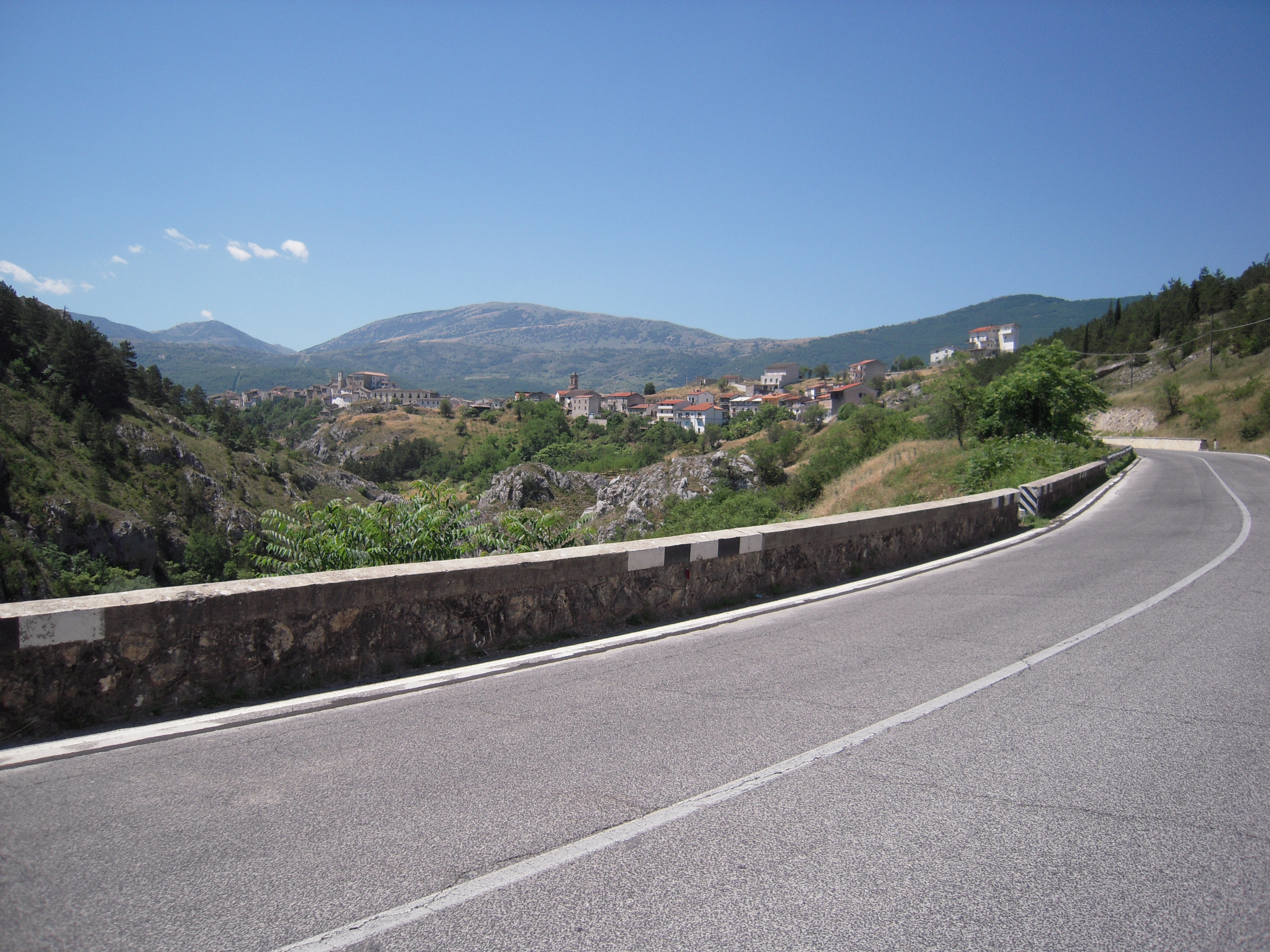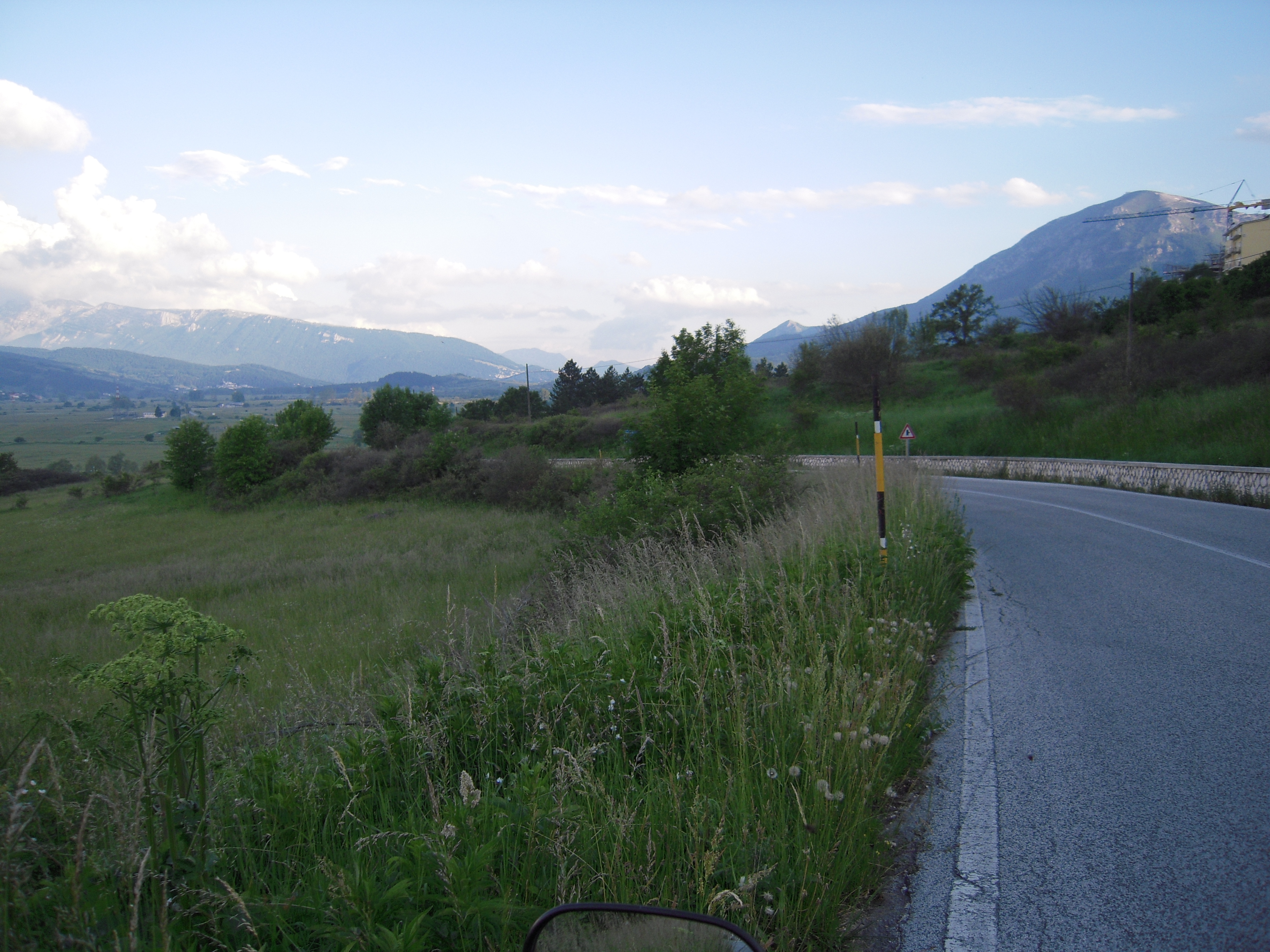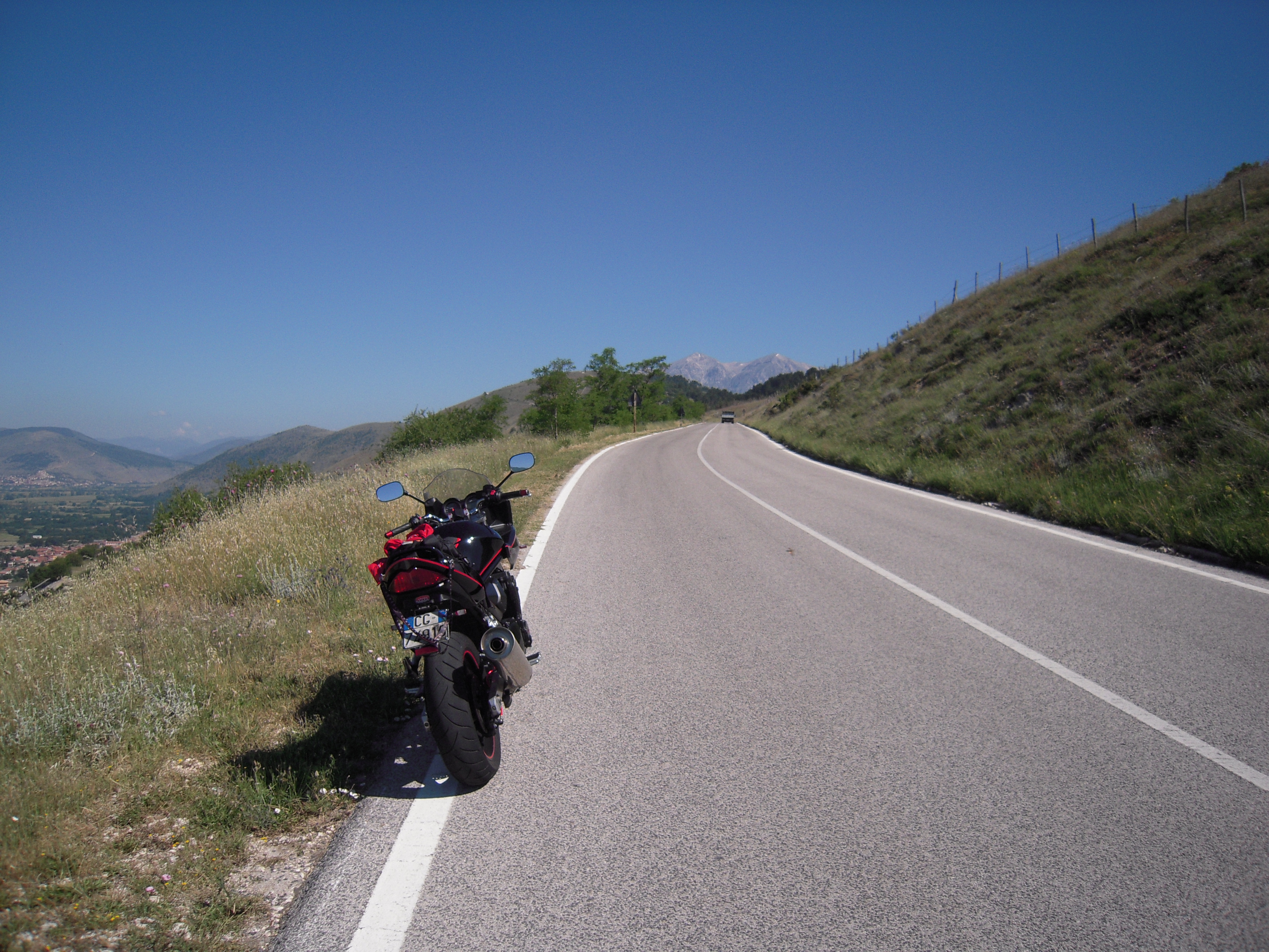 Partito senza un’idea anche solo abbozzata mi sono ritrovato a Carsoli sulla SS 5 Tiburtina ed ho preso a seguirla. Colli di Montebove per scaldare le gomme, la noiosissima zona del Fucino dopo Tagliacozzo ed ancora dei bei passaggi da Collarmele su per il valico di Forca Caruso e giù verso la valle dell’Aterno ma anziché prendere per le famose Gole di San Venanzio ho tagliato verso Raiano da una provinciale minore ma altrettanto bella.