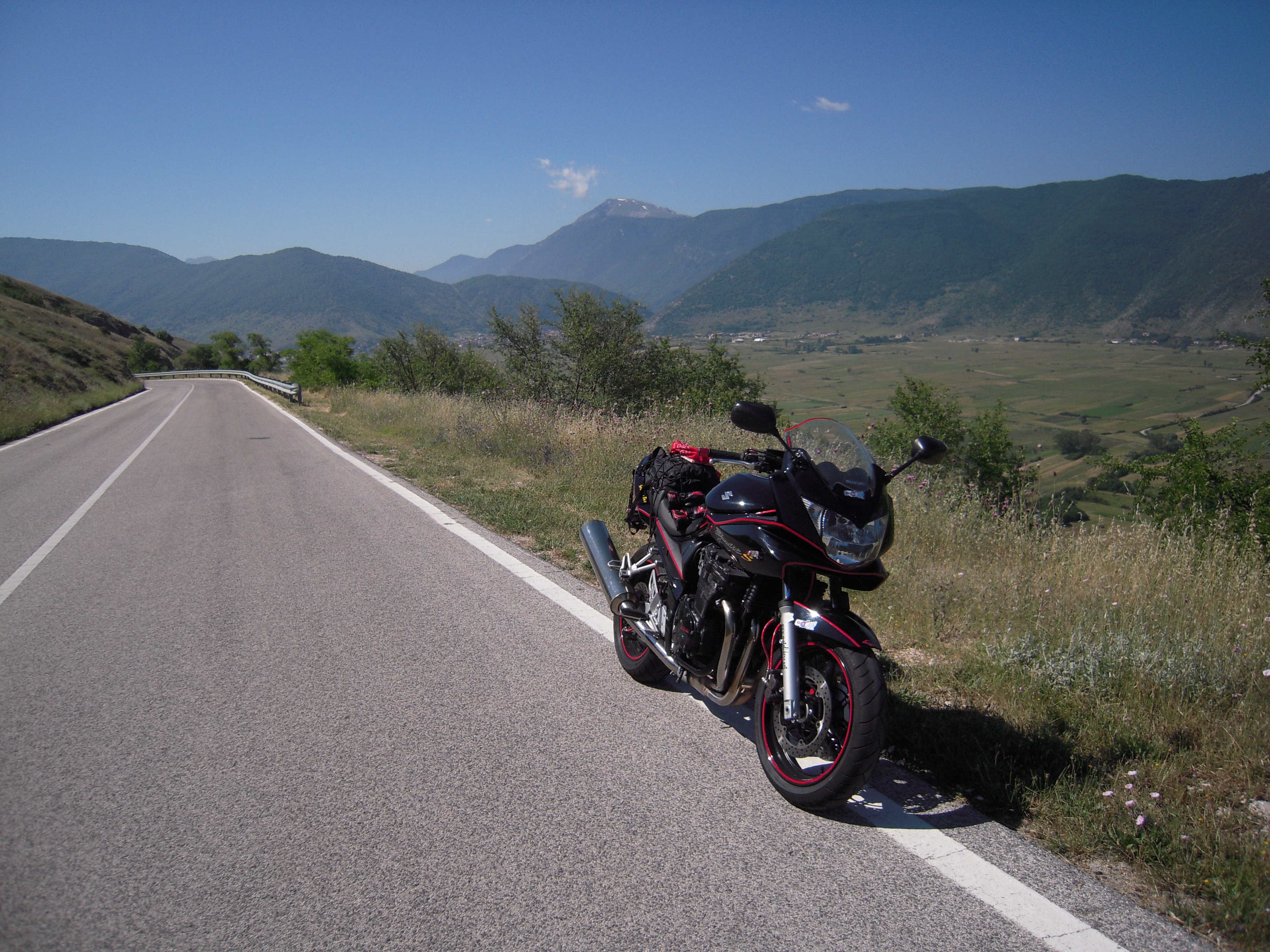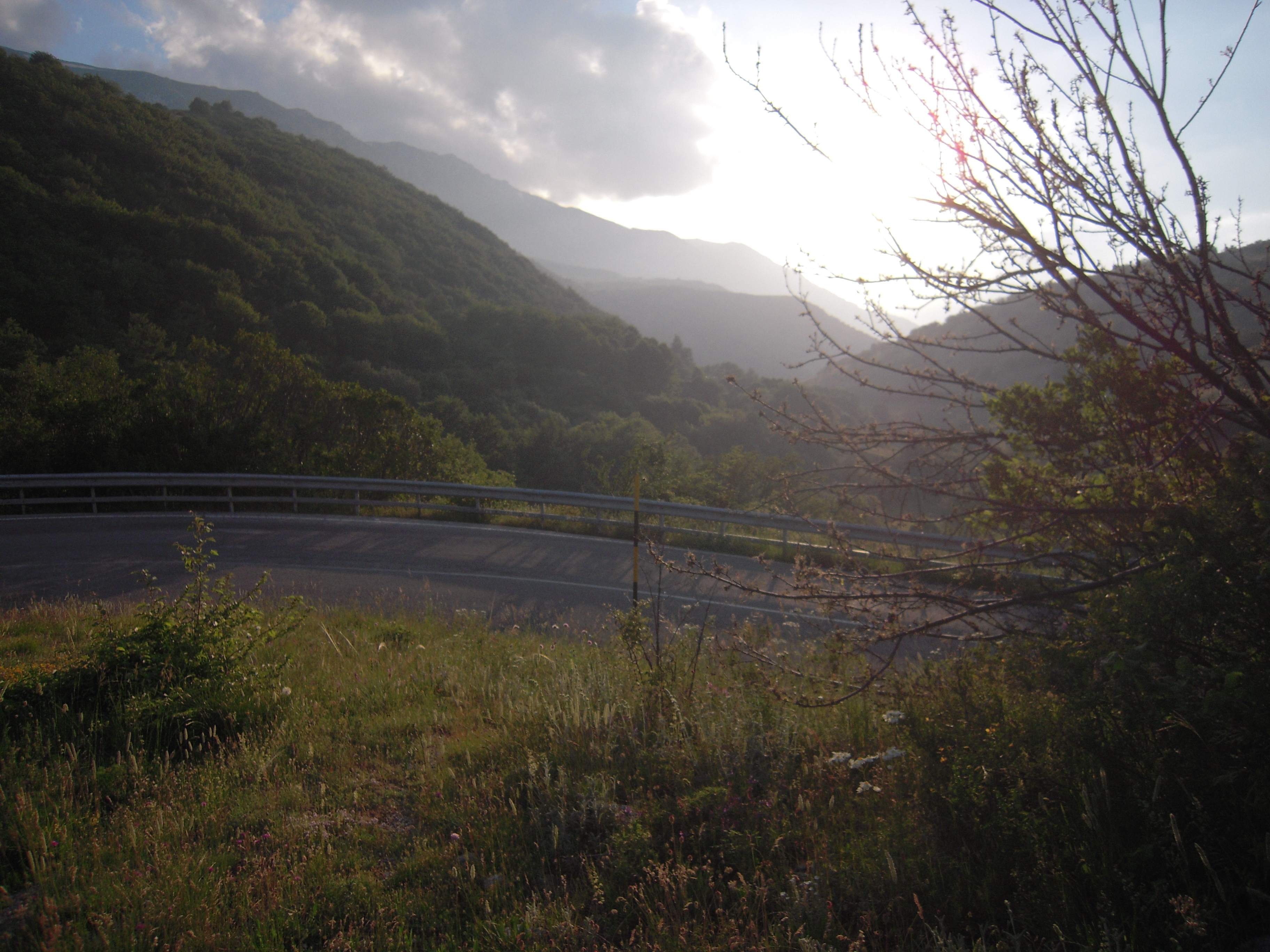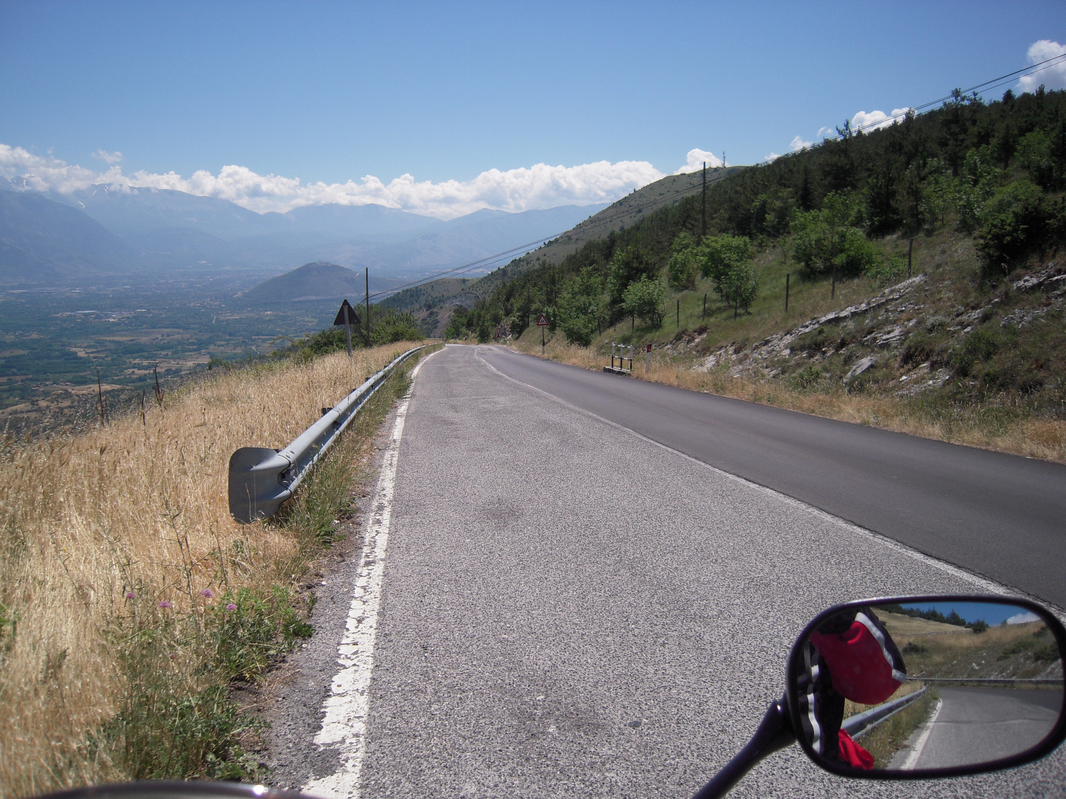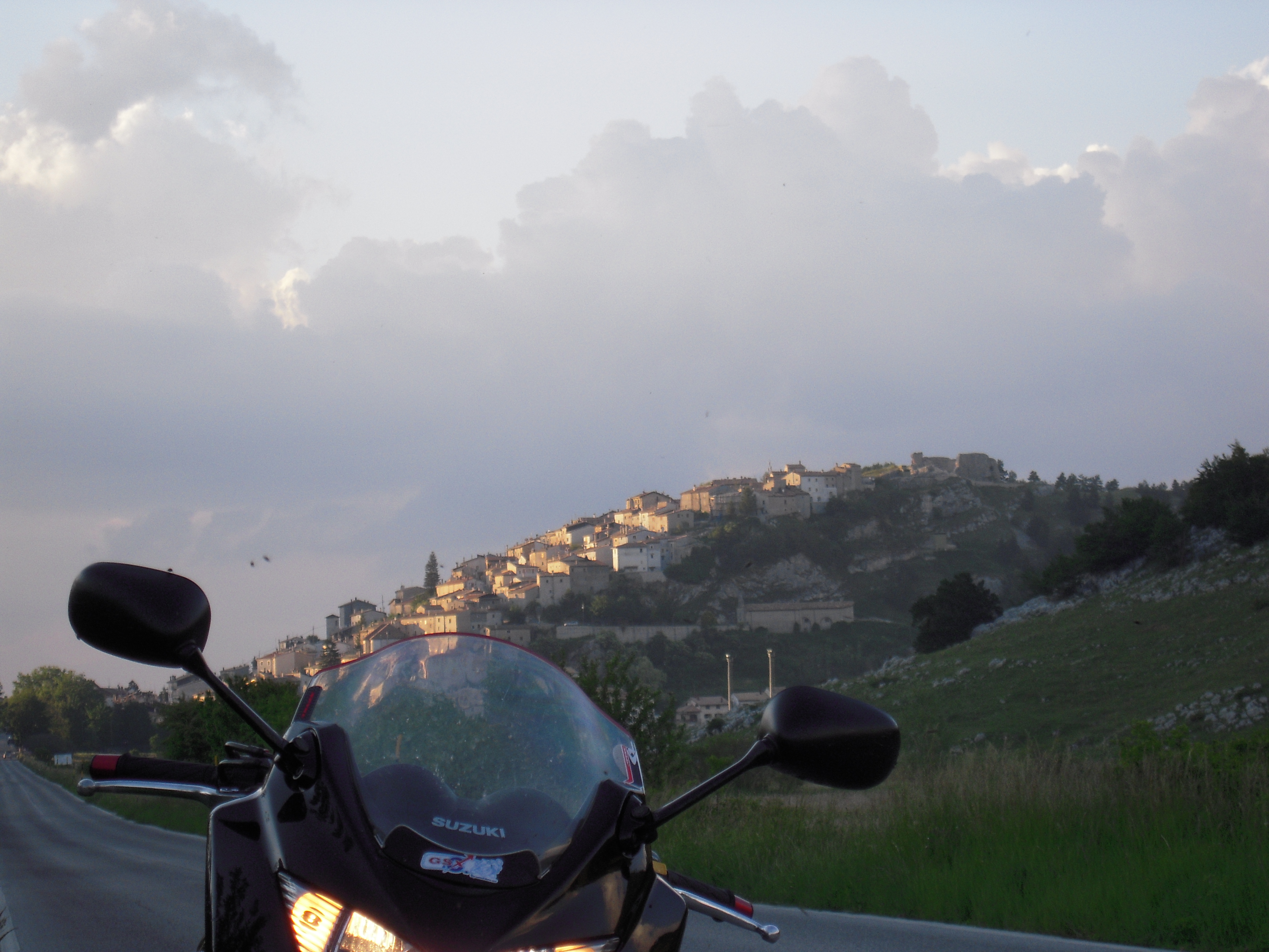 Partito senza un’idea anche solo abbozzata mi sono ritrovato a Carsoli sulla SS 5 Tiburtina ed ho preso a seguirla. Colli di Montebove per scaldare le gomme, la noiosissima zona del Fucino dopo Tagliacozzo ed ancora dei bei passaggi da Collarmele su per il valico di Forca Caruso e giù verso la valle dell’Aterno ma anziché prendere per le famose Gole di San Venanzio ho tagliato verso Raiano da una provinciale minore ma altrettanto bella.