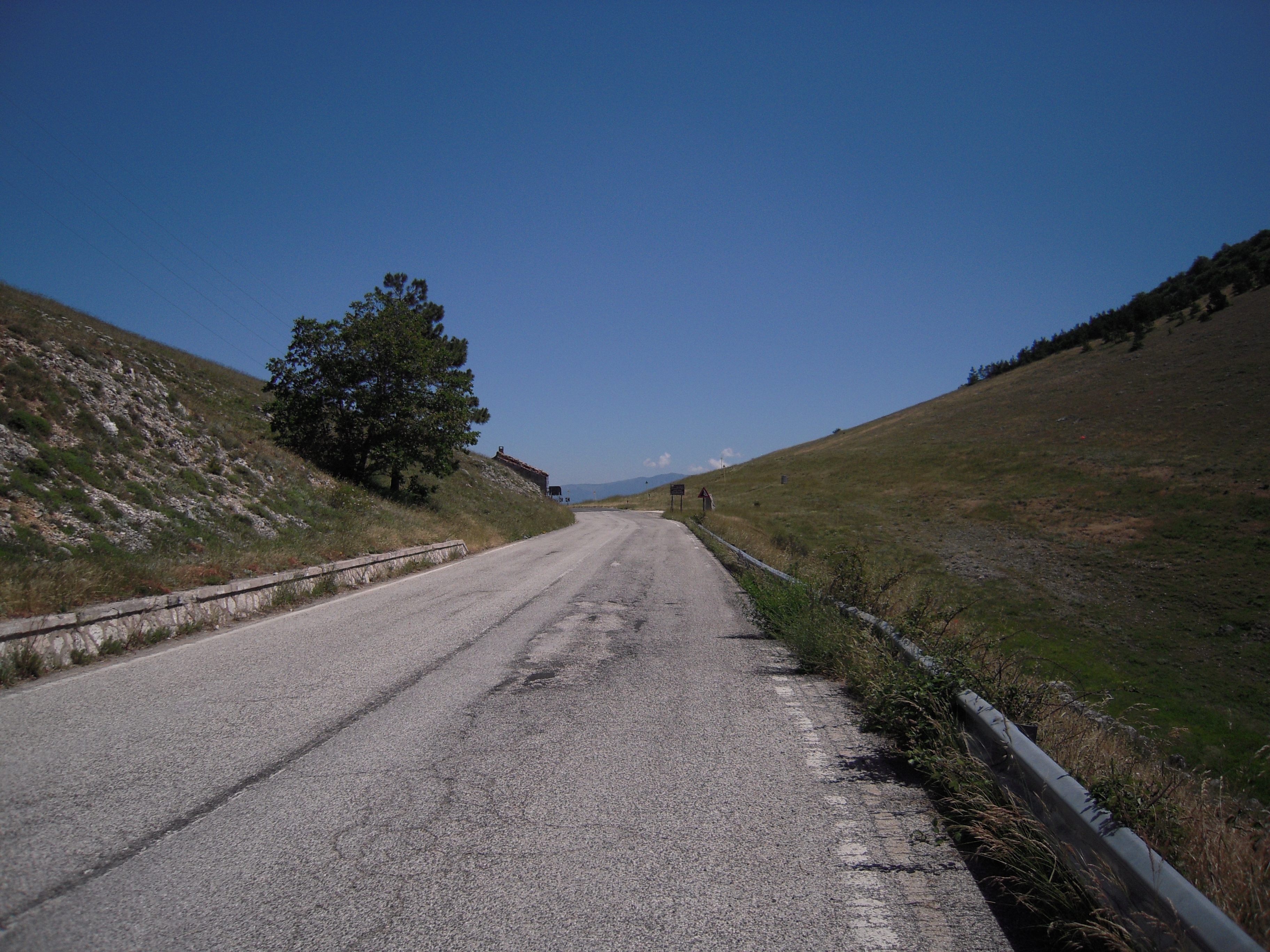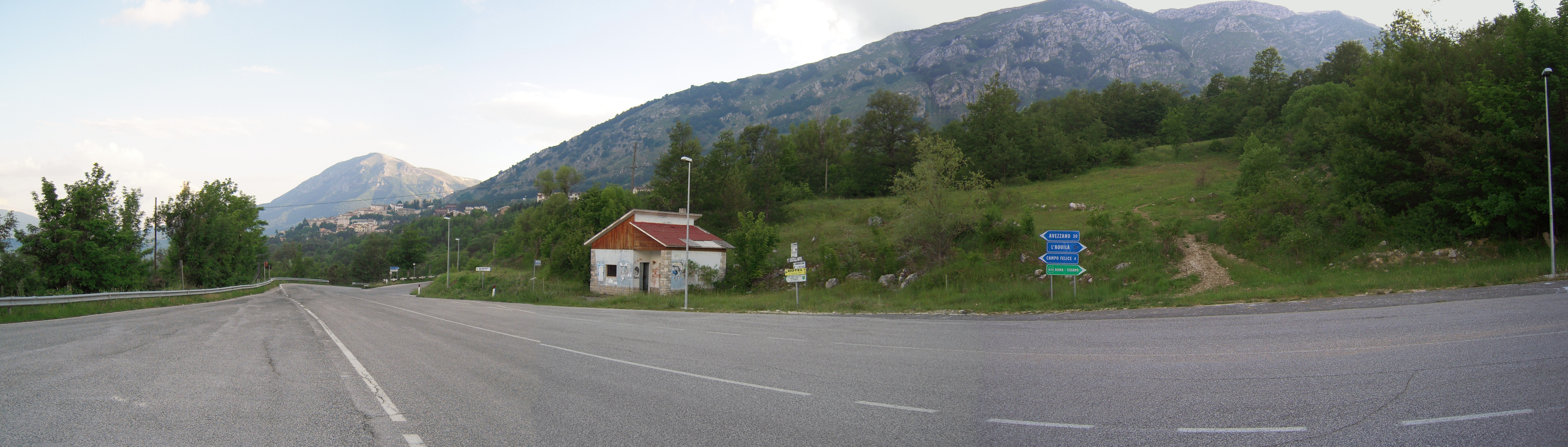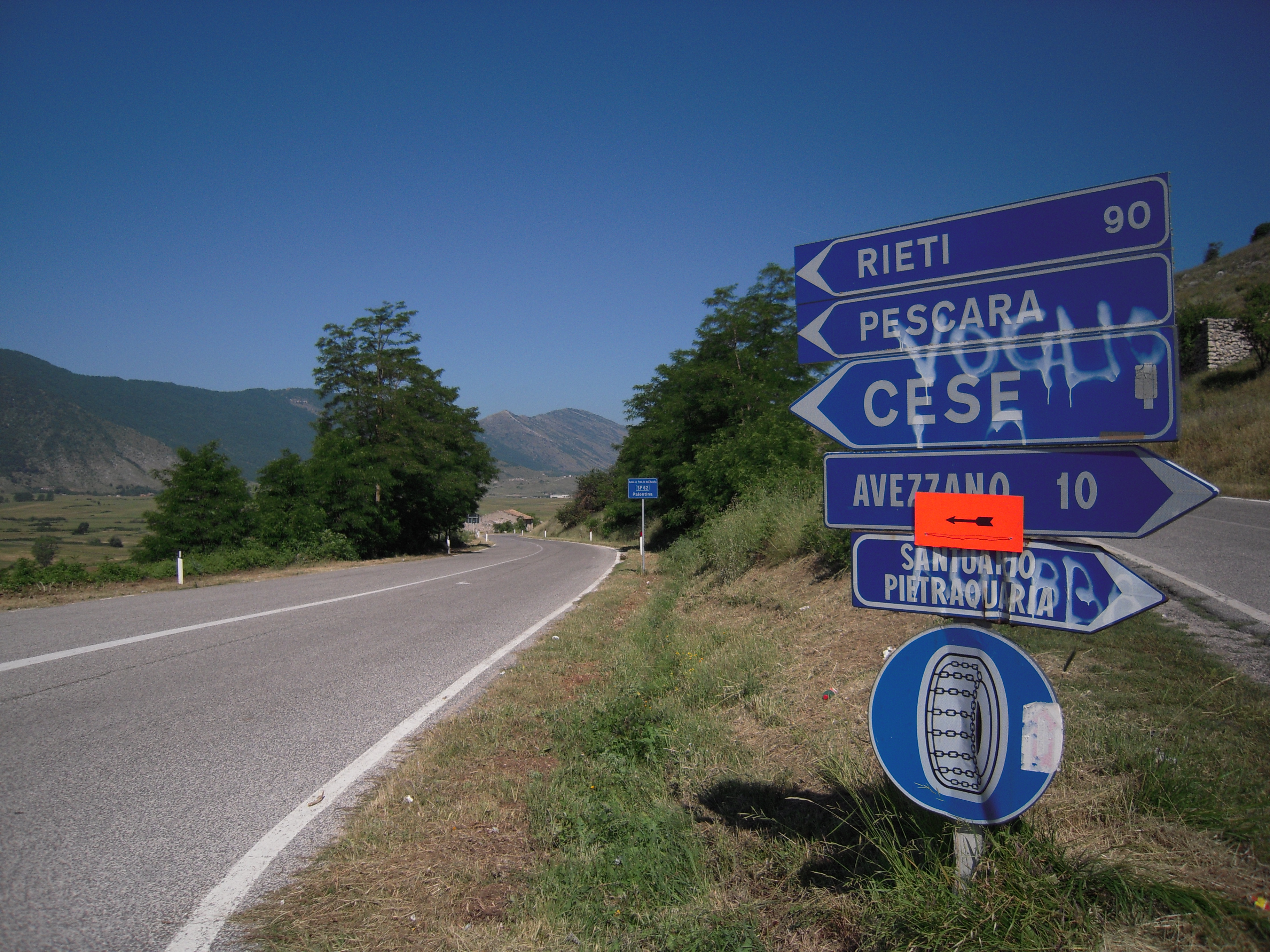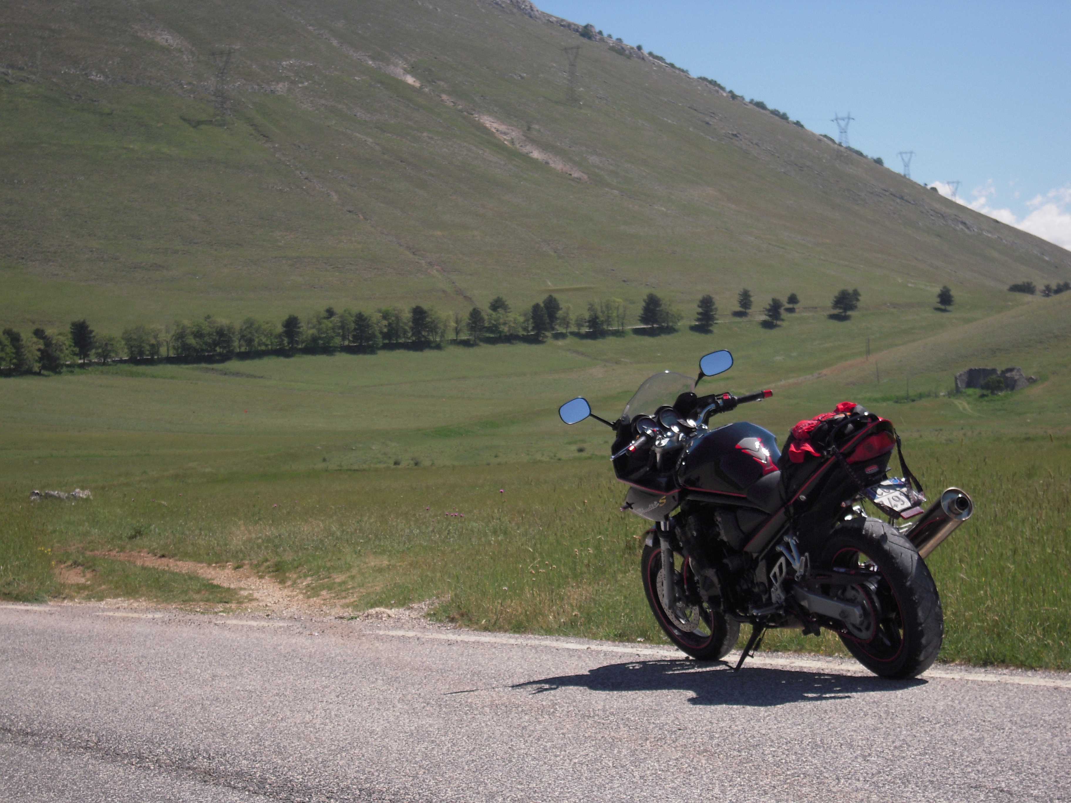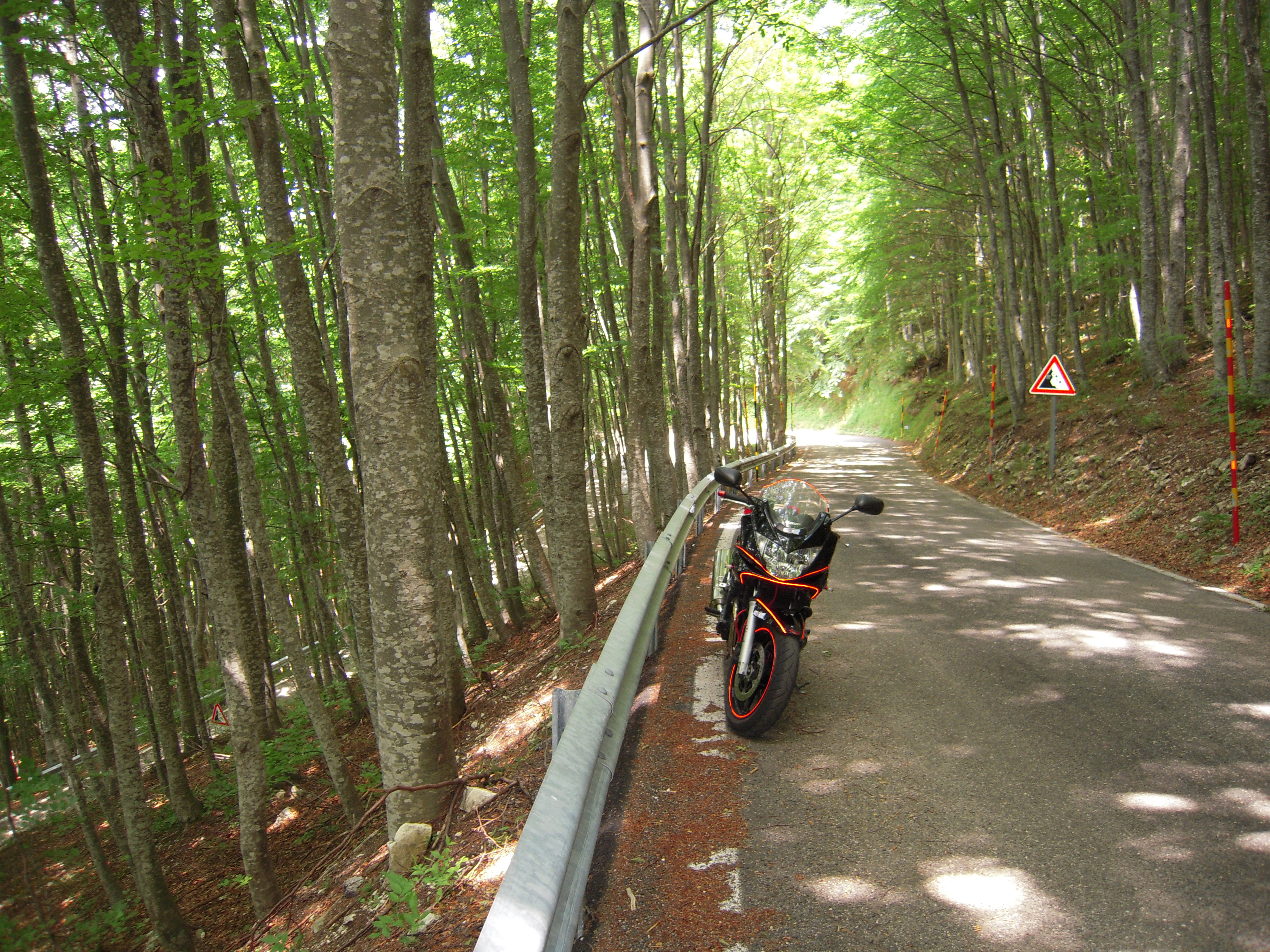Partito senza un’idea anche solo abbozzata mi sono ritrovato a Carsoli sulla SS 5 Tiburtina ed ho preso a seguirla. Colli di Montebove per scaldare le gomme, la noiosissima zona del Fucino dopo Tagliacozzo ed ancora dei bei passaggi da Collarmele su per il valico di Forca Caruso e giù verso la valle dell’Aterno ma anziché prendere per le famose Gole di San Venanzio ho tagliato verso Raiano da una provinciale minore ma altrettanto bella.