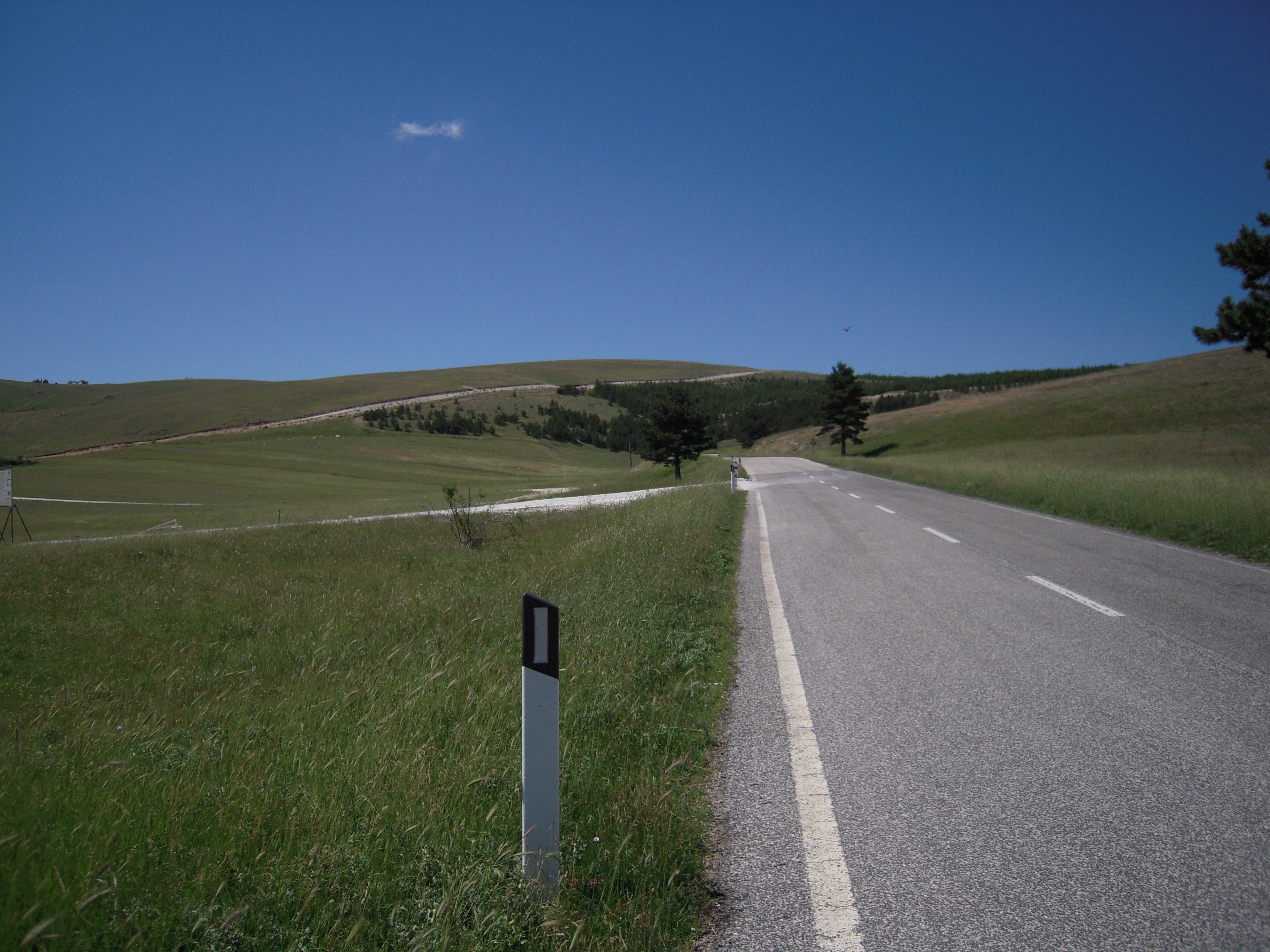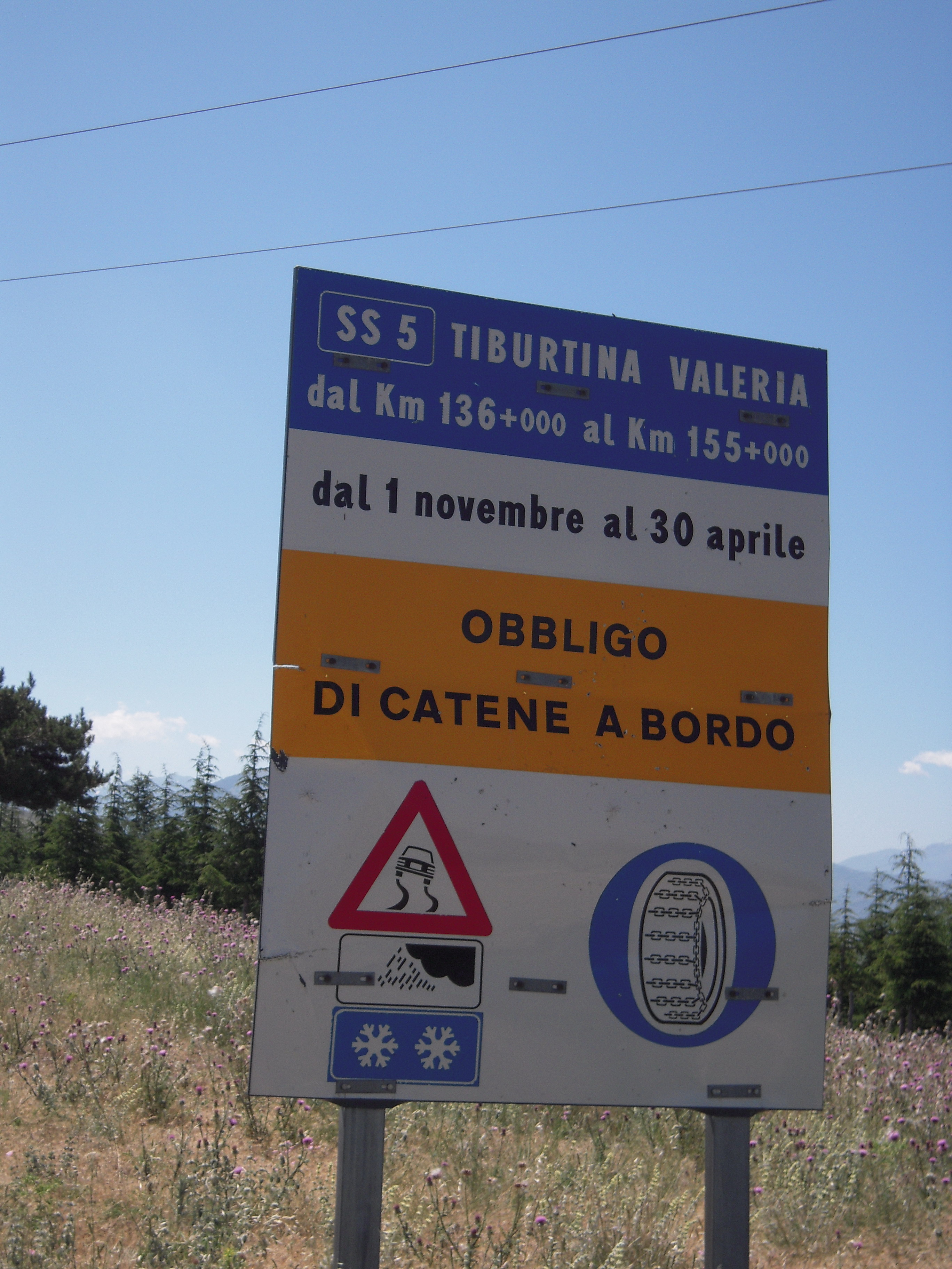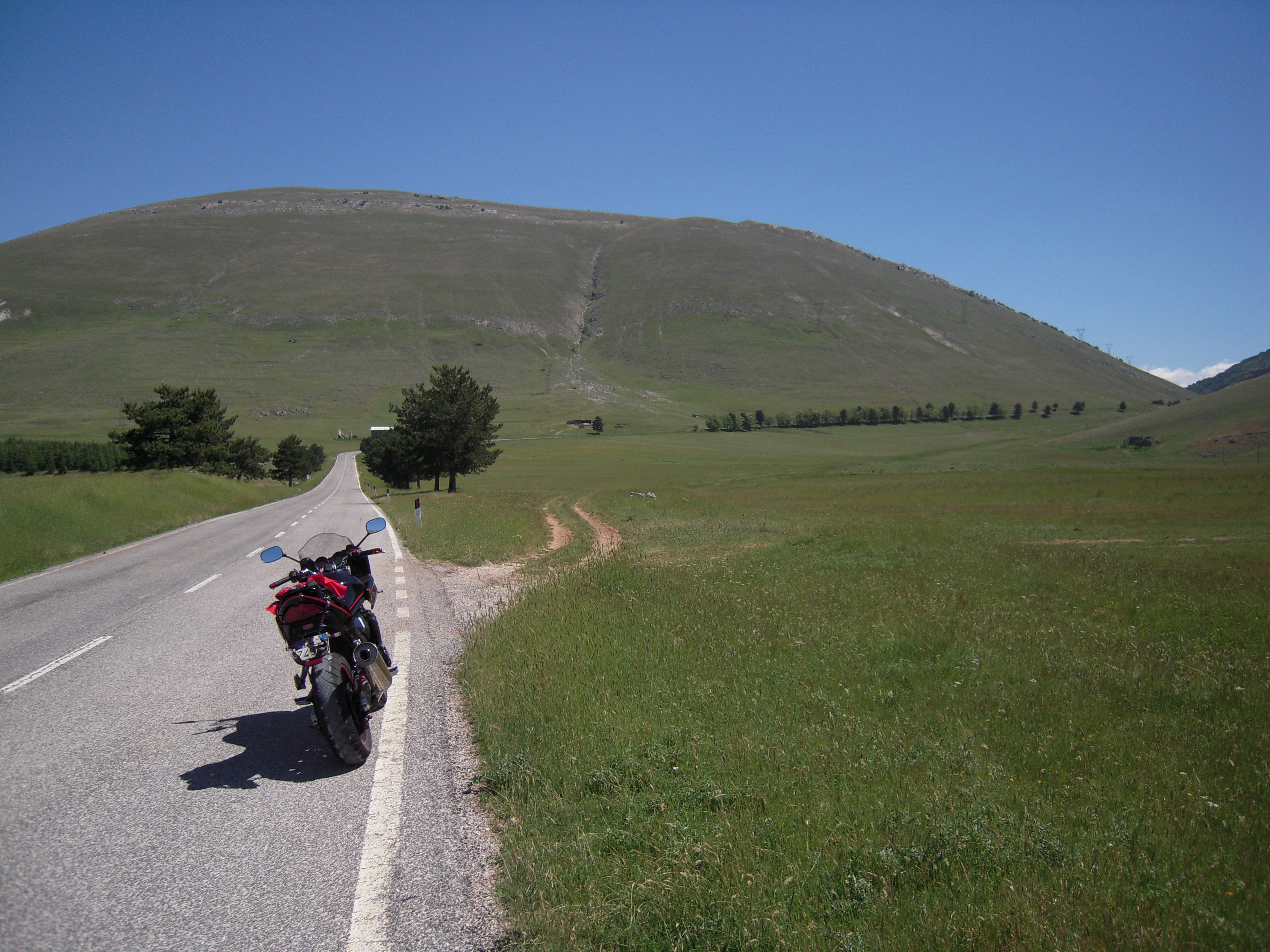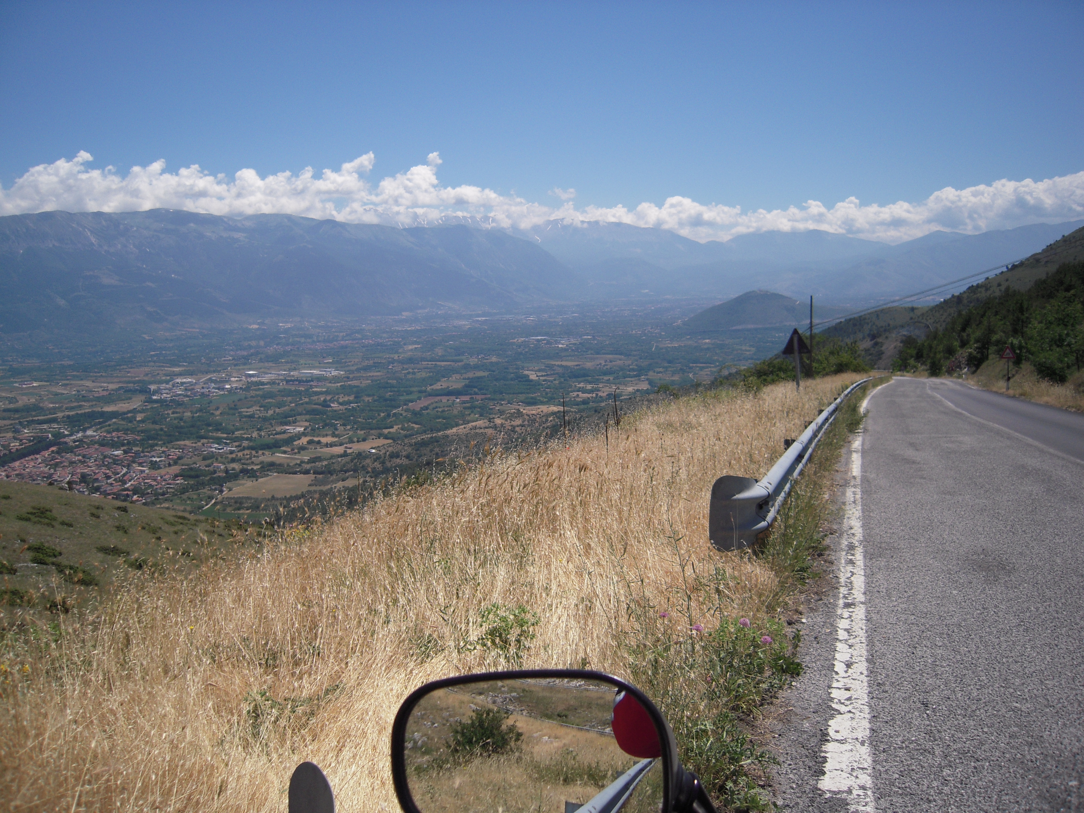 Partito senza un’idea anche solo abbozzata mi sono ritrovato a Carsoli sulla SS 5 Tiburtina ed ho preso a seguirla. Colli di Montebove per scaldare le gomme, la noiosissima zona del Fucino dopo Tagliacozzo ed ancora dei bei passaggi da Collarmele su per il valico di Forca Caruso e giù verso la valle dell’Aterno ma anziché prendere per le famose Gole di San Venanzio ho tagliato verso Raiano da una provinciale minore ma altrettanto bella.