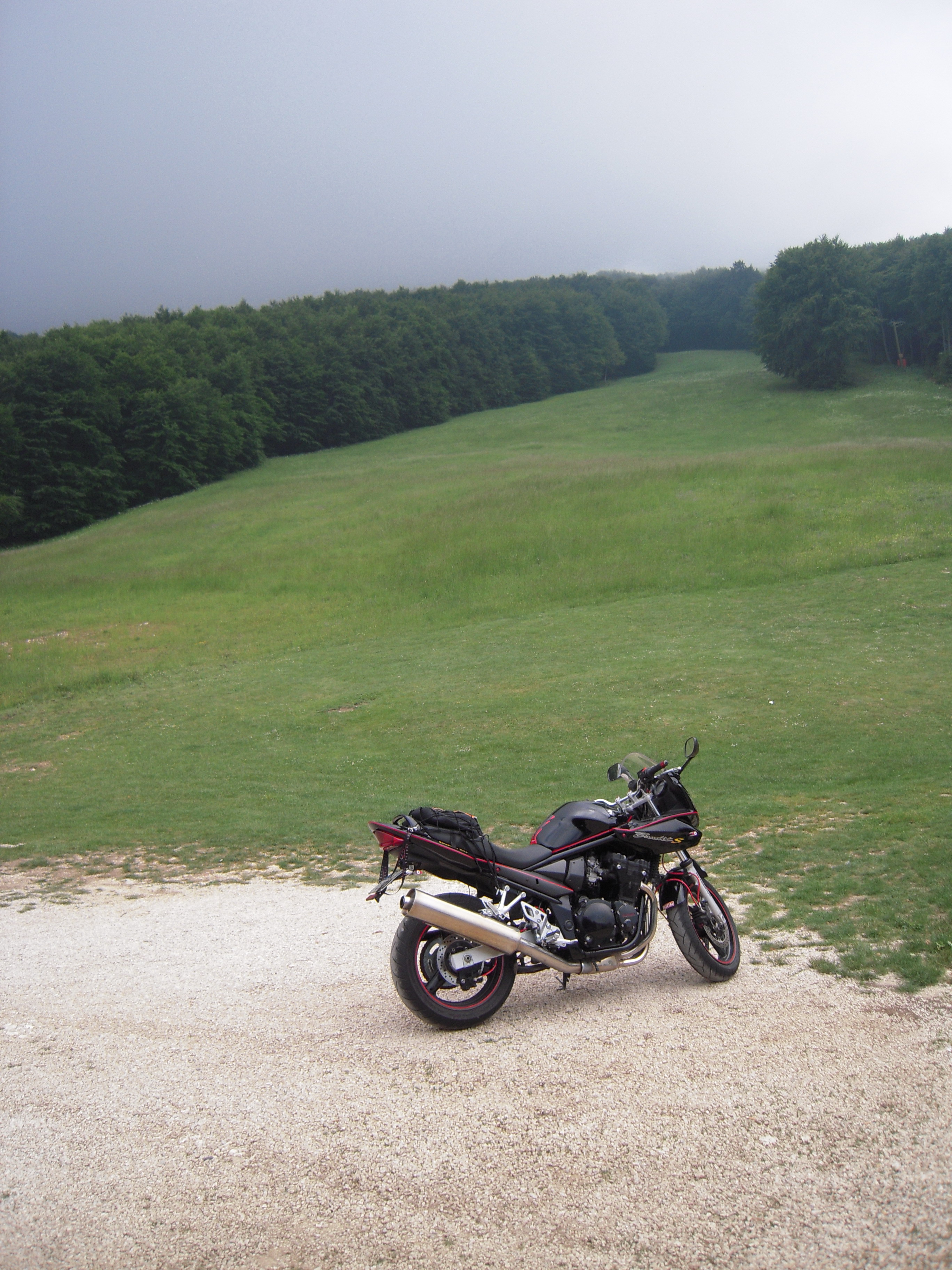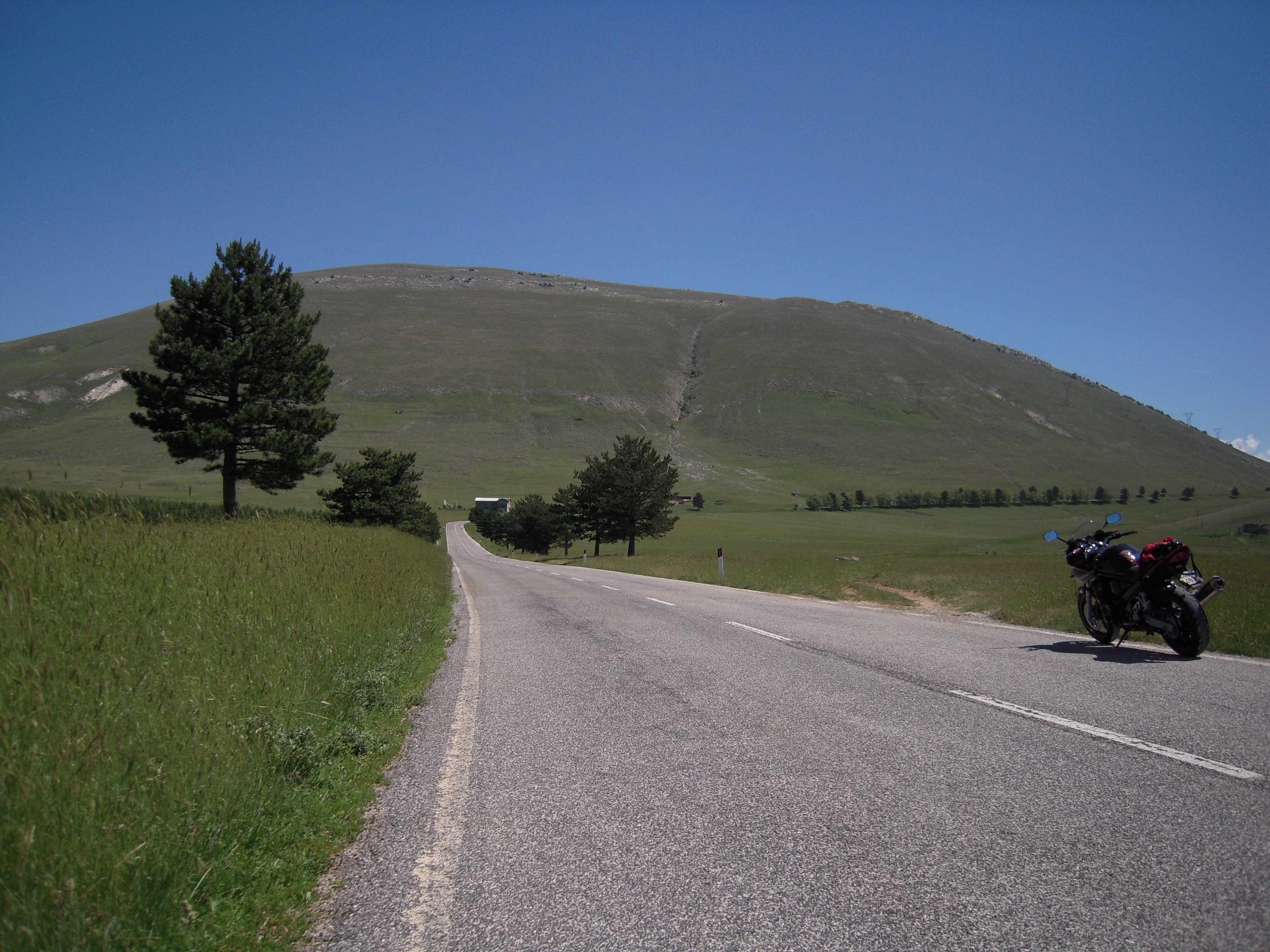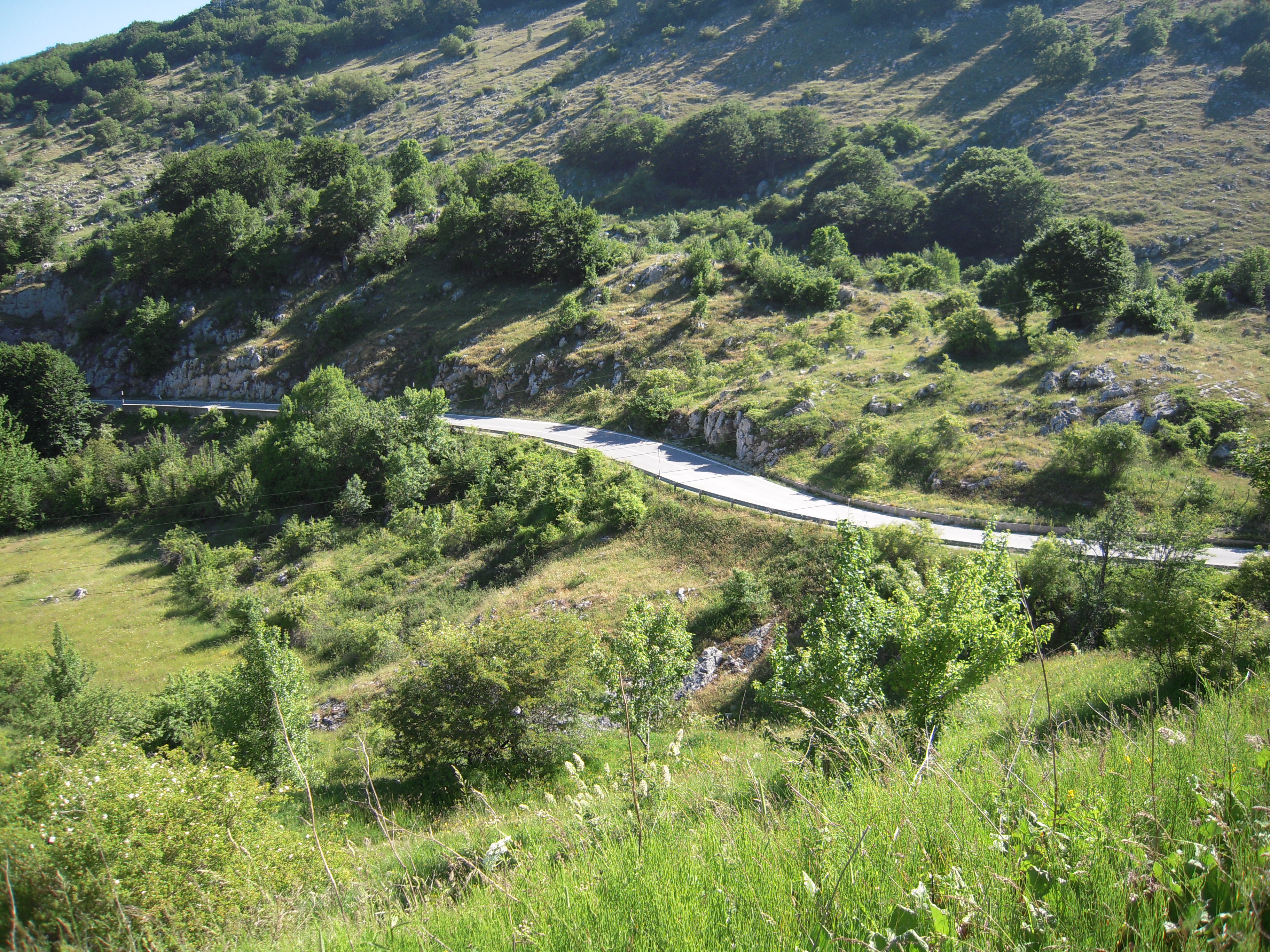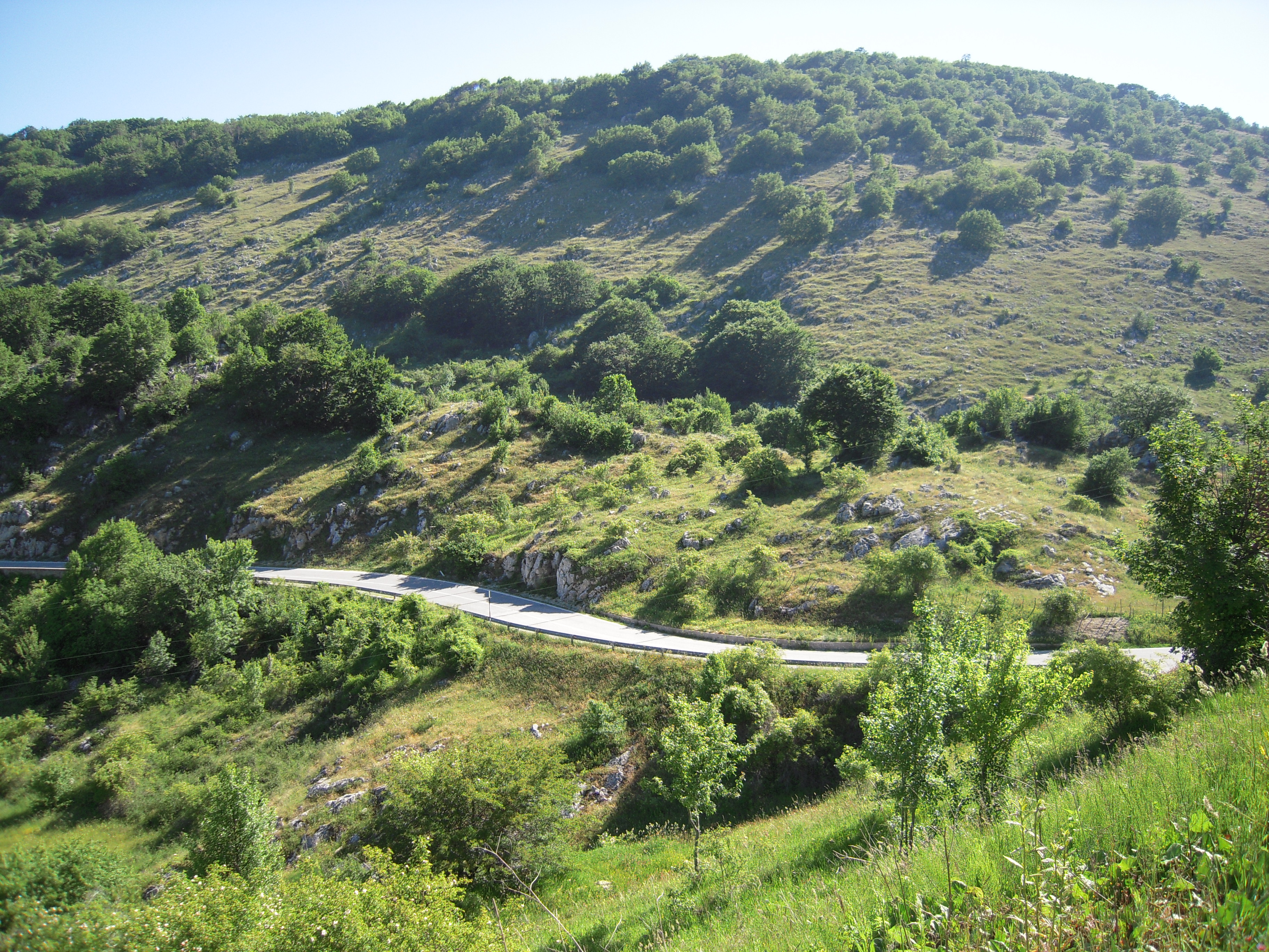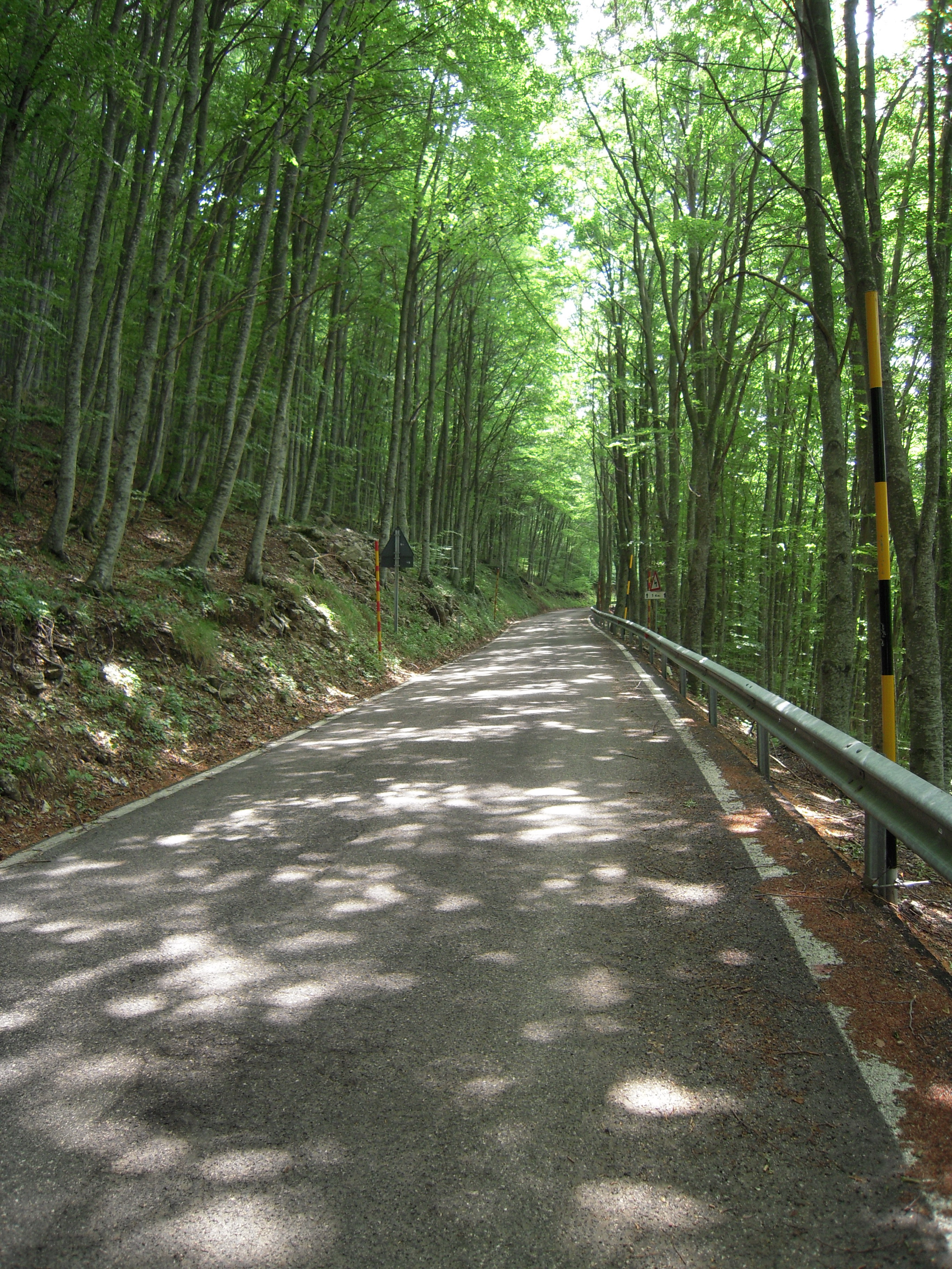 Partito senza un’idea anche solo abbozzata mi sono ritrovato a Carsoli sulla SS 5 Tiburtina ed ho preso a seguirla. Colli di Montebove per scaldare le gomme, la noiosissima zona del Fucino dopo Tagliacozzo ed ancora dei bei passaggi da Collarmele su per il valico di Forca Caruso e giù verso la valle dell’Aterno ma anziché prendere per le famose Gole di San Venanzio ho tagliato verso Raiano da una provinciale minore ma altrettanto bella.