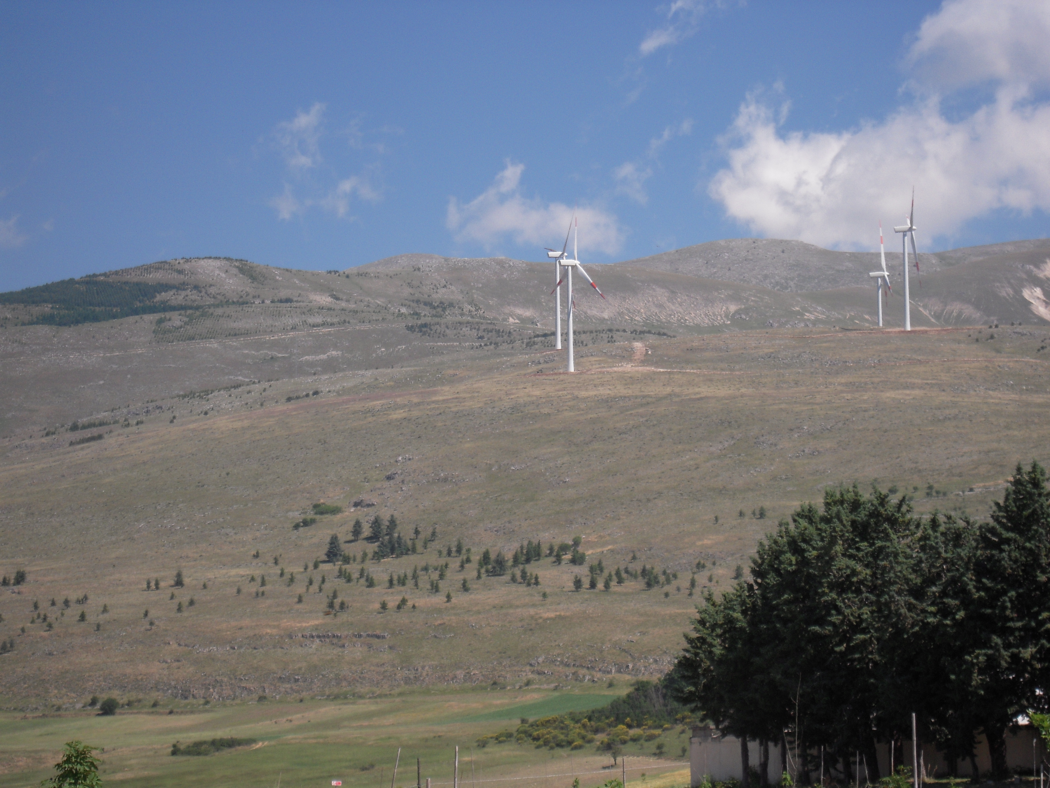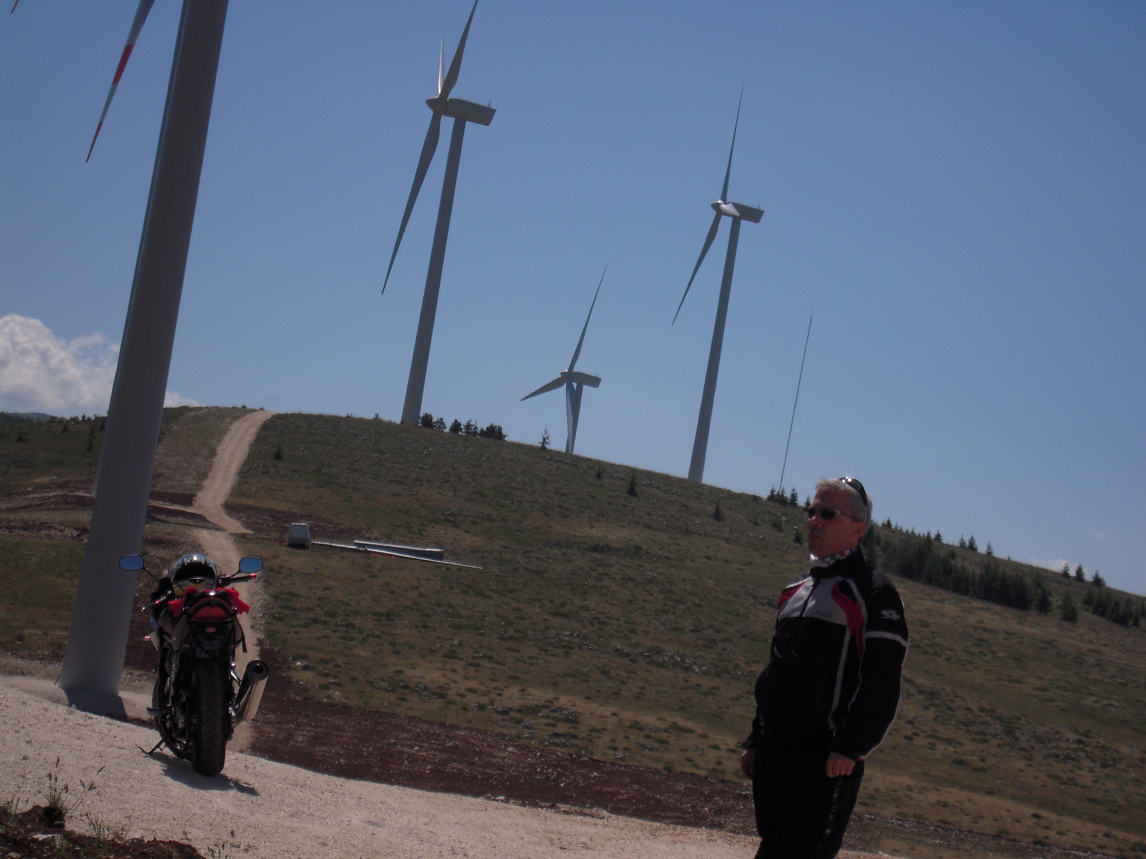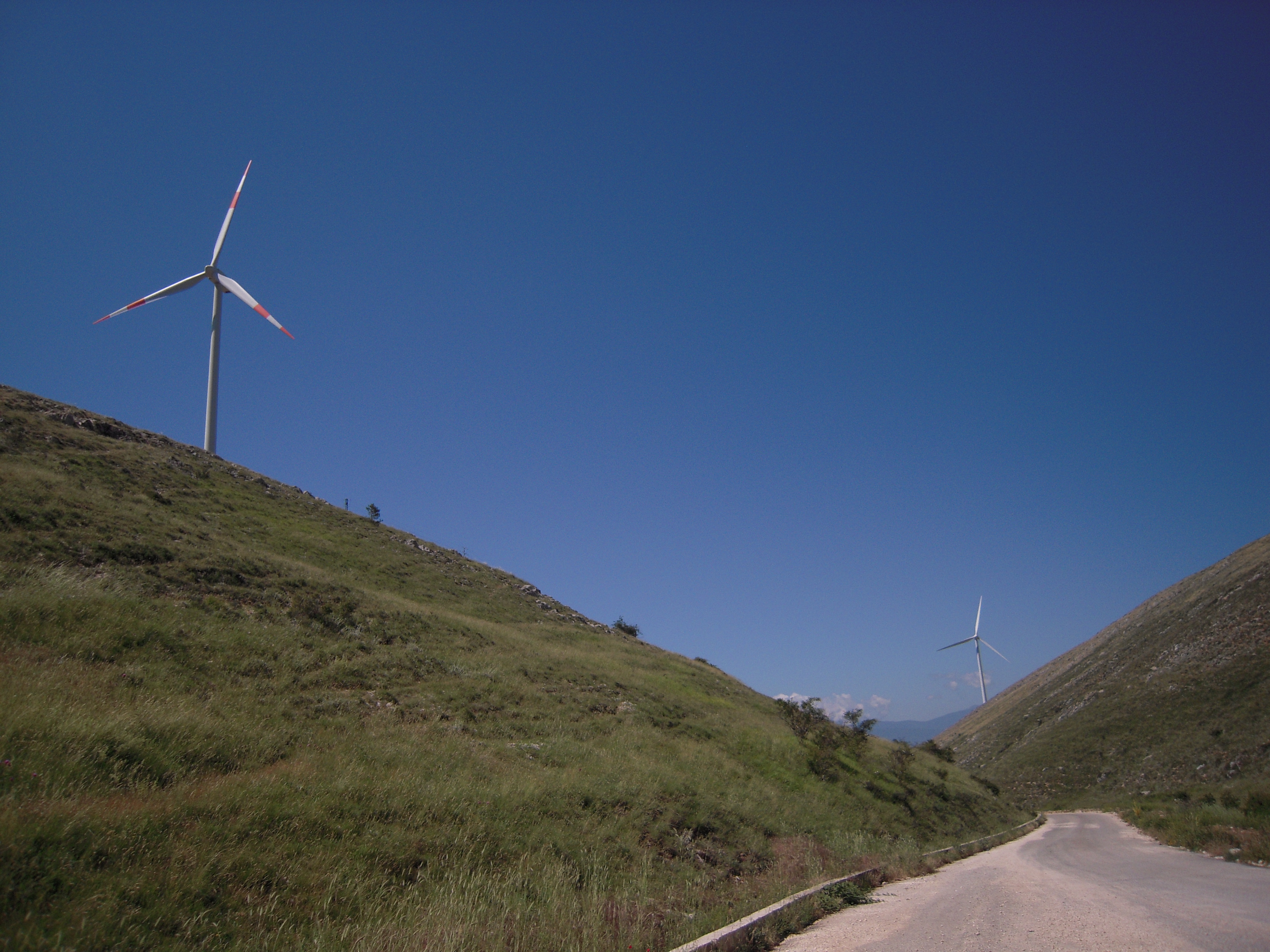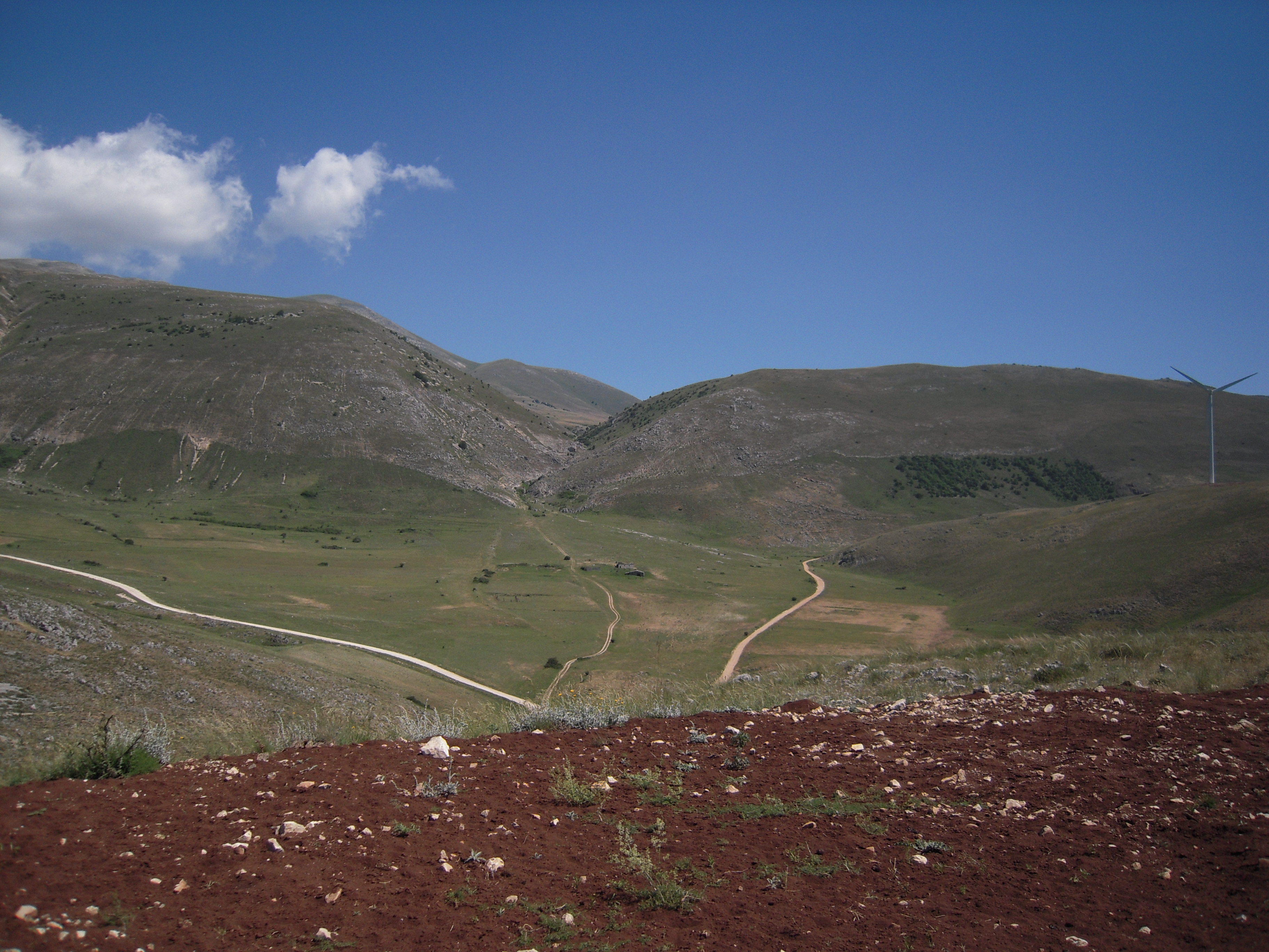 All’altezza del parco eolico di Collarmele mi sono levato uno sfizio che avrei voluto togliermi ogni volta che mi sono trovato a passare di qui. Salire con la strada bianca ma percorribile fin sotto una delle enormi pale eoliche che svettano da quelle parti. Sono davvero imponenti. Alte forse 50 metri il gruppo che è in cima sarà grande come un pulmino! Basta osservare le foto e le dimensioni della moto!