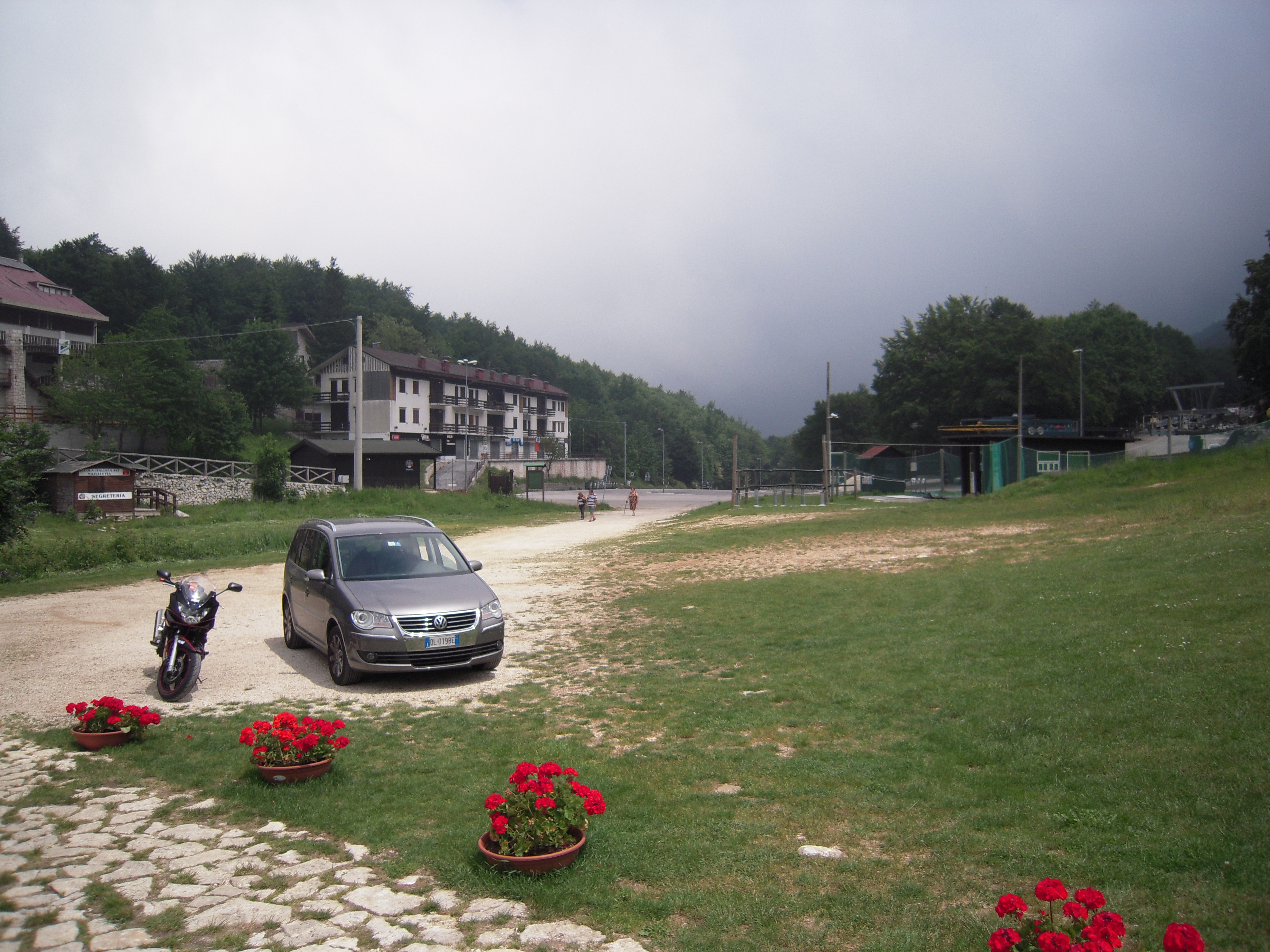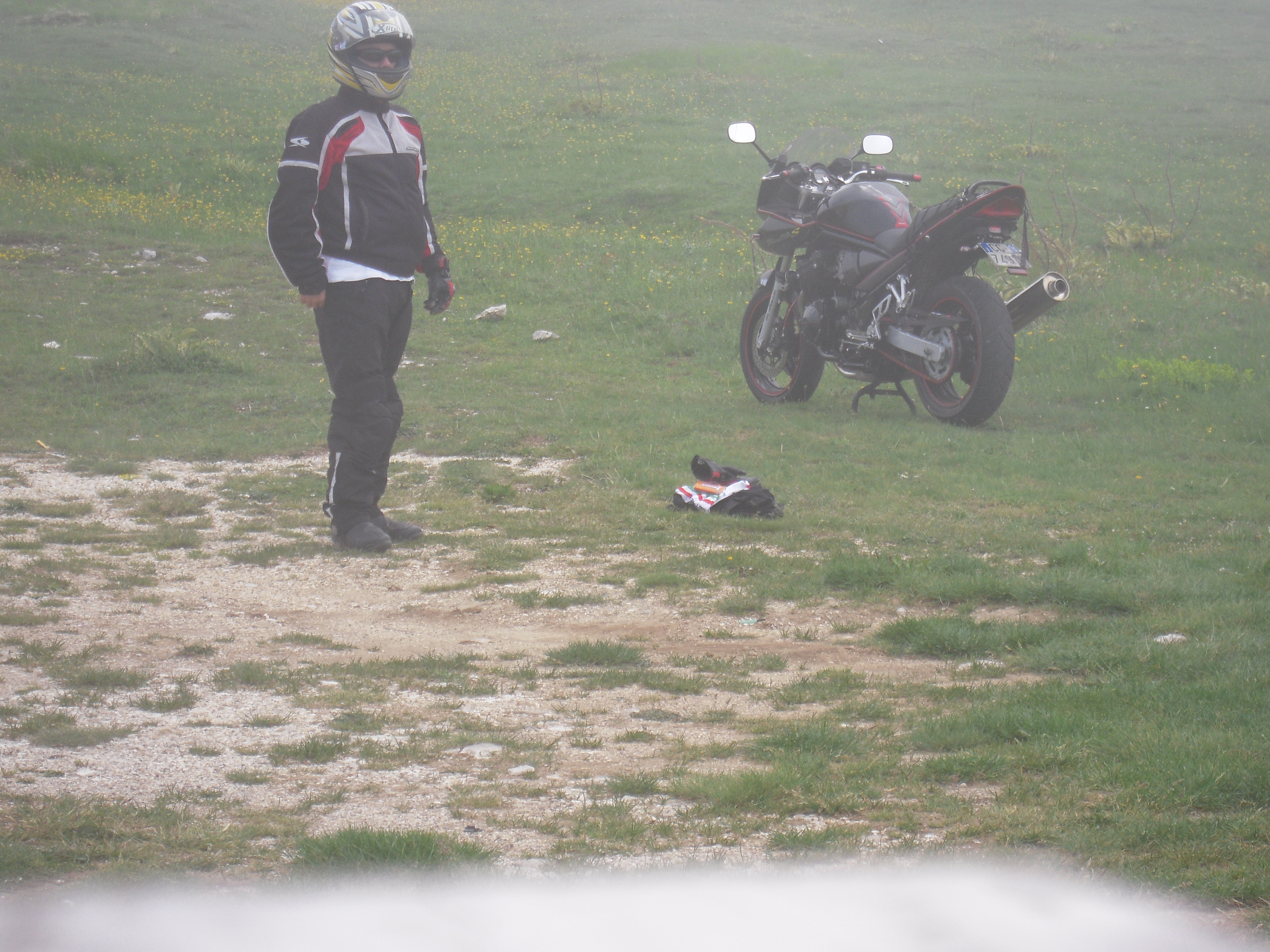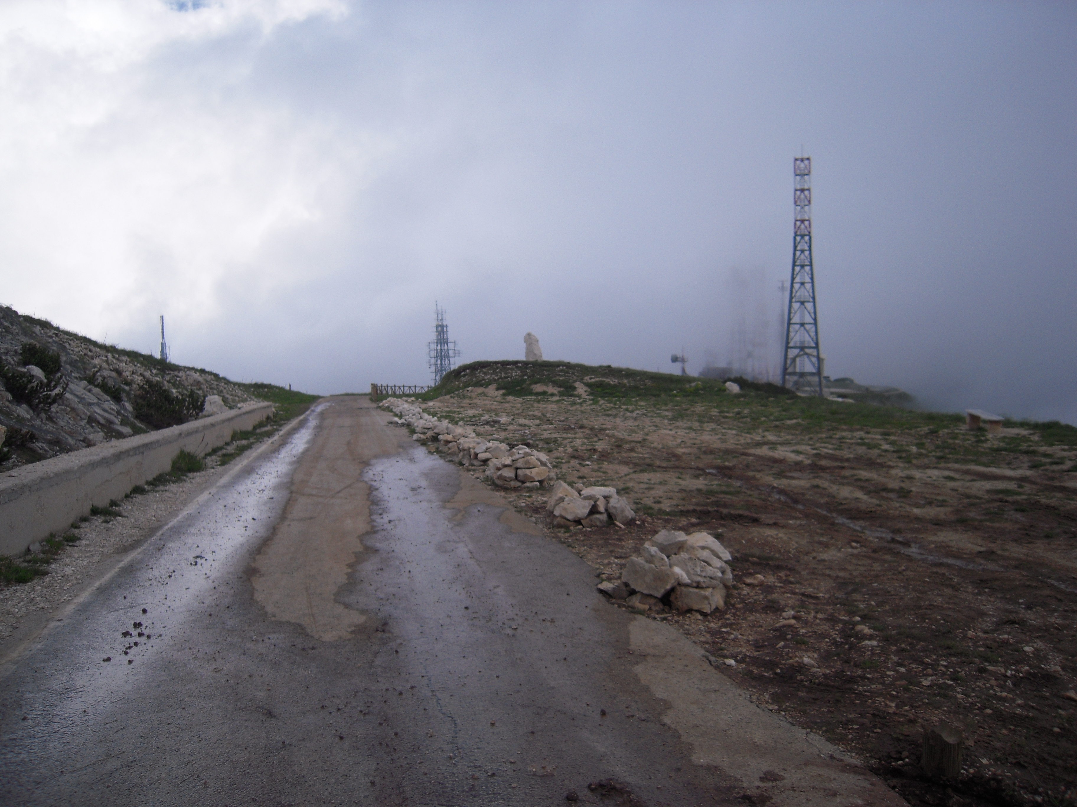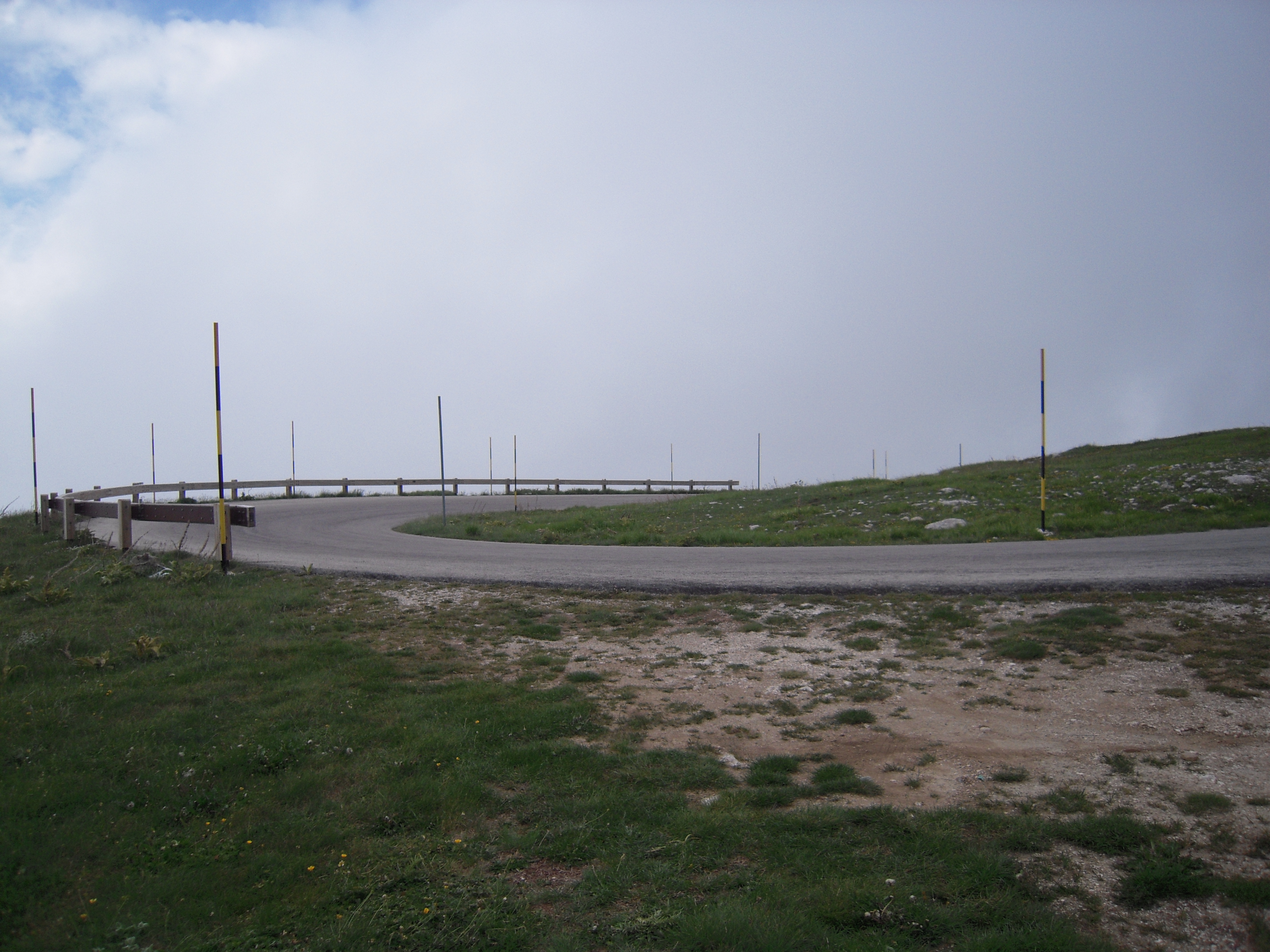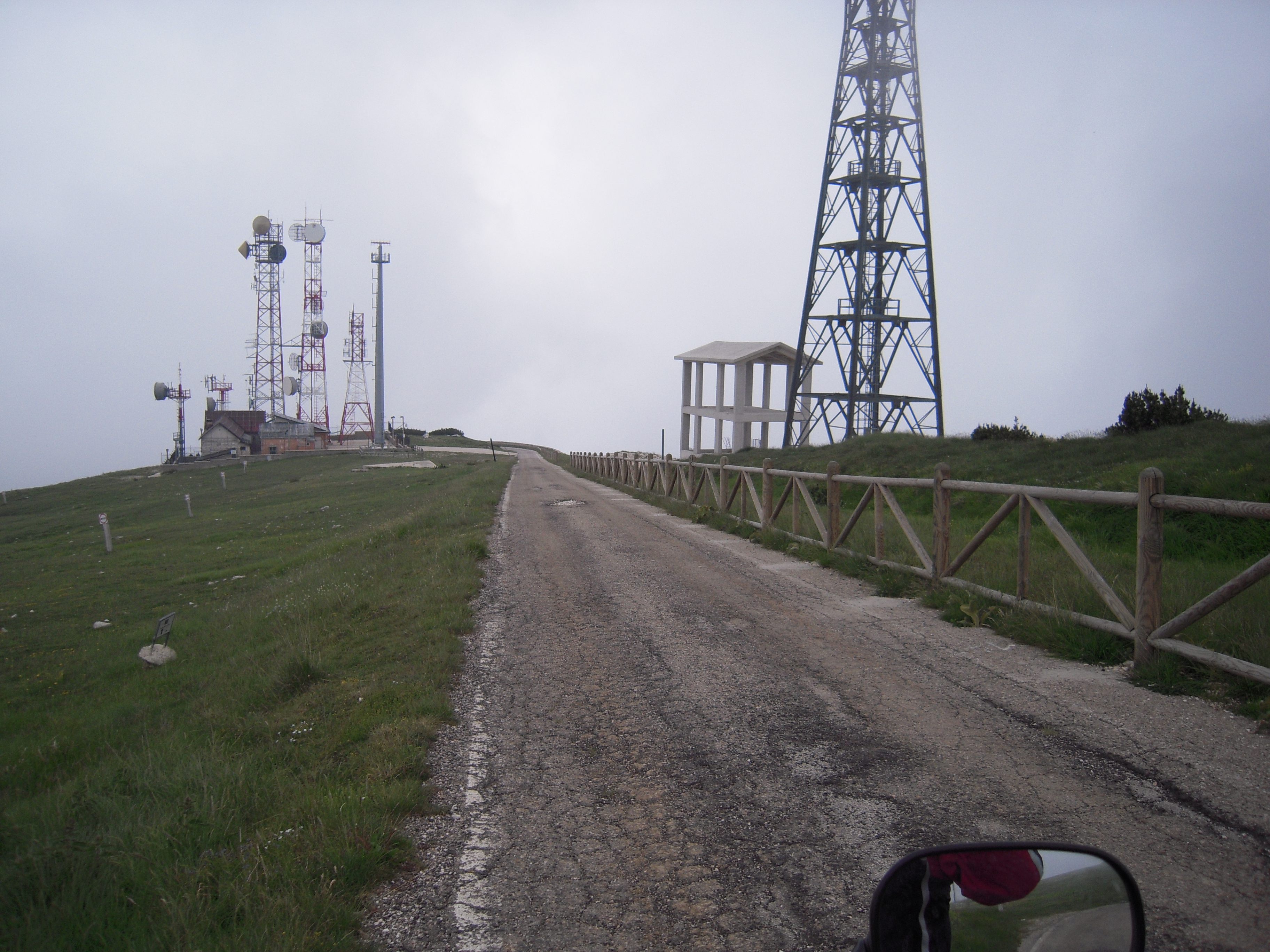 Ho continuato sulla Tiburtina nella caldissima piana di Sulmona e su fino a Scafa da dove ho iniziato la mia salita verso Passo Lanciano ed alla Maielletta, al Blockhaus. Ci sono stato un sacco di tempo. Il sole lascia il posto ad un cielo abbastanza coperto, sarà il gran caldo, ma non sembra dover piovere. La sorpresa sarà la salita sulla bella strada che da Passo Lanciano va su, nella nebbia delle nuvole basse, a tratti anche abbastanza fitta.