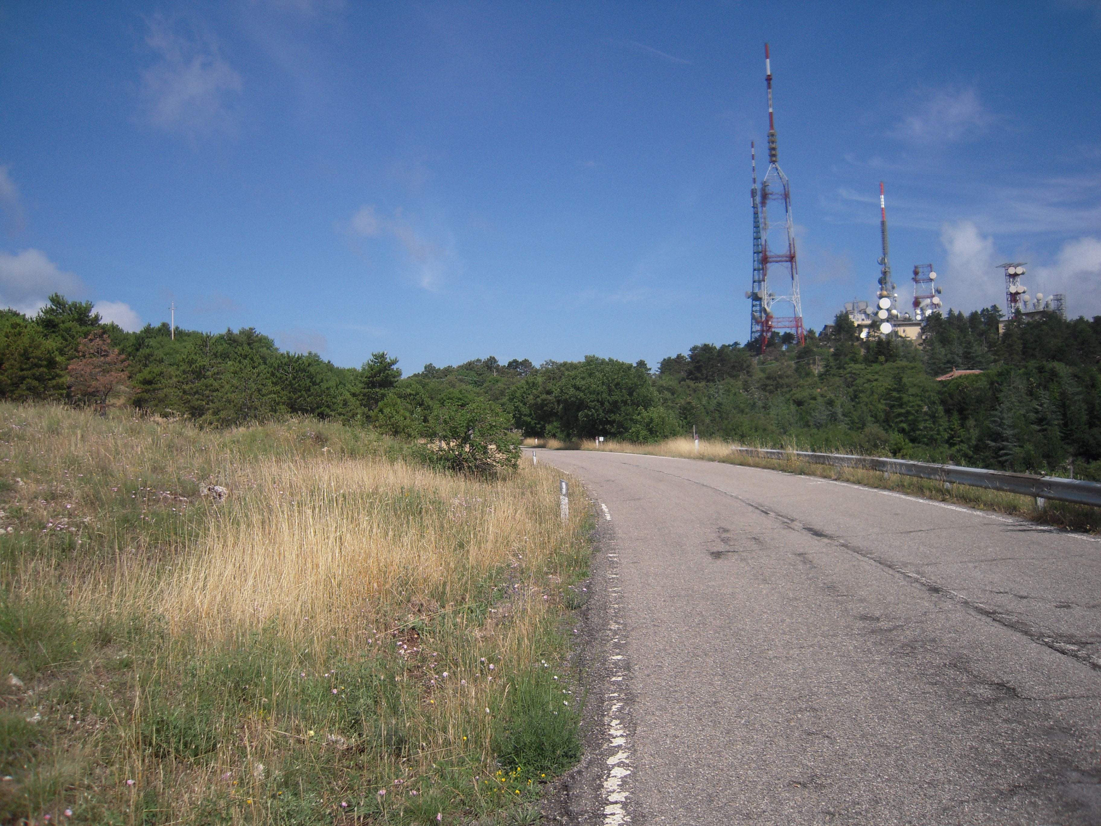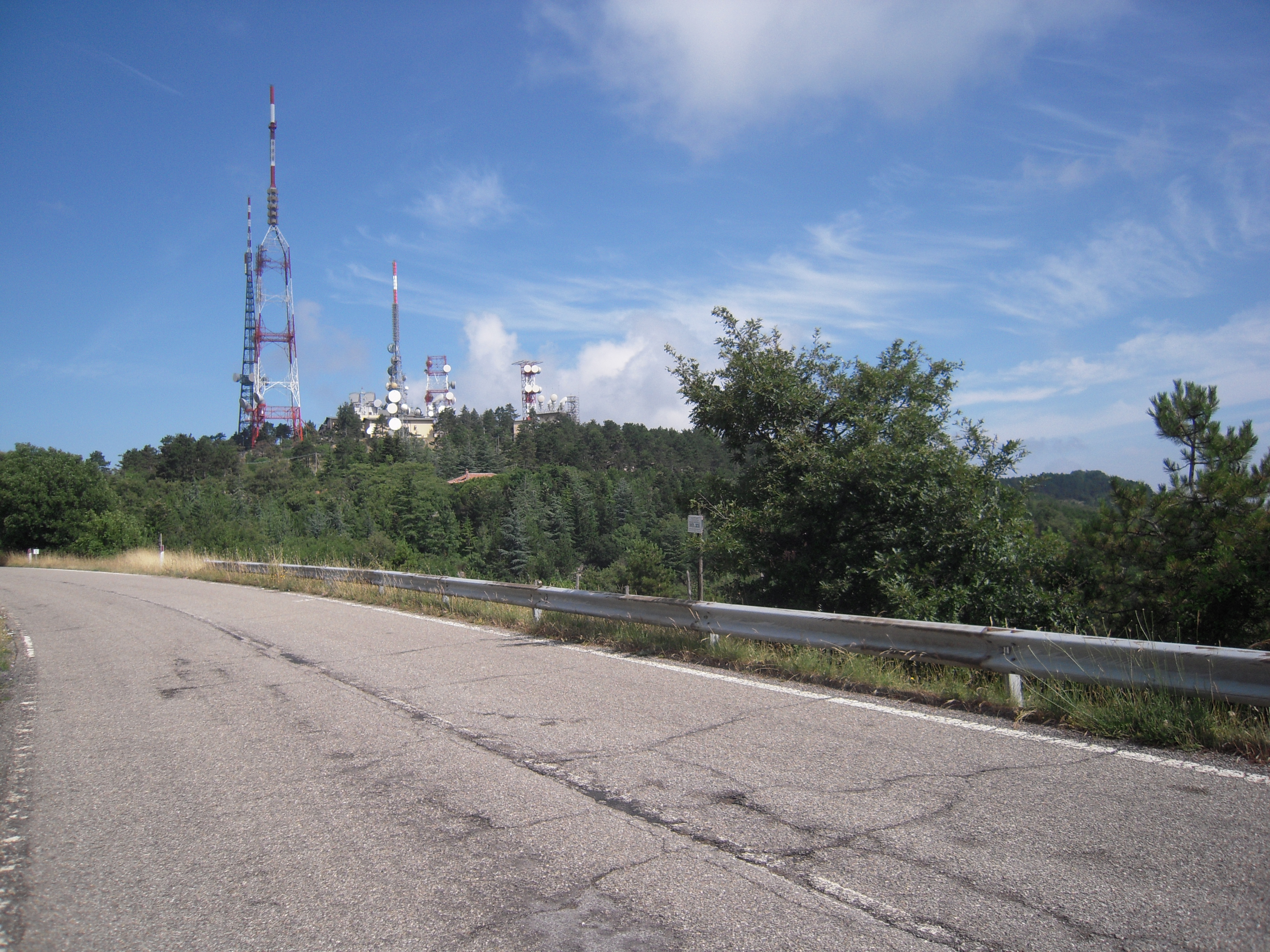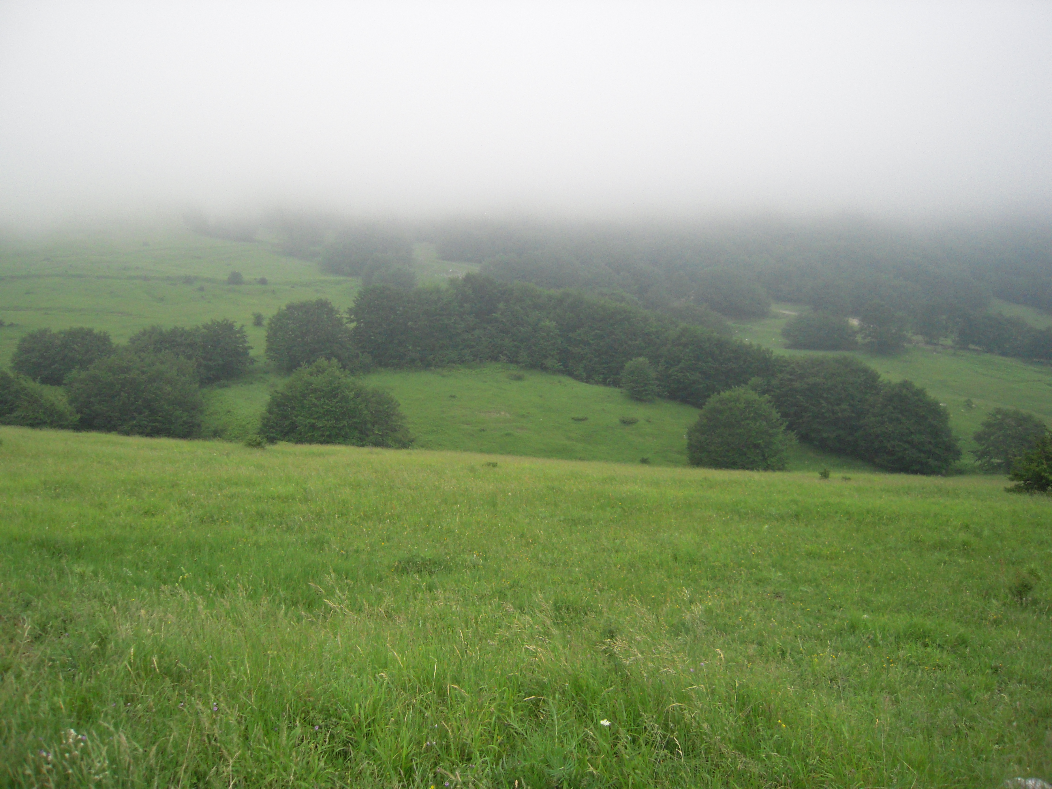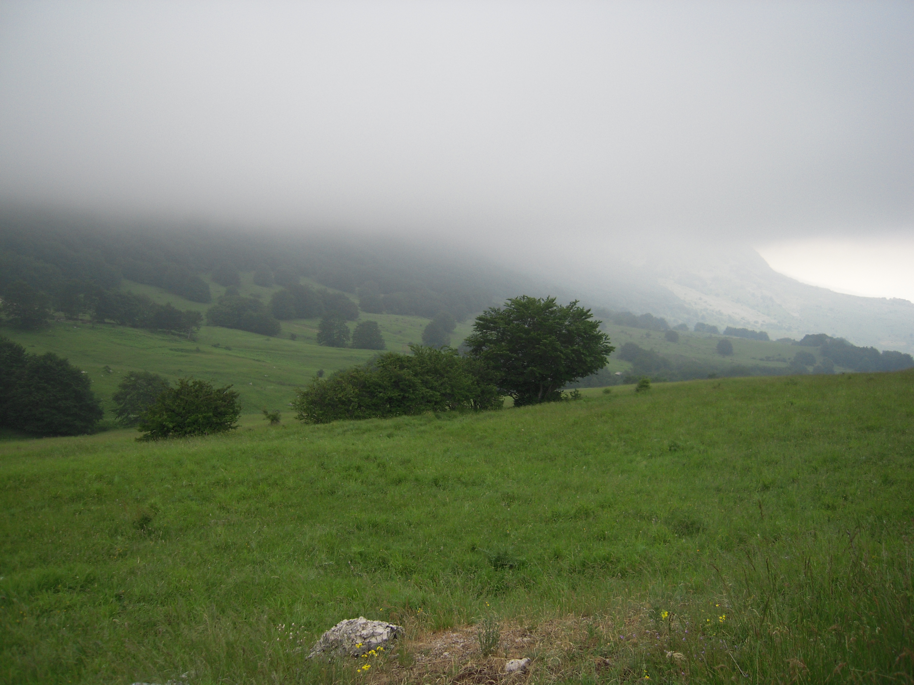 Ho continuato sulla Tiburtina nella caldissima piana di Sulmona e su fino a Scafa da dove ho iniziato la mia salita verso Passo Lanciano ed alla Maielletta, al Blockhaus. Ci sono stato un sacco di tempo. Il sole lascia il posto ad un cielo abbastanza coperto, sarà il gran caldo, ma non sembra dover piovere. La sorpresa sarà la salita sulla bella strada che da Passo Lanciano va su, nella nebbia delle nuvole basse, a tratti anche abbastanza fitta.