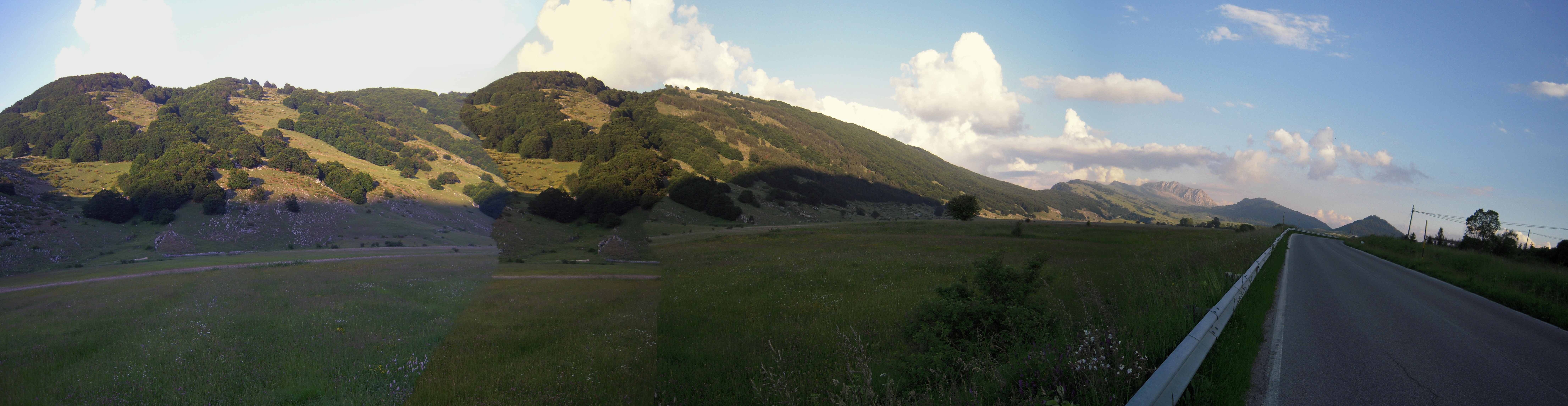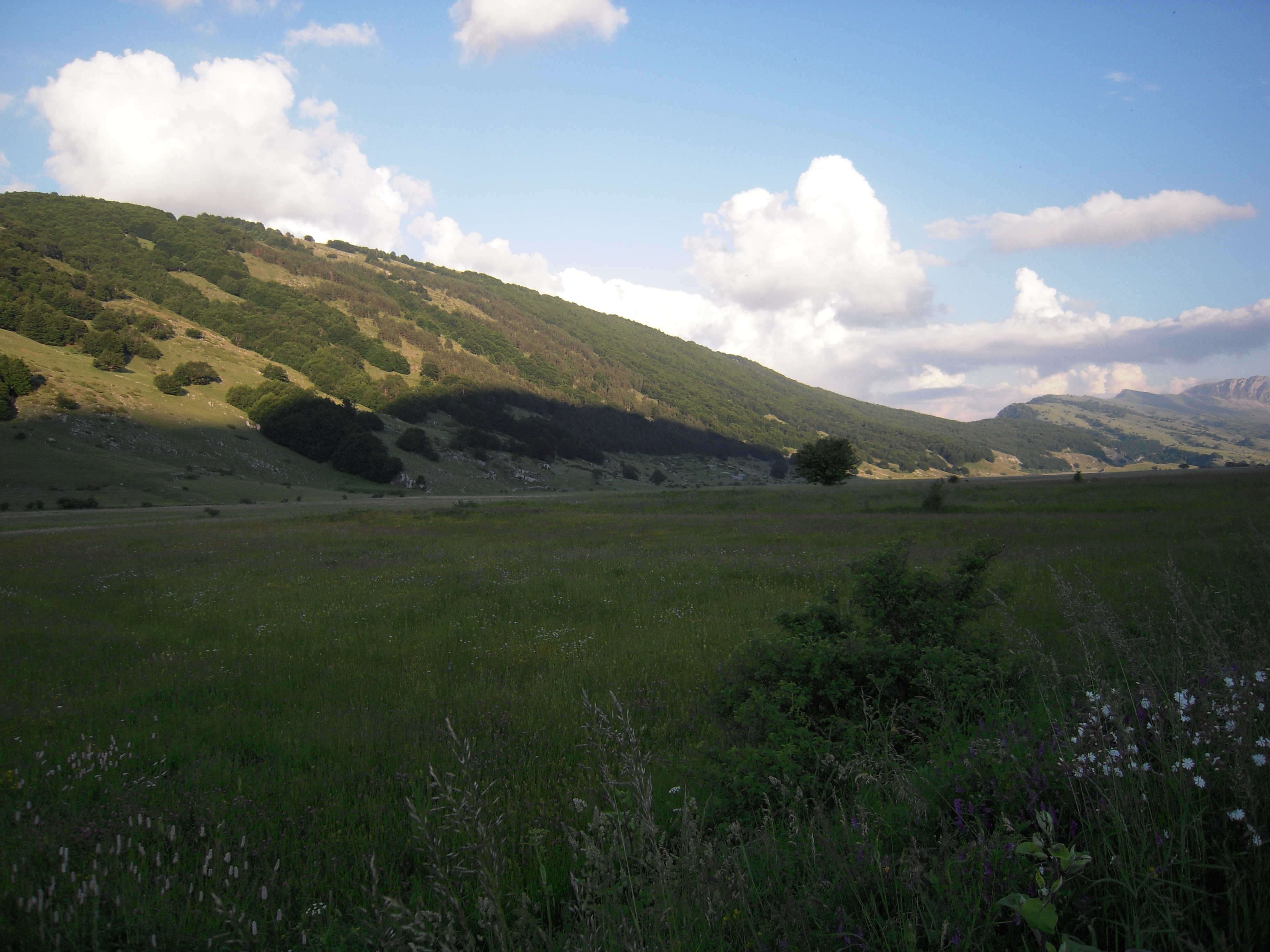 E così salgo sulla statale che mi porterà ancora una volta in quota: ai 1400 metri circa dell’altopiano delle Rocche. Che panorami meravigliosi quei prati orlati da cime più o meno imponenti.