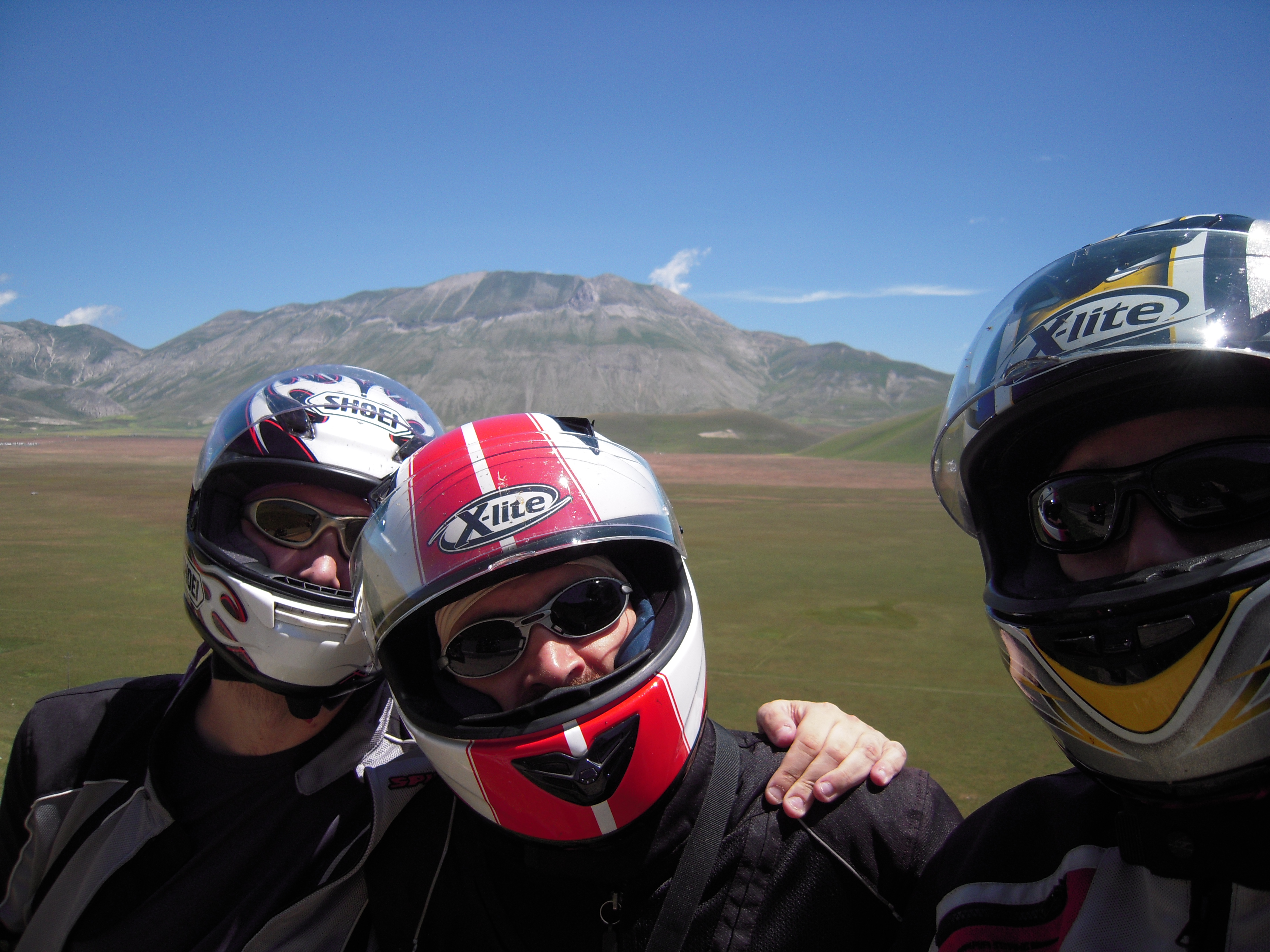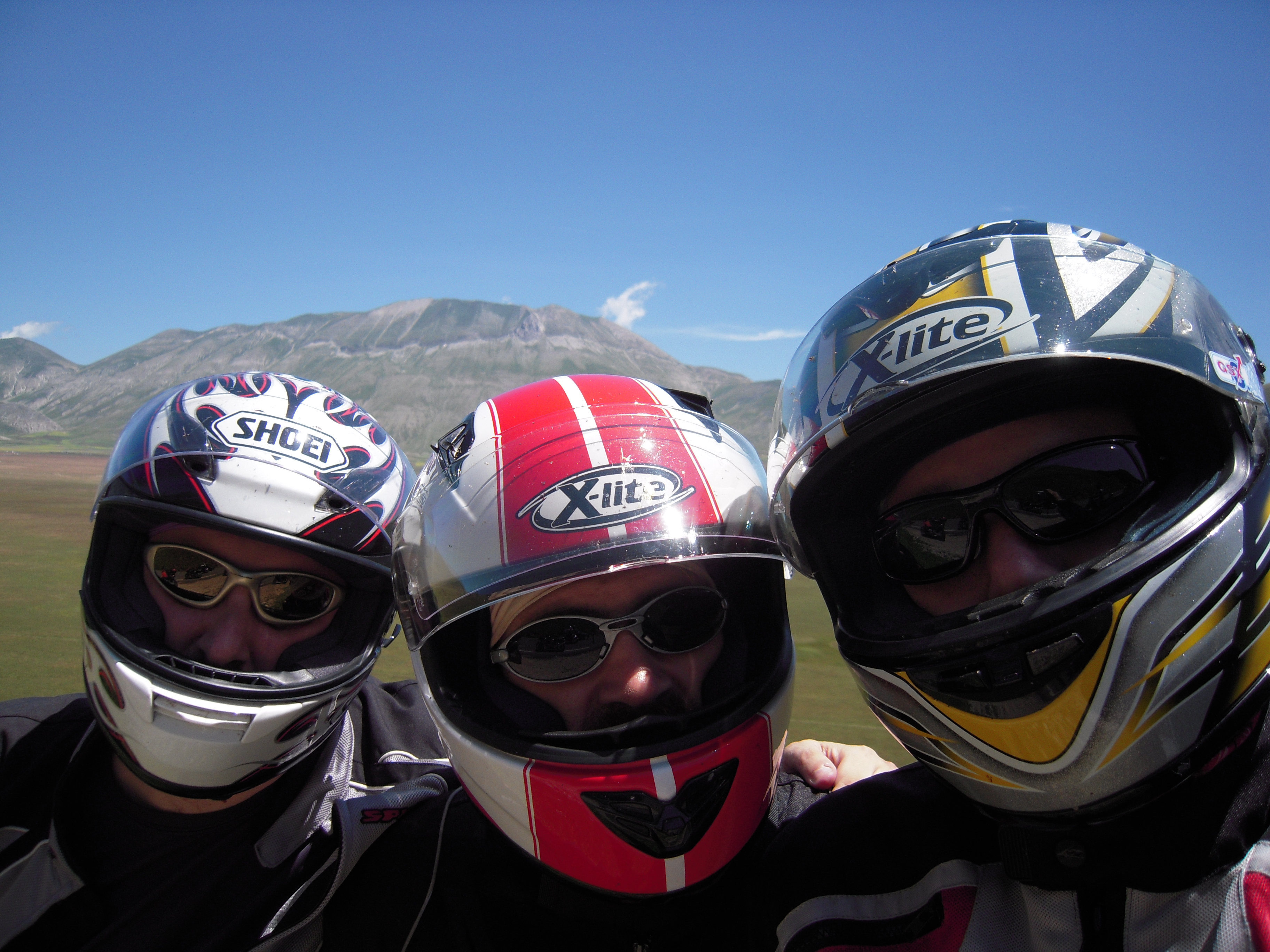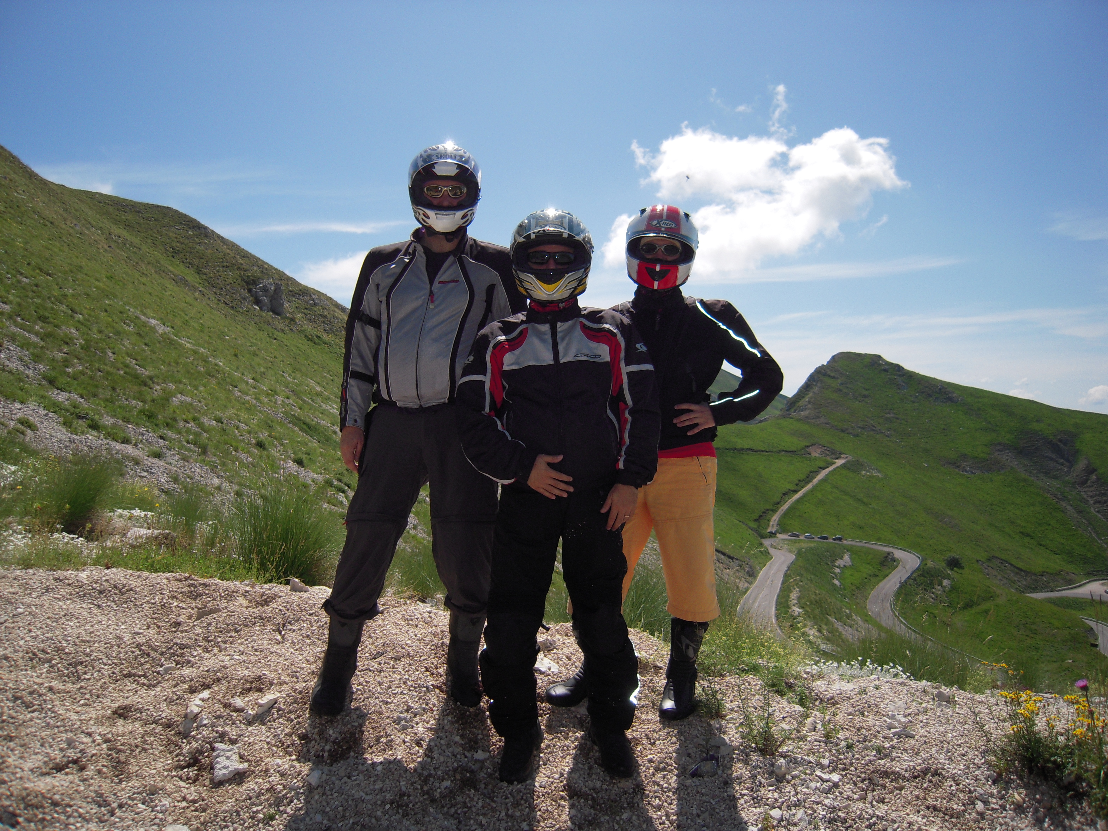Dalle foto potrete vedere l’abbigliamento tecnico estivo di Barnaba e di Alberto: giubbetto in cordura, guanti tecnici, casco integrale ovviamente, stivali da moto e…pinocchietti in cotone leggero. A quando le infradito?!? Sono rimasto basito.
