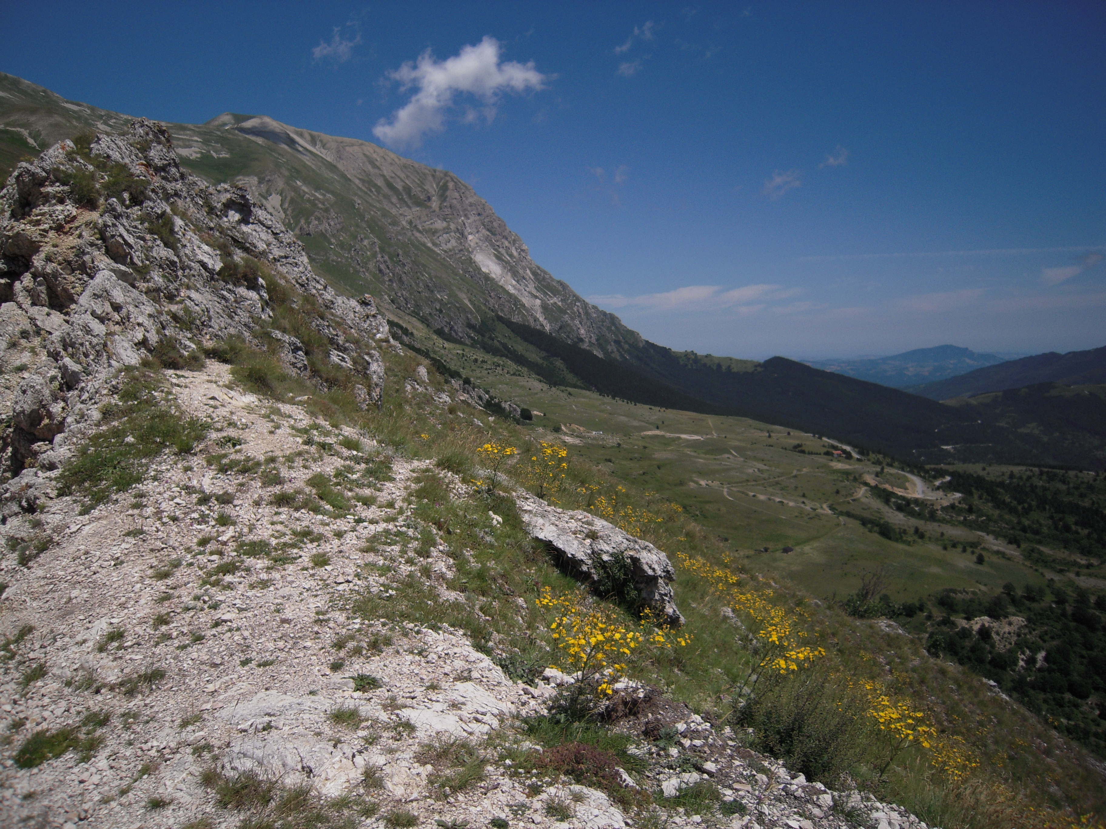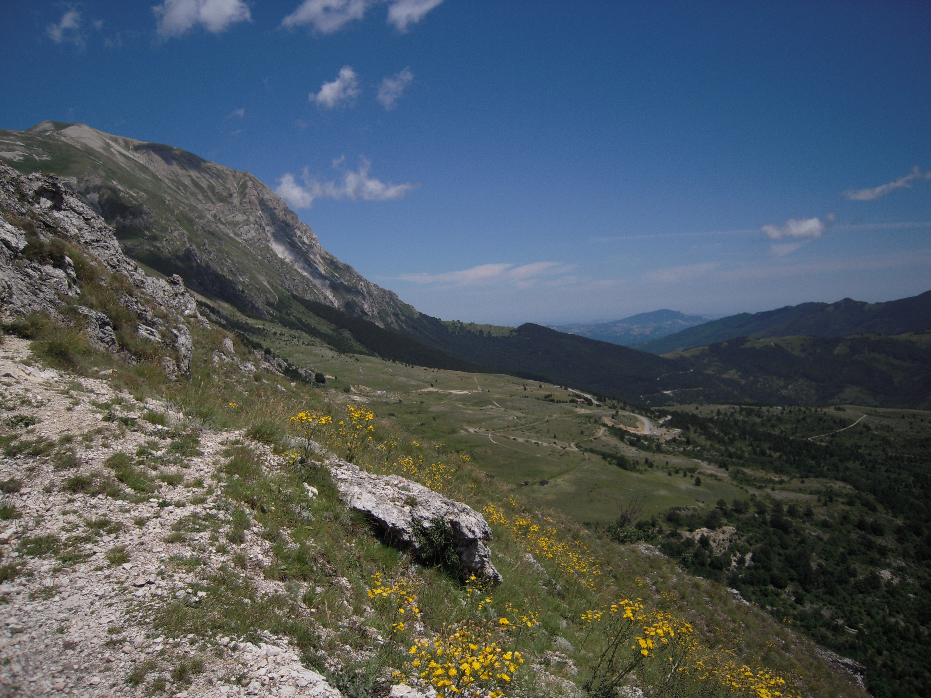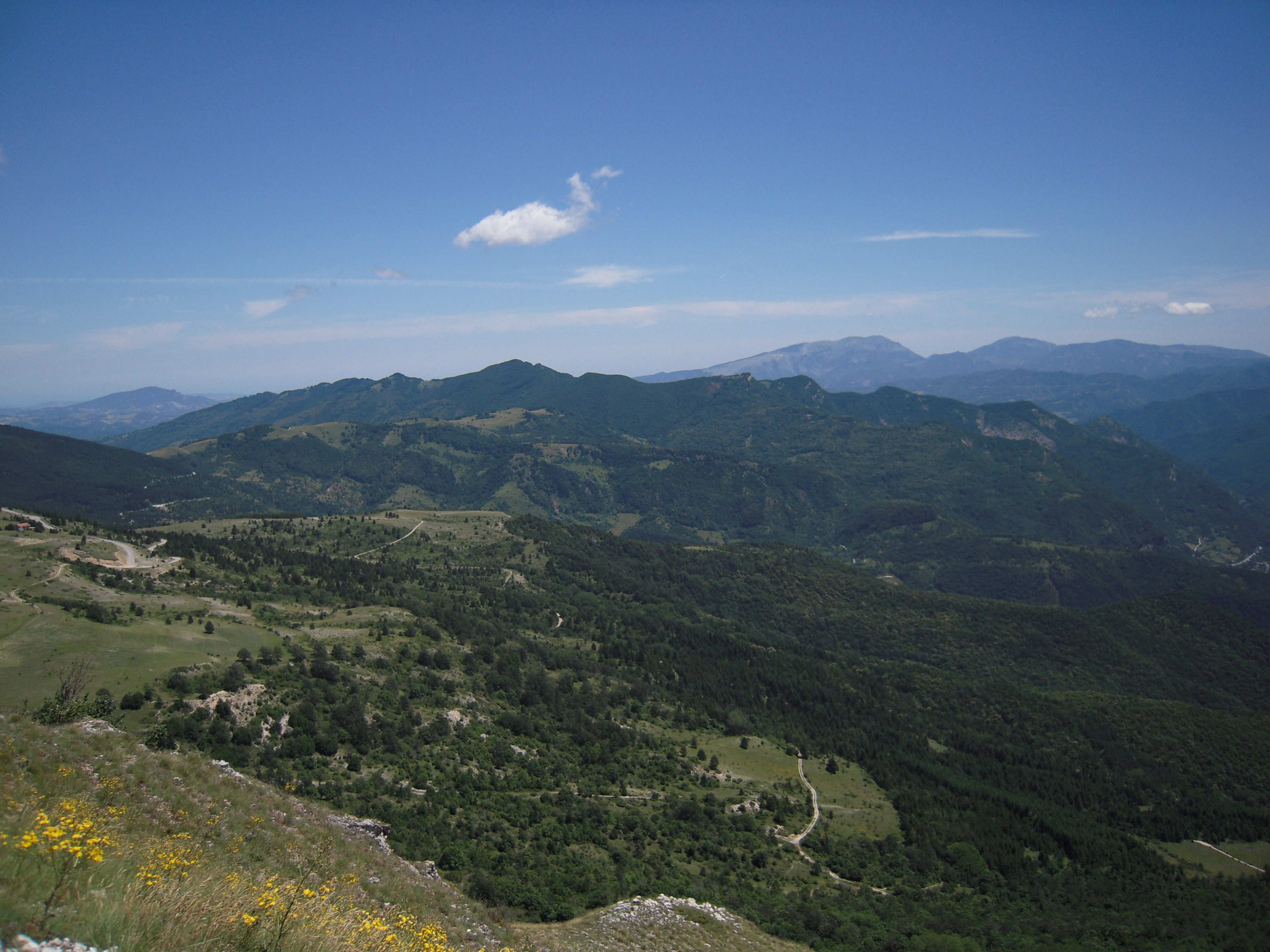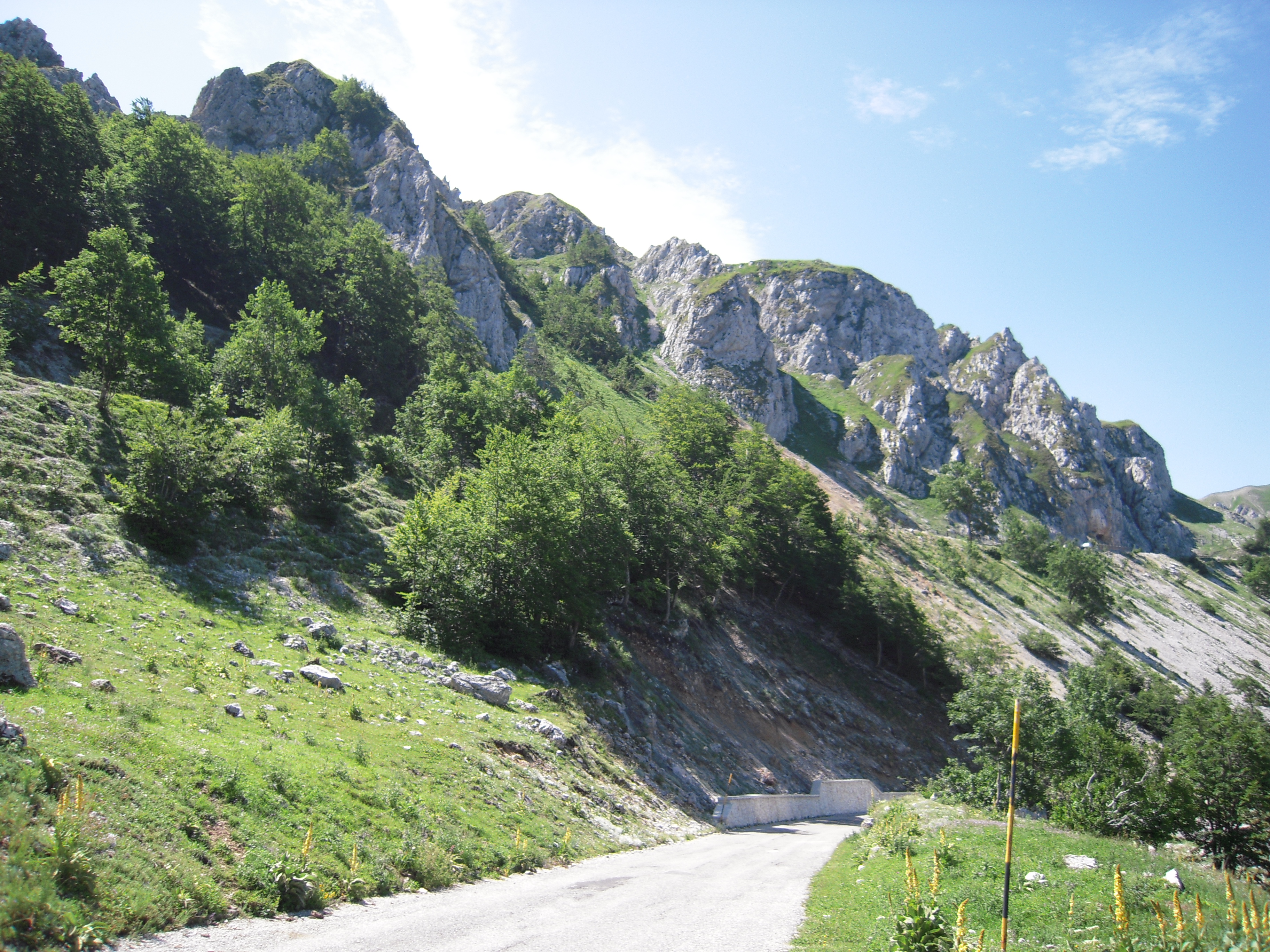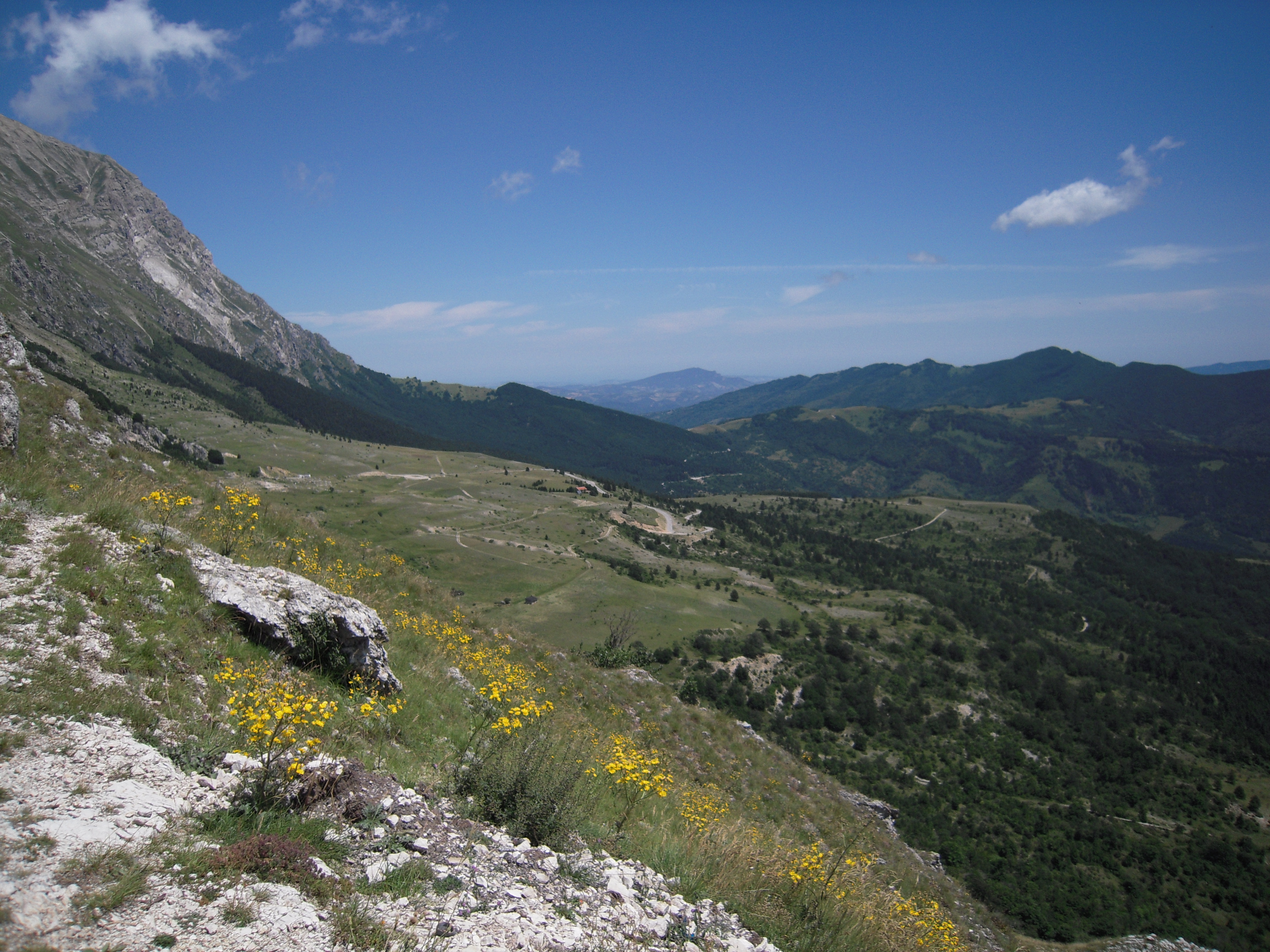 Oltrepassato il nucleo industriale di Rieti la salita al Monte Terminillo è divertentissima con i suoi passaggi nel bosco ed i tornanti che rapidamente portano fino a Pian de’ Valli. Da lì in poi con calma si godono i paesaggi che portano in cima al valico di Leonessa: la sosta al rifugio del CAI almeno per un caffè è quasi obbligatoria. Non dimenticherò mai l’emozione del maggio 2006 quando trovammo la strada contornata da muri di neve alti quasi 2 metri e dovemmo tornare indietro perché il valico era ancora chiuso!