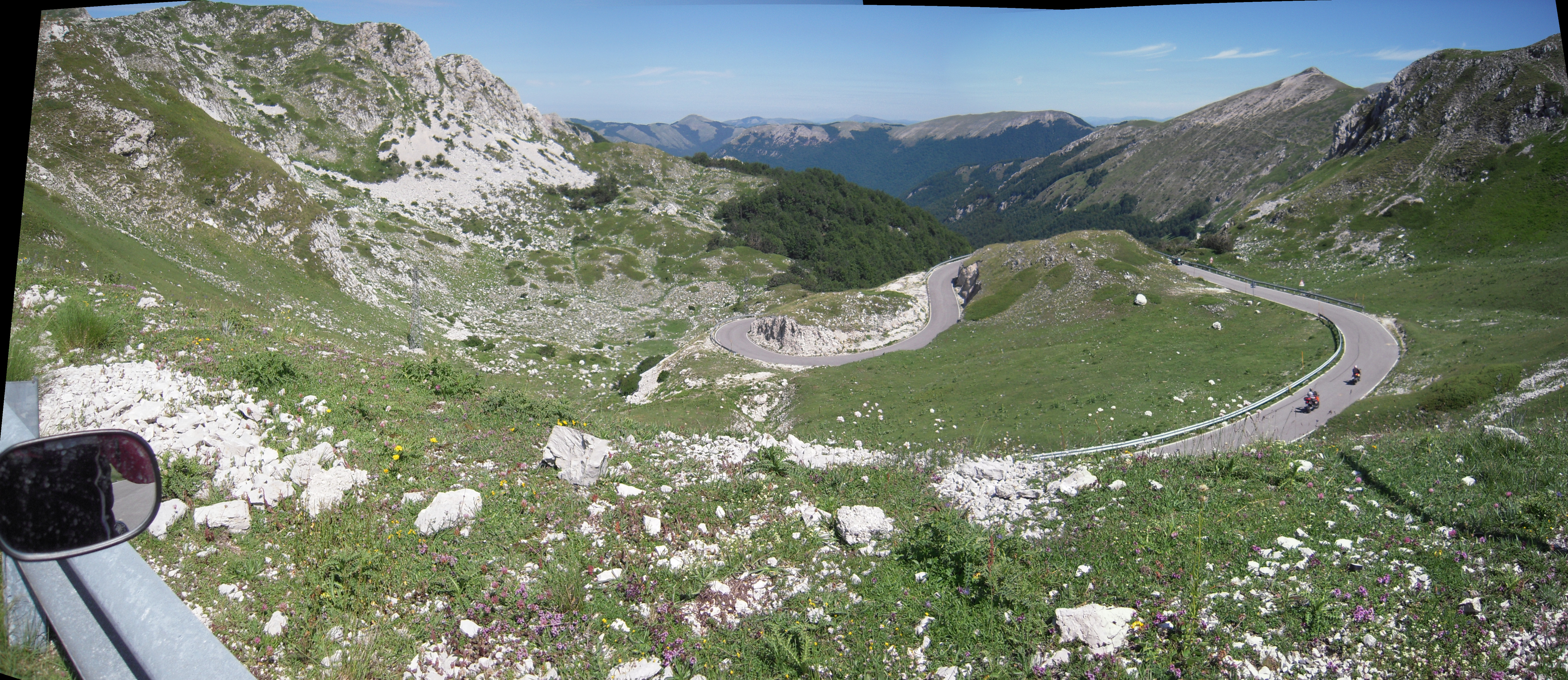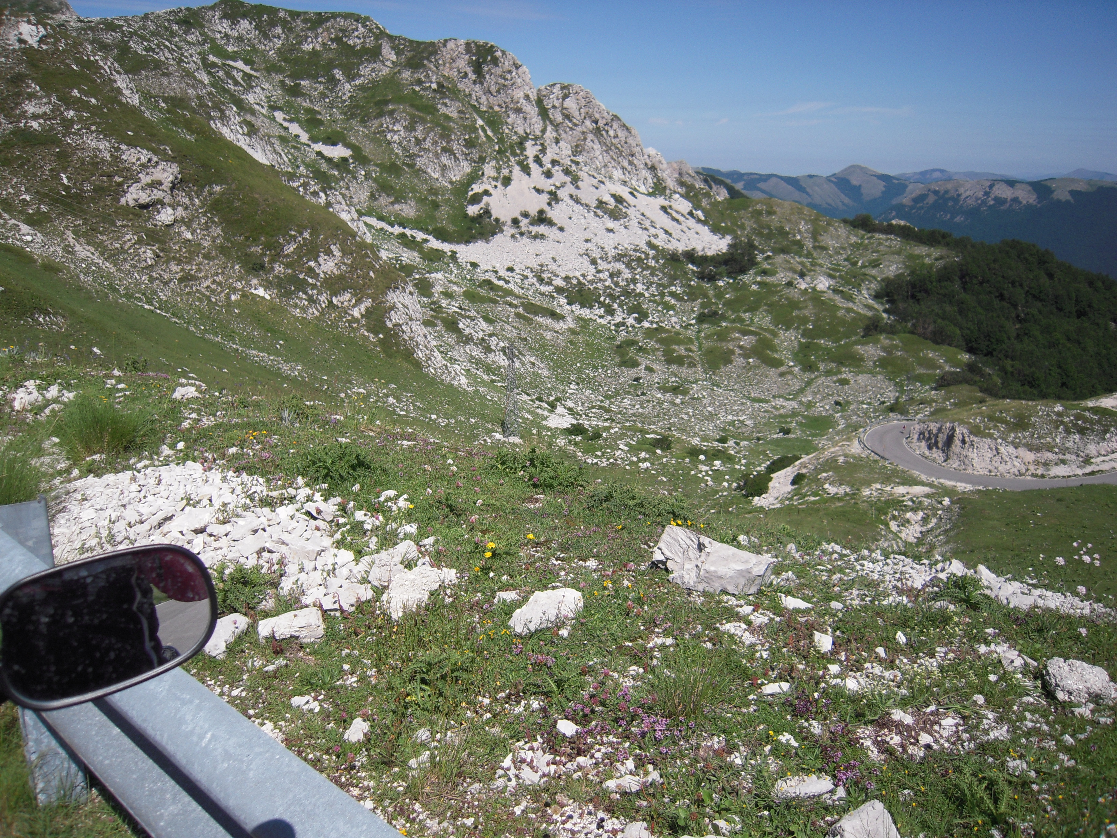 La SS 81 da Ascoli a Teramo l’avevo fatta un paio d’anni fa con Andrea. Bellissima. Se non fosse per i centri abitati che ogni tanto costringono a rallentare sarebbero decine di km davvero divertenti! Per non parlare del naturale proseguimento di questo circuito sulla SS 80 verso l’Aquila da dove, sarebbe meta pressoché obbligata la salita agli altopiani di Pietracamela da dove si gode una vista sul Corno Grande dal versante opposto del massiccio del Gran Sasso; anche se la cosa richiede un’andata e ritorno sullo stesso breve tratto di strada che non ha sbocchi. Ma stavolta glielo evito anche se il sottoscritto ne aveva voglia.