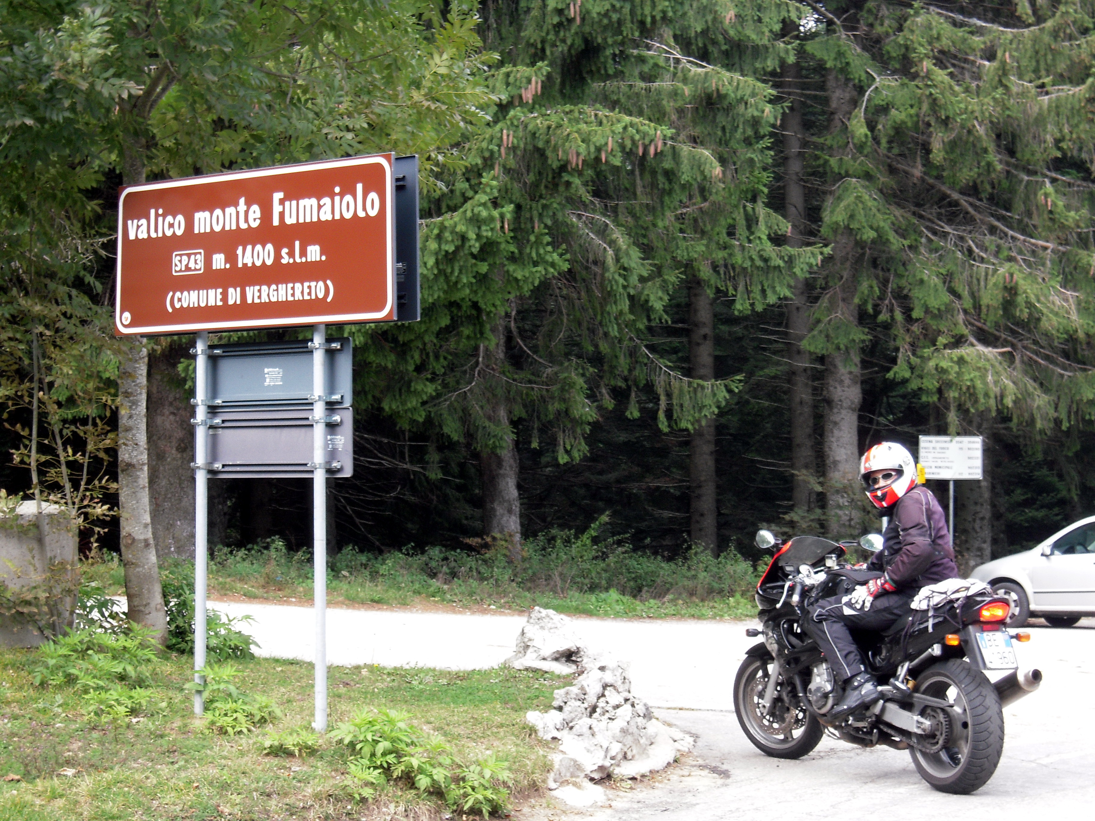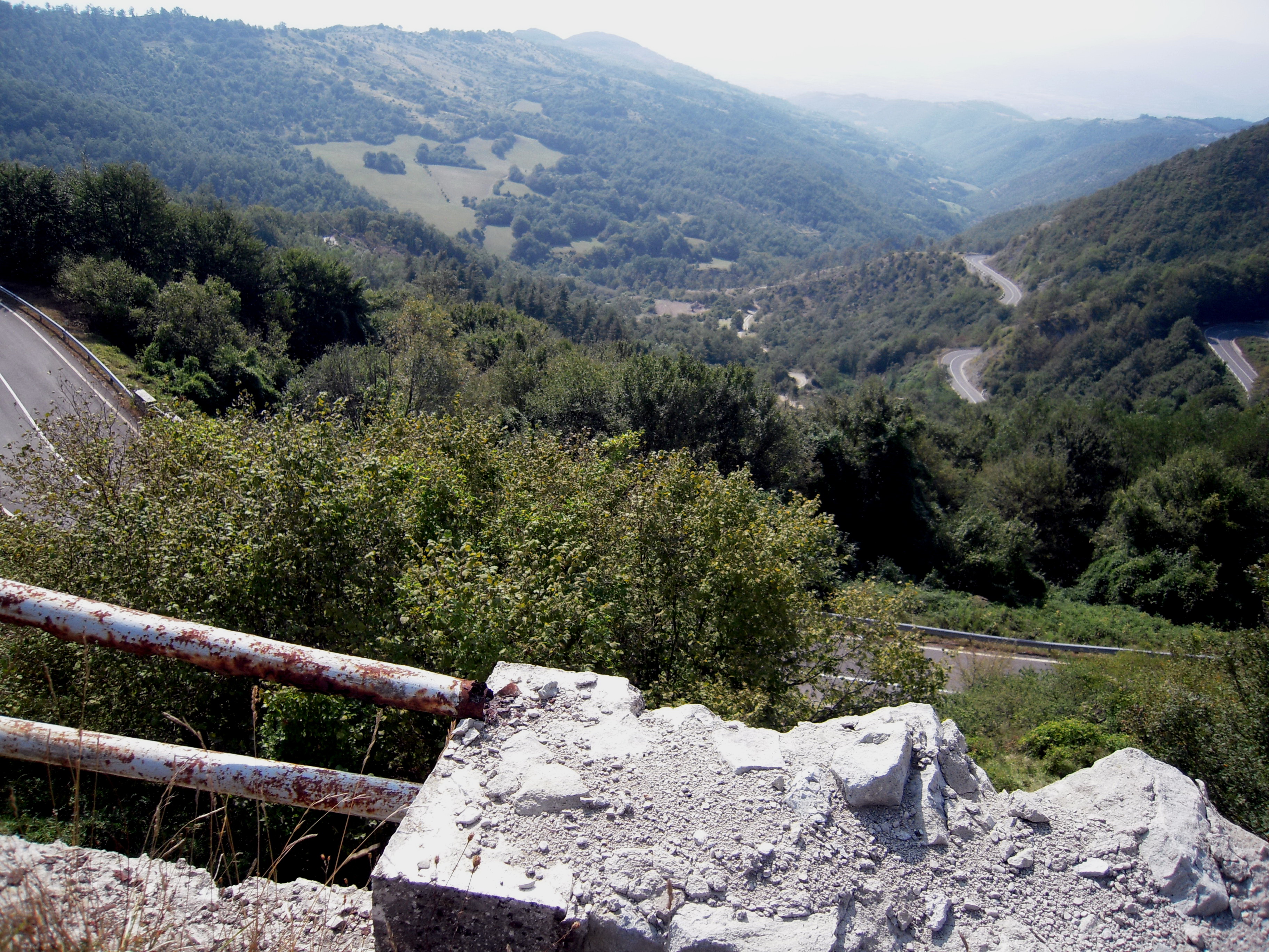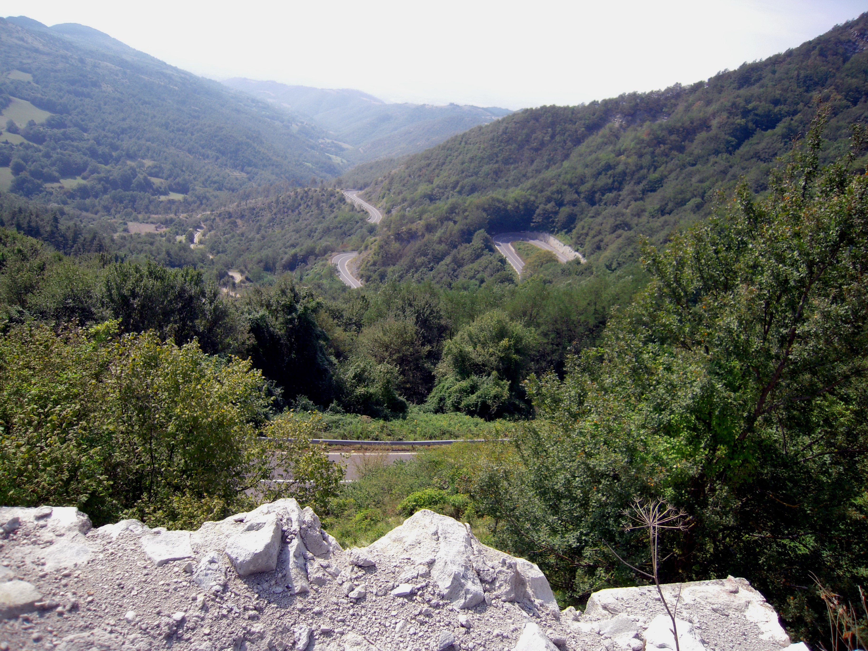 Da Bocca Trabaria ci dirigiamo verso Urbania perché torneremo indietro dal valico di Bocca Serriola che dalla valle del Metauro risale verso la dorsale che sapara dall’Umbria all’altezza di Sansepolcro. Da qui il valico di Viamaggio di nuovo verso le Marche è quasi obbligato e risaliamo fino al valico del Monte Fumaiolo. Sono stato tempo fa, ero in macchina, alle sorgenti del Tevere, un posto molto bello.