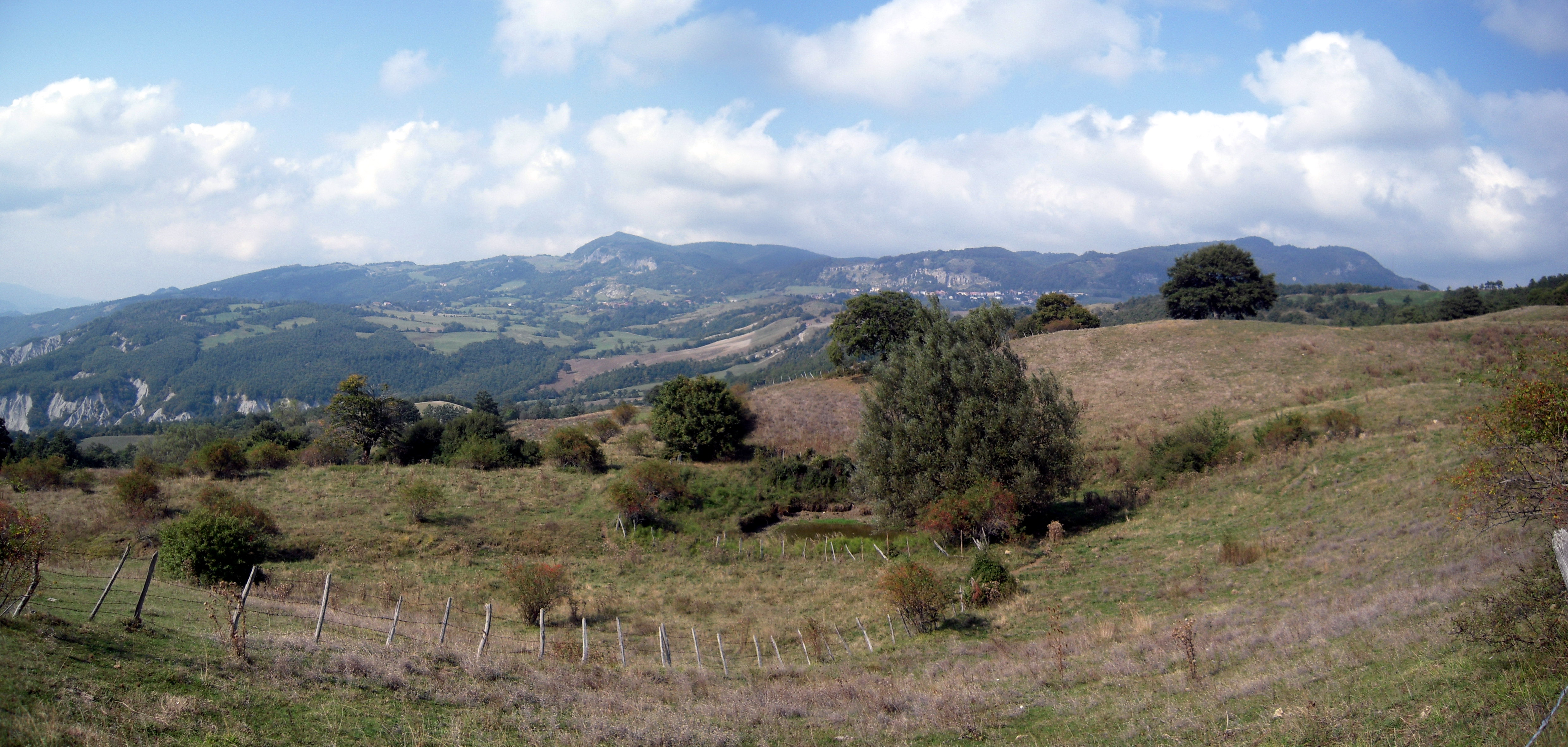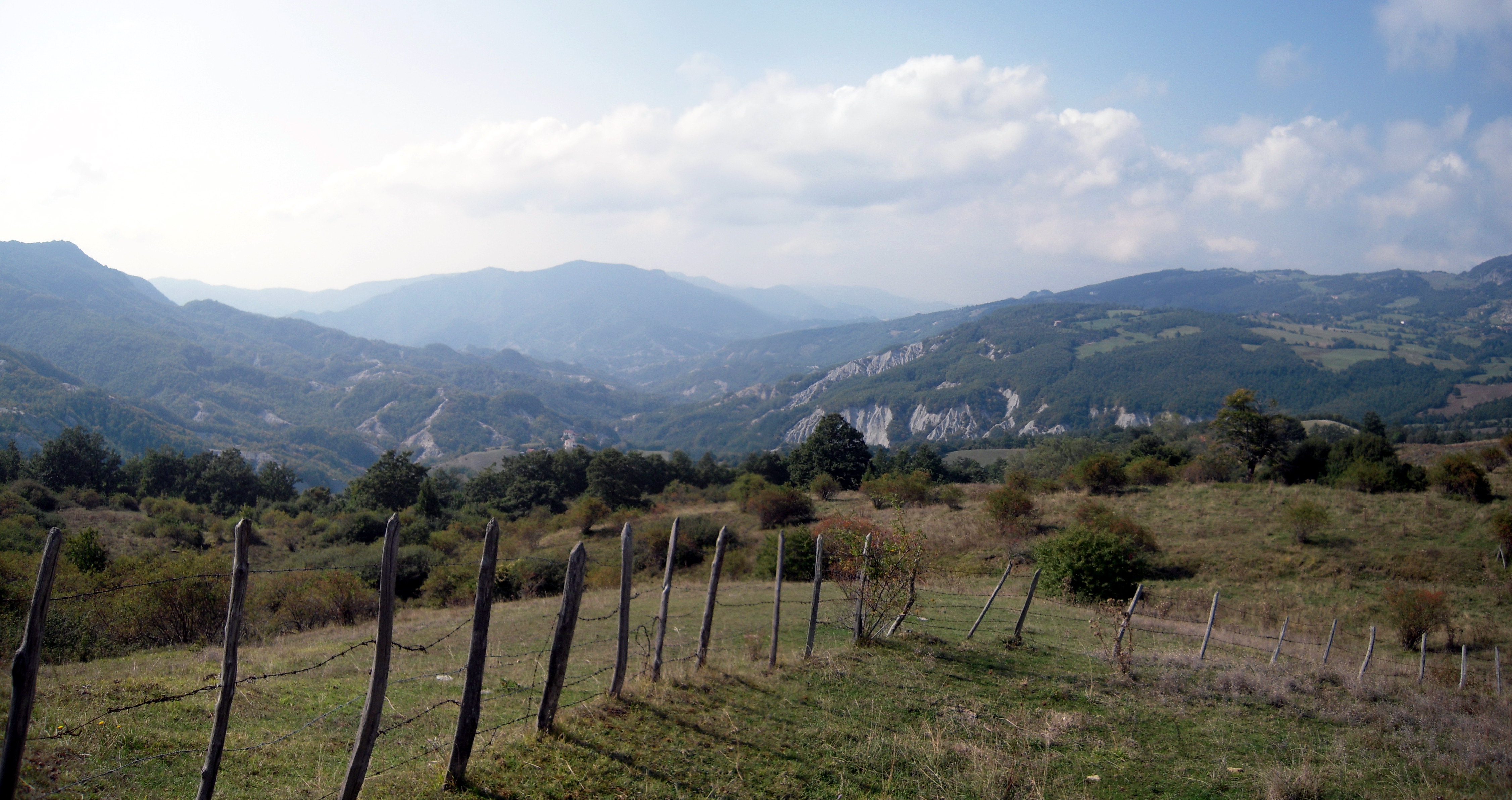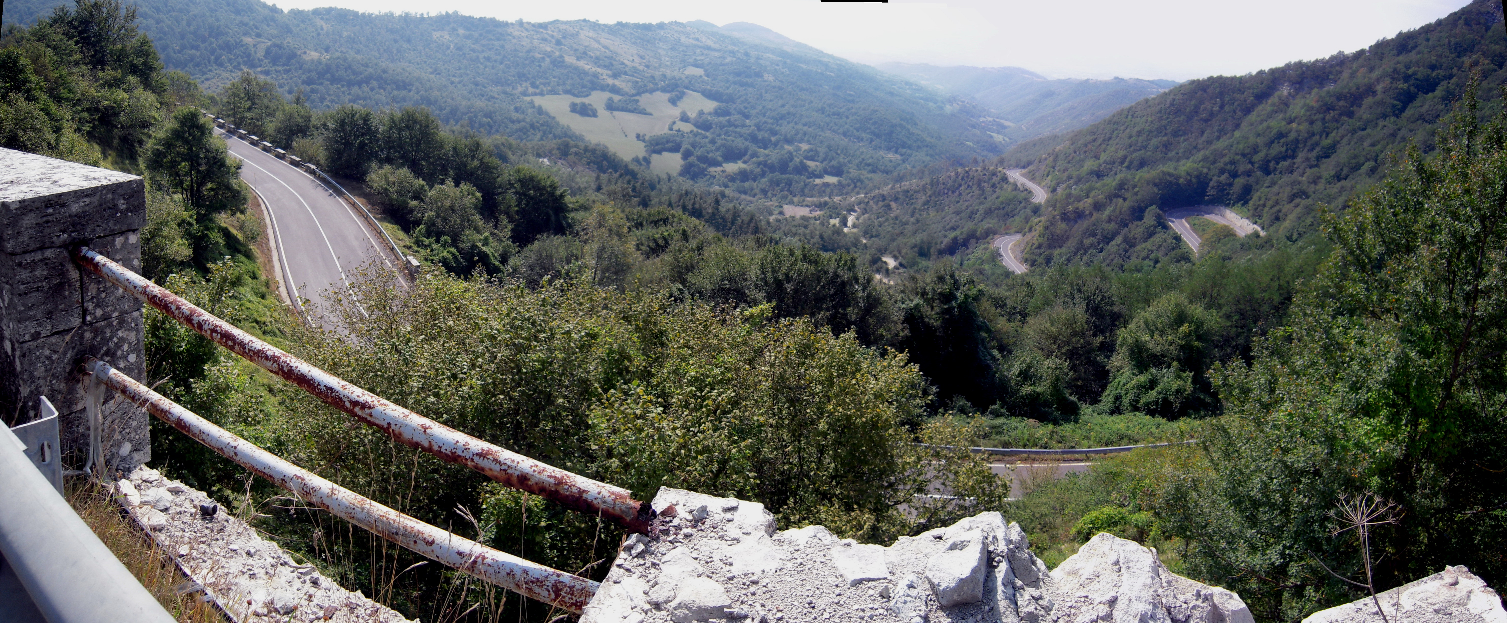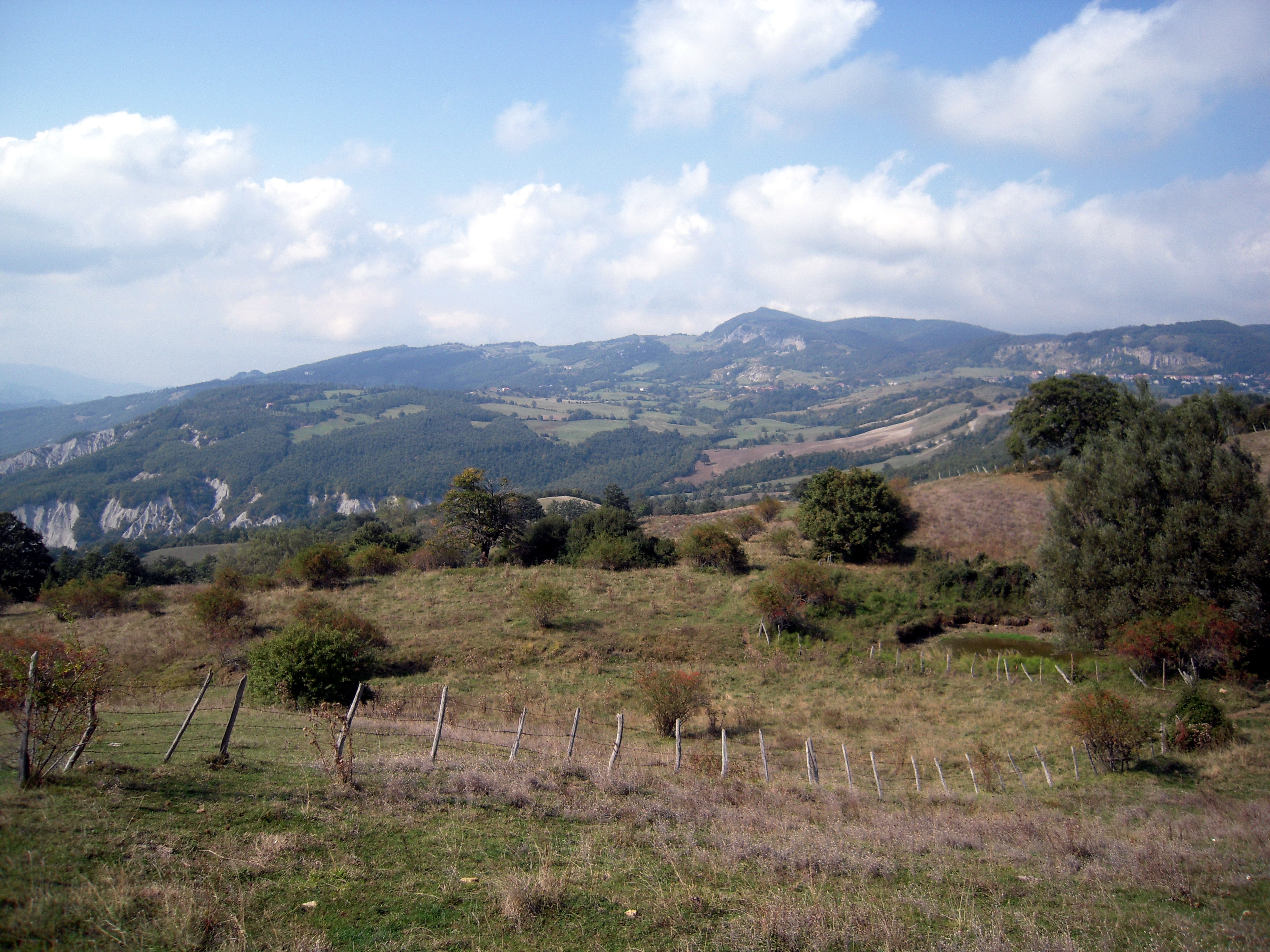 Da Bocca Trabaria ci dirigiamo verso Urbania perché torneremo indietro dal valico di Bocca Serriola che dalla valle del Metauro risale verso la dorsale che sapara dall’Umbria all’altezza di Sansepolcro. Da qui il valico di Viamaggio di nuovo verso le Marche è quasi obbligato e risaliamo fino al valico del Monte Fumaiolo. Sono stato tempo fa, ero in macchina, alle sorgenti del Tevere, un posto molto bello.