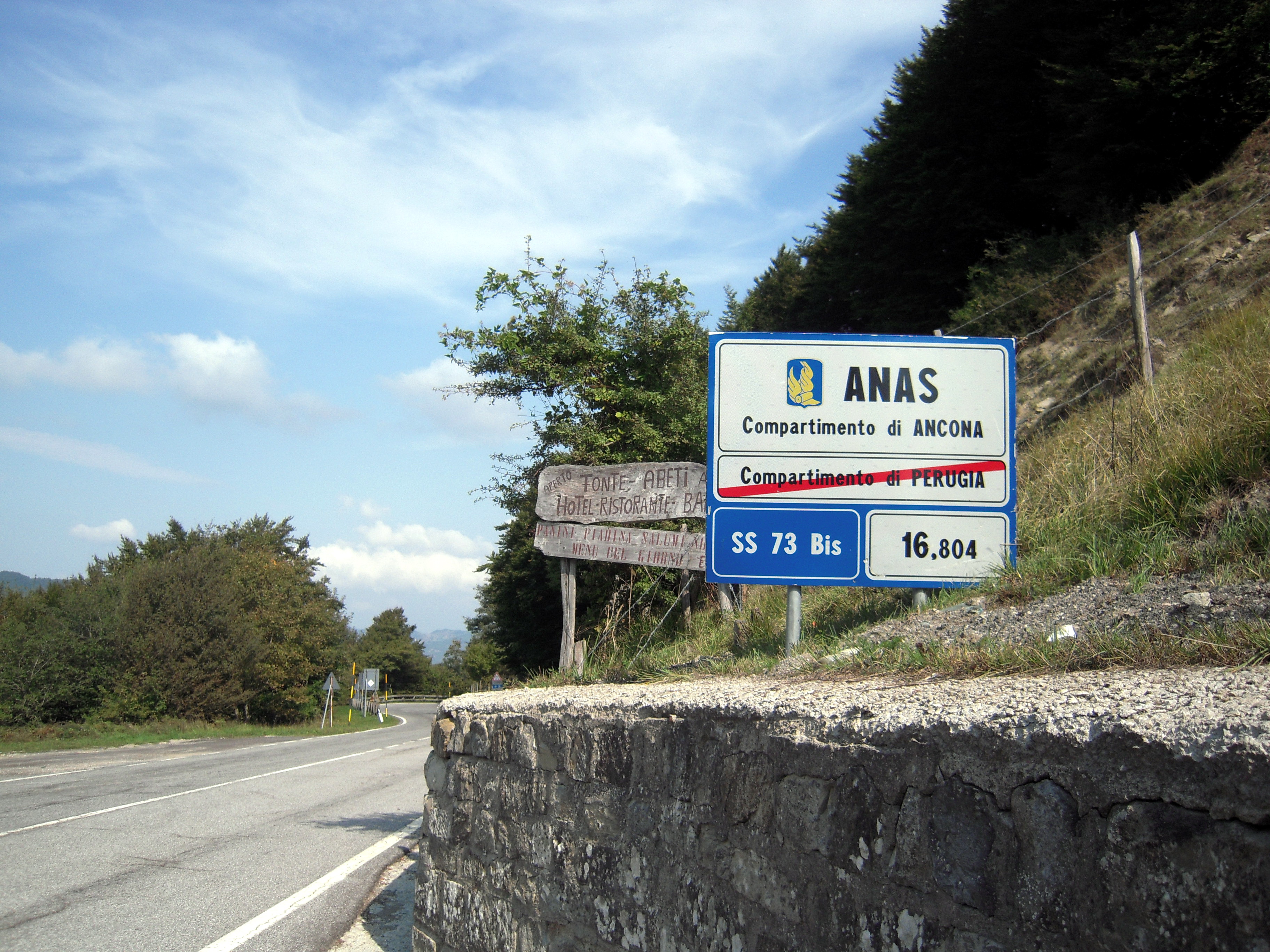 Raggiungiamo l’E45 perché la nostra vera meta sono i passi che zigzagano tra Umbria e Marche e così a Città di Castello affrontiamo subito la SS 73 di Bocca Trabaria che è sempre un gran ben percorrere: sempre l'anno scorso lo percorsi per la prima volta, insieme ai due conoscenti romagnoli del Forum che ormai non frequento più quando mi feci una due giorni motociclistica davvero intensa.