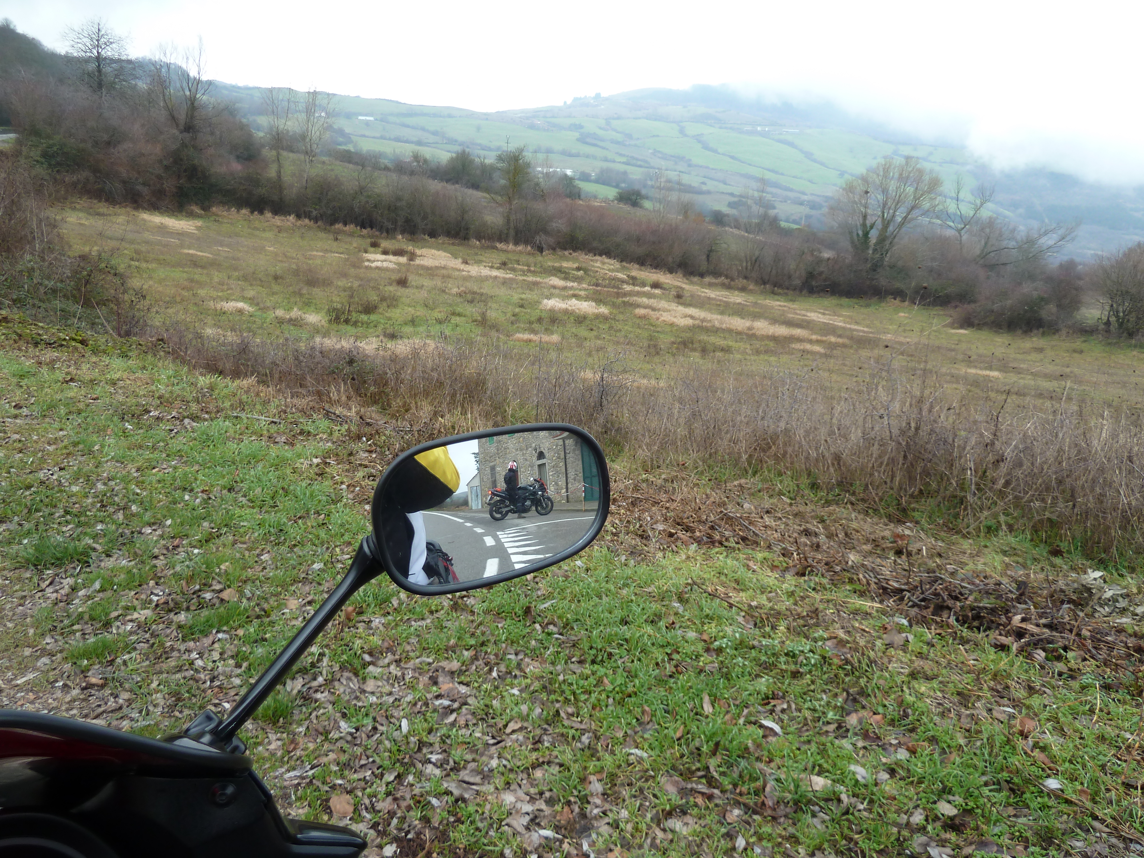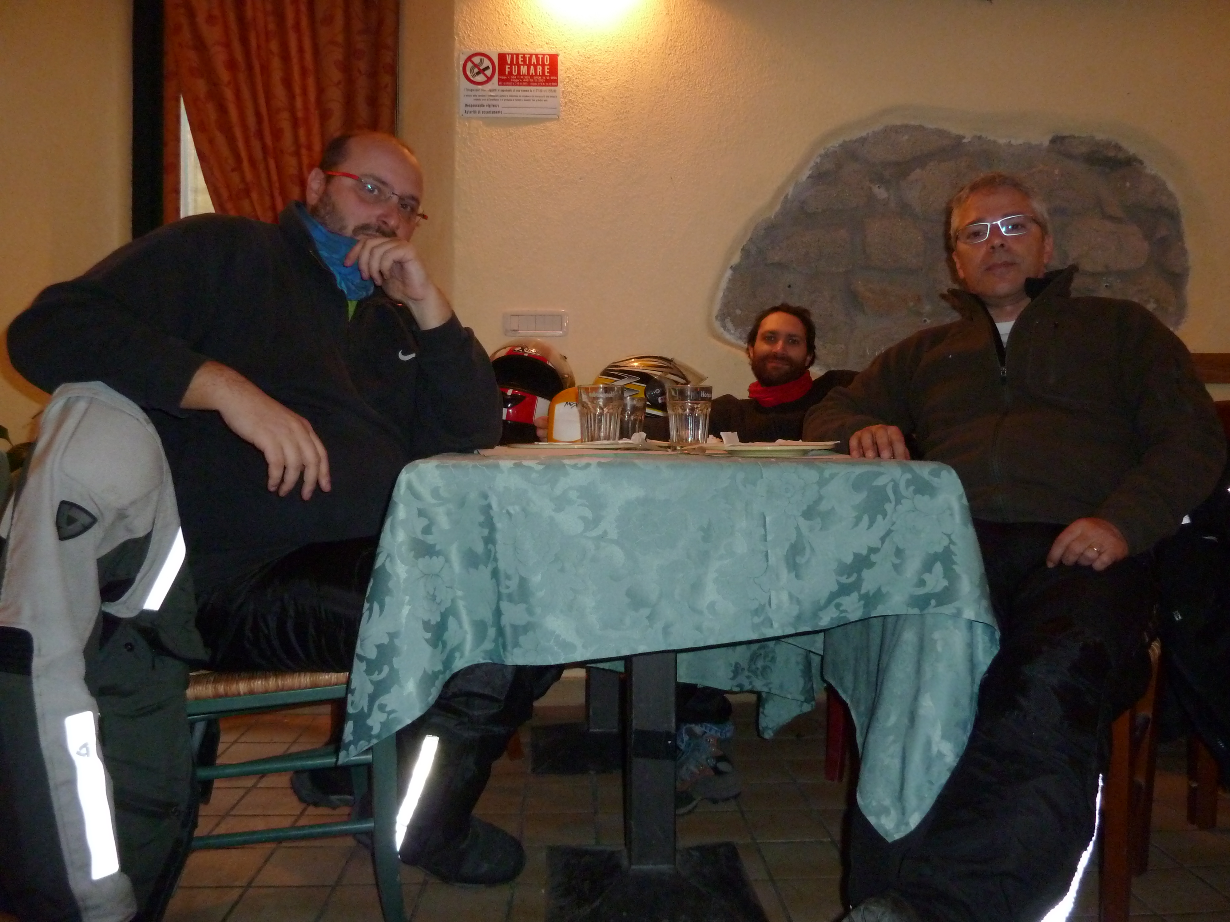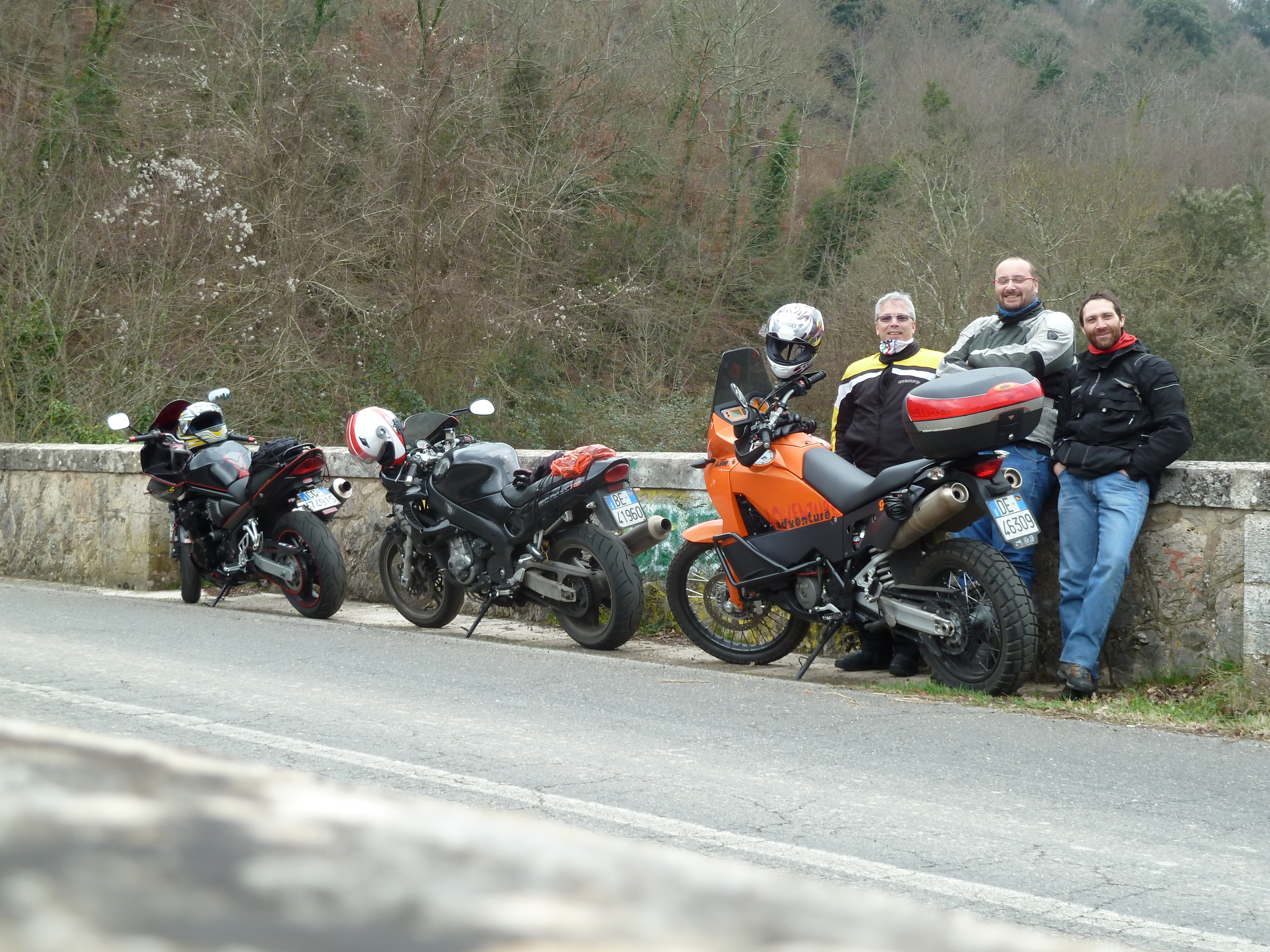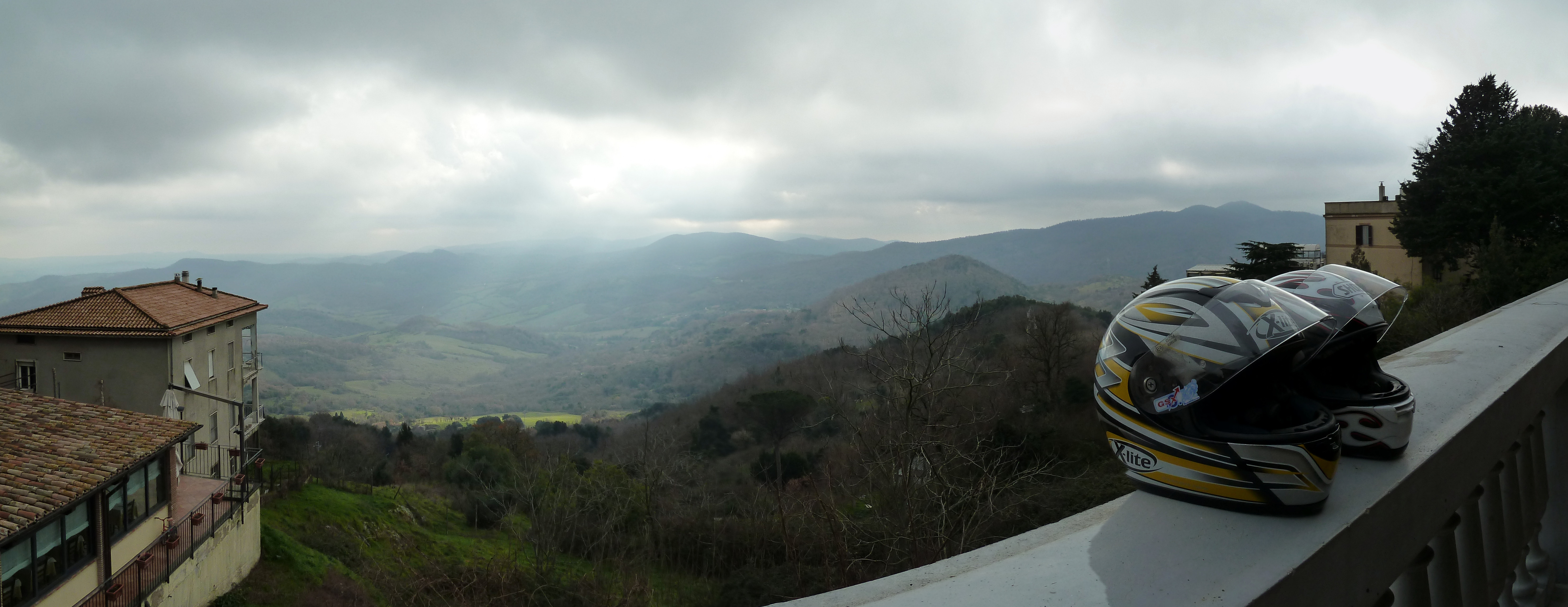Ci avviamo verso nord e raggiungiamo rapidamente Santa Severa di A12 e una volta tanto non devo fare decine di km per arrivare all’appuntamento! Da lì saliamo su una delle strade più contestate dai motociclisti romani: quella che sale a Tolfa. Chi la trova entusiasmante e chi la trova, come Alberto, pessima e pericolosa. Per me è una via di mezzo, ha qualche passaggio interessante, il paesaggio è discreto ma per lo più è fatta di strada troppo stretta e troppo costellata di mucche e dei loro escrementi che in curva non sono affatto…simpatici. Inoltre da un po’ è spesso sporca di fango portata dalle ruote dei numerosi fuori strada che da quelle parti hanno un circuito loro dedicato.