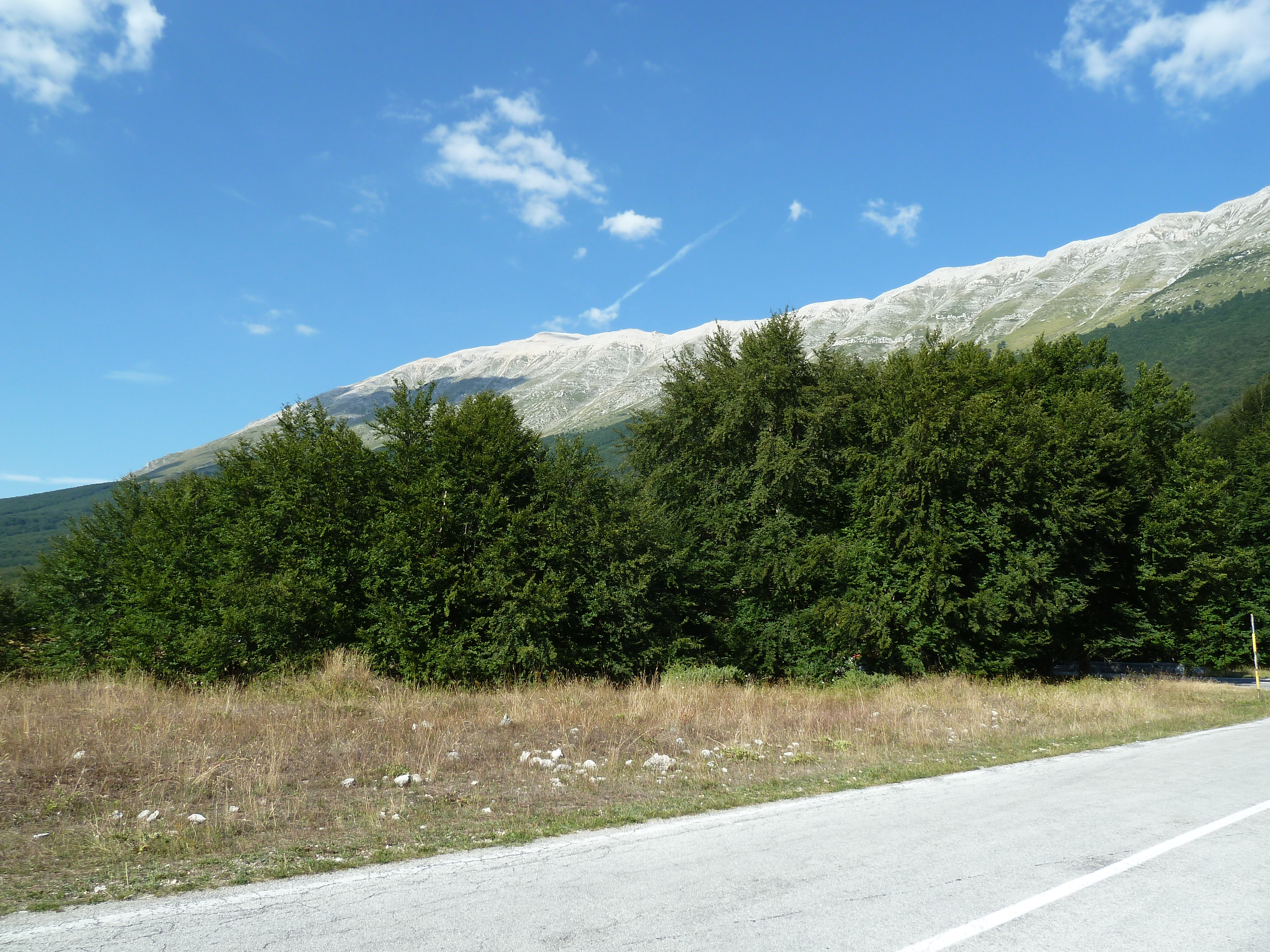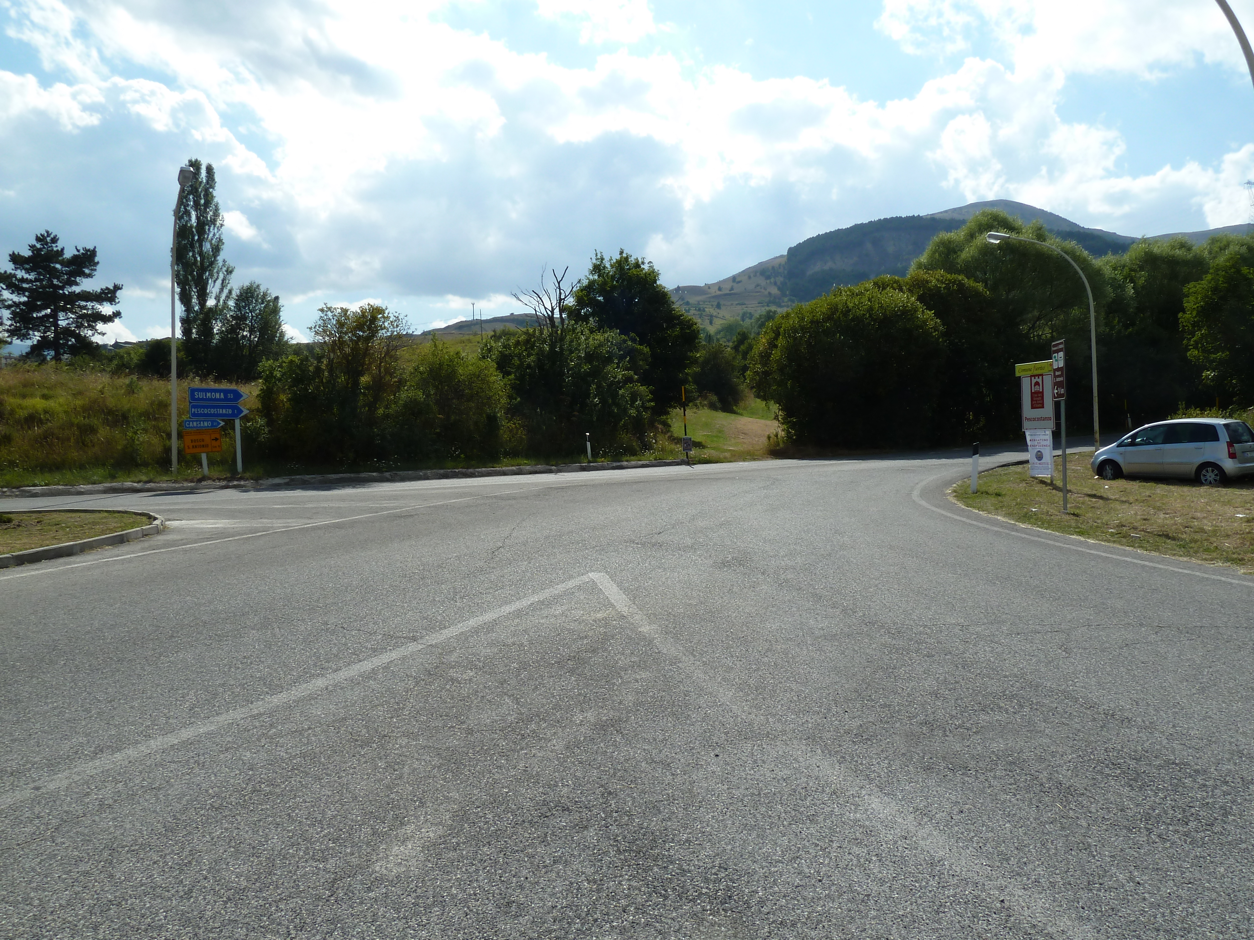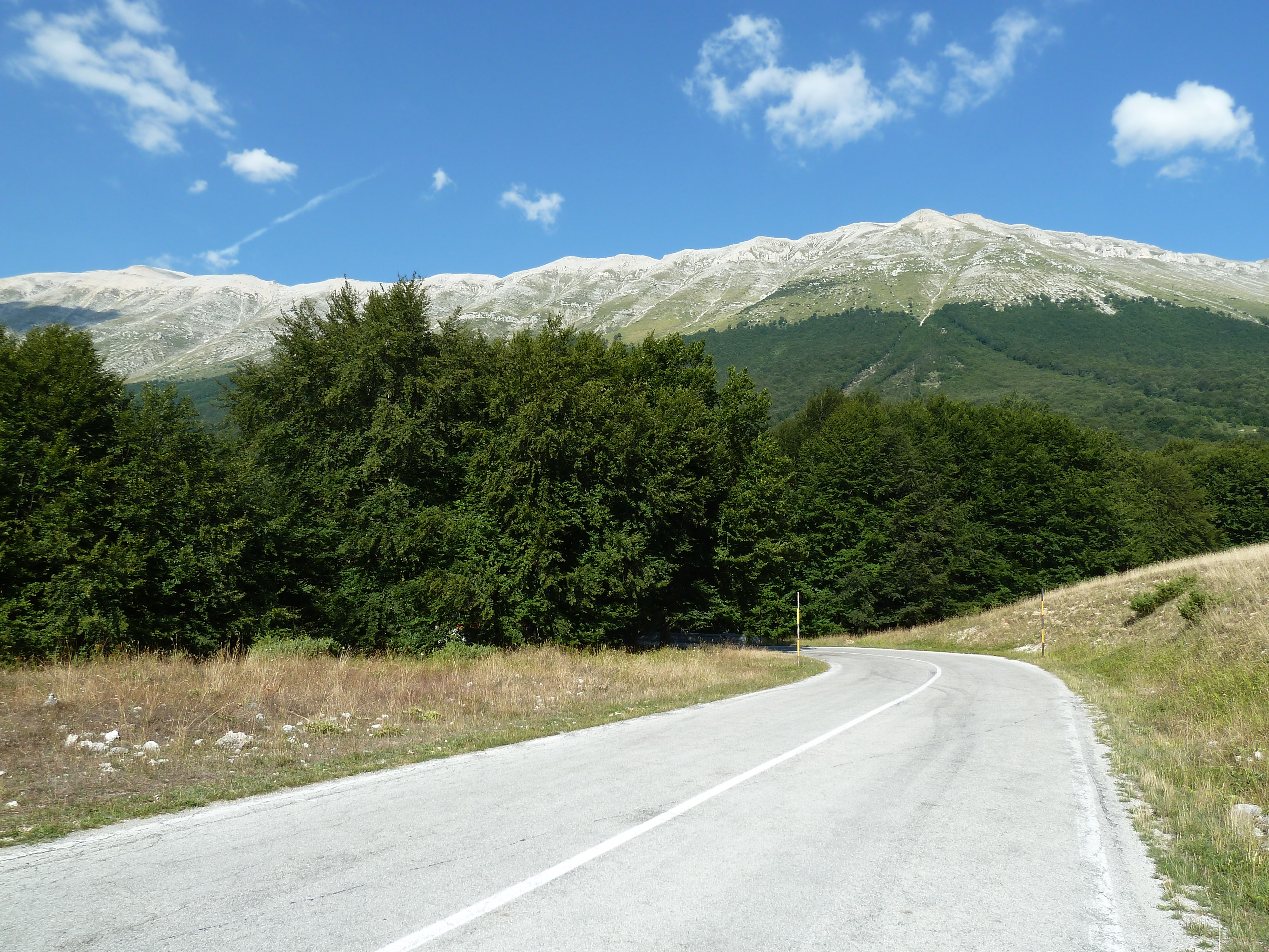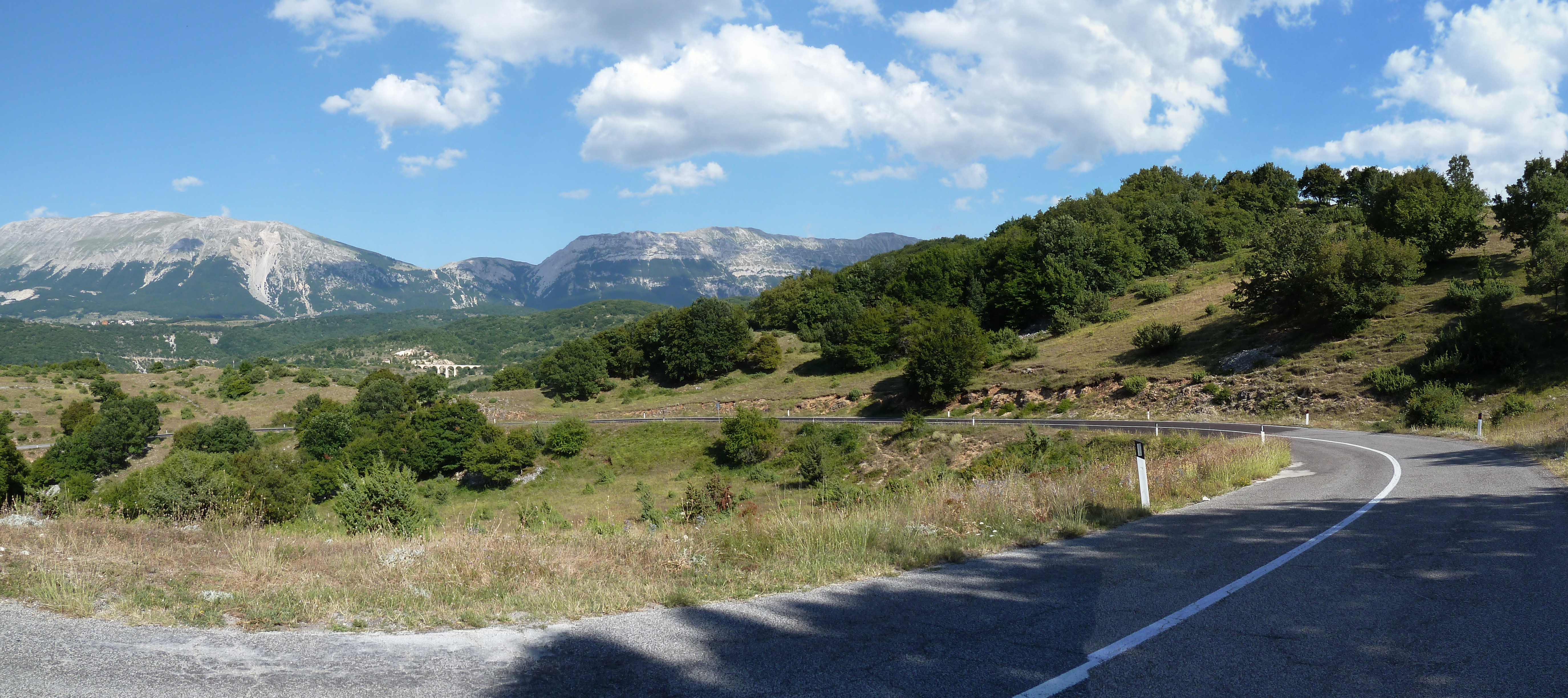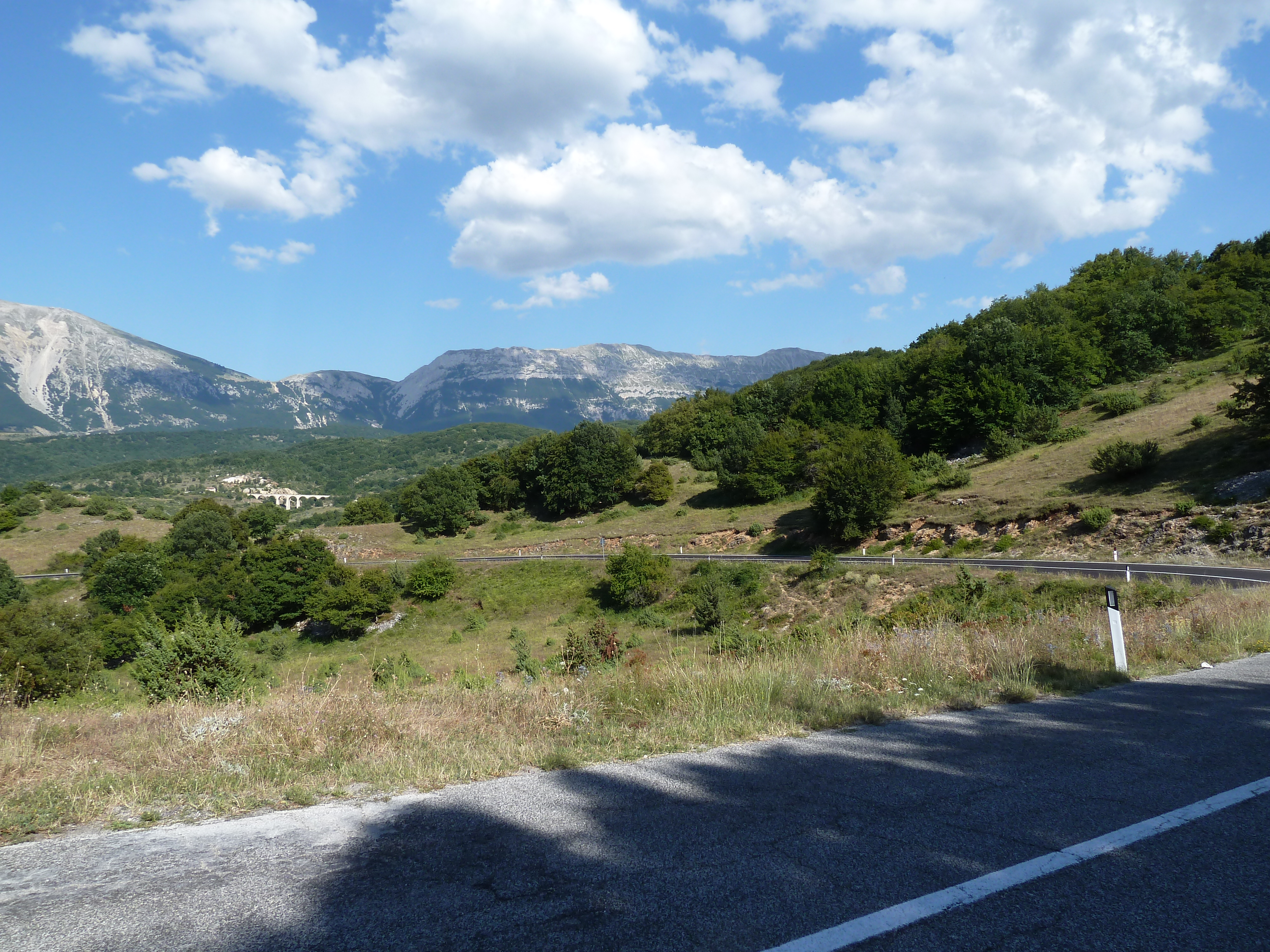 Traversato tutta la Piana delle Cinque Miglia sono praticamente a Cansano da dove salgo per Campo di Giove deciso a salire verso Passo San Leonardo, anche qui non vado da un bel pezzo e ritrovare certe strade mi fa molto piacere. La SS 487 comunque dopo il passo è sempre piuttosto malconcia e va percorsa con calma godendosi i contrafforti della Maiella che da questo lato sembra un grosso collinone brullo e biancastro.