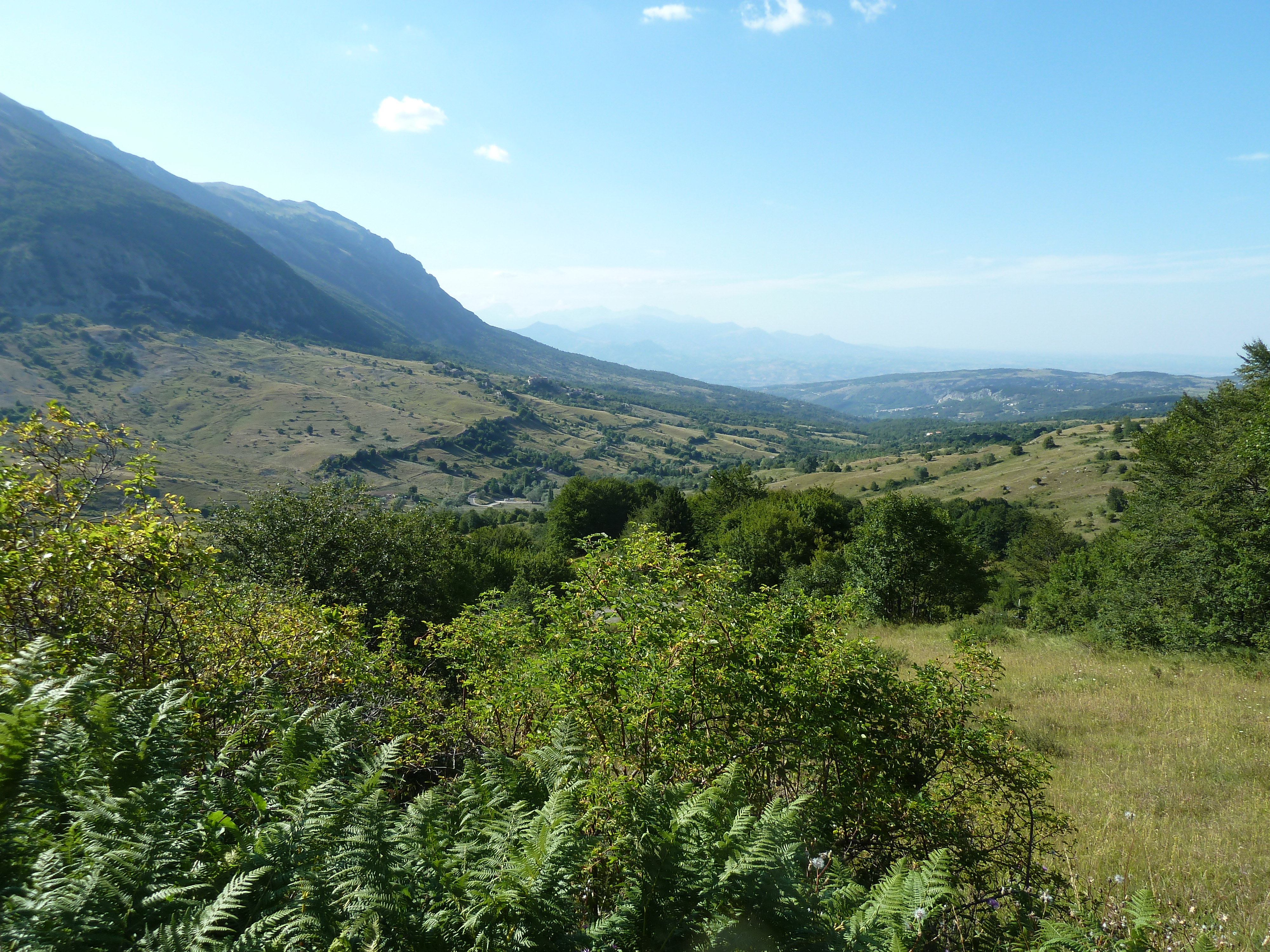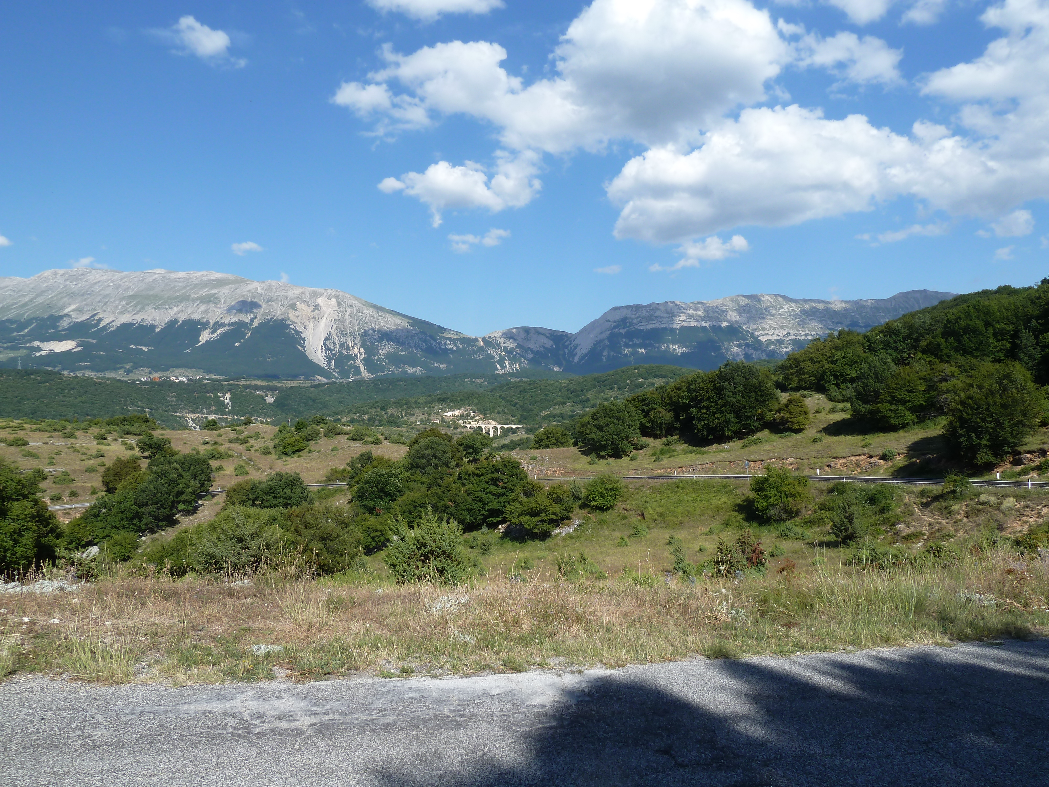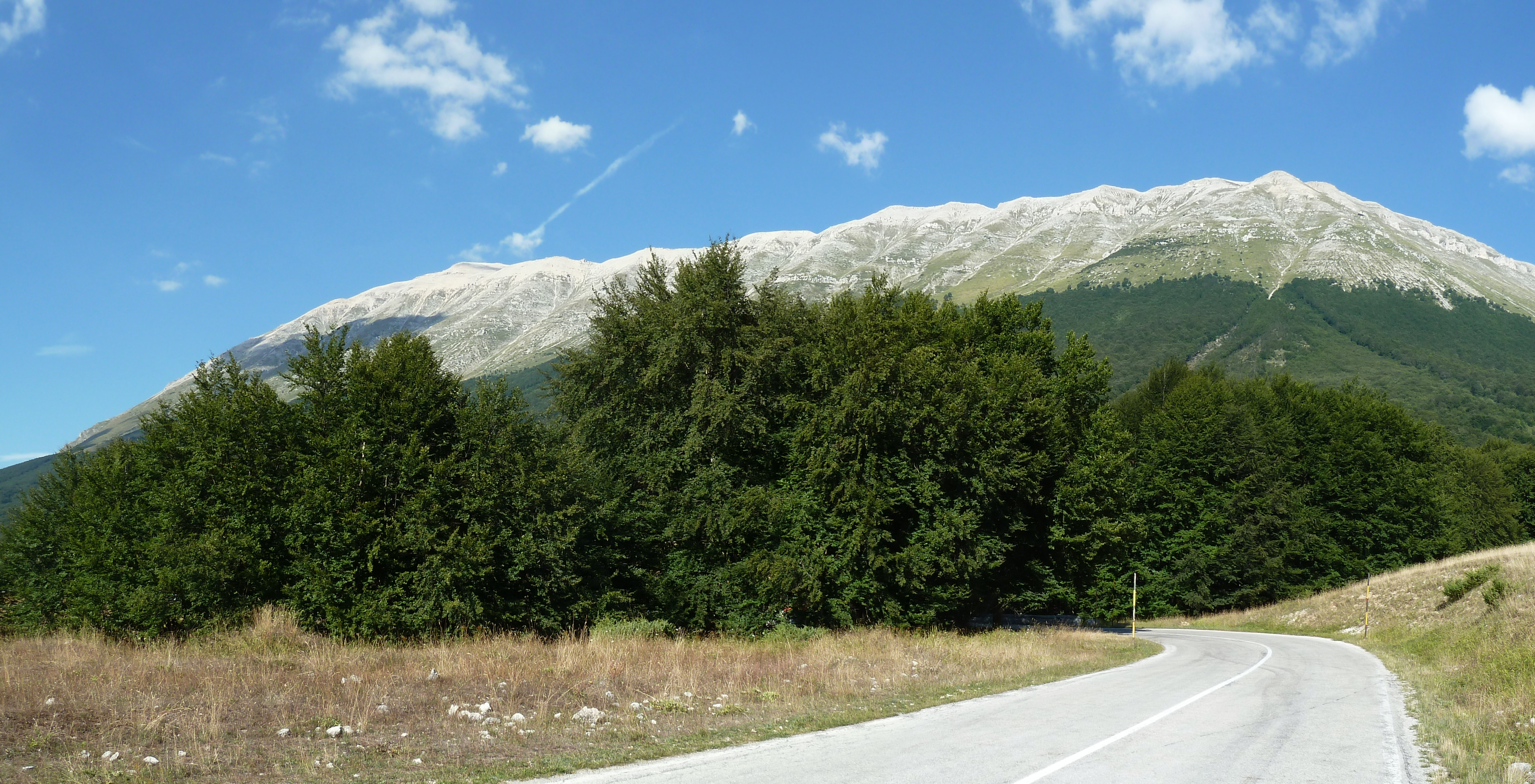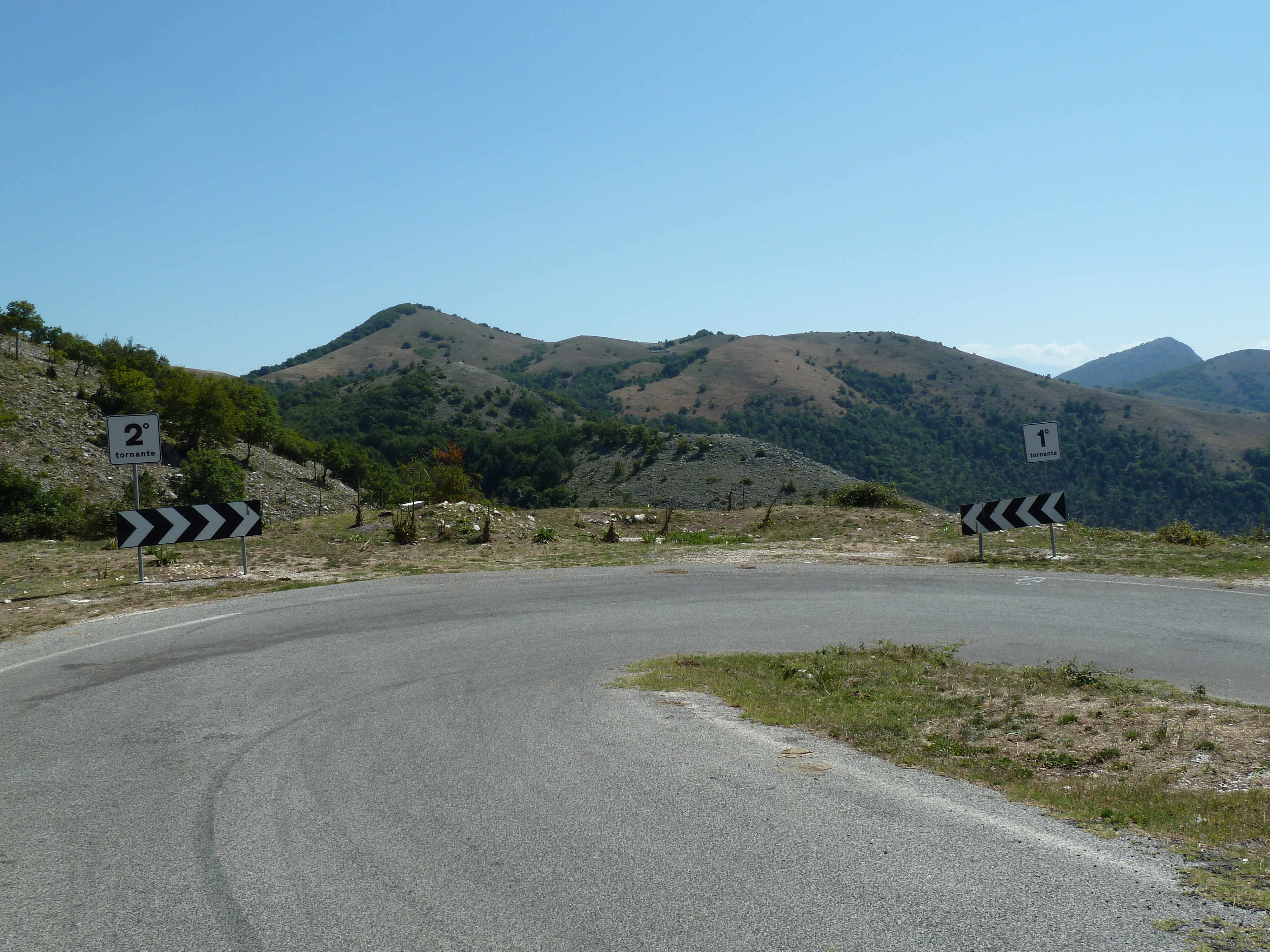 Traversato tutta la Piana delle Cinque Miglia sono praticamente a Cansano da dove salgo per Campo di Giove deciso a salire verso Passo San Leonardo, anche qui non vado da un bel pezzo e ritrovare certe strade mi fa molto piacere. La SS 487 comunque dopo il passo è sempre piuttosto malconcia e va percorsa con calma godendosi i contrafforti della Maiella che da questo lato sembra un grosso collinone brullo e biancastro.