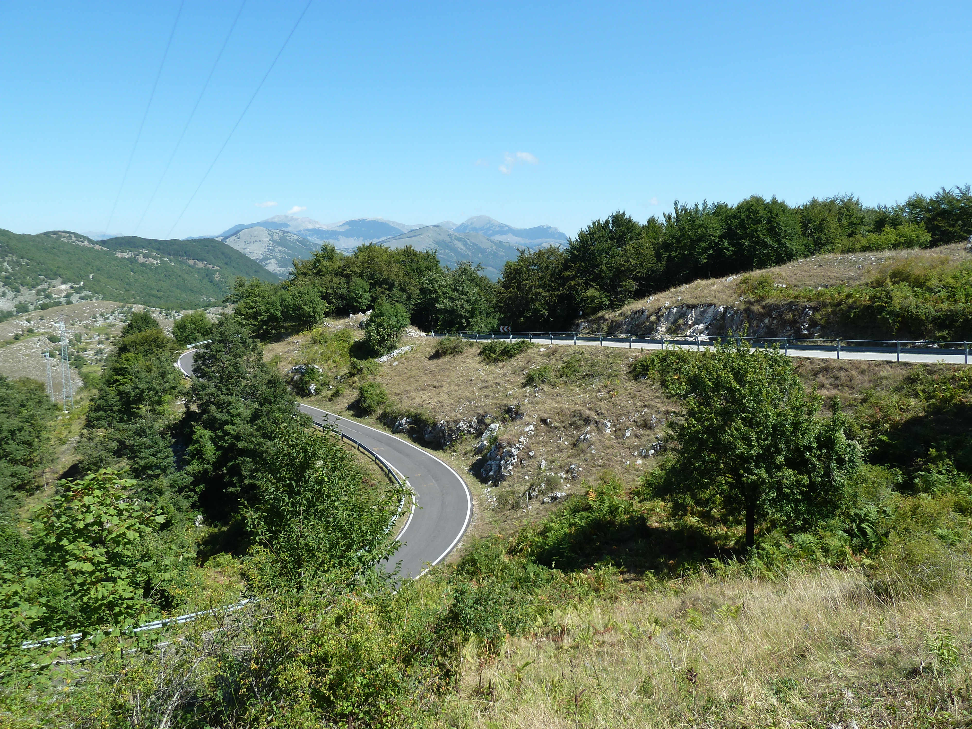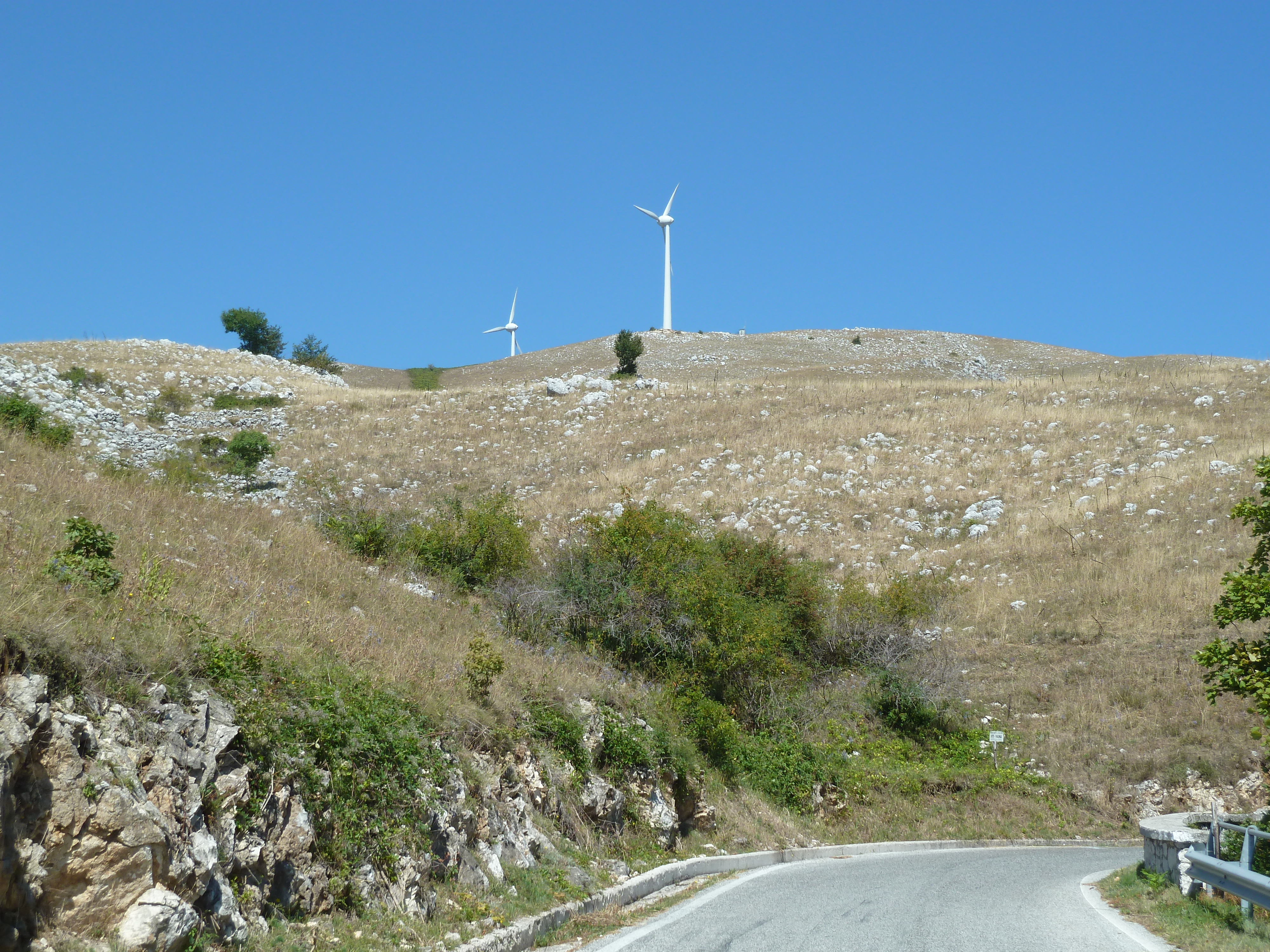 Una volta sceso sulla Tiburtina la mia destinazione è la bellissima SS 5 tra Raiano e Collarmele, col valico di Forca Caruso che rappresenta sempre un percorso divertente e molto sicuro: ottimi asfalti e nessuna pattuglia in giro, mai vista una! La vista dalla cima sulla valle del Tirino e verso il Gran Sasso è spettacolare ed il parco eolico di Collarmele dove sono già stato fin sotto le gigantesche pale eoliche è fascinoso.
