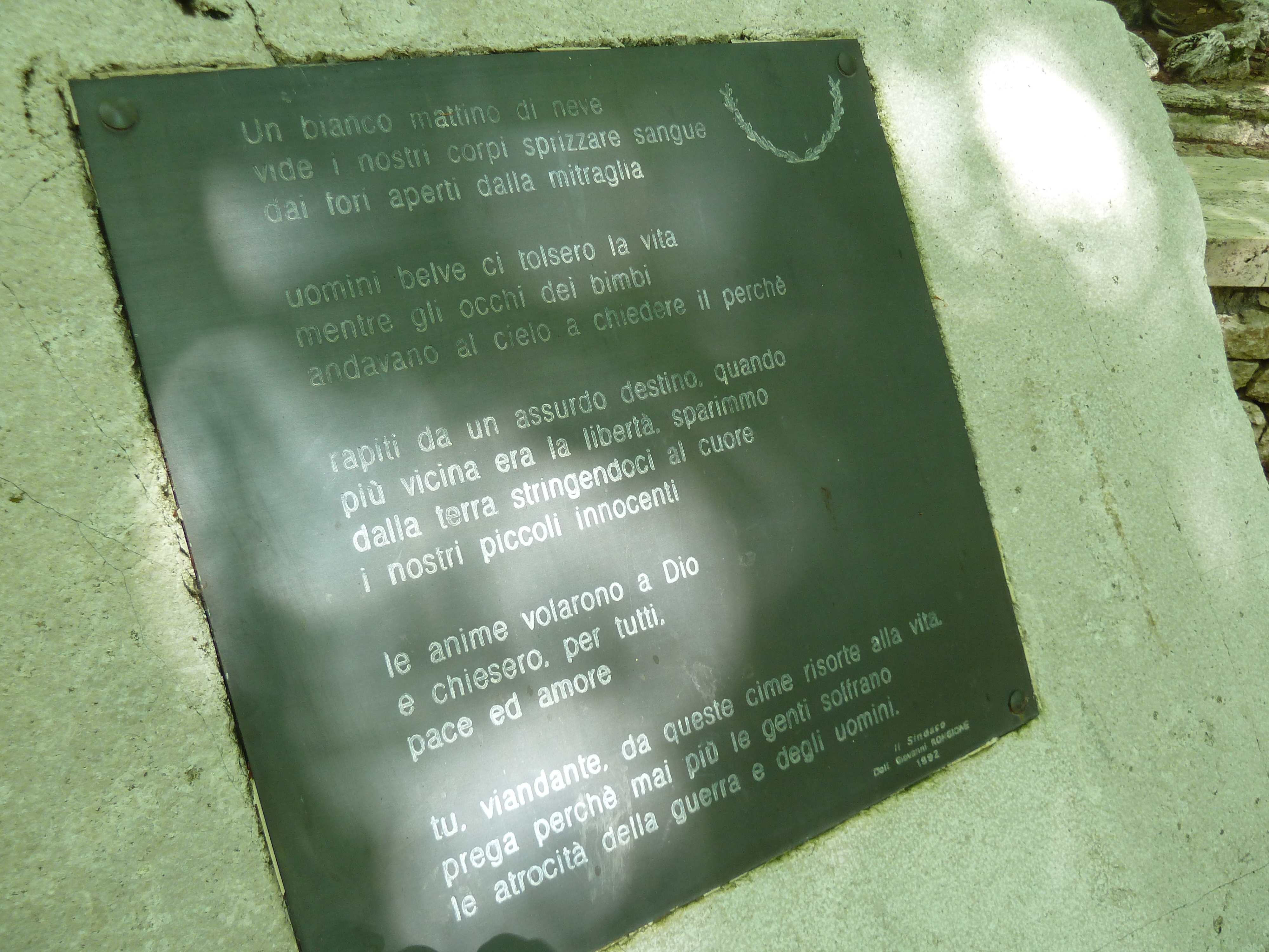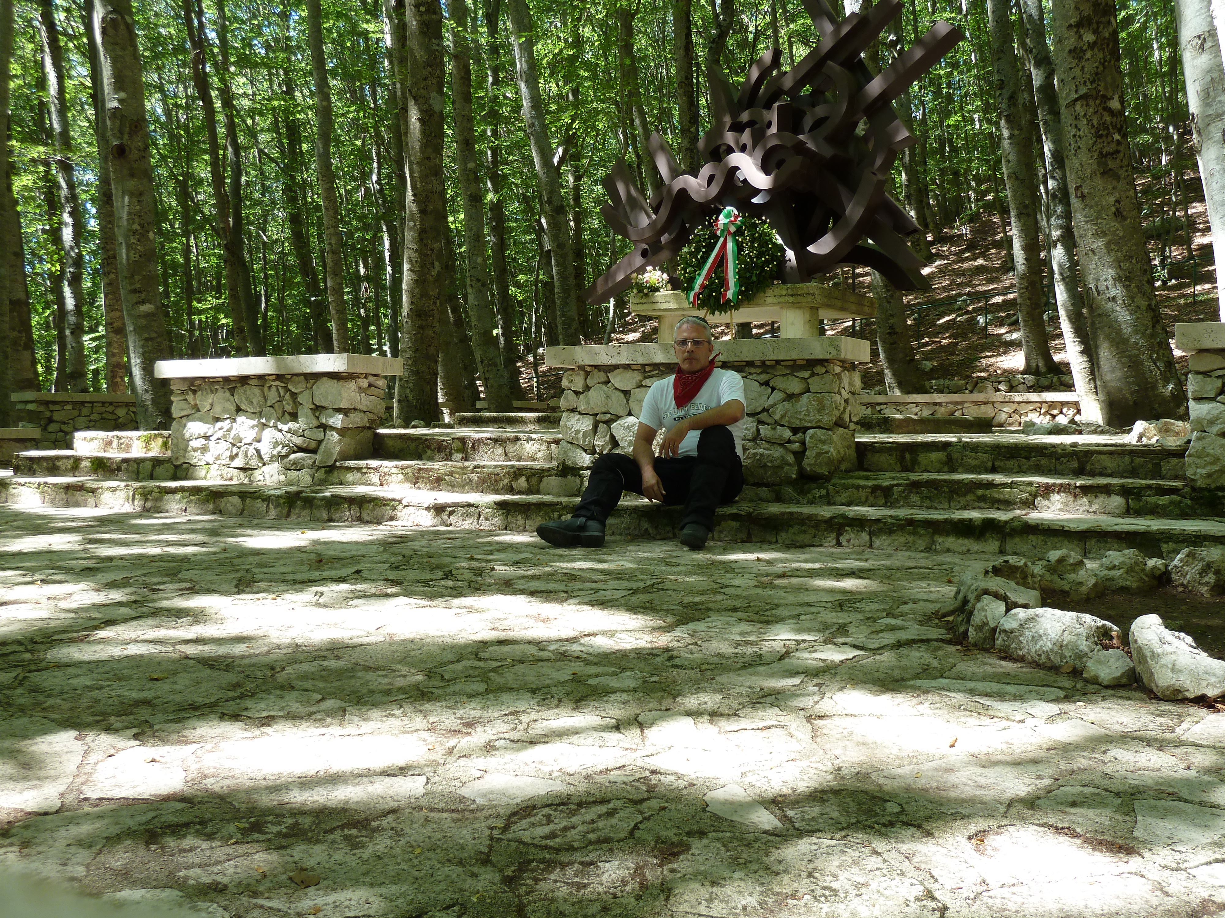 E’ successo che per andare a vedere il sacrario dei Martiri di Collelungo indicato da vari cartelli presso Cardito (FR) mi sono inerpicato per una stradina in cemento. Dopo aver visitato il luogo nel bosco ho fatto manovra per tornare indietro su una strada stretta ed in forte pendenza, un grosso sasso sotto la ruota anteriore mi ha spostato il manubrio quanto basta per farmi perdere l’equilibrio! Sono andato comunque avanti tutto il giorno con un paio di analgesici visto ed ho cominciato a sentire un po’ di fastidio solo proprio verso sera. Niente di più odioso che lasciar cadere la moto da ferma!