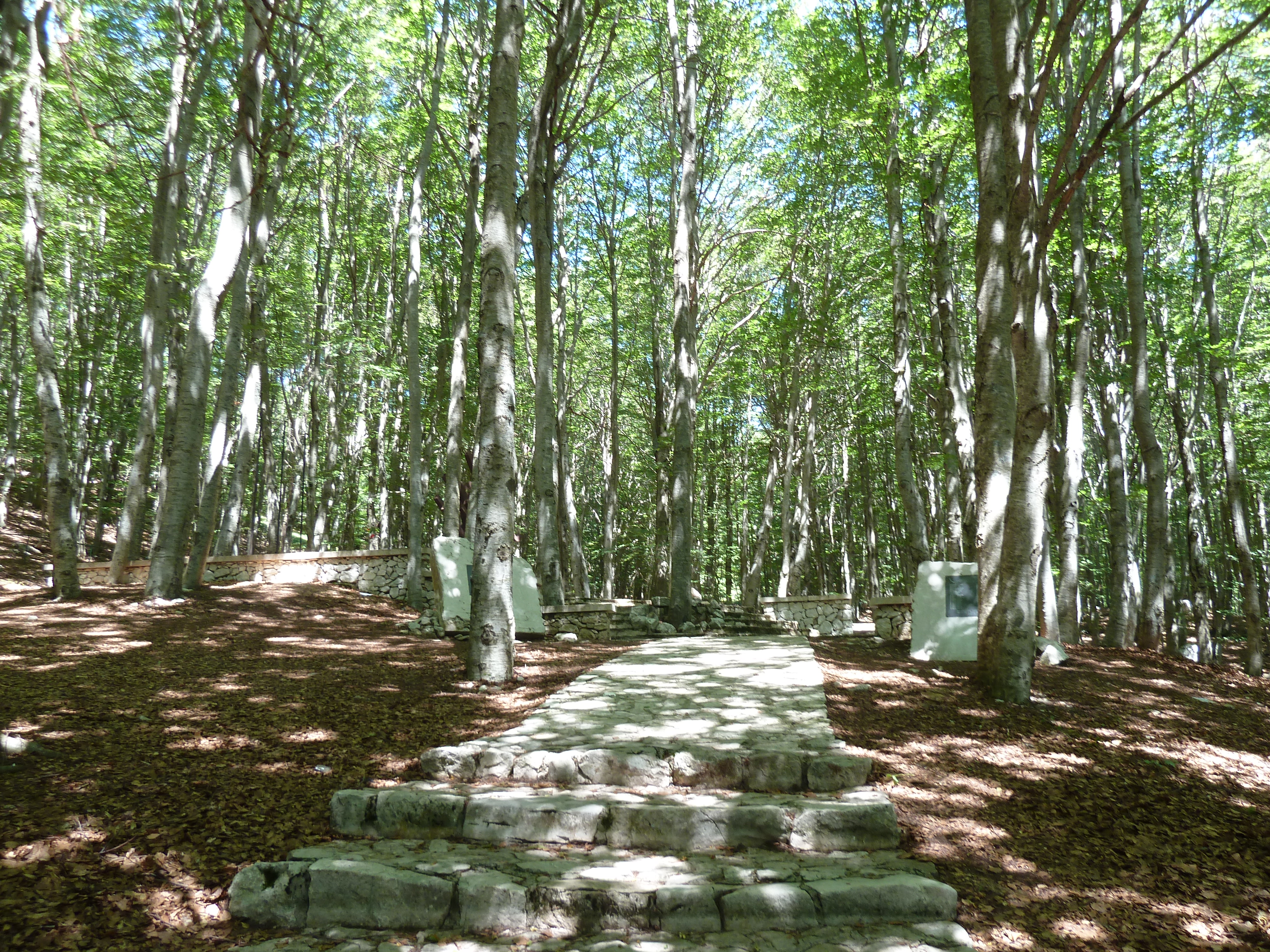 Mi avventuro verso nord seguendo la SS 158 dell’alta Valle del Volturno leggendo persino indicazioni per Alfedena: era questa un tempo l’unica strada verso quella zona dell’Abruzzo e l’alta val di Sangro. Un bel valico nel bosco mi lascia intravedere i contrafforti del Monte Marrone, la cima più alta della zona teatro di numerose battaglie nell’inverno 1943-44. A quanto ho letto qui si distinse parecchio il genio ferrovieri con i primi reparti regolari dell’Esercito Italiano affiancati a truppe alleate anglo-americane.