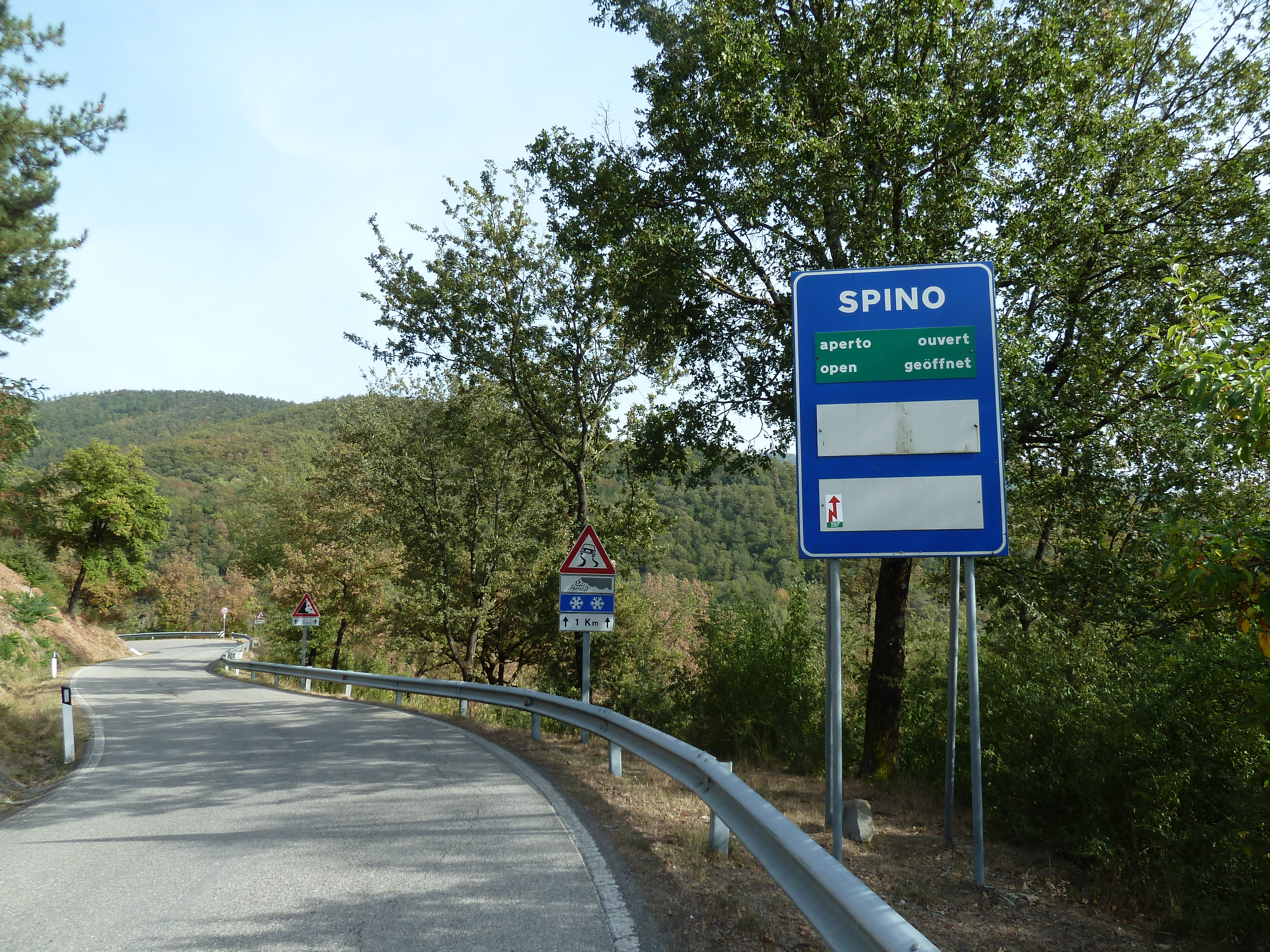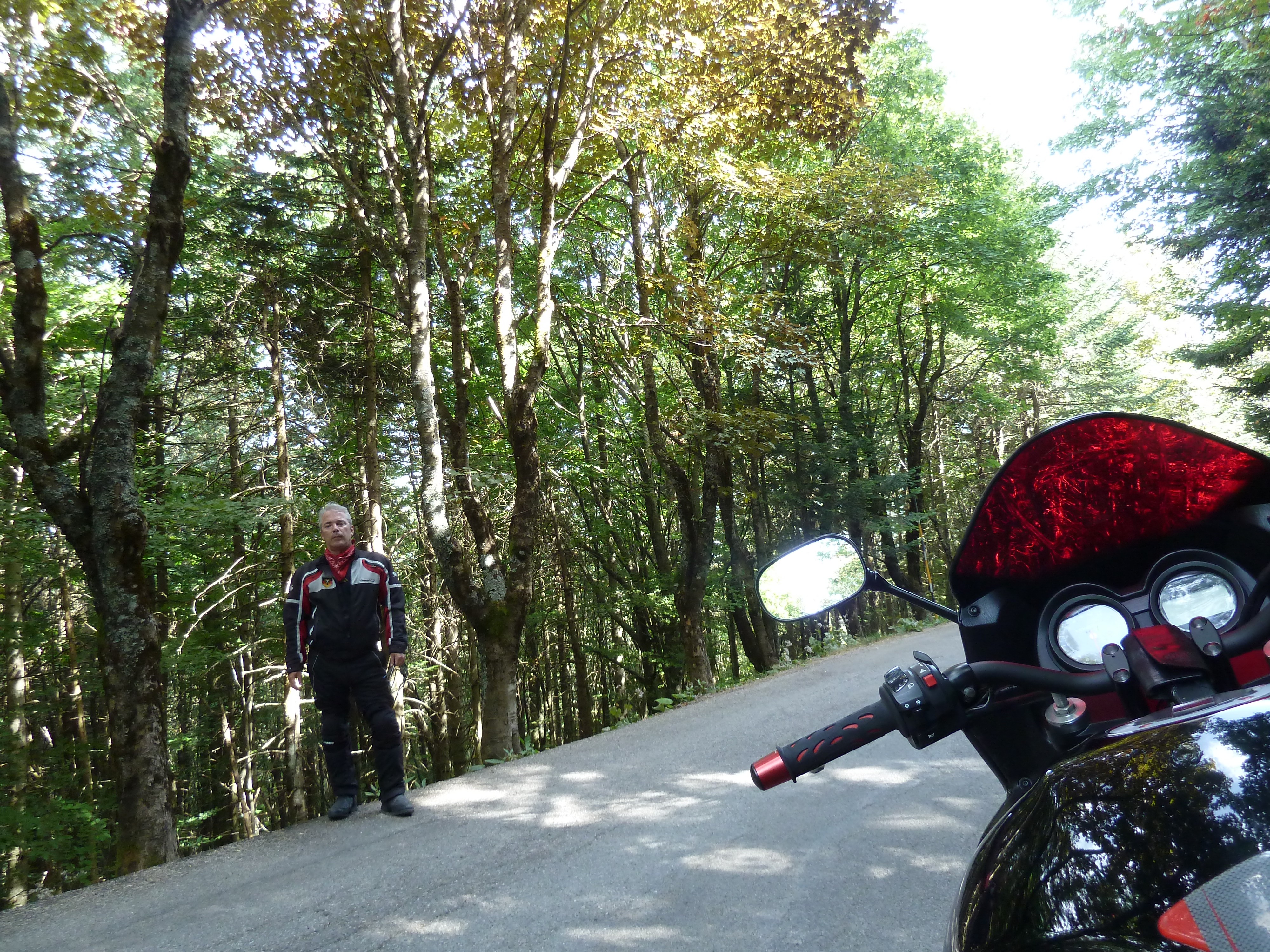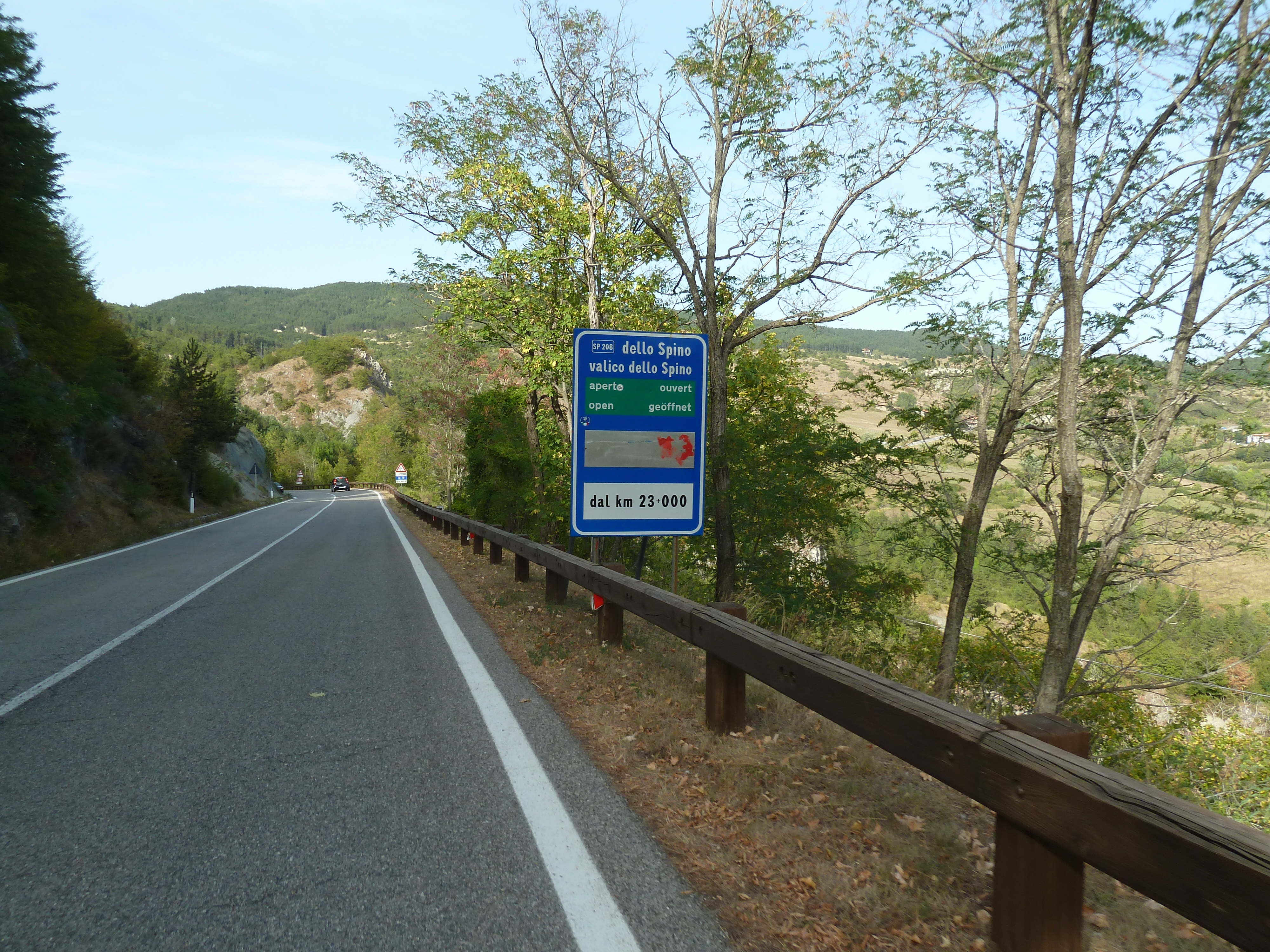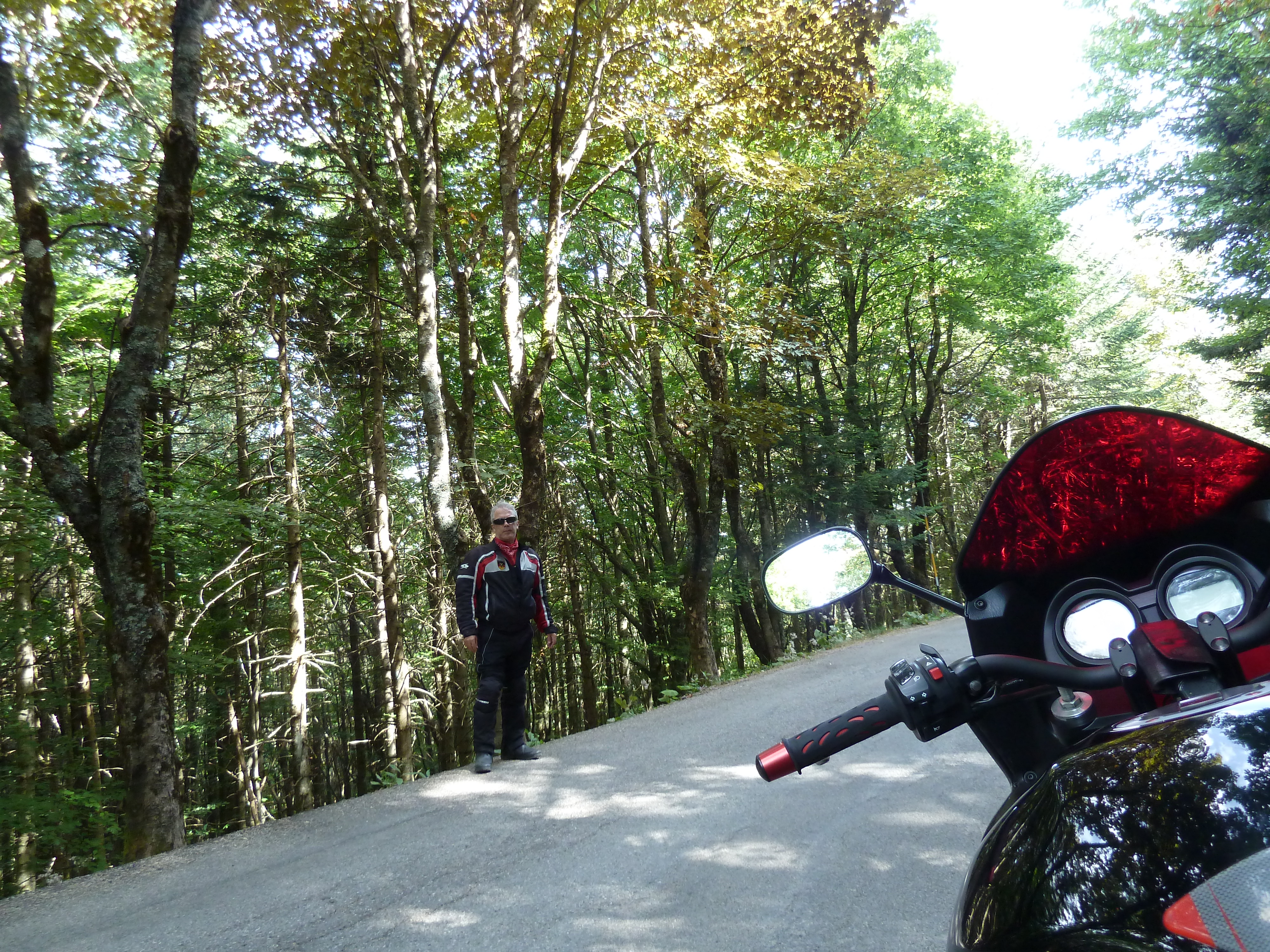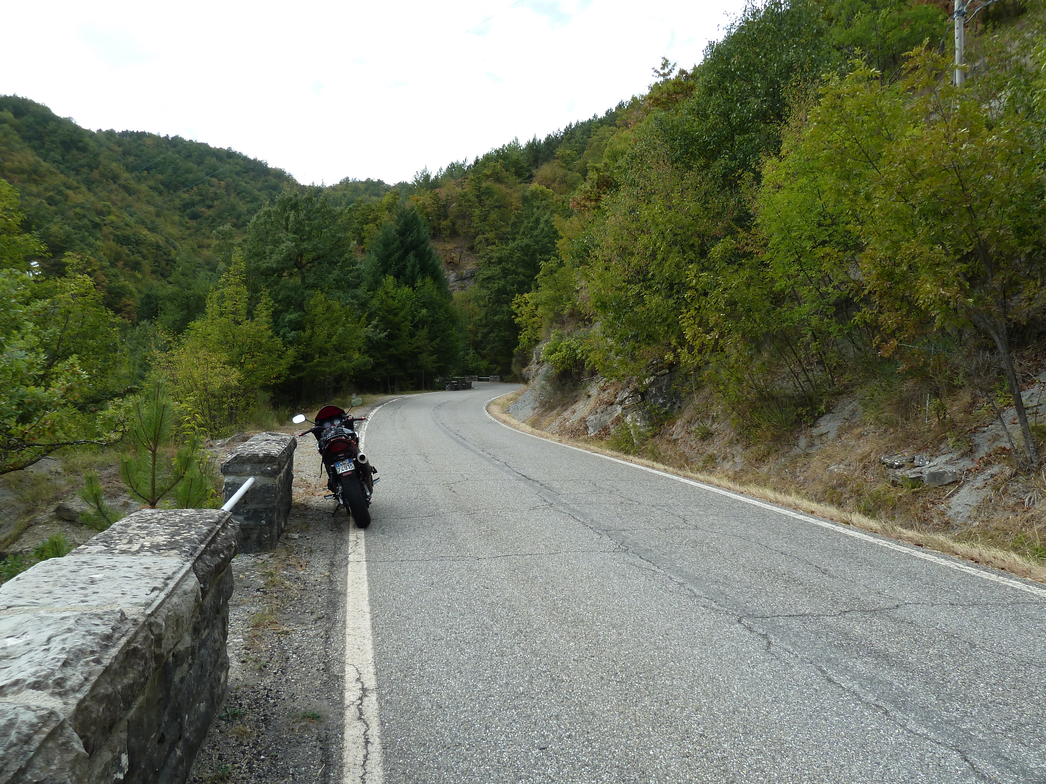 Dopo pranzo si prosegue oltre Leonessa sulla SS 521 che ho scoperto qualche mese fa dopo averla adocchiata sulle carte. In breve siamo a Piediluco e da lì a Terni ed alla SS 309 della Valnerina che lasciamo a Castel San Felice (sbagliando strada) per imboccare una stradella stretta e ripidissima che in un attimo ci porta sulla SS 395 del valico di Grotti, sopra la galleria Spoleto-Cascia. Salita e discesa verso Spoleto e poi via di Flaminia fino a Roma, senza evitare di godere appieno del bellissimo tratto di questa statale fino a Terni con quelle belle ed ampie curve invitanti dove, non lo nego, cerco di dimostrare la mia (?) perizia!