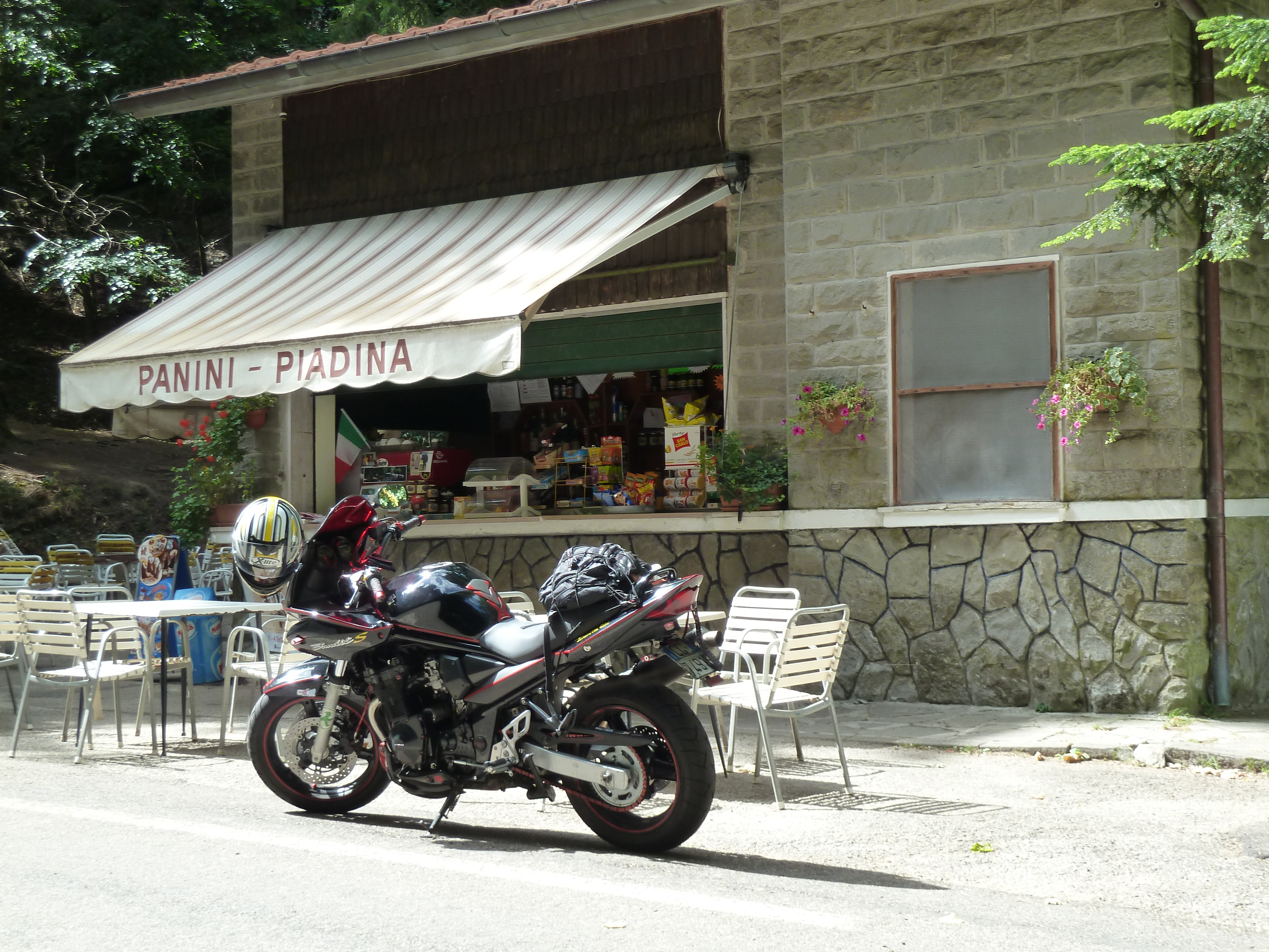 Dalla Tiburtina ci inoltriamo sulla bella e divertente SS 314 Licinese fino alla SS4 Salaria all’altezza di Poggio Moiano. Da lì in poi è una passeggiata rilassata (strada ben frequentata da autovelox e pattuglie!) fino a Posta pronti ad imboccare la bellissima e divertente salita verso Leonessa sulla SS 471. Ma pochi km dopo, vista anche l’ora, decido di fermarmi al ristorante “La tana del lupo” dove diversi anni fa in occasione di un raduno dell’ormai estinto gruppo di motobikers.net era organizzato il pranzo.