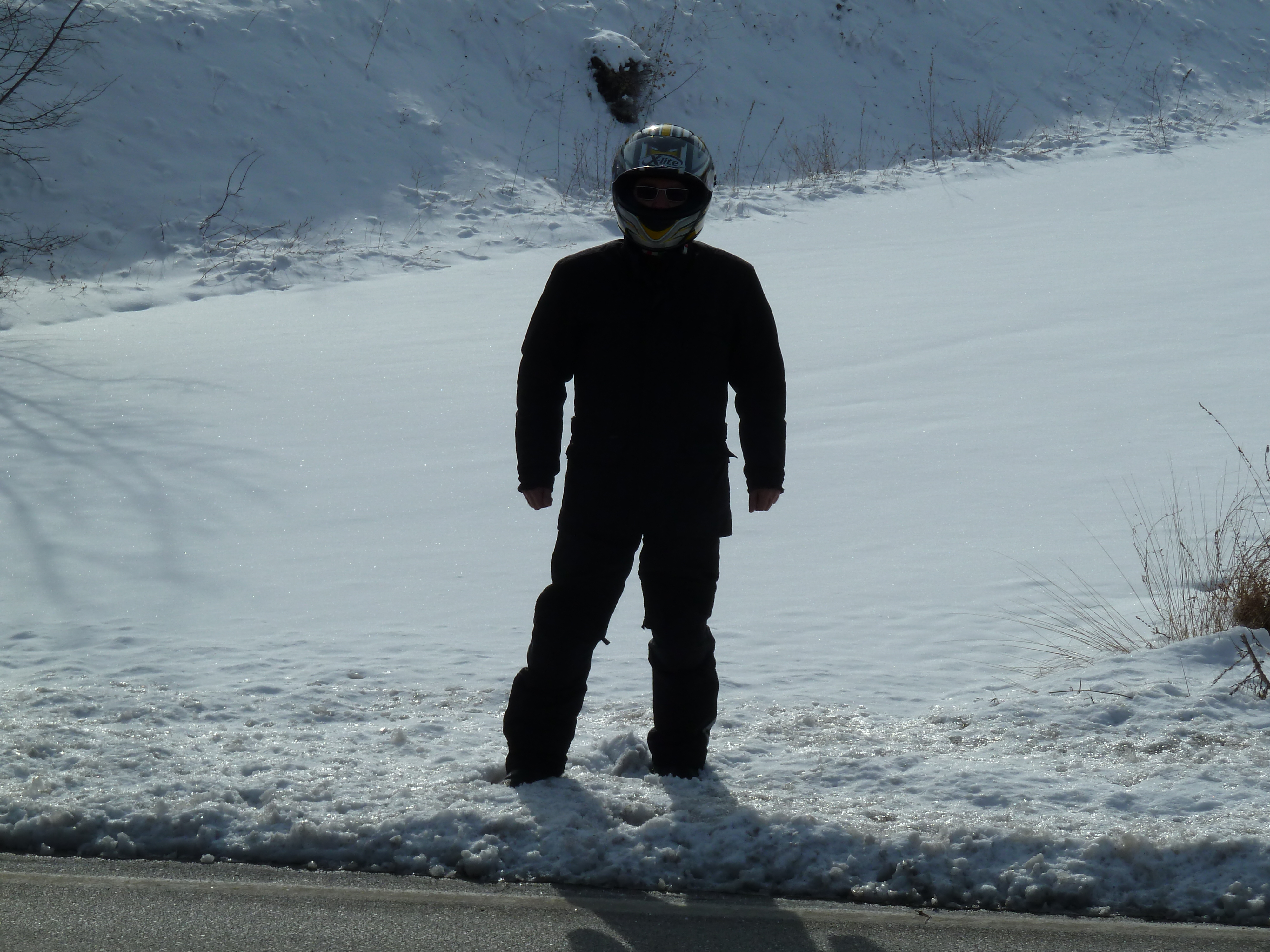 Le uscite invernali come questa, purché ci sia il sole ovviamente o comunque non minacci di piovere, hanno il solo compito di passare una giornata diversa, all’aria aperta e possibilmente in compagnia. In realtà di motociclistico c’è davvero poco perché si guida sempre piuttosto rigidi sia per il clima che per l’attenzione continua alla strada che potrebbe nascondere trappole pericolose ad ogni curva. E quindi in queste condizioni l’attenzione è moltiplicata perché soprattutto le zone in ombra sono quanto meno umide se non del tutto bagnate. La presenza di ghiaccio almeno sulle strade principali è ridotta grazie all’abbondante spargimento di sale che viene fatto (la moto andrebbe sempre ben lavata al ritorno da uscite invernali ad evitare le corrosioni tipiche del sale su certi metalli). Un’altra delle cose che colpiscono sempre durante le uscite “fuori stagione” è l’assenza di altri motociclisti! Inorgoglisce…