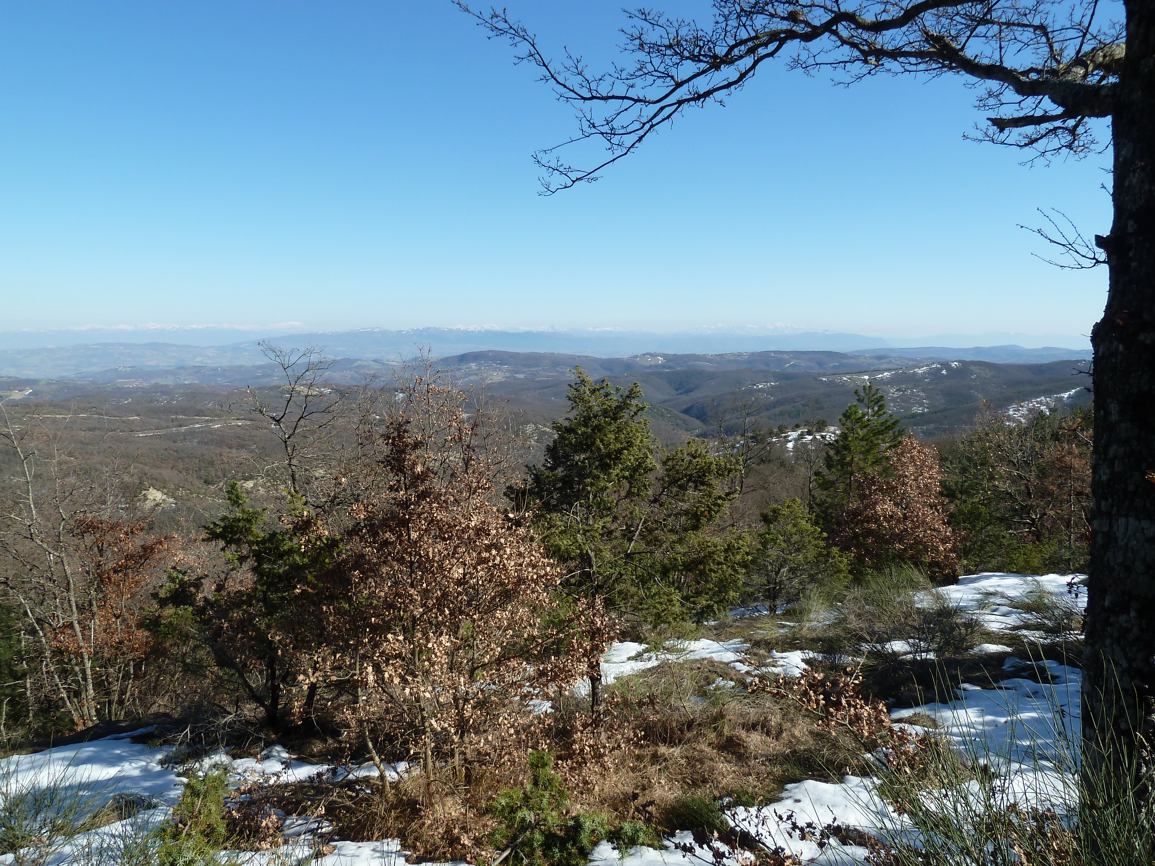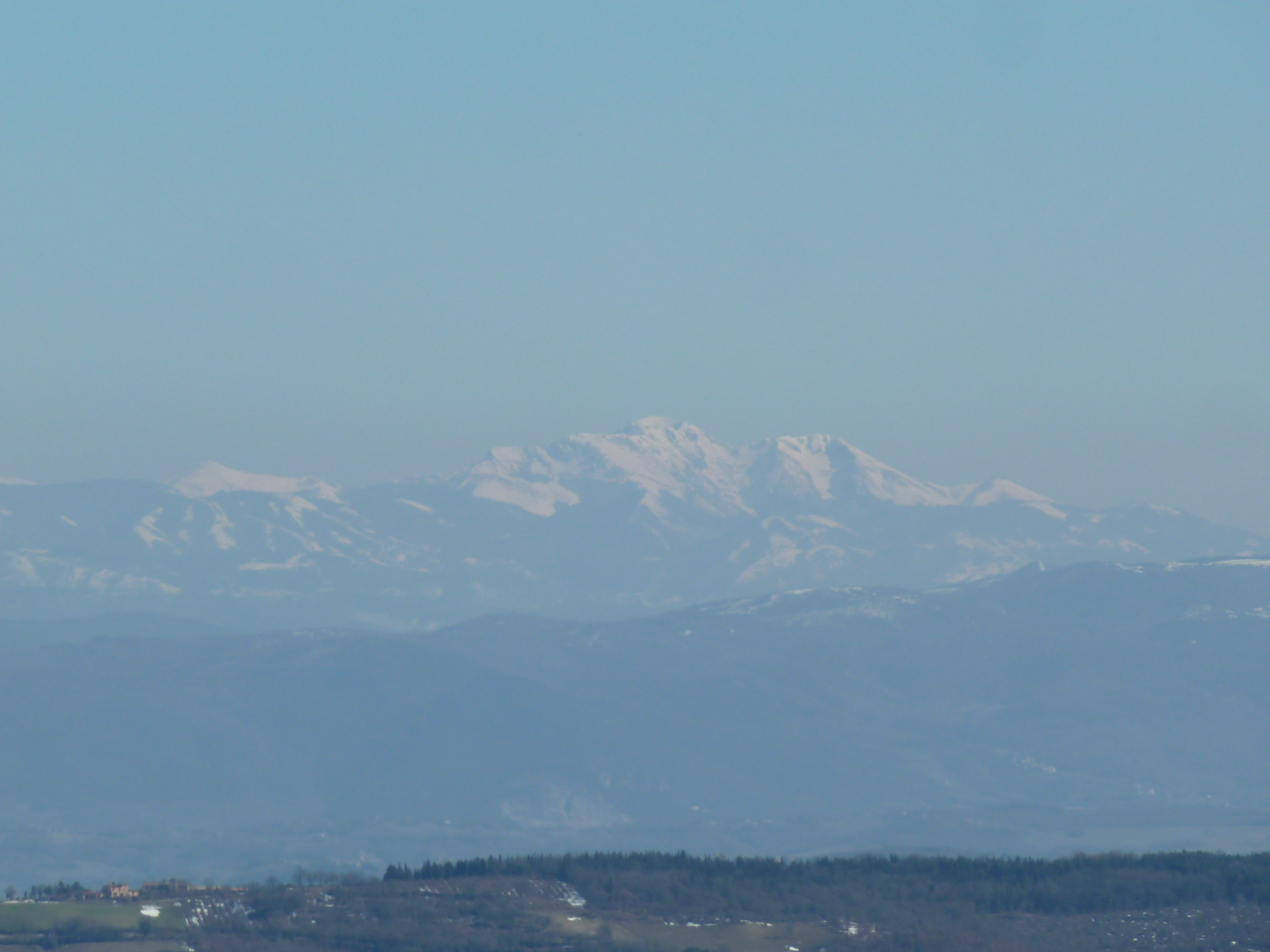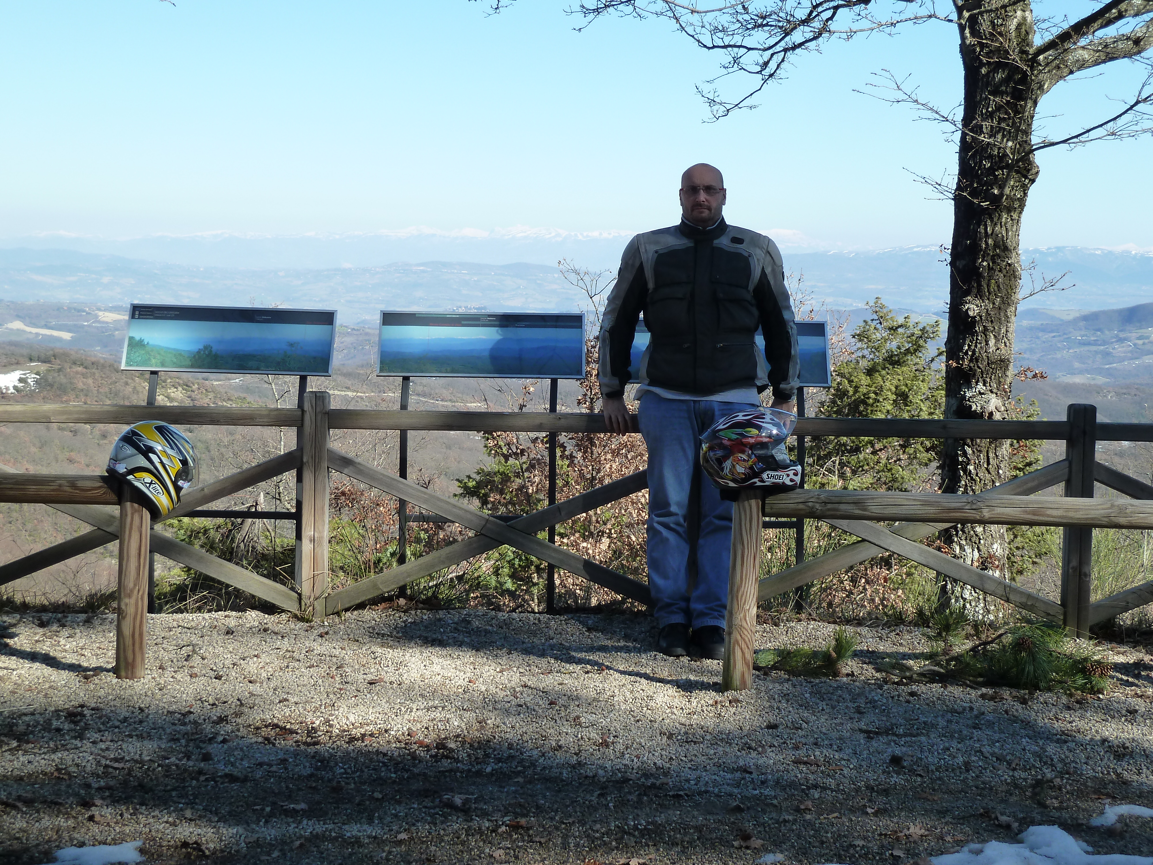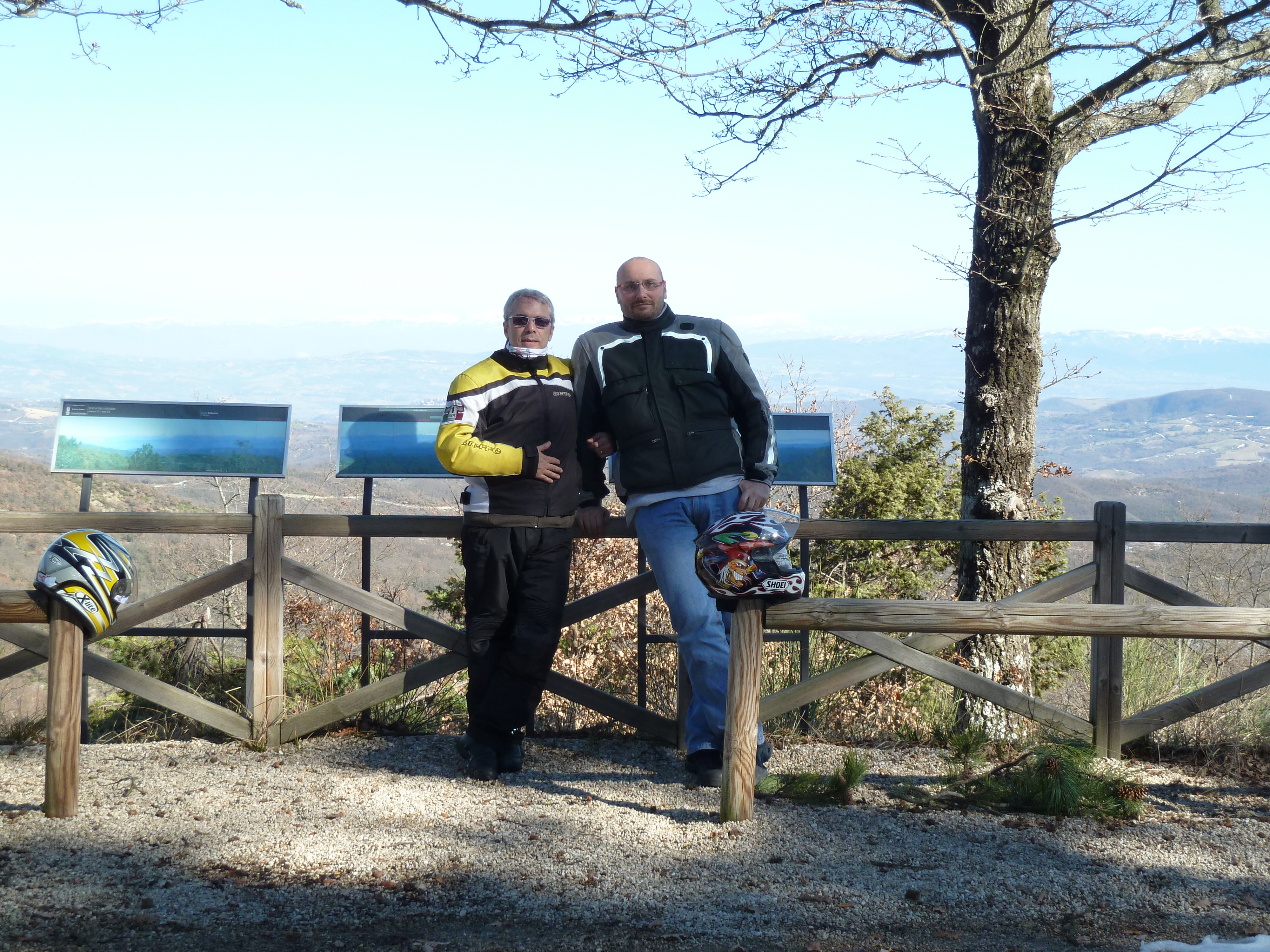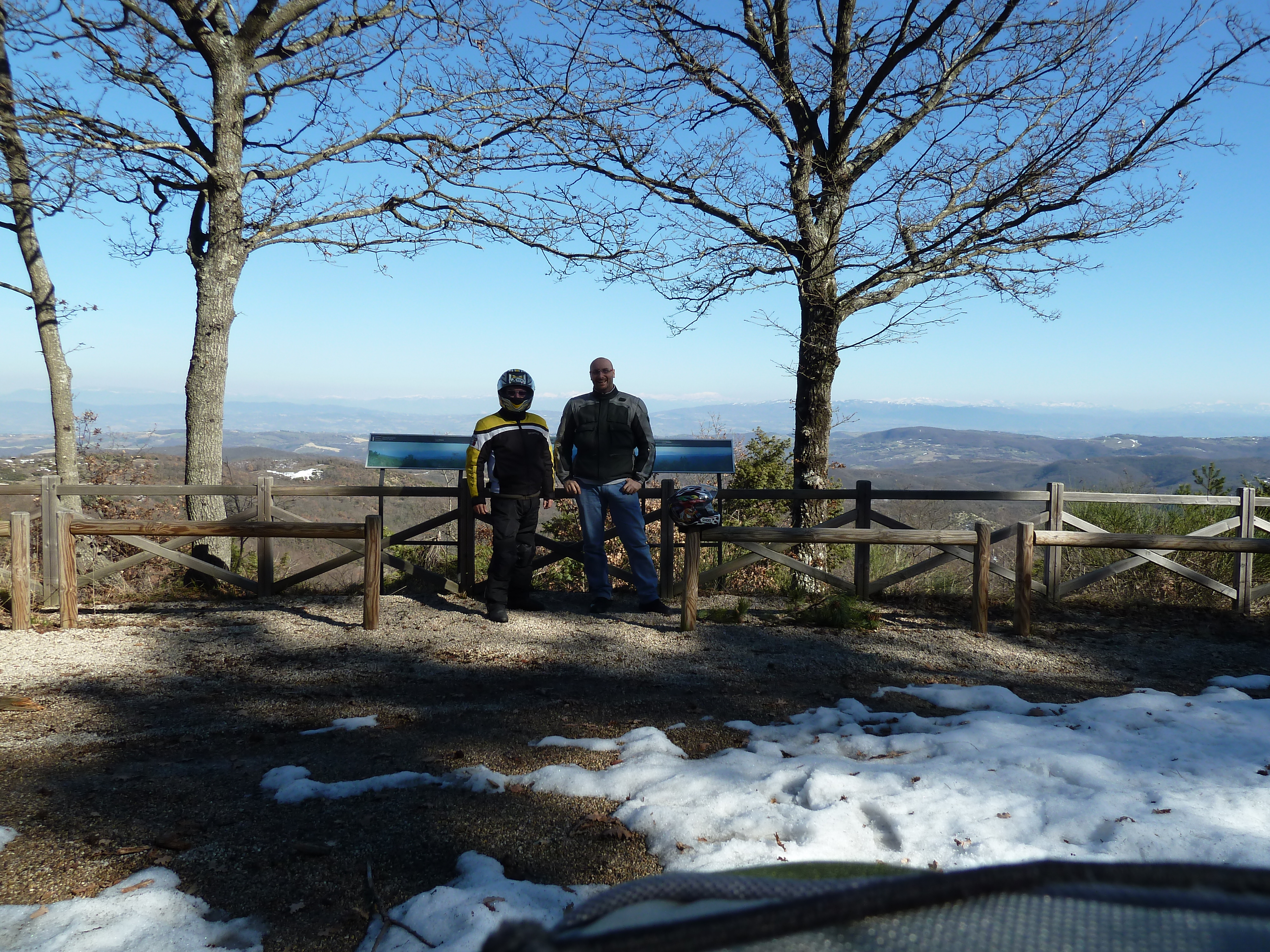 Puntiamo ancora a Marsciano dove so che troveremo un ottimo ristoro nella tavola calda della piazza principale. Poi su per il Monte Peglia sulla SS 317 e giù fino a Orvieto Scalo con altre decine e decine di curve ma con prudenza: le strade sono bagnaticce ed ai lati c’è ancora neve. Sosta al punto panoramico del Monte Peglia d’obbligo ad osservare le cime innevate e lontane del Terminillo e del Vettore.